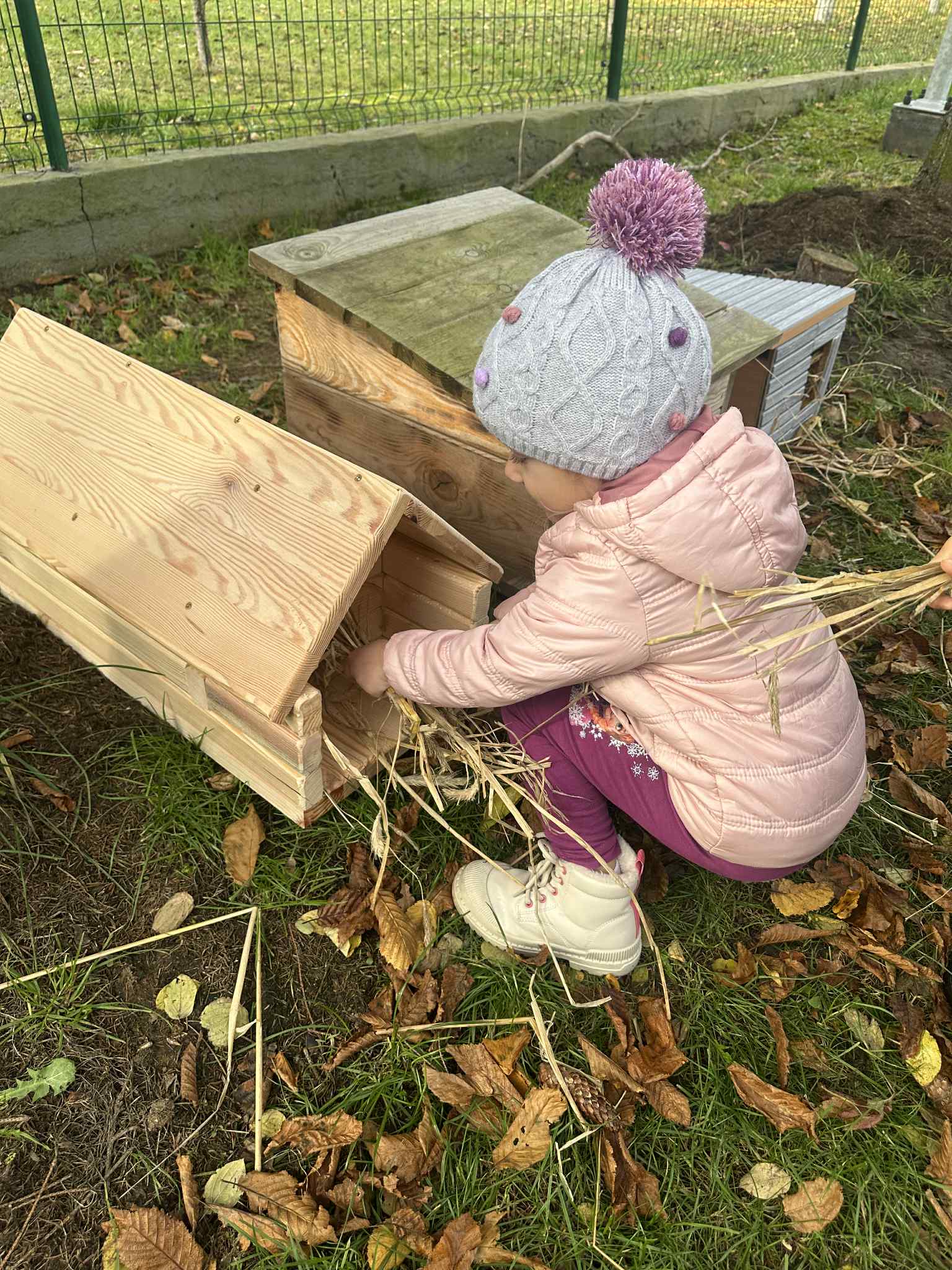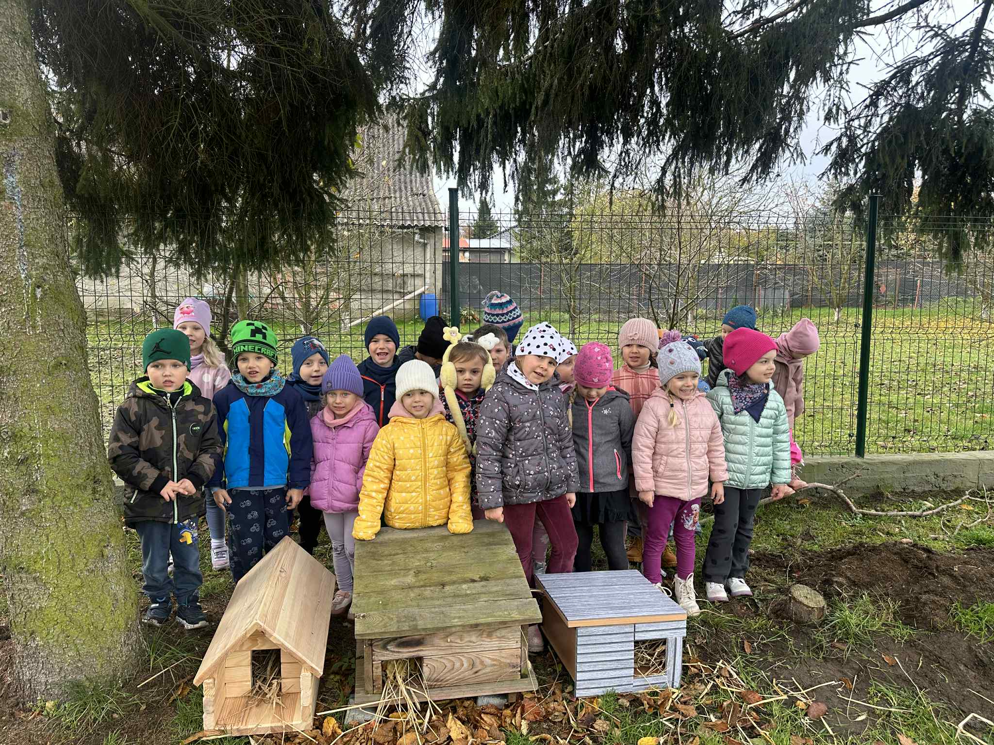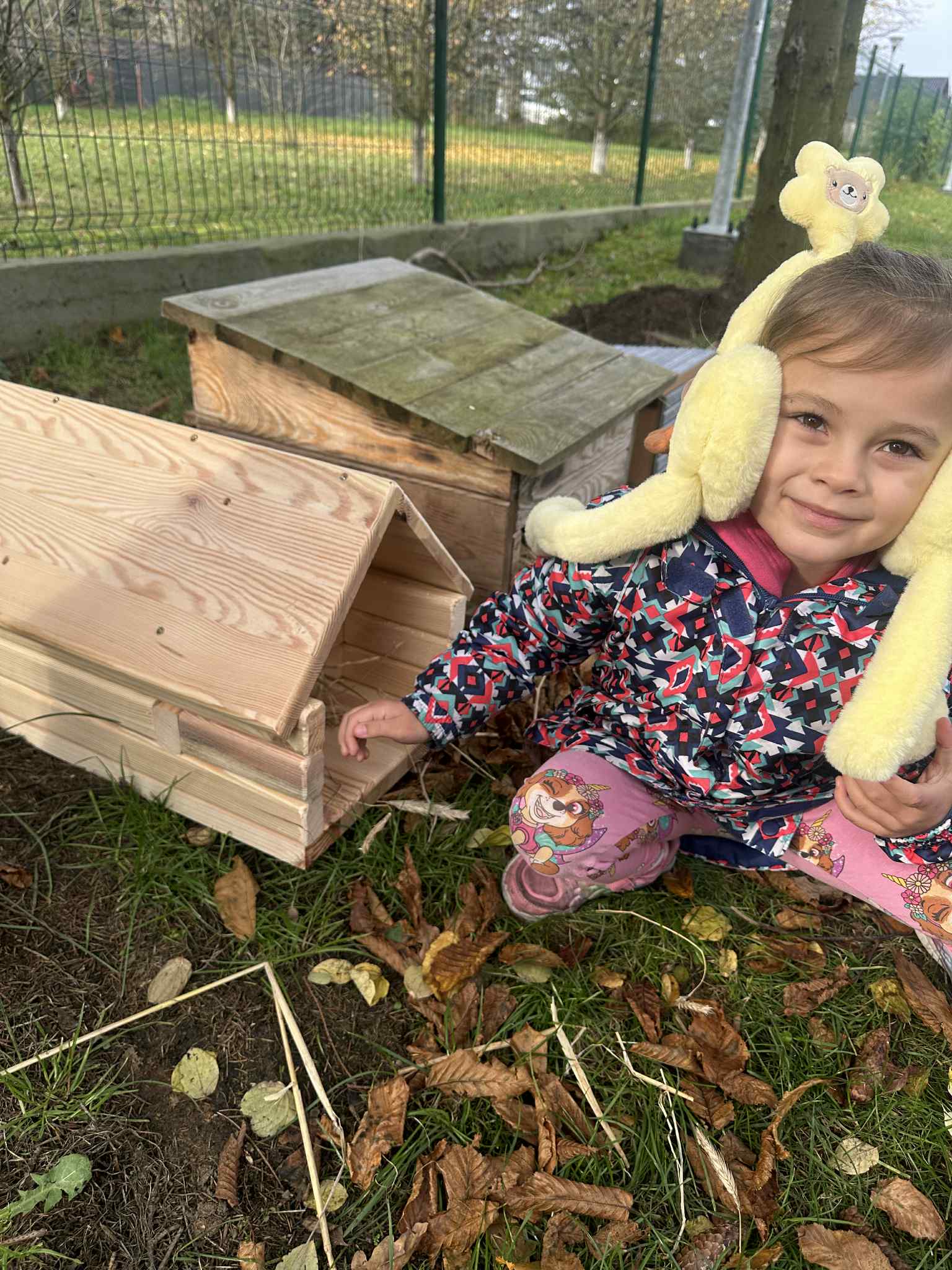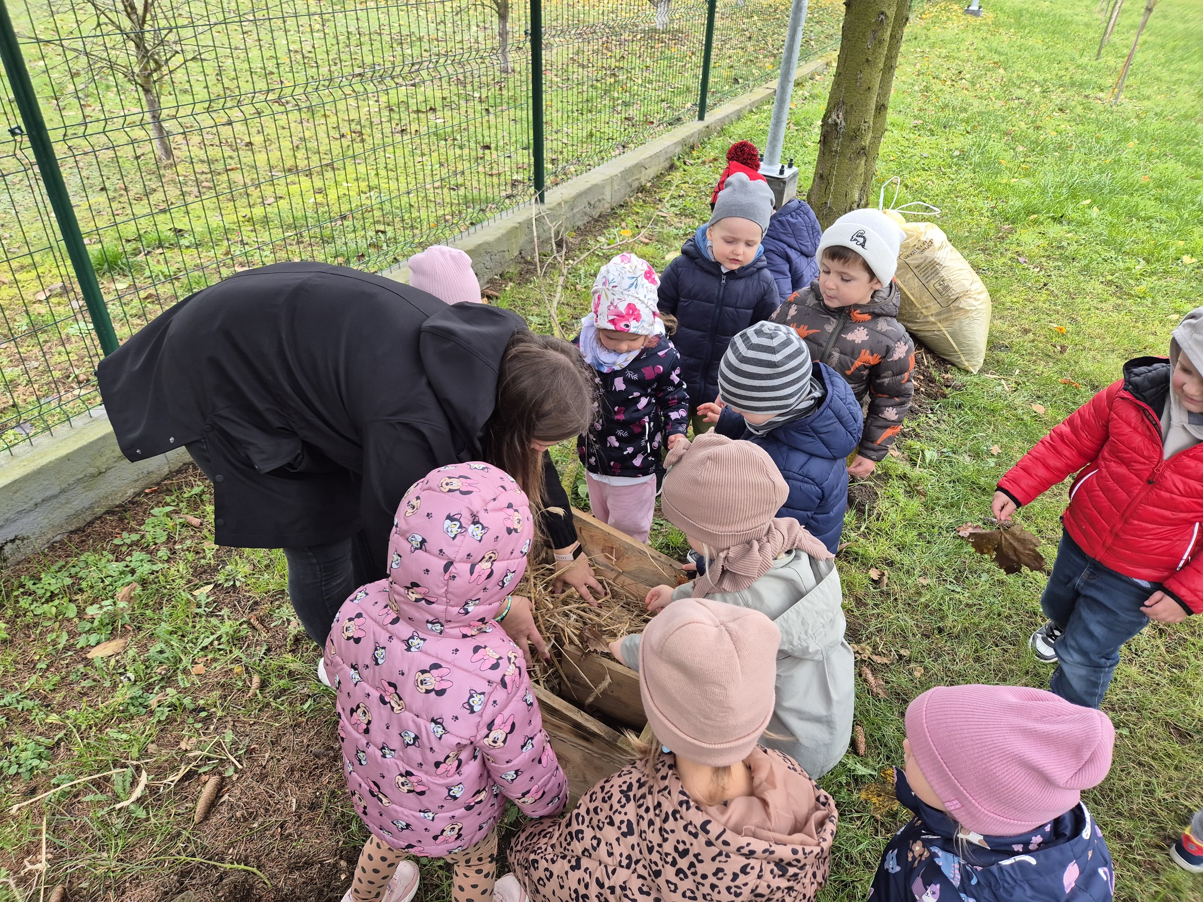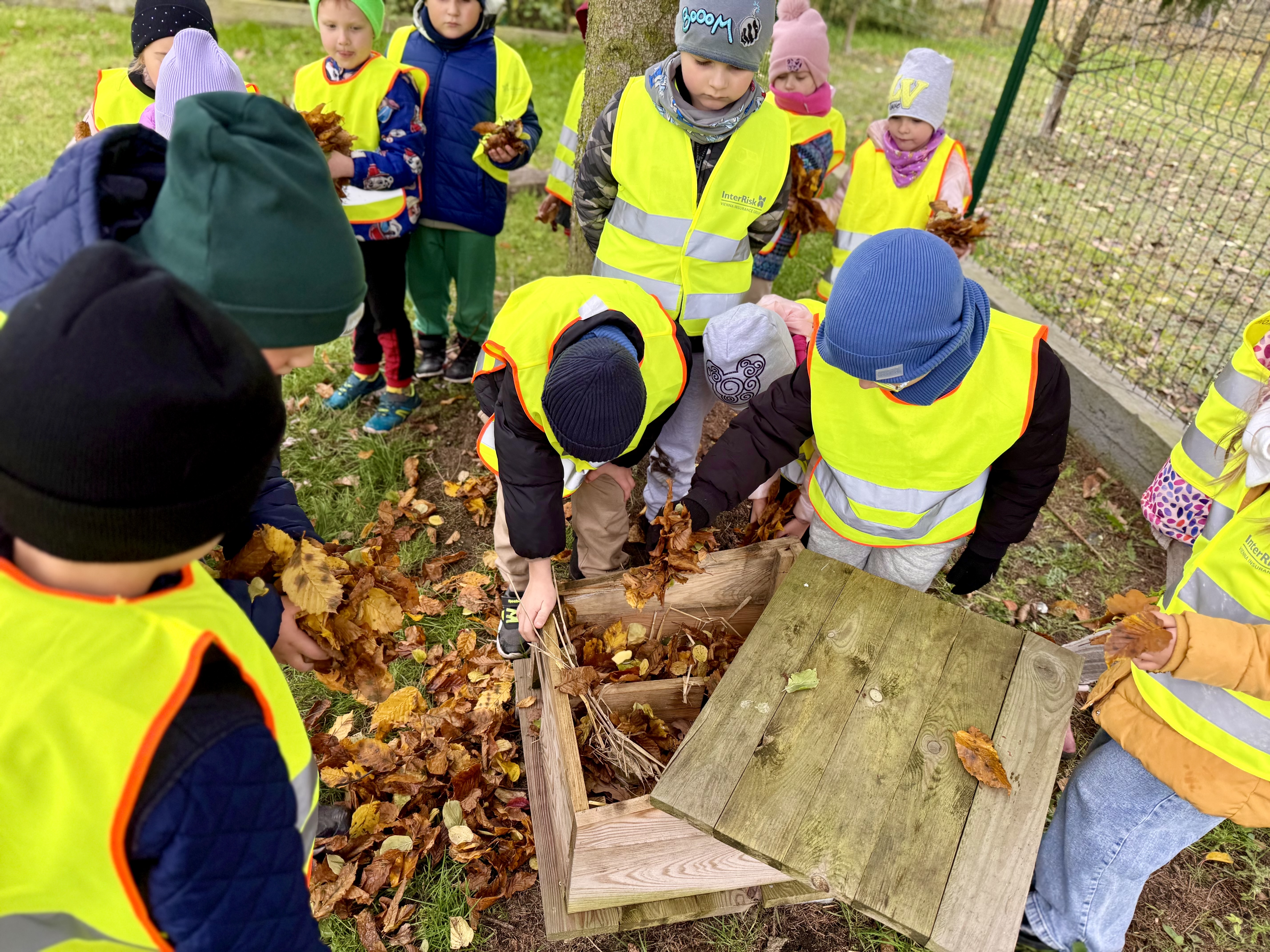 Kiedy liście zaczynają tańczyć na wietrze, a poranki stają się coraz chłodniejsze, wiemy, że nie tylko my szykujemy się na zimę. W przedszkolnym ogródku swoje miejsce do odpoczynku znaleźć mogą także… jeże! W ubiegłym roku otrzymaliśmy od Nadleśnictwa Dąbrowa domek w ramach akcji „Dokąd nocą tupta jeż?”. W tym roku jednak nasza przedszkolna „jeżowa osada” rozrosła się! Dzięki zaangażowaniu rodziców z grupy „Koliberki” dołączyły do niej dwa nowe domki. Pod koniec października dzieci ze wszystkich grup wzięły udział w ich „moszczeniu”: stworzyły z suchych liści i sianka miękką i ciepłą ściółkę, w której jeże mogą spokojnie spędzić zimowy sen.