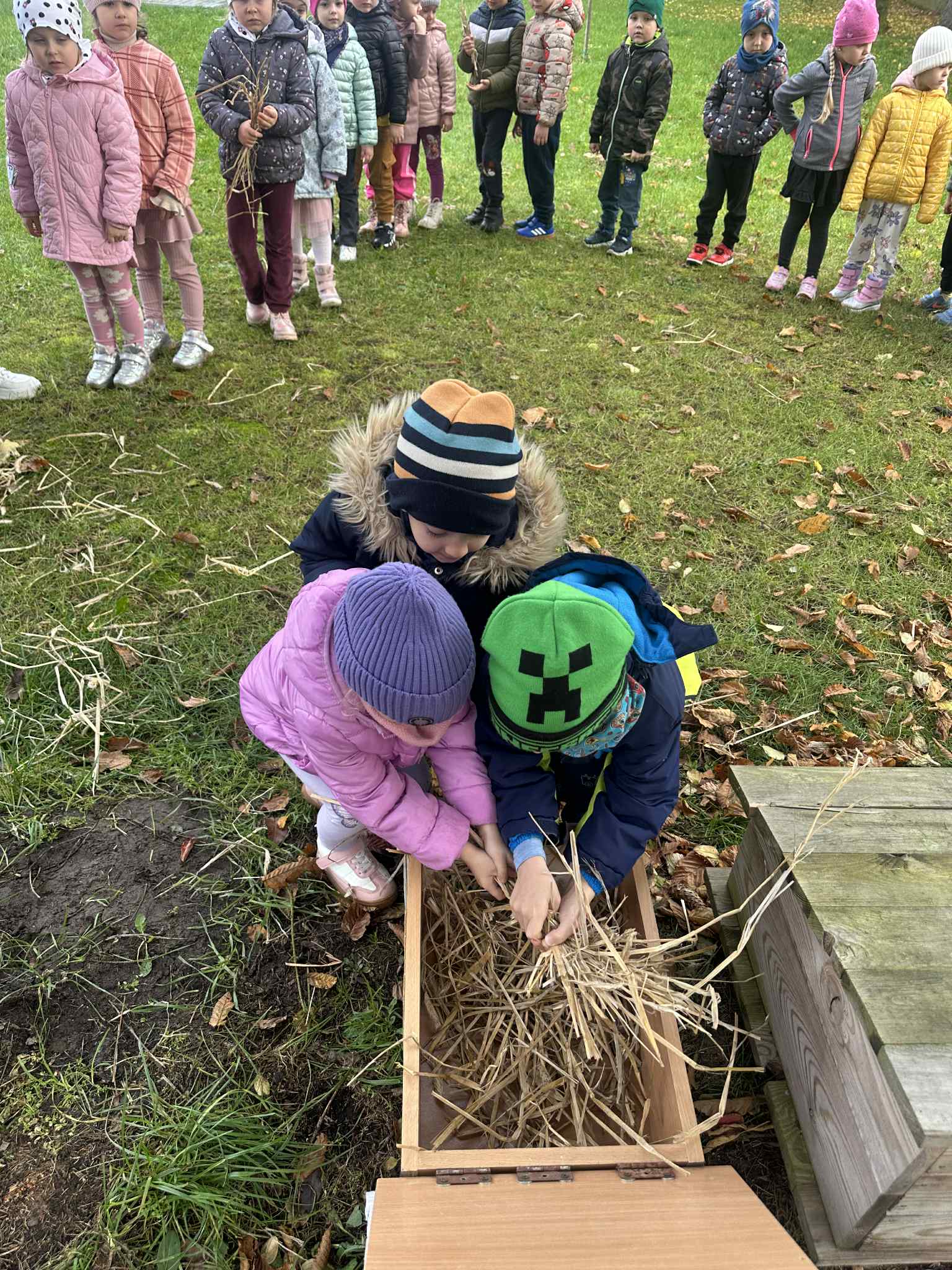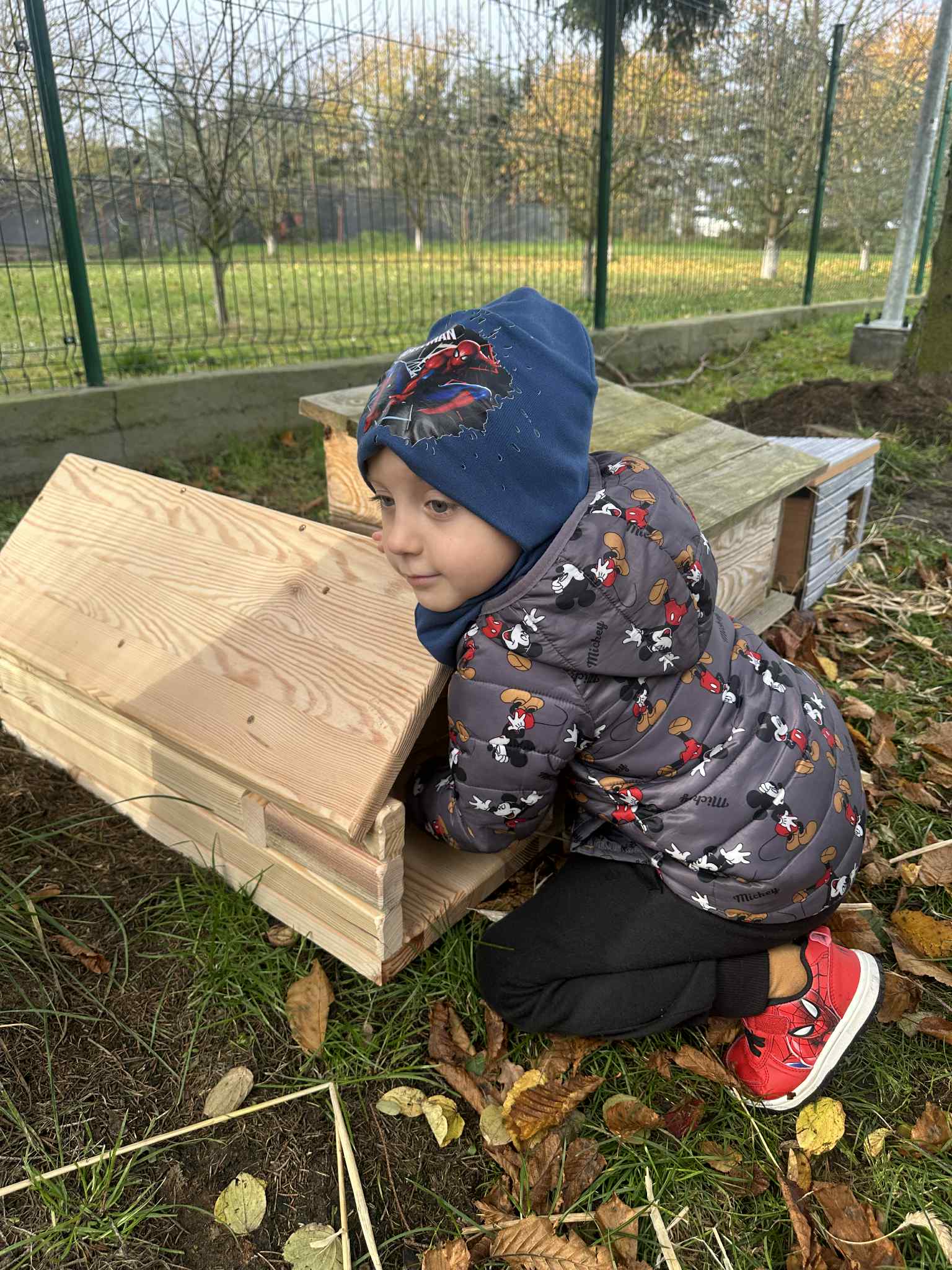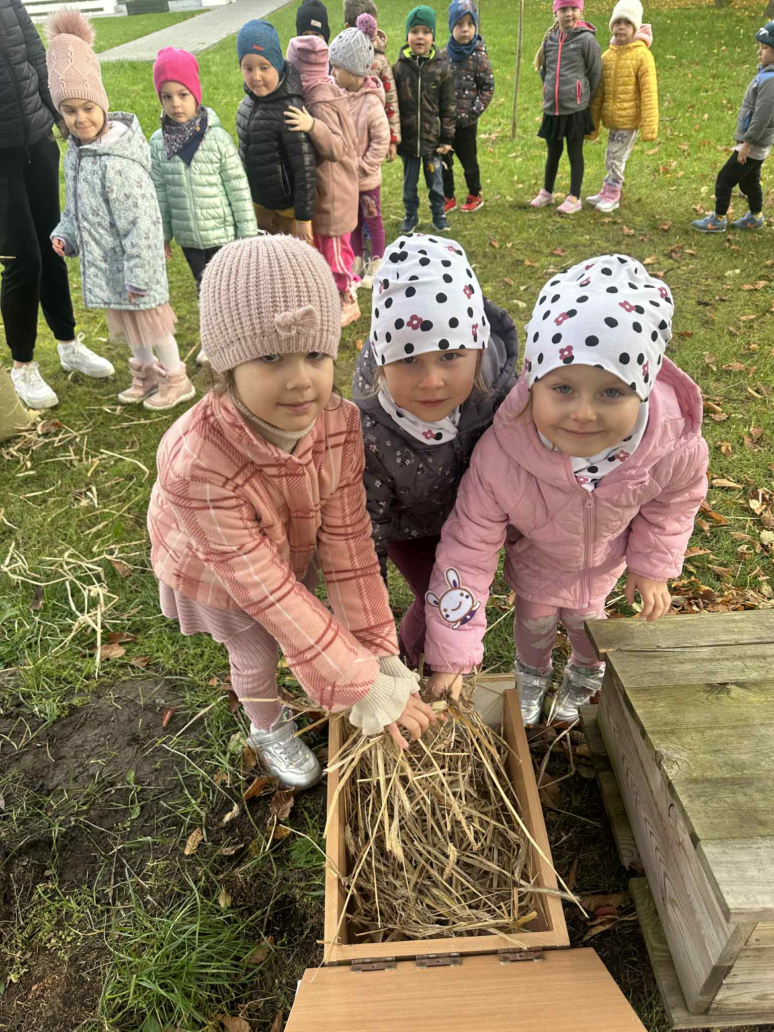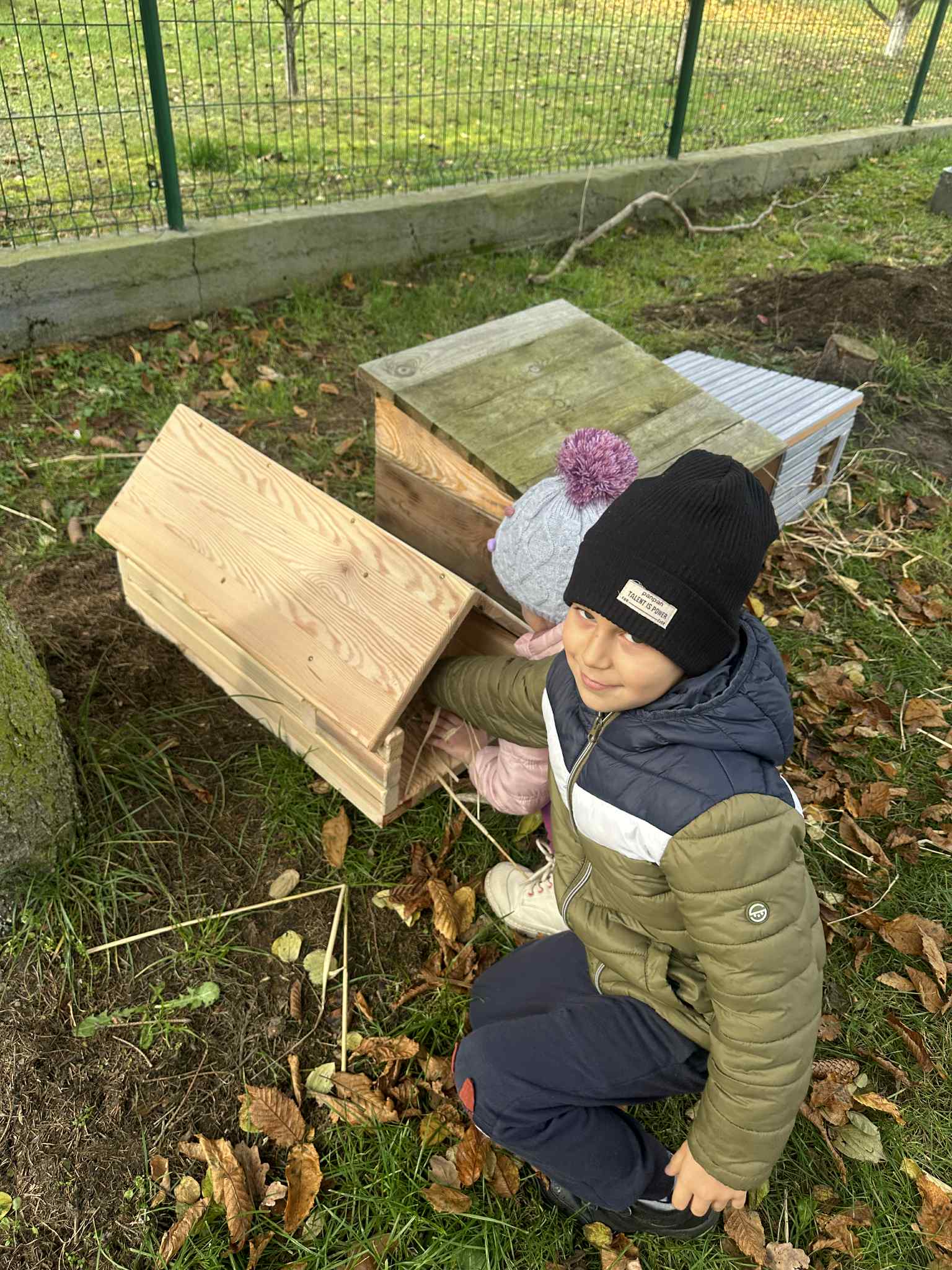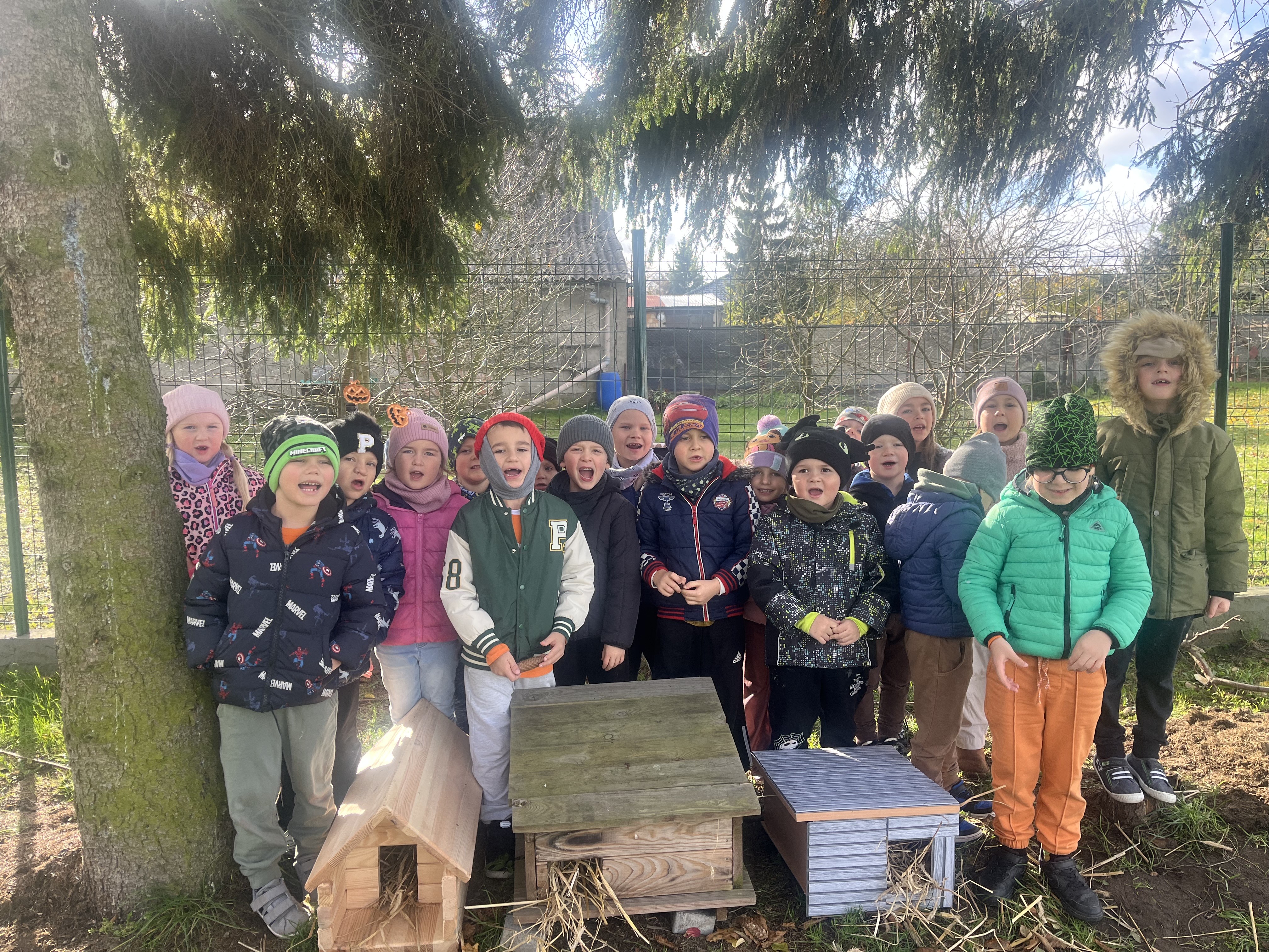 Kiedy liście zaczynają tańczyć na wietrze, a poranki stają się coraz chłodniejsze, wiemy, że nie tylko my szykujemy się na zimę. W przedszkolnym ogródku swoje miejsce do odpoczynku znaleźć mogą także… jeże! W ubiegłym roku otrzymaliśmy od Nadleśnictwa Dąbrowa domek w ramach akcji „Dokąd nocą tupta jeż?”. W tym roku jednak nasza przedszkolna „jeżowa osada” rozrosła się! Dzięki zaangażowaniu rodziców z grupy „Koliberki” dołączyły do niej dwa nowe domki. Pod koniec października dzieci ze wszystkich grup wzięły udział w ich „moszczeniu”: stworzyły z suchych liści i sianka miękką i ciepłą ściółkę, w której jeże mogą spokojnie spędzić zimowy sen.