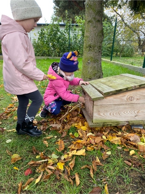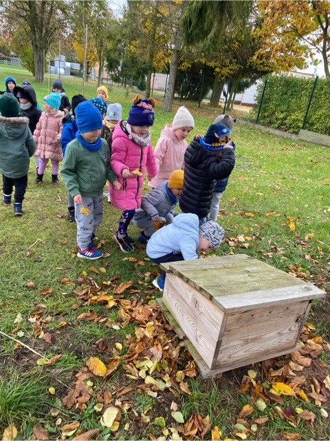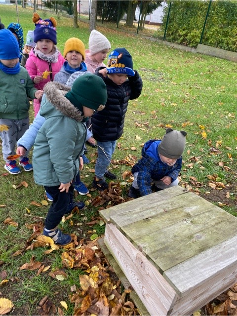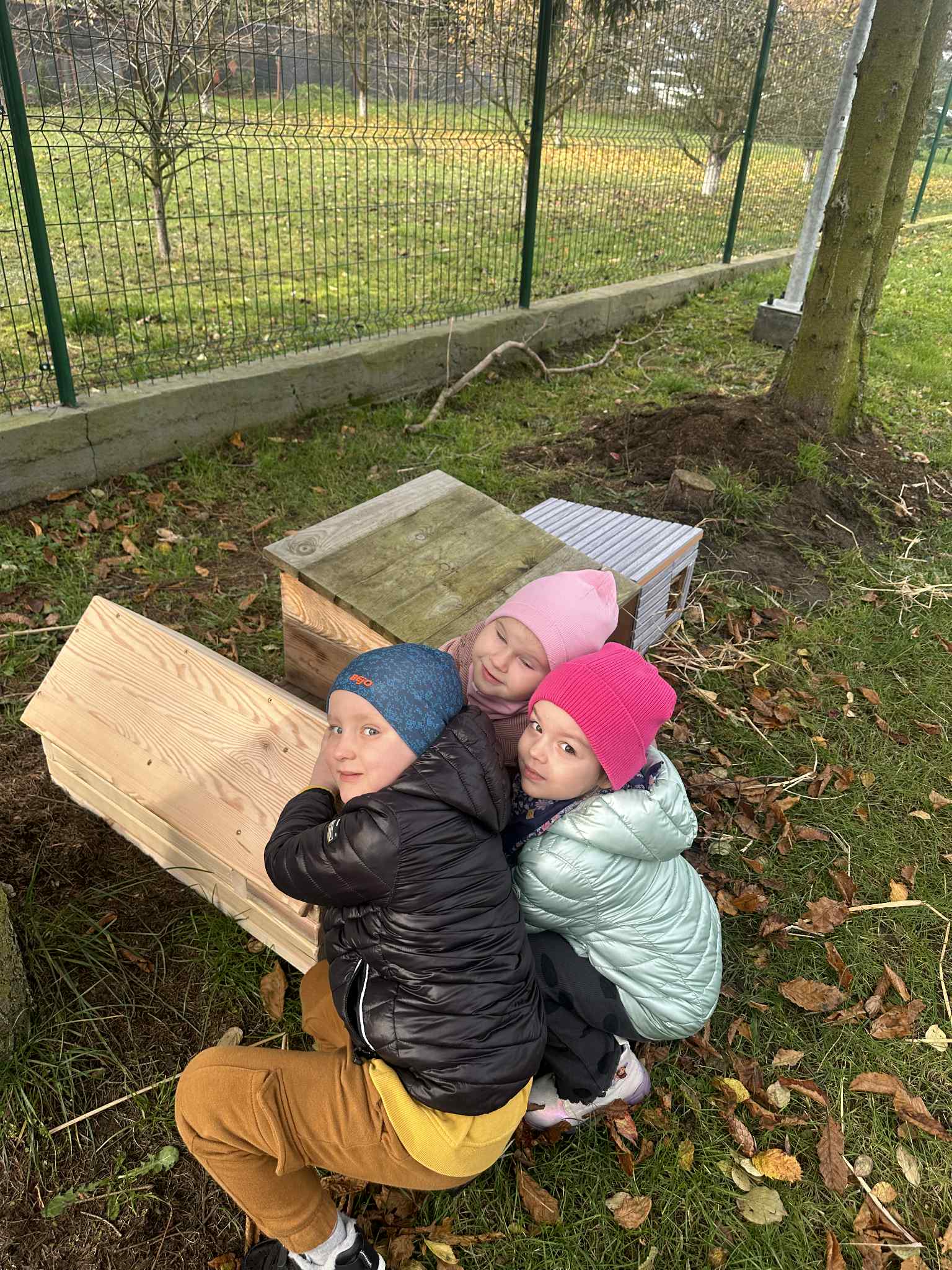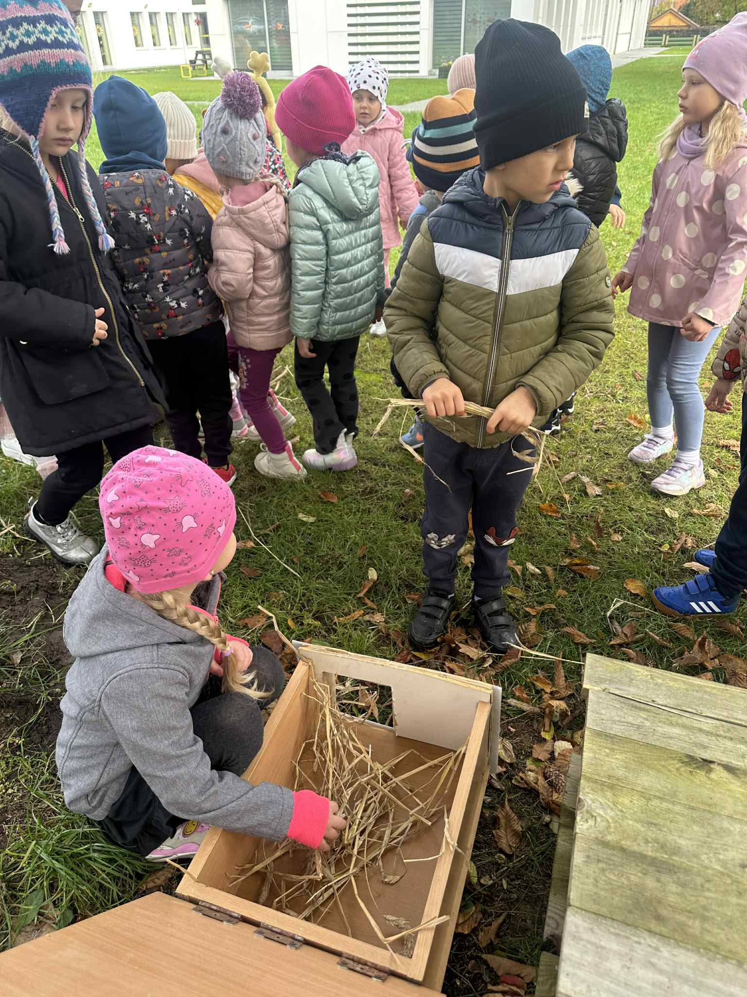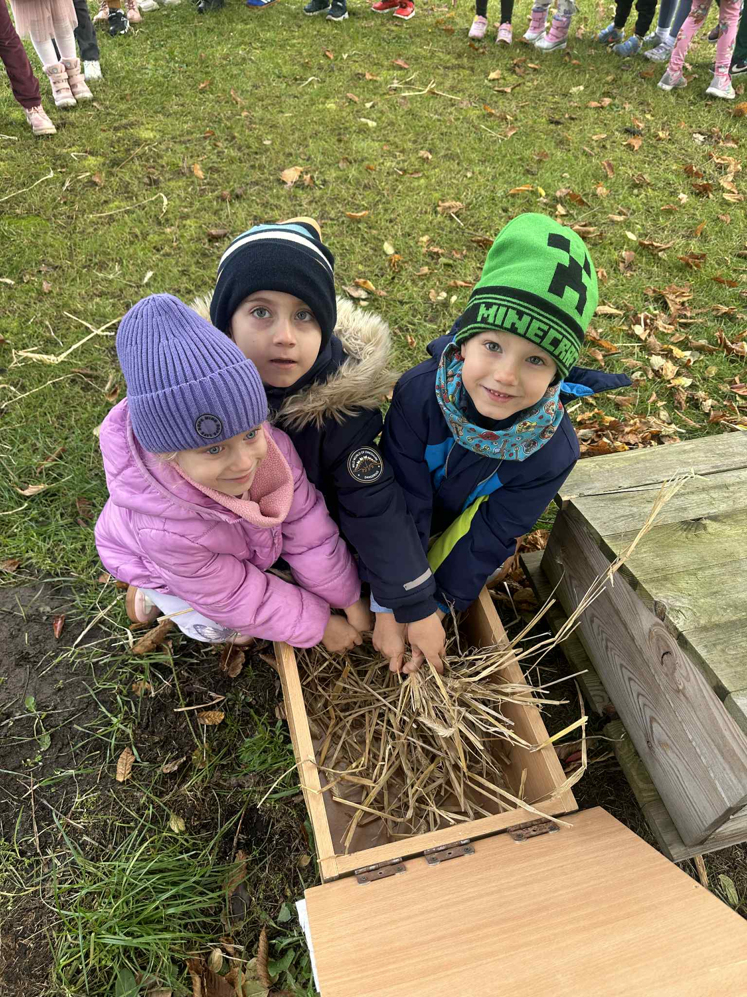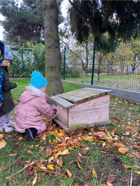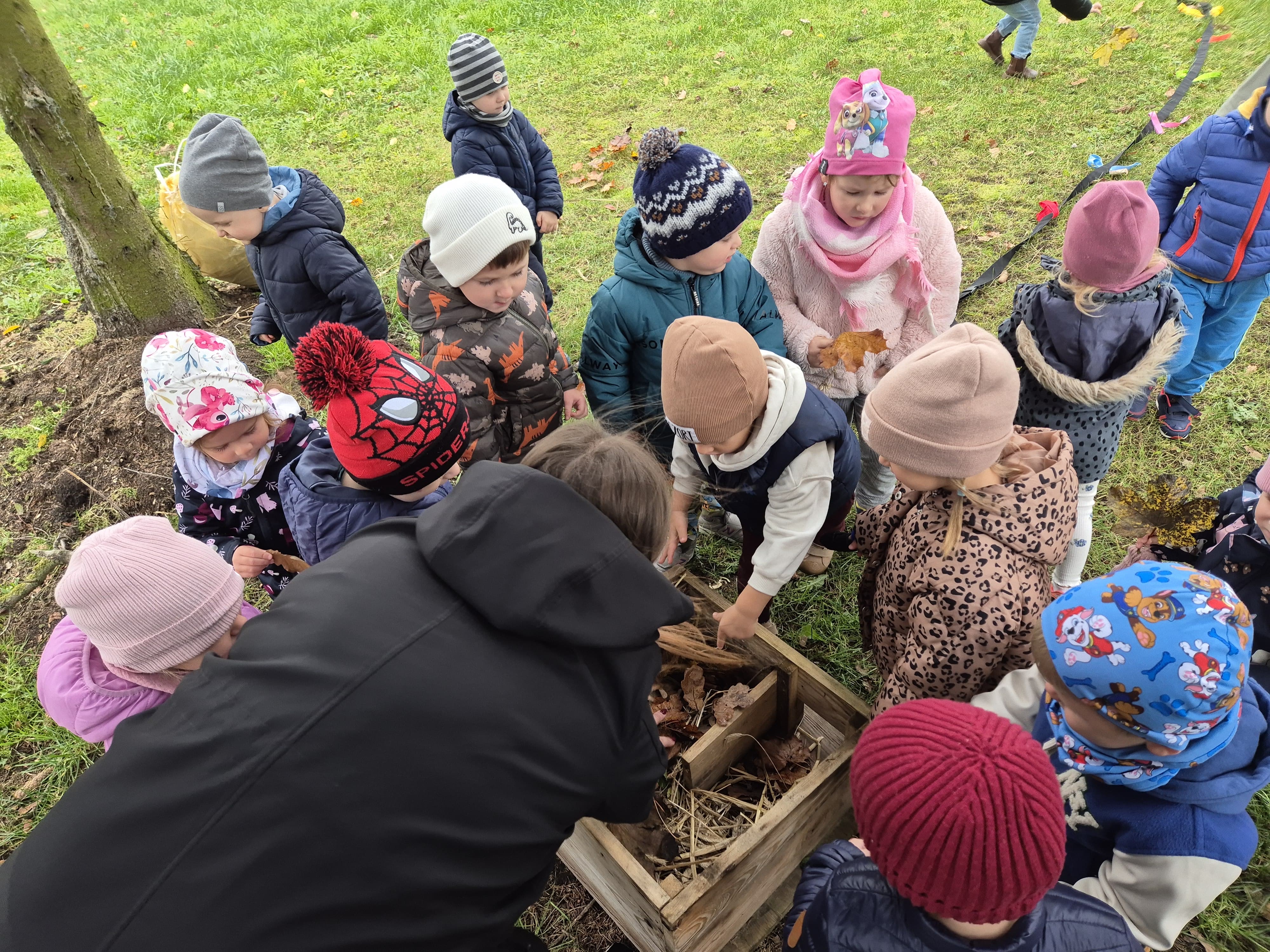 Kiedy liście zaczynają tańczyć na wietrze, a poranki stają się coraz chłodniejsze, wiemy, że nie tylko my szykujemy się na zimę. W przedszkolnym ogródku swoje miejsce do odpoczynku znaleźć mogą także… jeże! W ubiegłym roku otrzymaliśmy od Nadleśnictwa Dąbrowa domek w ramach akcji „Dokąd nocą tupta jeż?”. W tym roku jednak nasza przedszkolna „jeżowa osada” rozrosła się! Dzięki zaangażowaniu rodziców z grupy „Koliberki” dołączyły do niej dwa nowe domki. Pod koniec października dzieci ze wszystkich grup wzięły udział w ich „moszczeniu”: stworzyły z suchych liści i sianka miękką i ciepłą ściółkę, w której jeże mogą spokojnie spędzić zimowy sen.