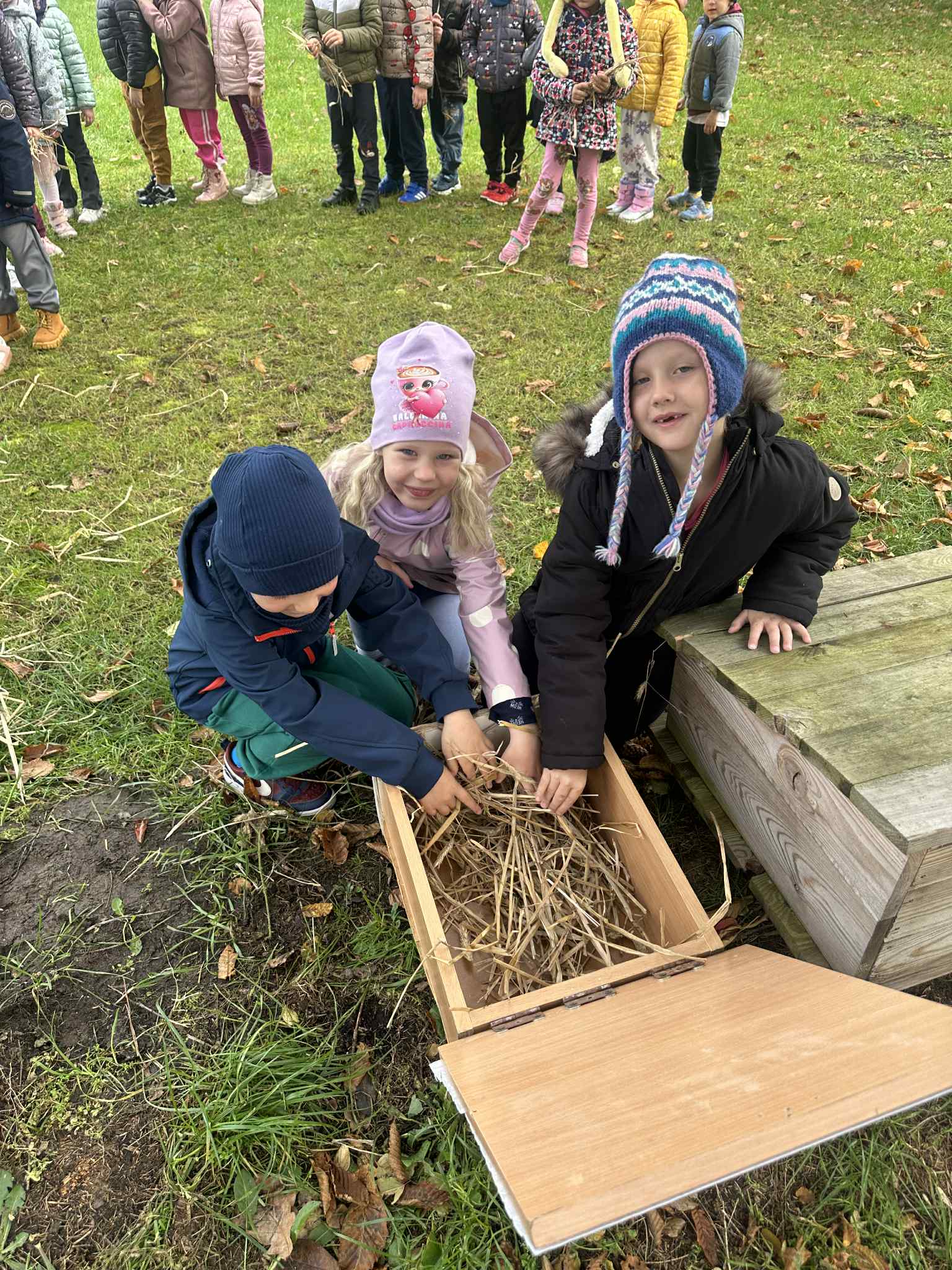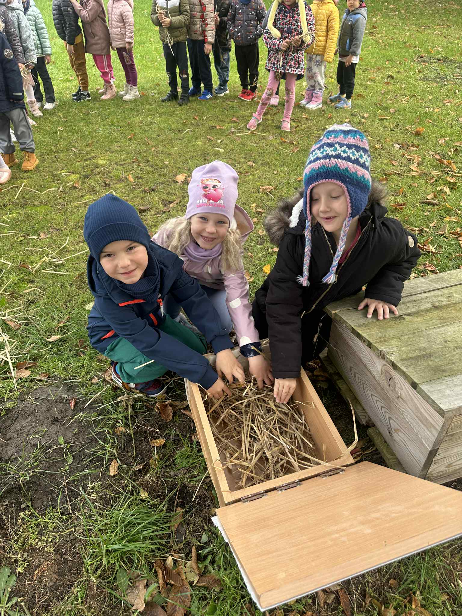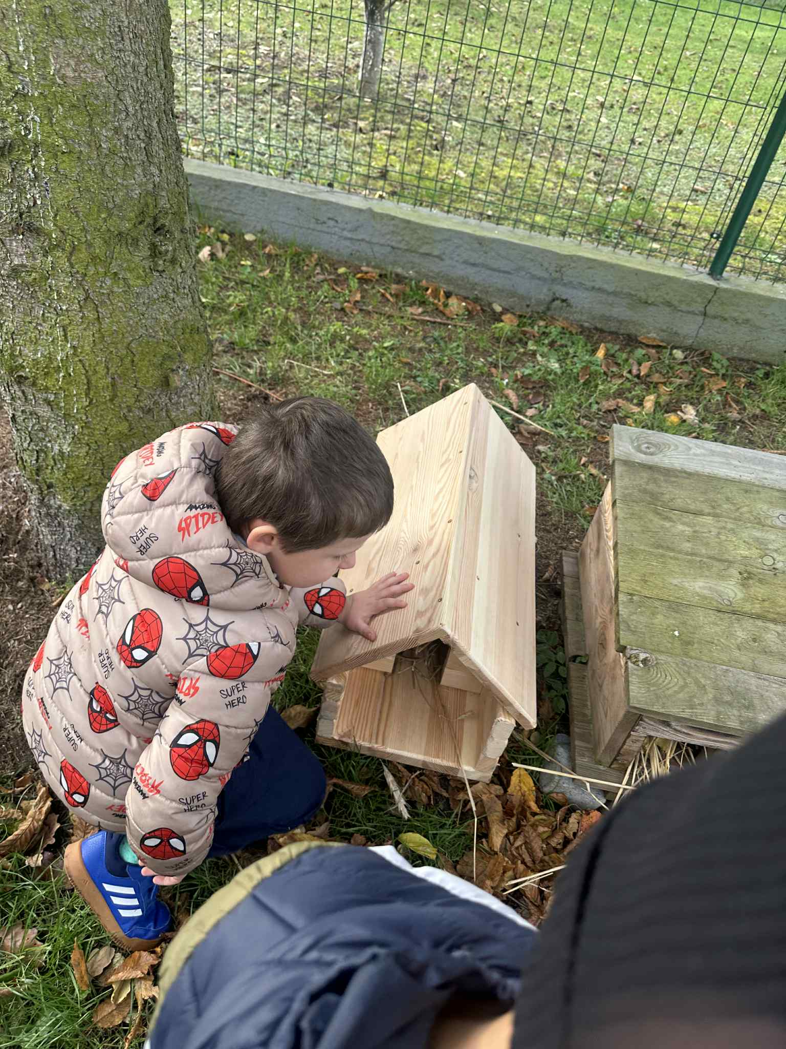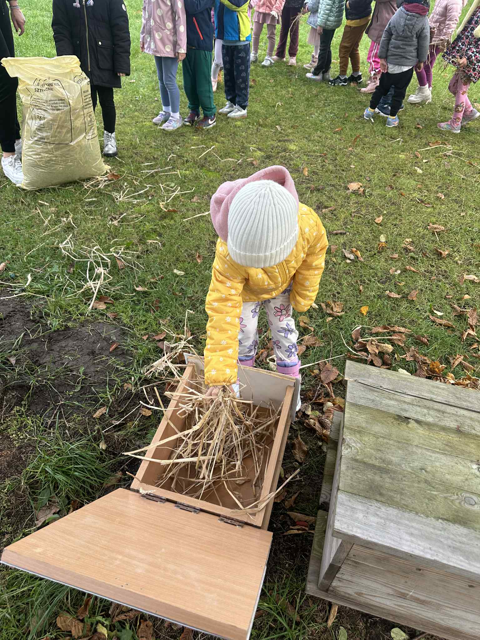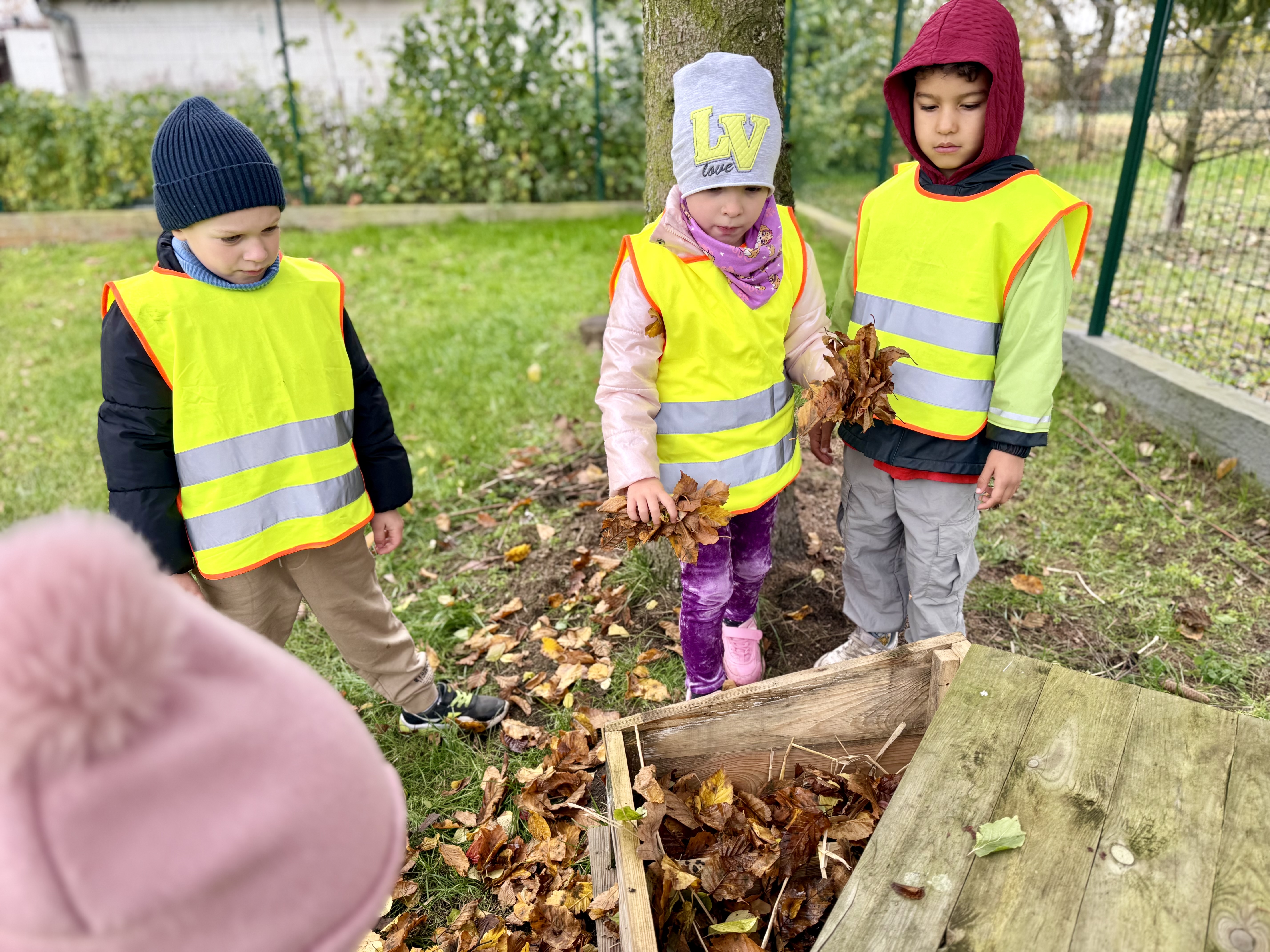 Kiedy liście zaczynają tańczyć na wietrze, a poranki stają się coraz chłodniejsze, wiemy, że nie tylko my szykujemy się na zimę. W przedszkolnym ogródku swoje miejsce do odpoczynku znaleźć mogą także… jeże! W ubiegłym roku otrzymaliśmy od Nadleśnictwa Dąbrowa domek w ramach akcji „Dokąd nocą tupta jeż?”. W tym roku jednak nasza przedszkolna „jeżowa osada” rozrosła się! Dzięki zaangażowaniu rodziców z grupy „Koliberki” dołączyły do niej dwa nowe domki. Pod koniec października dzieci ze wszystkich grup wzięły udział w ich „moszczeniu”: stworzyły z suchych liści i sianka miękką i ciepłą ściółkę, w której jeże mogą spokojnie spędzić zimowy sen.