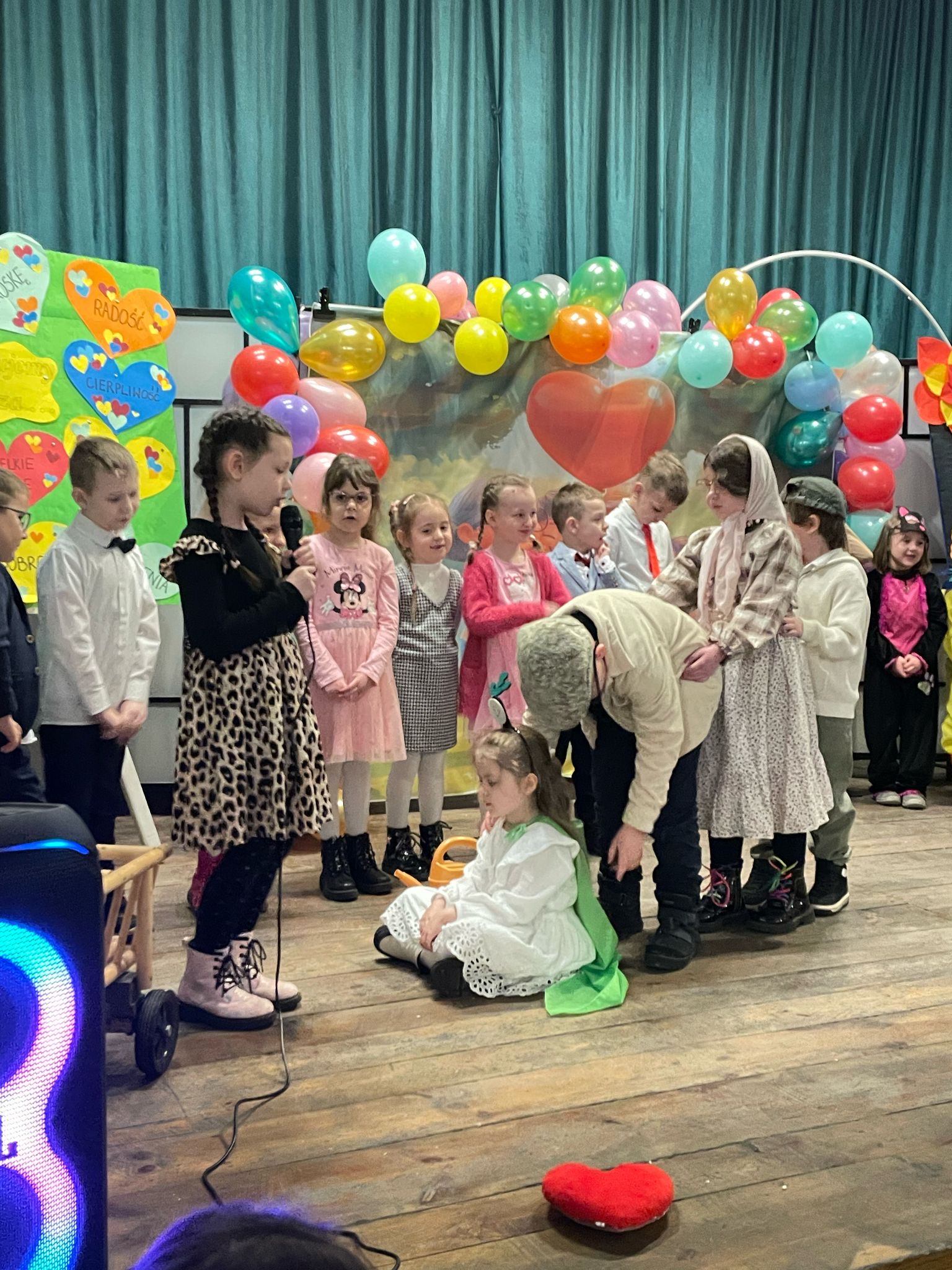 Dzieci zaprezentowały piękny program artystyczny, w którym nie zabrakło wzruszających wierszy, radosnych piosenek oraz energetycznego tańca. Punktem kulminacyjnym było pełne humoru przedstawienie pt. „Rzepka” Juliana Tuwima – klasyka literatury dziecięcej – które rozbawiło publiczność i wywołało mnóstwo uśmiechów na twarzach naszych gości. Na zakończenie mali artyści wręczyli swoim ukochanym babciom i dziadkom własnoręcznie przygotowane upominki, dziękując im za miłość, troskę i wspólne chwile.