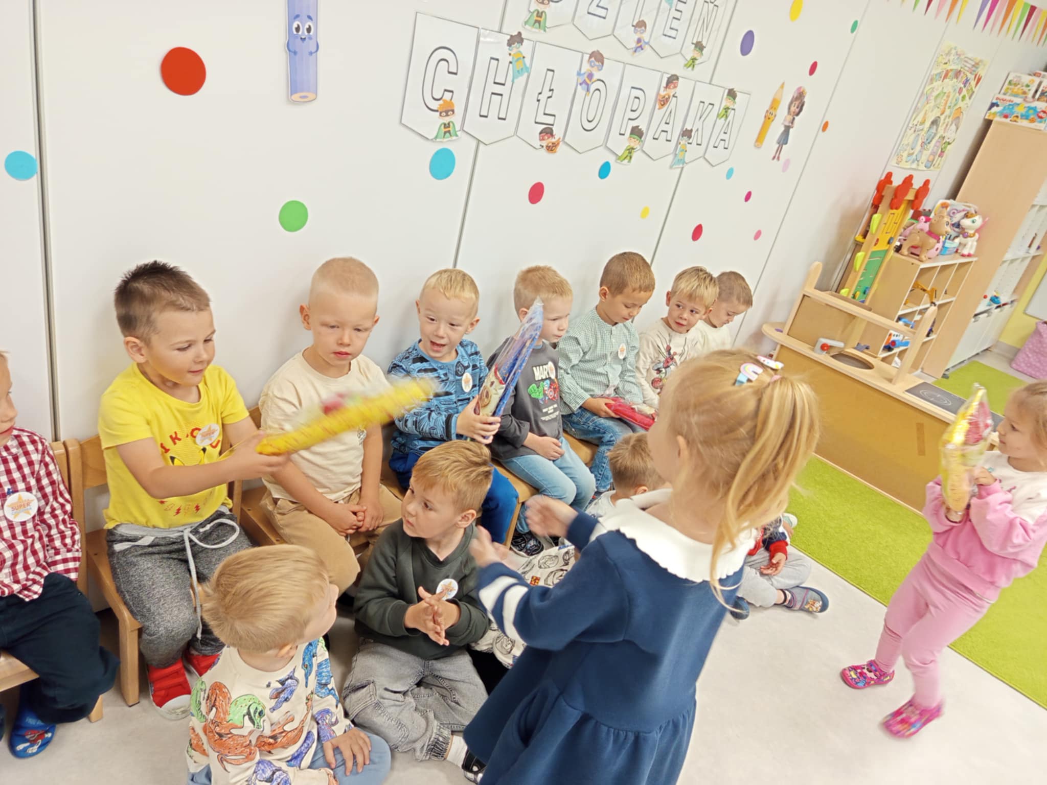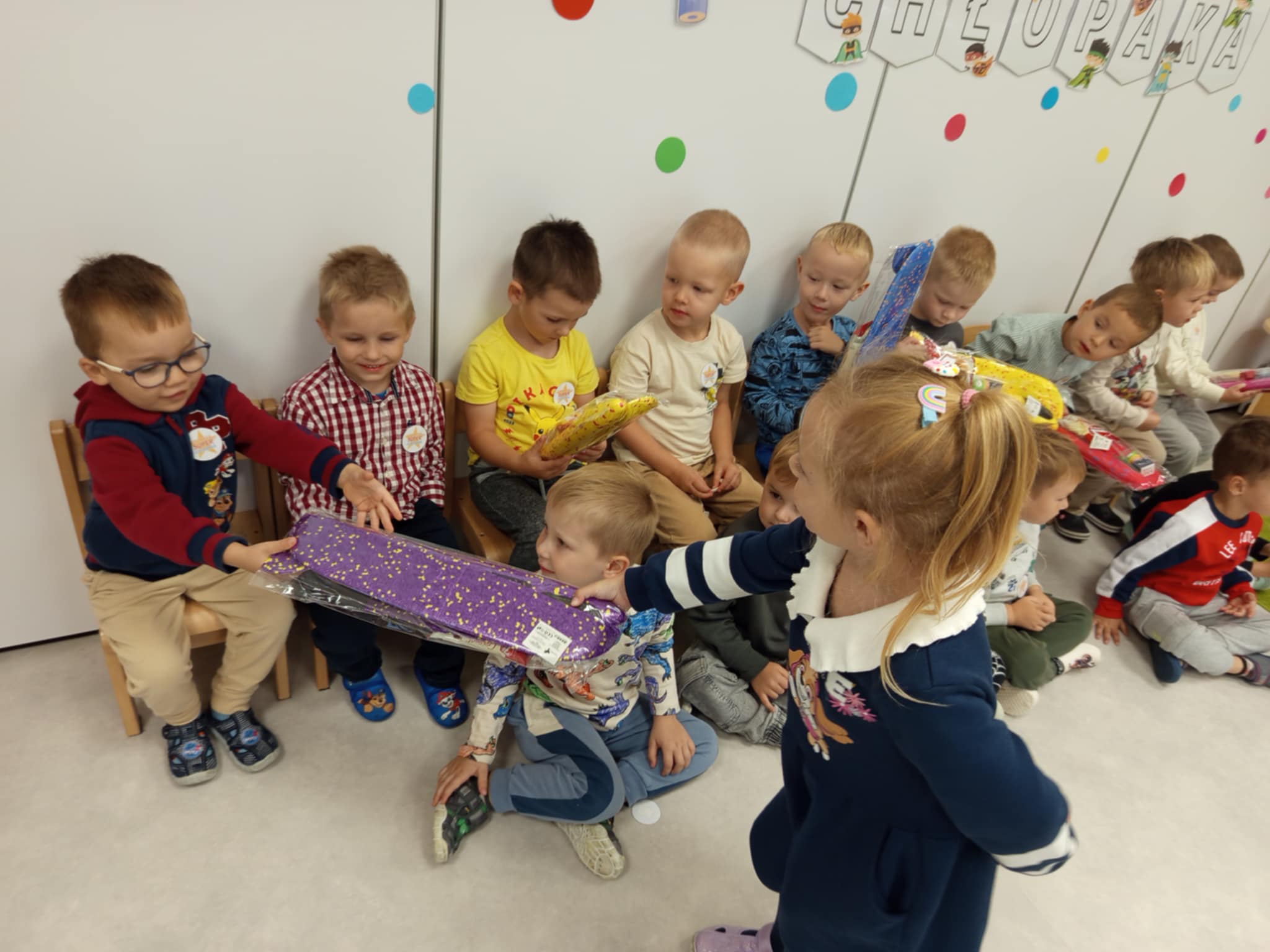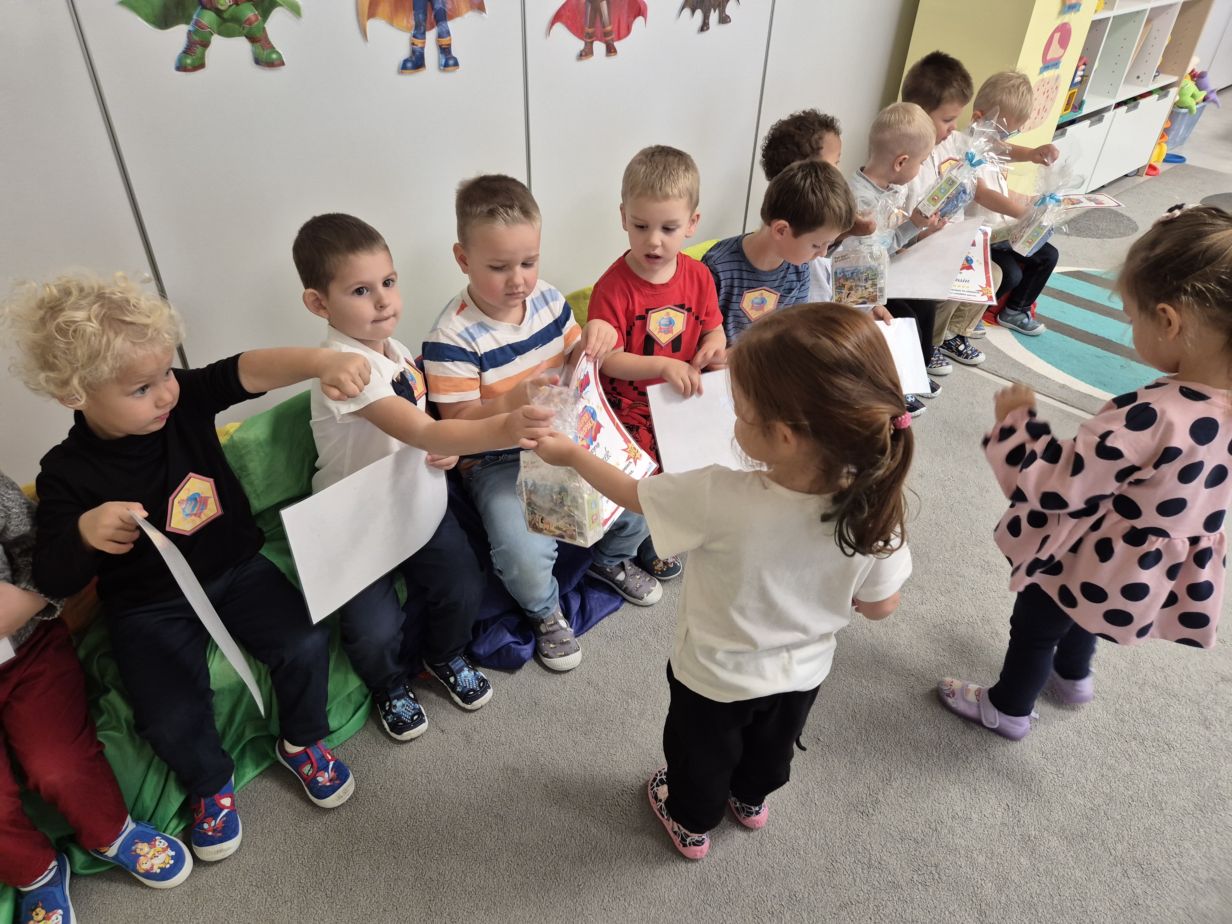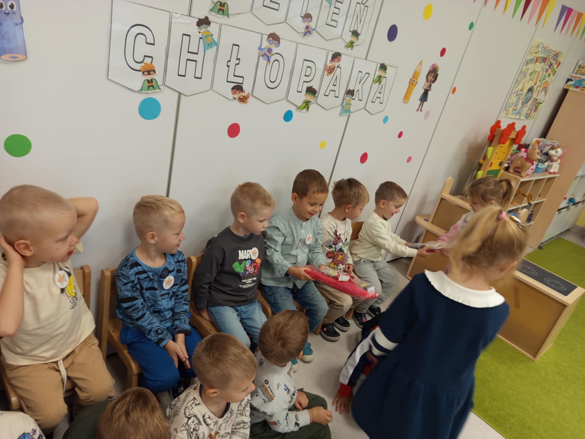 30 września w naszym przedszkolu obchodziliśmy Dzień Chłopaka. Tego dnia dziewczynki przygotowały dla swoich kolegów wyjątkowe niespodzianki — były piosenki, życzenia i mnóstwo serdeczności. Każdy chłopiec otrzymał również drobny upominek, który wywołał szerokie uśmiechy na twarzach. W salach panowała radosna atmosfera, pełna śmiechu i dobrej zabawy. To był naprawdę udany dzień, który na długo pozostanie w pamięci naszych przedszkolaków!