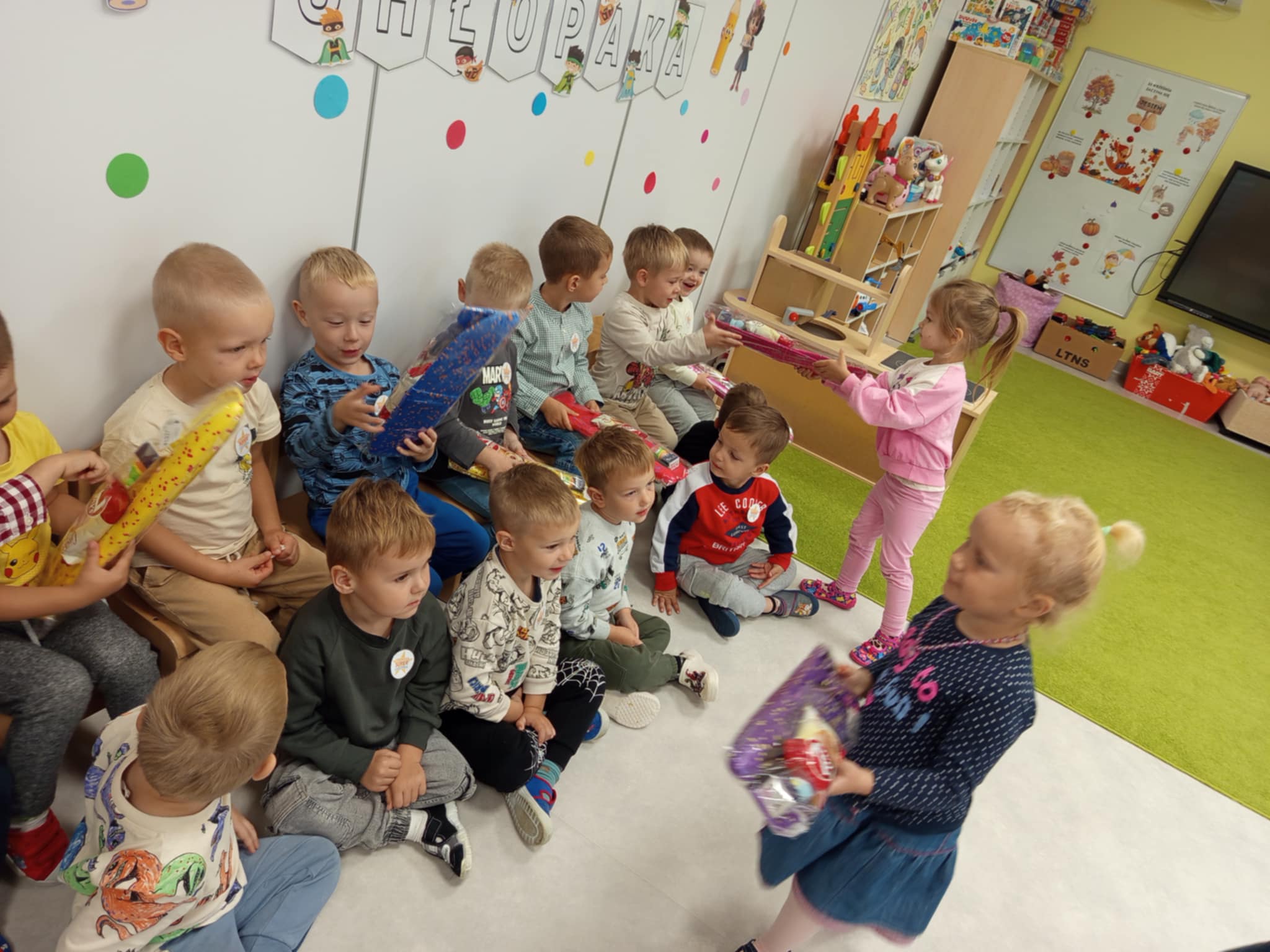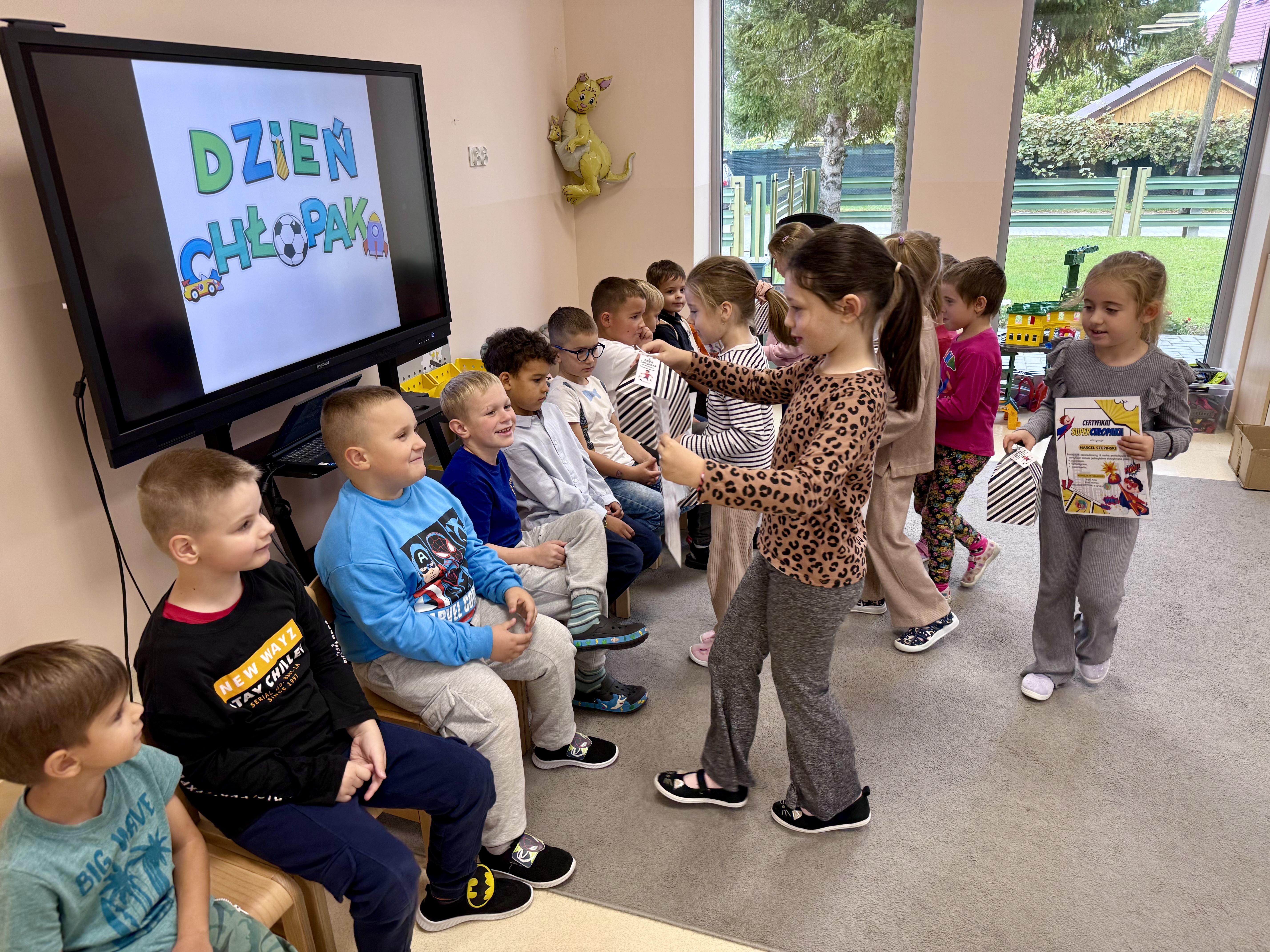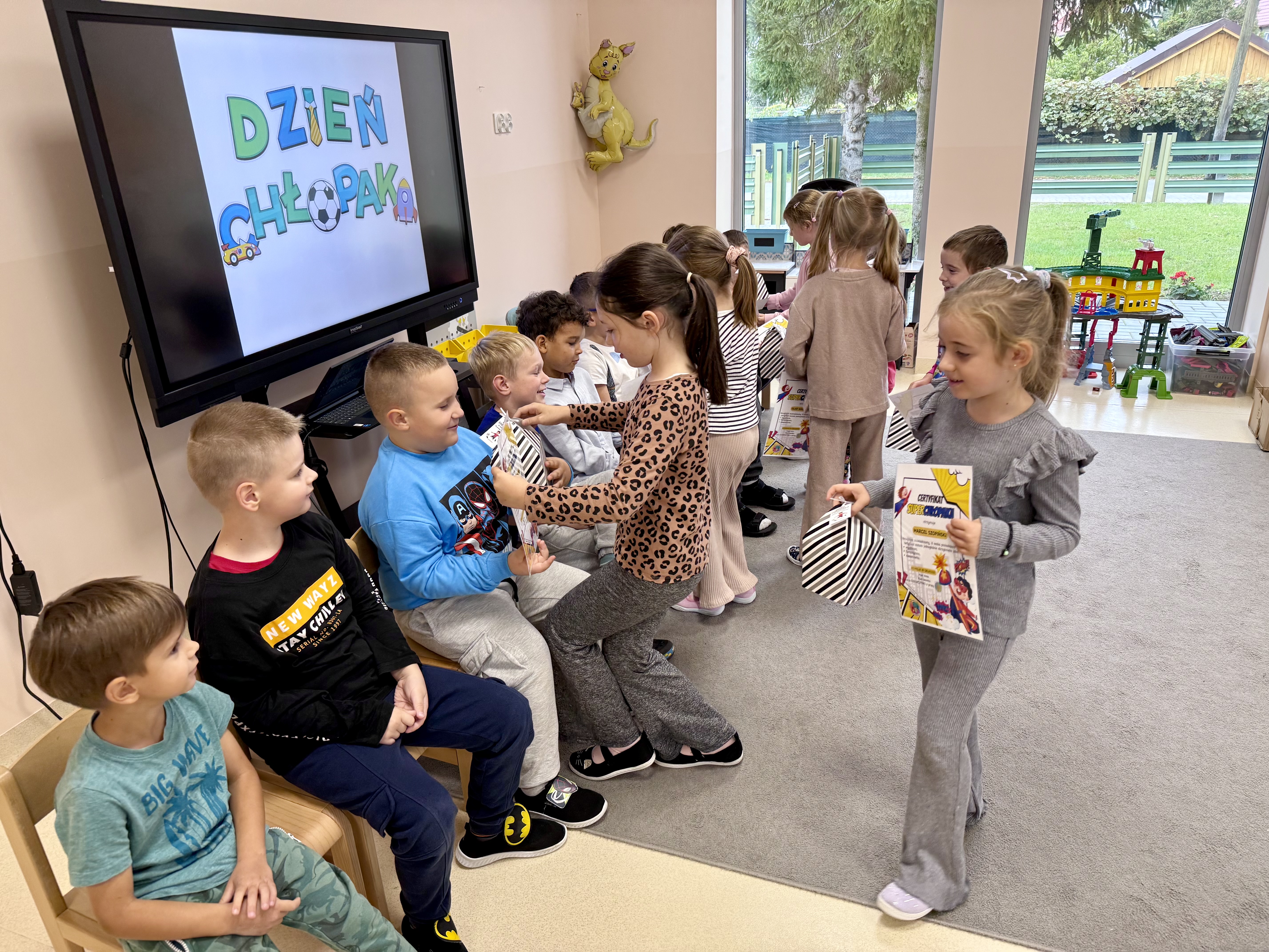30 września w naszym przedszkolu obchodziliśmy Dzień Chłopaka. Tego dnia dziewczynki przygotowały dla swoich kolegów wyjątkowe niespodzianki — były piosenki, życzenia i mnóstwo serdeczności. Każdy chłopiec otrzymał również drobny upominek, który wywołał szerokie uśmiechy na twarzach. W salach panowała radosna atmosfera, pełna śmiechu i dobrej zabawy. To był naprawdę udany dzień, który na długo pozostanie w pamięci naszych przedszkolaków!