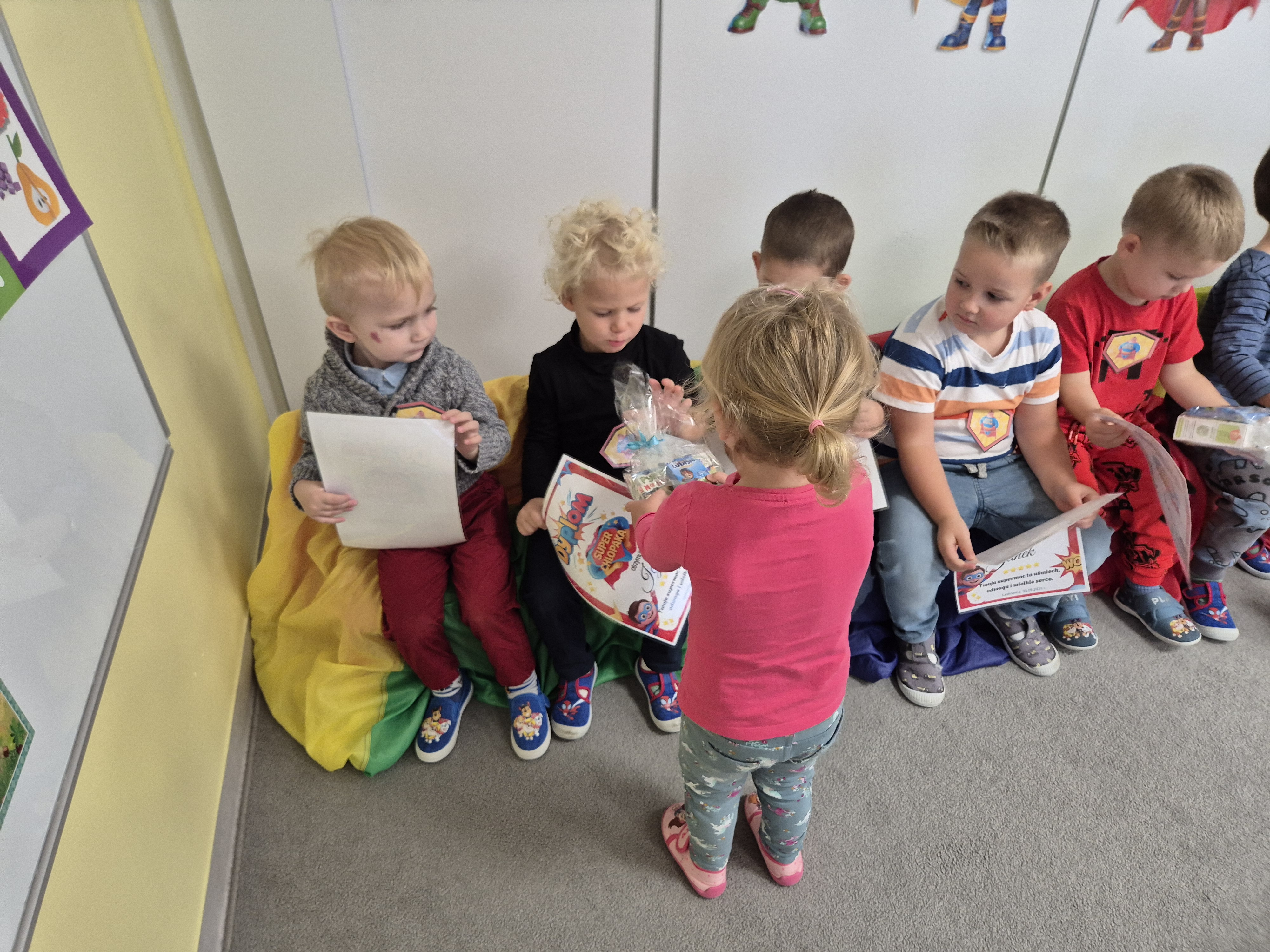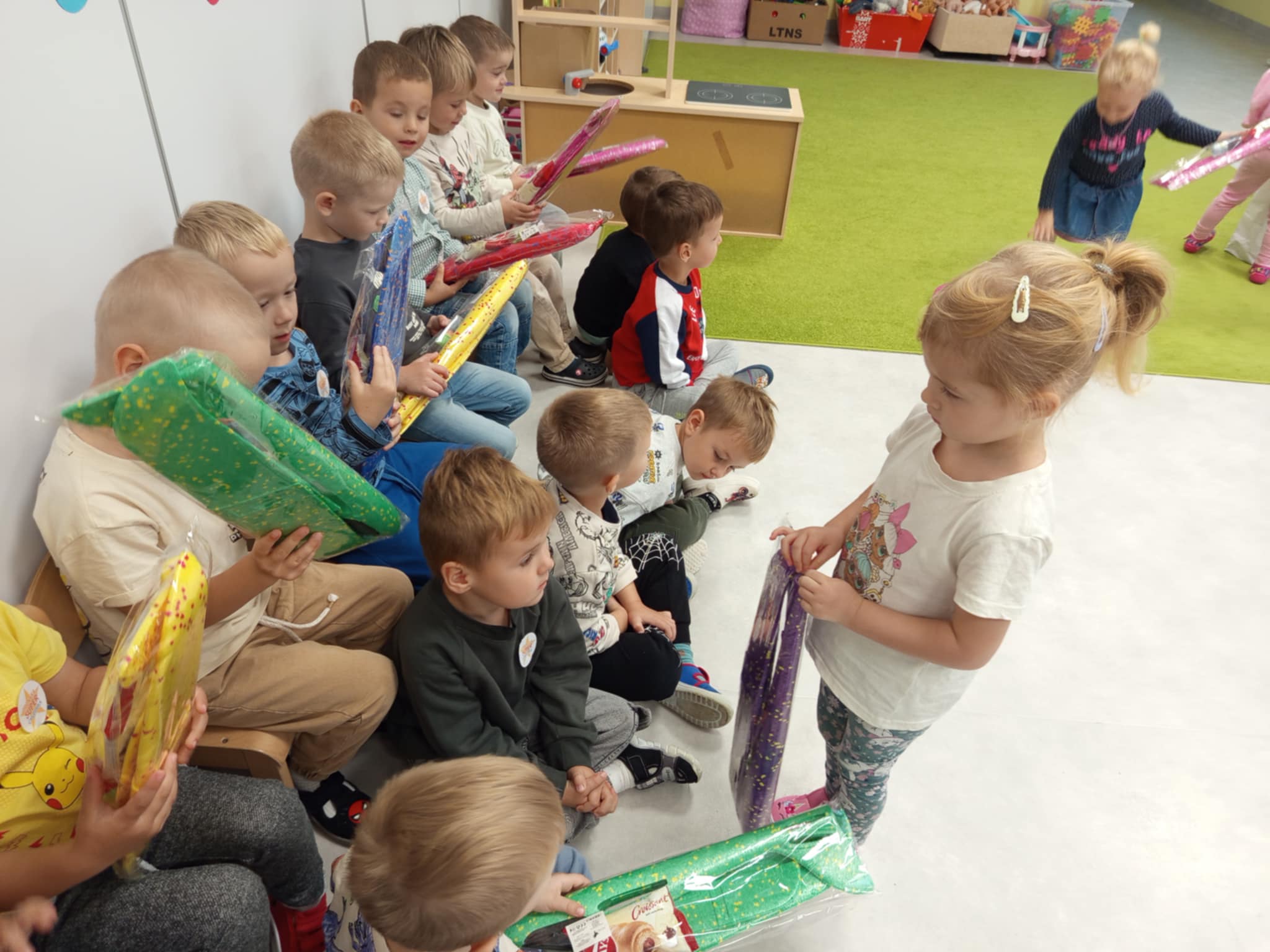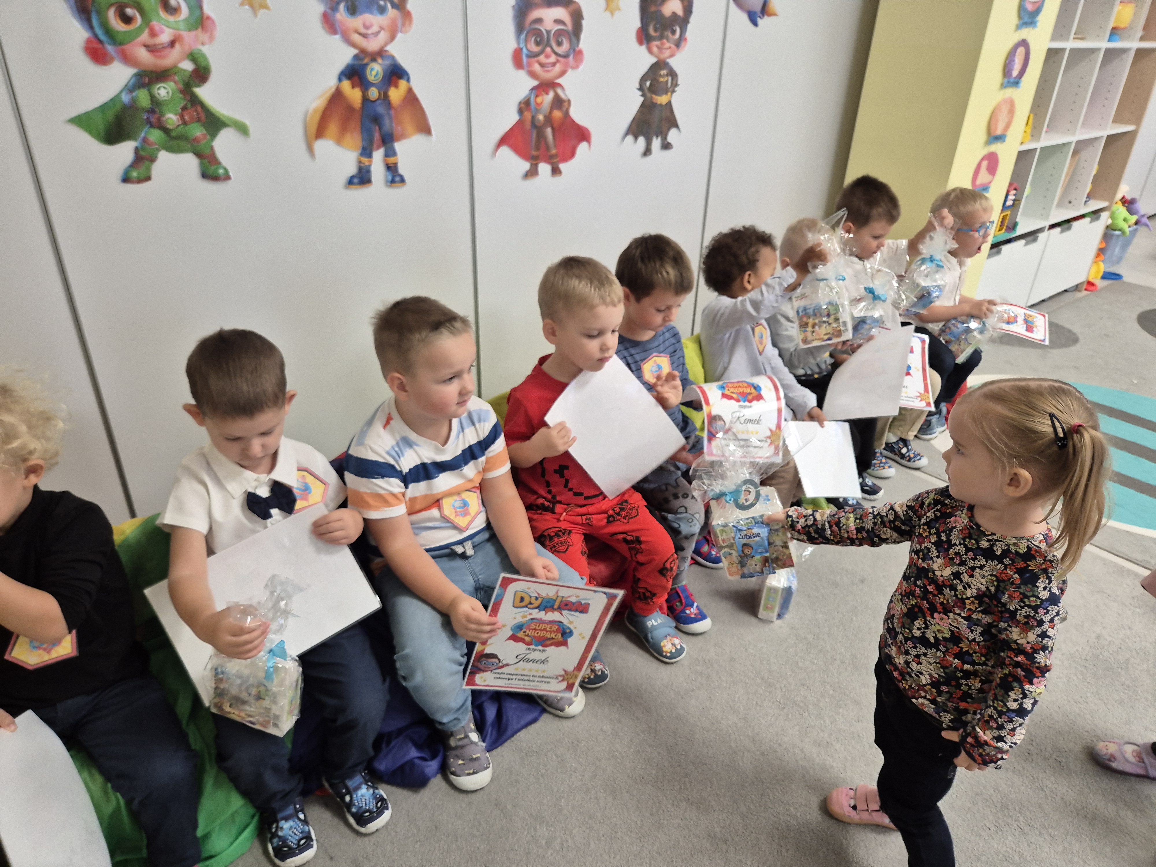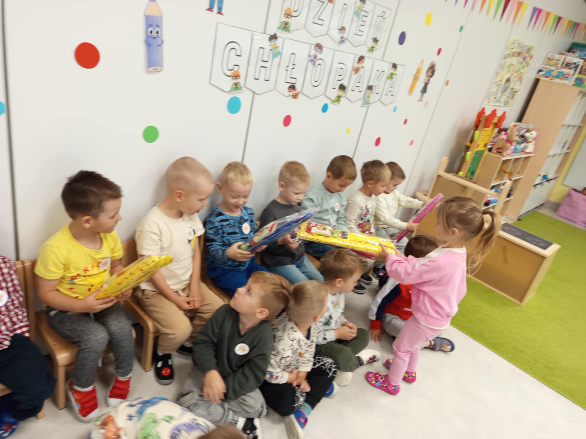 30 września w naszym przedszkolu obchodziliśmy Dzień Chłopaka. Tego dnia dziewczynki przygotowały dla swoich kolegów wyjątkowe niespodzianki — były piosenki, życzenia i mnóstwo serdeczności. Każdy chłopiec otrzymał również drobny upominek, który wywołał szerokie uśmiechy na twarzach. W salach panowała radosna atmosfera, pełna śmiechu i dobrej zabawy. To był naprawdę udany dzień, który na długo pozostanie w pamięci naszych przedszkolaków!