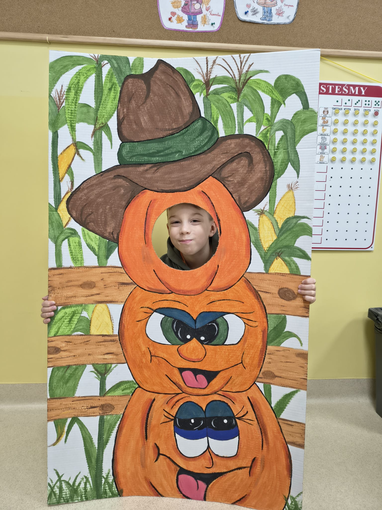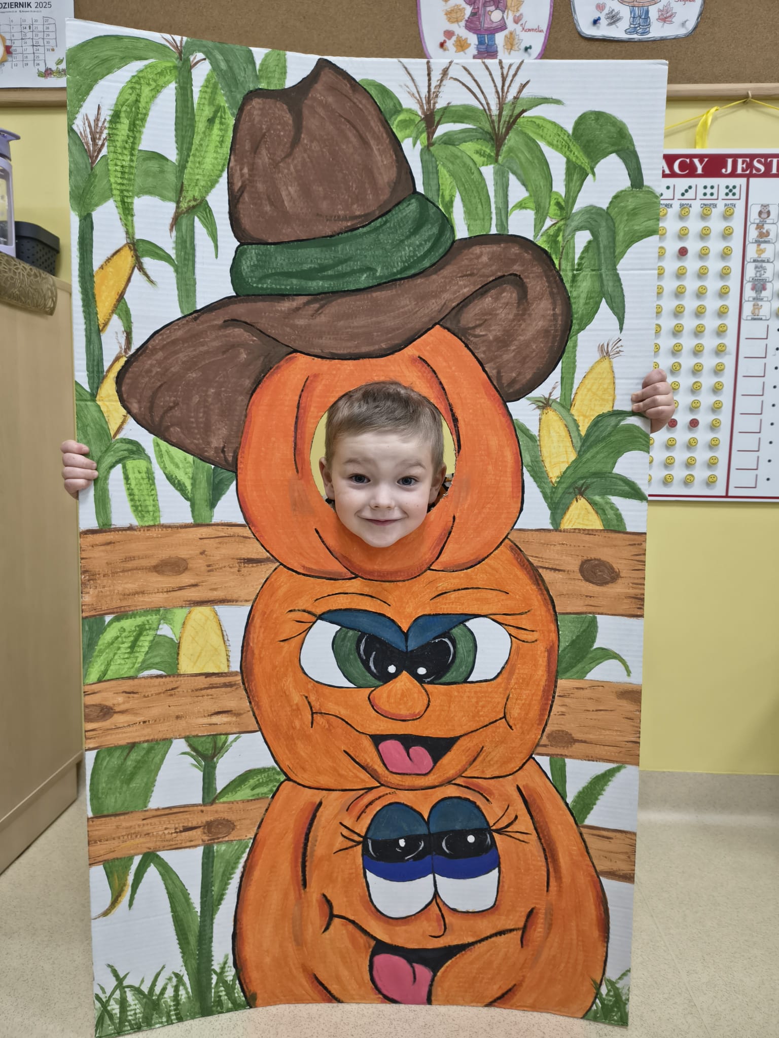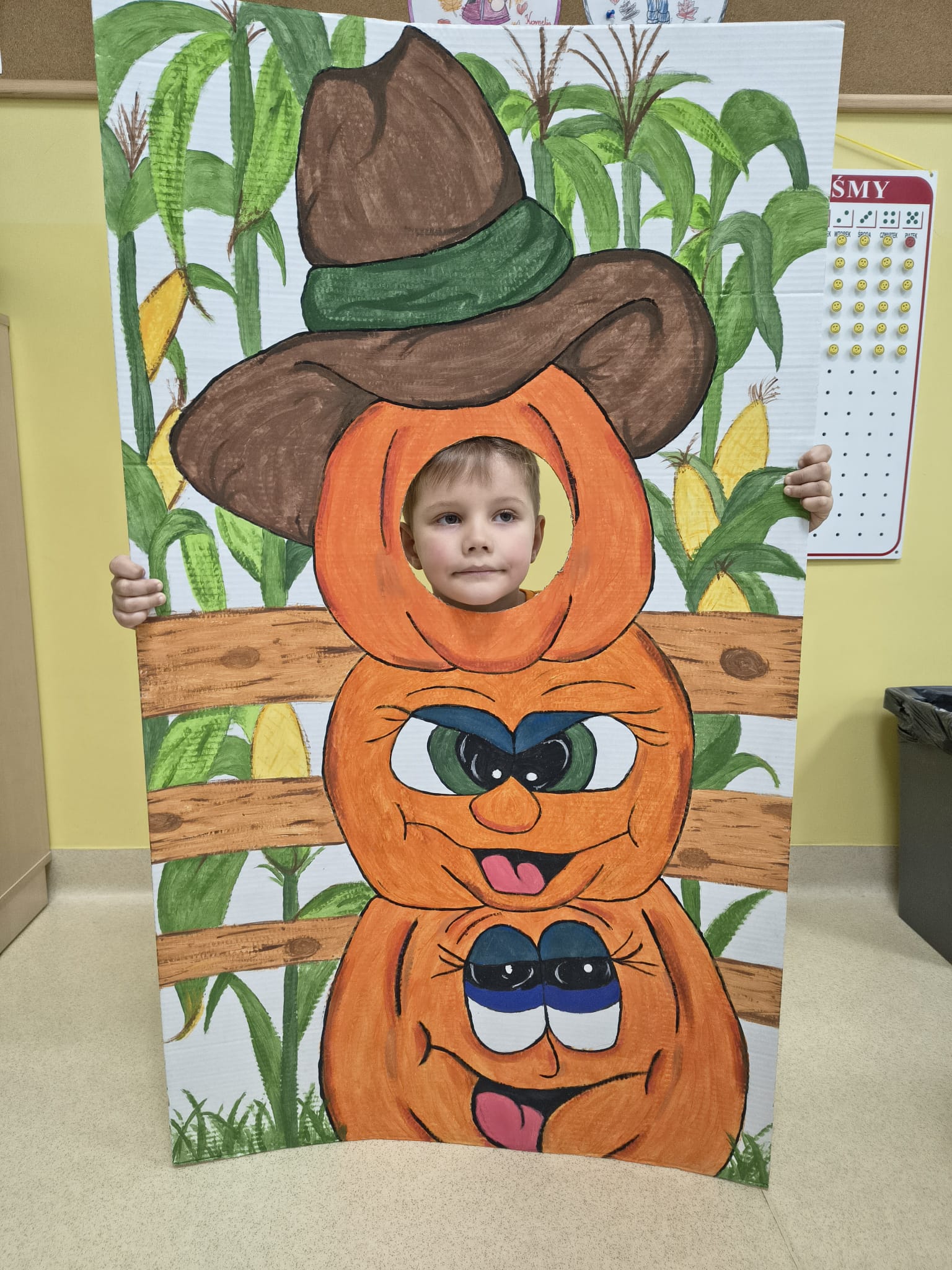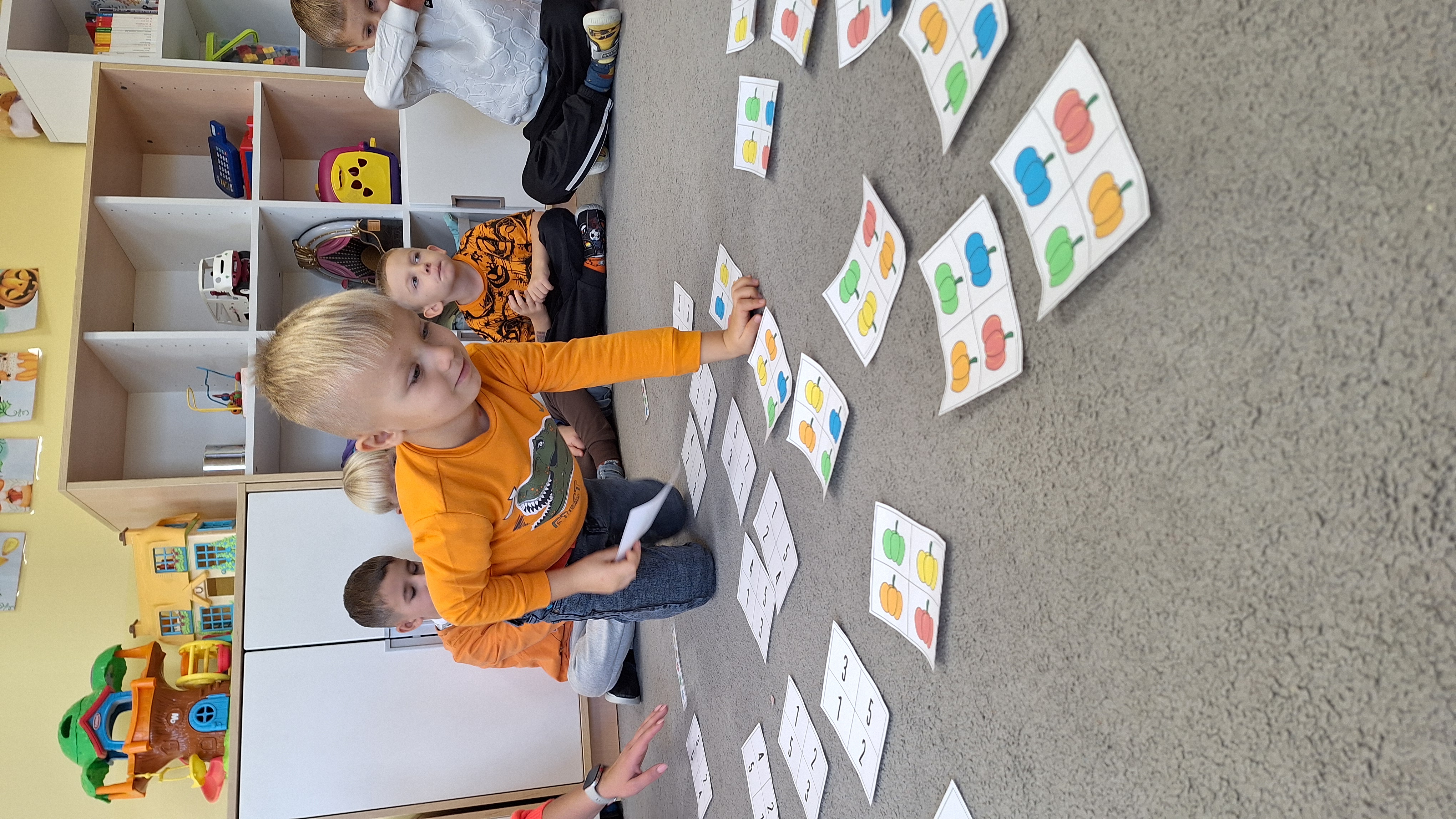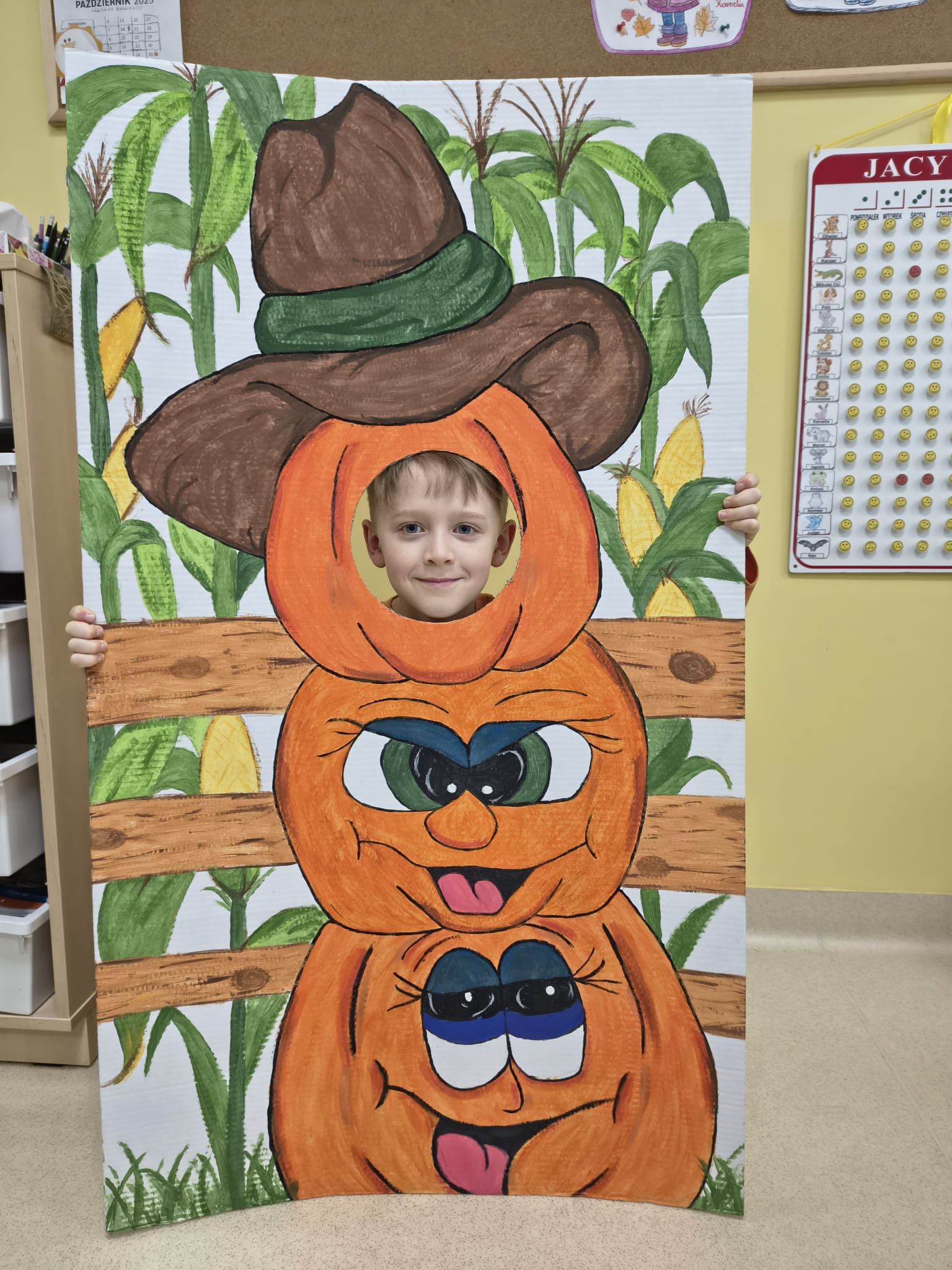 Dnia 31.10.2025 w grupie Żyrafy obchodziliśmy Dzień dyni. Dzieci ubrane na pomarańczowo porównywały wielkości, ciężar, a także układały je w przestrzeni(nad, pod obok). Miały również świetną zabawę przy tworzeniu własnych dyni z masy solnej. Zabawa do piosenki ,, Podaj dynie” sprawiła dzieciom wiele radości i śmiechu. Nie mogliśmy się zatrzymać, na koniec utrwalaliśmy kolory i cyfry podczas kodowania.