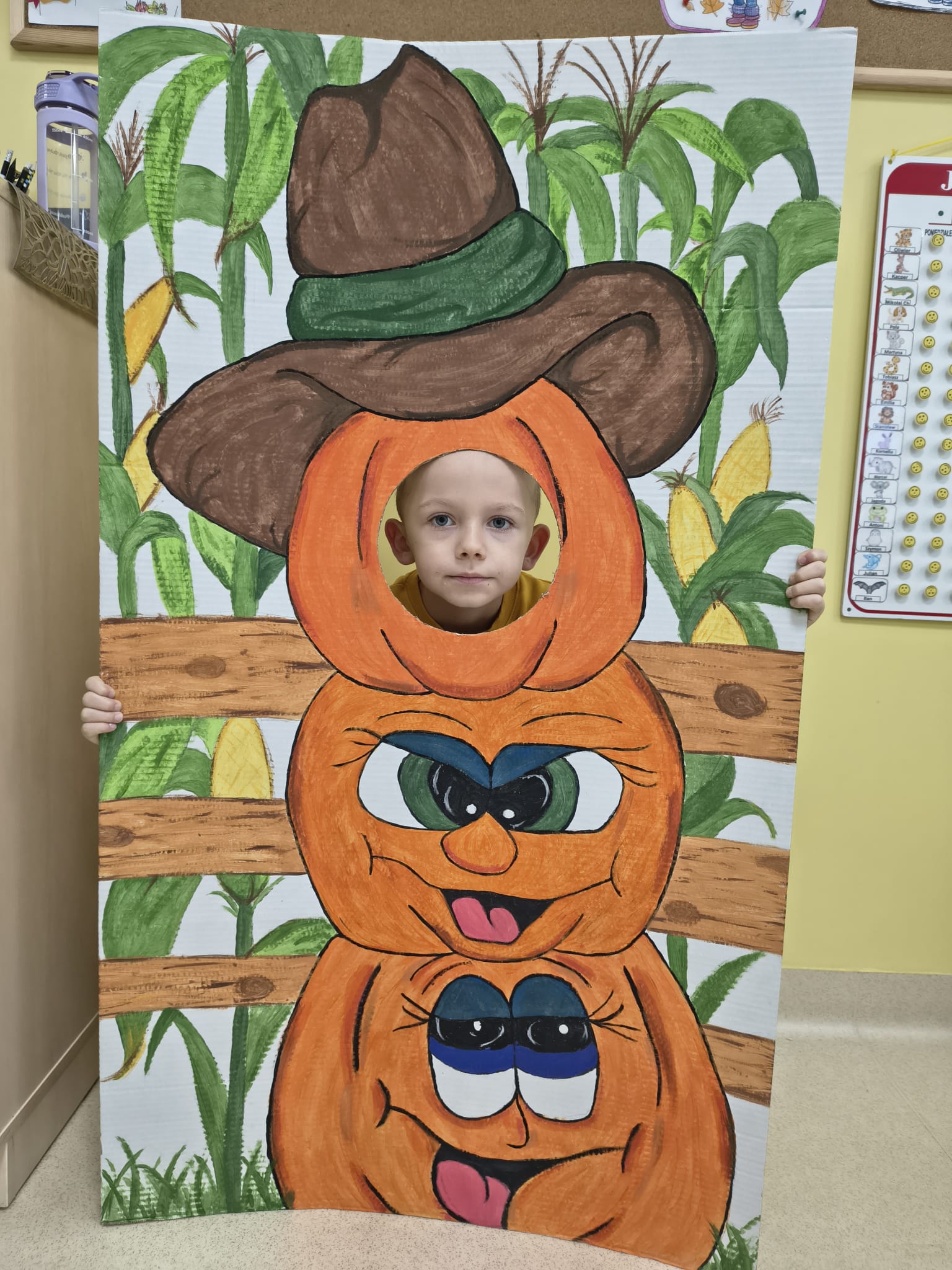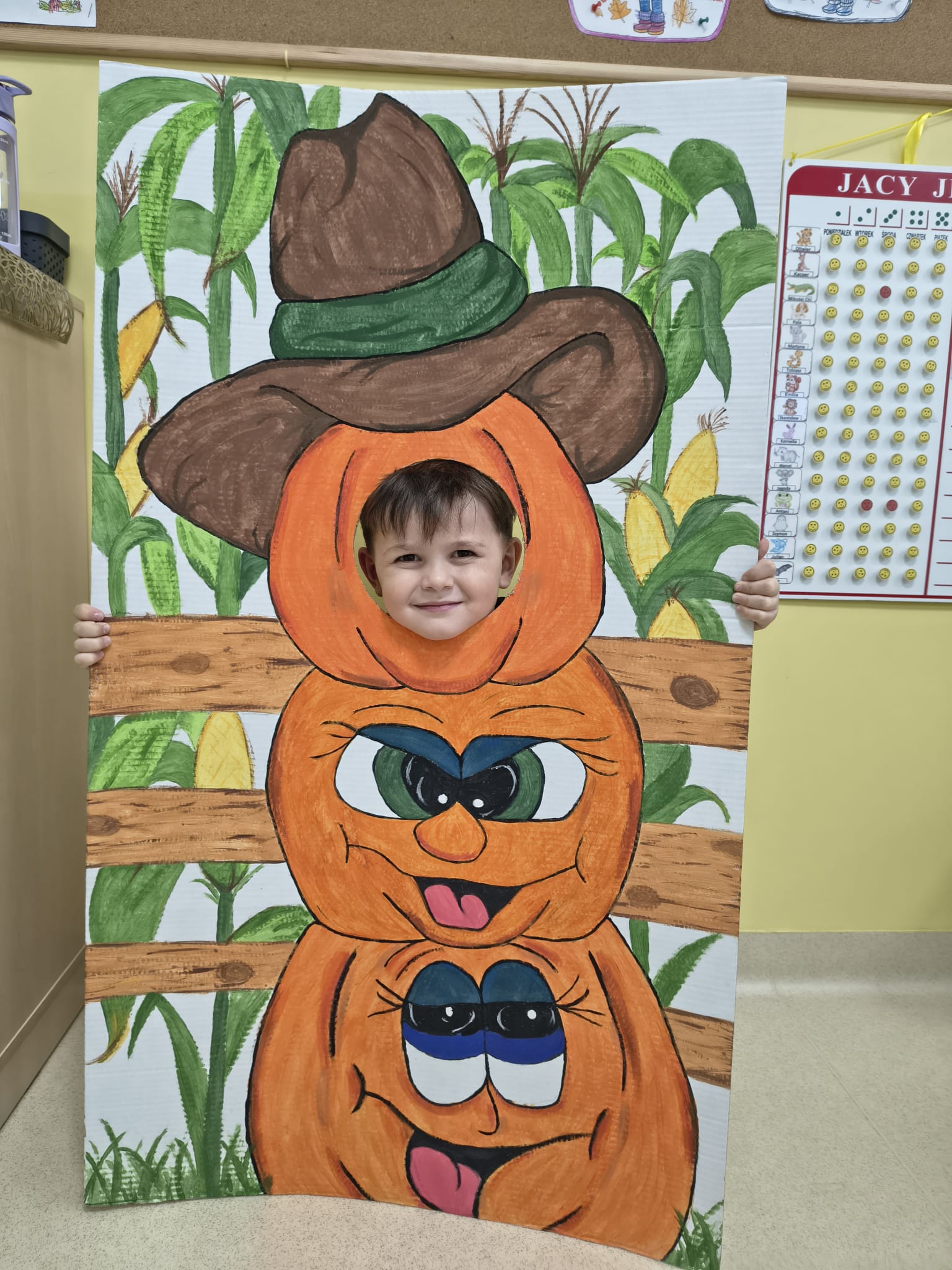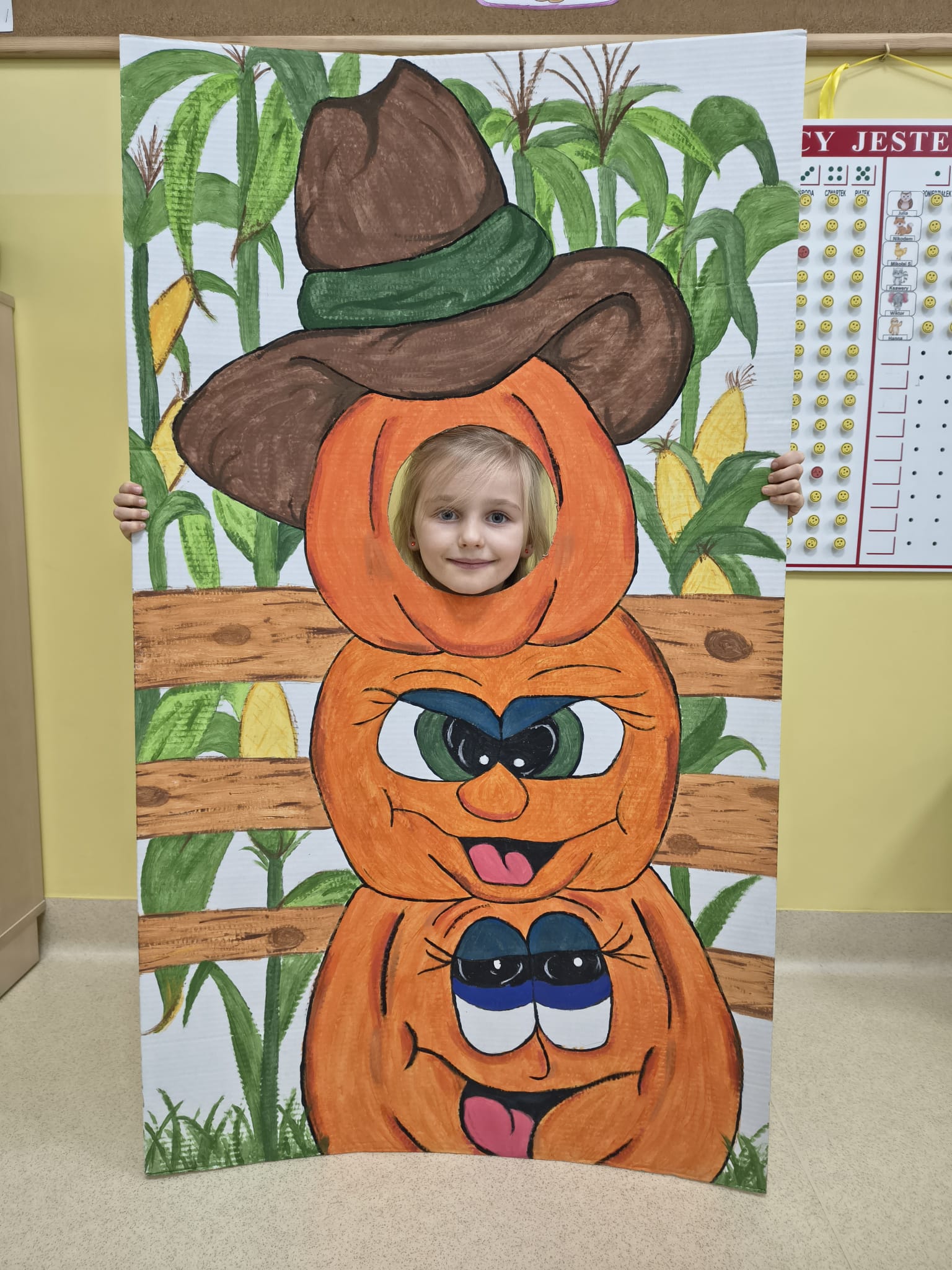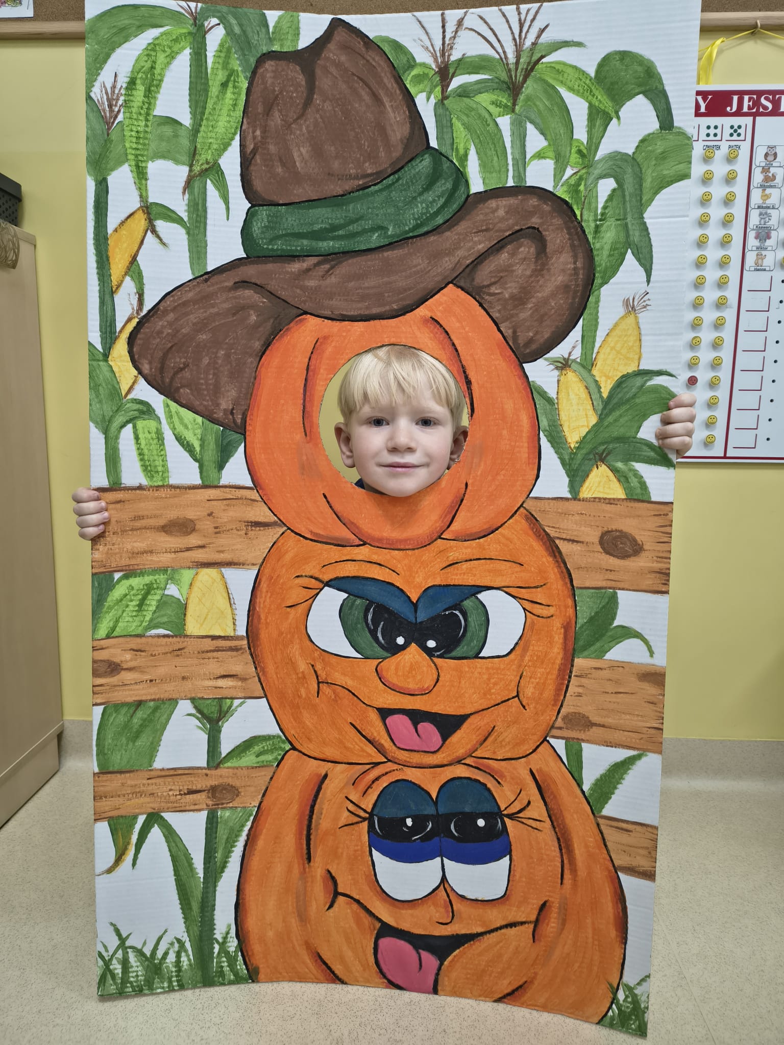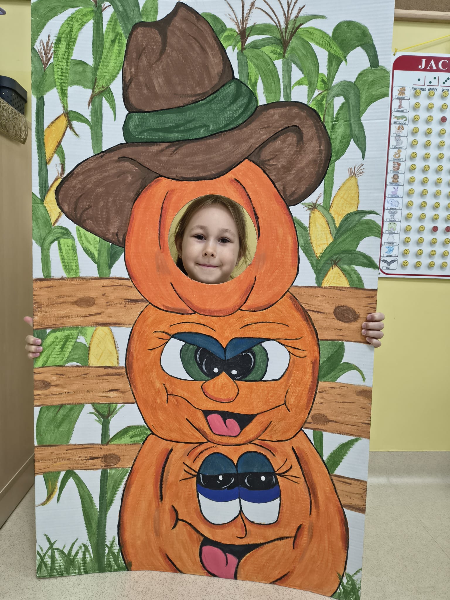 Dnia 31.10.2025 w grupie Żyrafy obchodziliśmy Dzień dyni. Dzieci ubrane na pomarańczowo porównywały wielkości, ciężar, a także układały je w przestrzeni(nad, pod obok). Miały również świetną zabawę przy tworzeniu własnych dyni z masy solnej. Zabawa do piosenki ,, Podaj dynie” sprawiła dzieciom wiele radości i śmiechu. Nie mogliśmy się zatrzymać, na koniec utrwalaliśmy kolory i cyfry podczas kodowania.