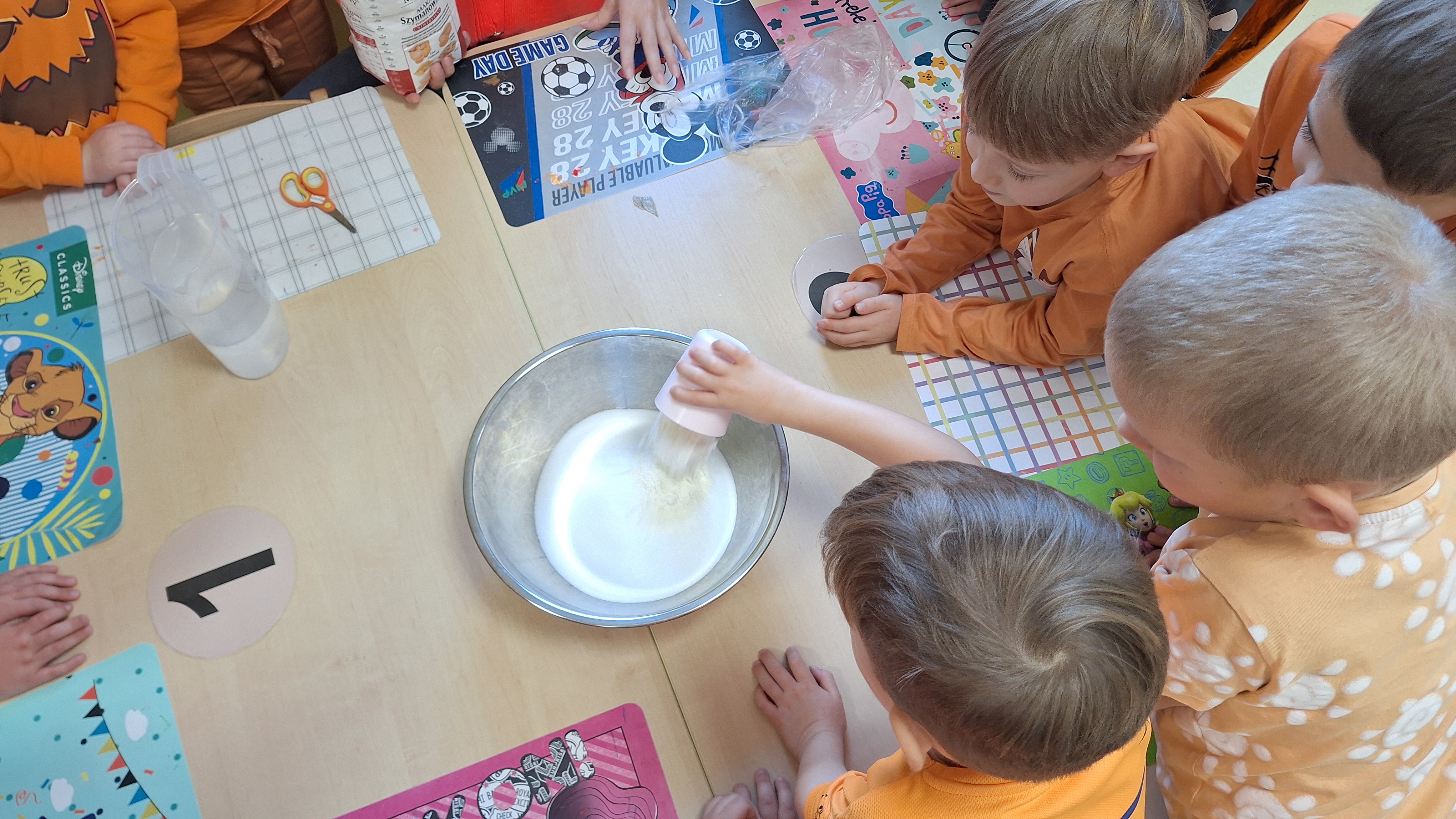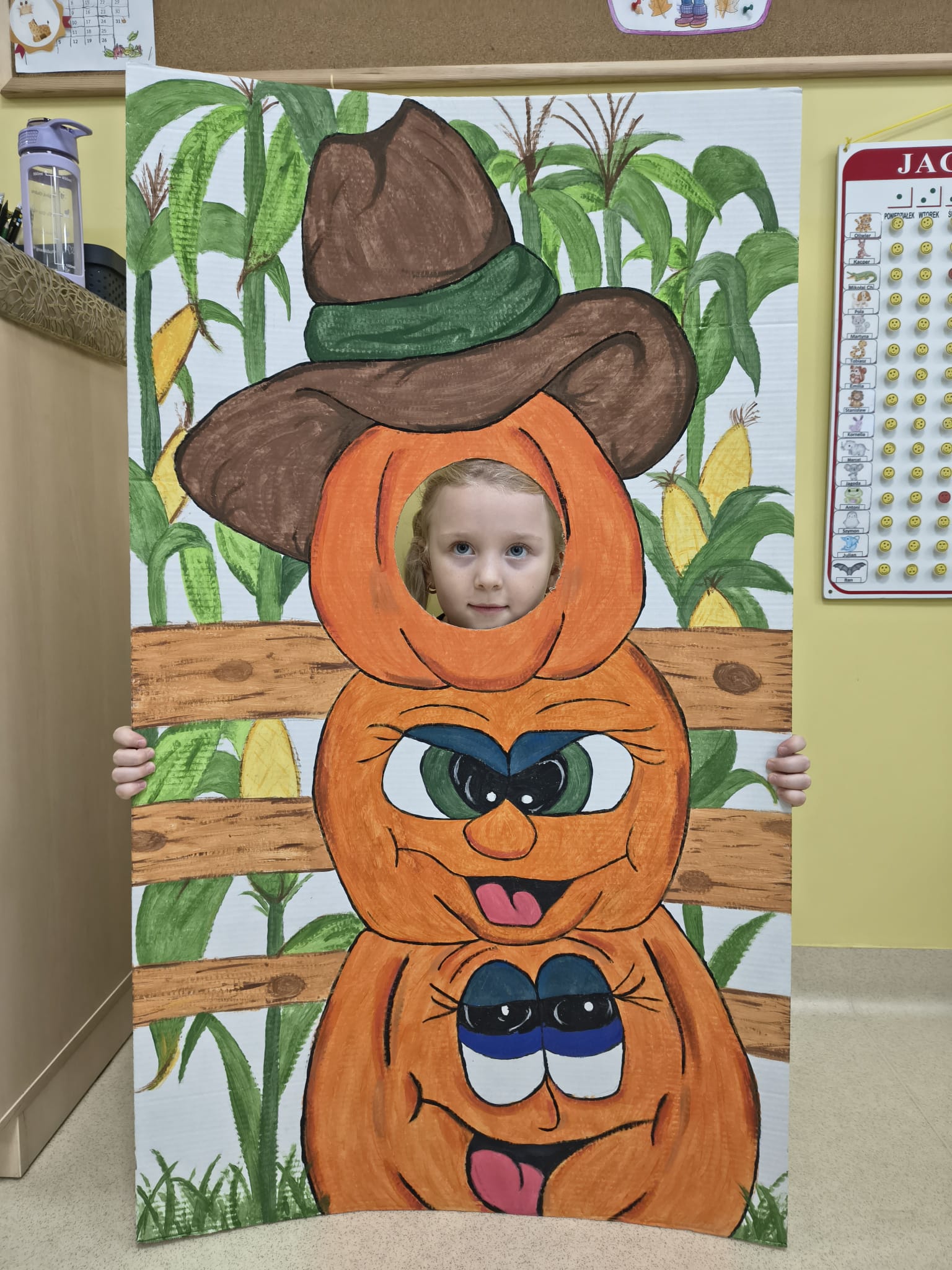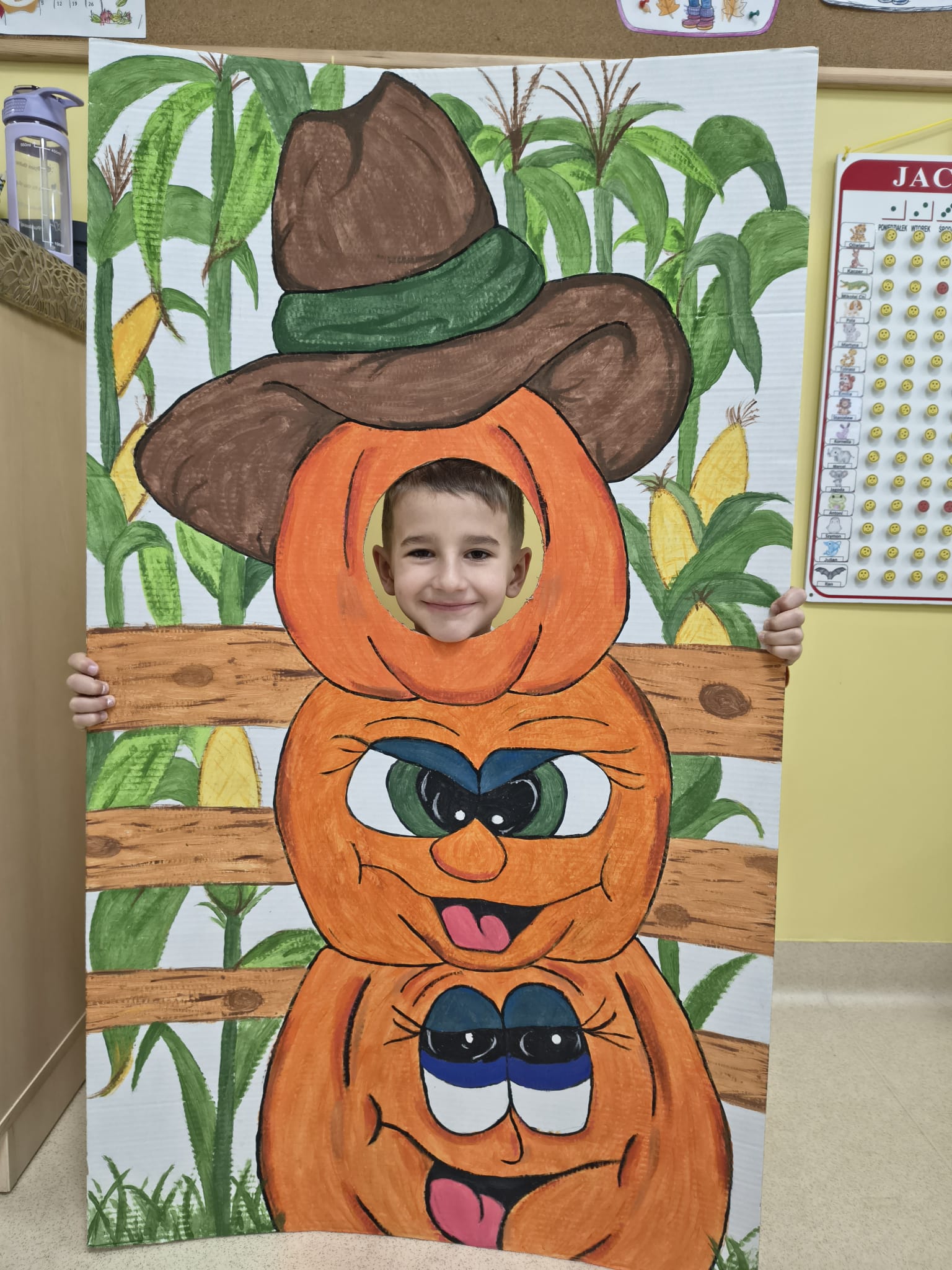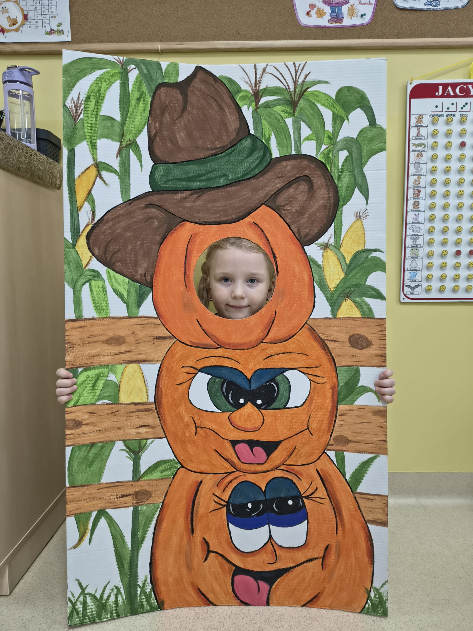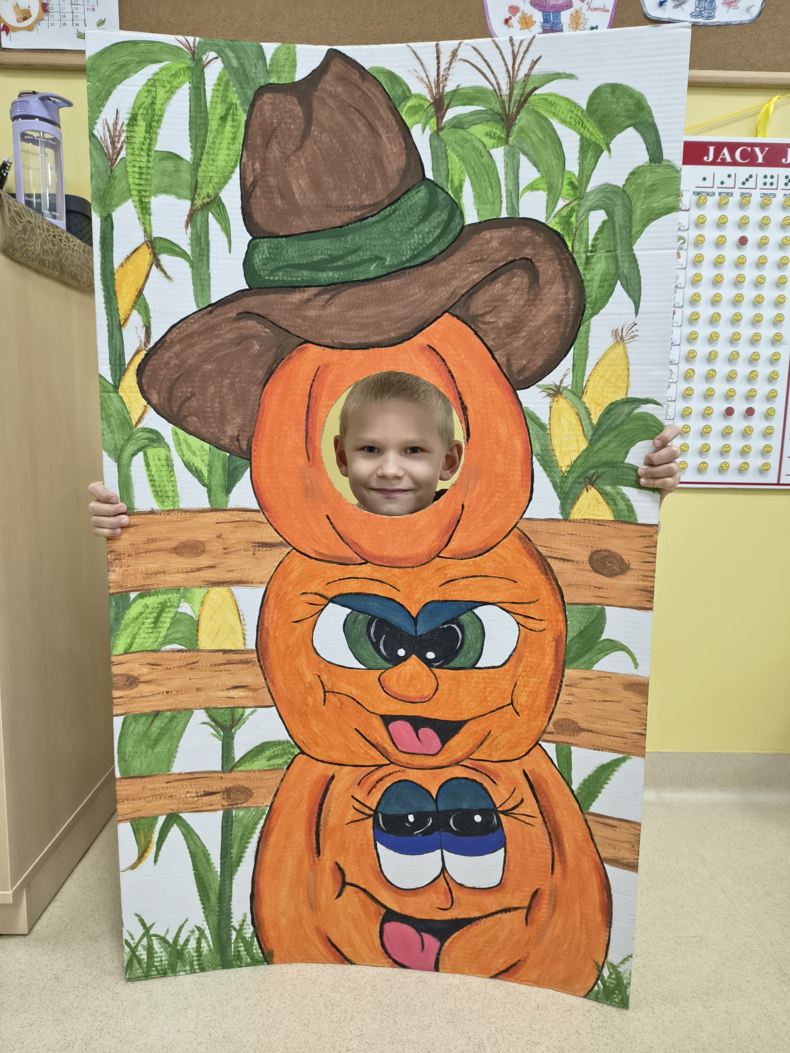 Dnia 31.10.2025 w grupie Żyrafy obchodziliśmy Dzień dyni. Dzieci ubrane na pomarańczowo porównywały wielkości, ciężar, a także układały je w przestrzeni(nad, pod obok). Miały również świetną zabawę przy tworzeniu własnych dyni z masy solnej. Zabawa do piosenki ,, Podaj dynie” sprawiła dzieciom wiele radości i śmiechu. Nie mogliśmy się zatrzymać, na koniec utrwalaliśmy kolory i cyfry podczas kodowania.