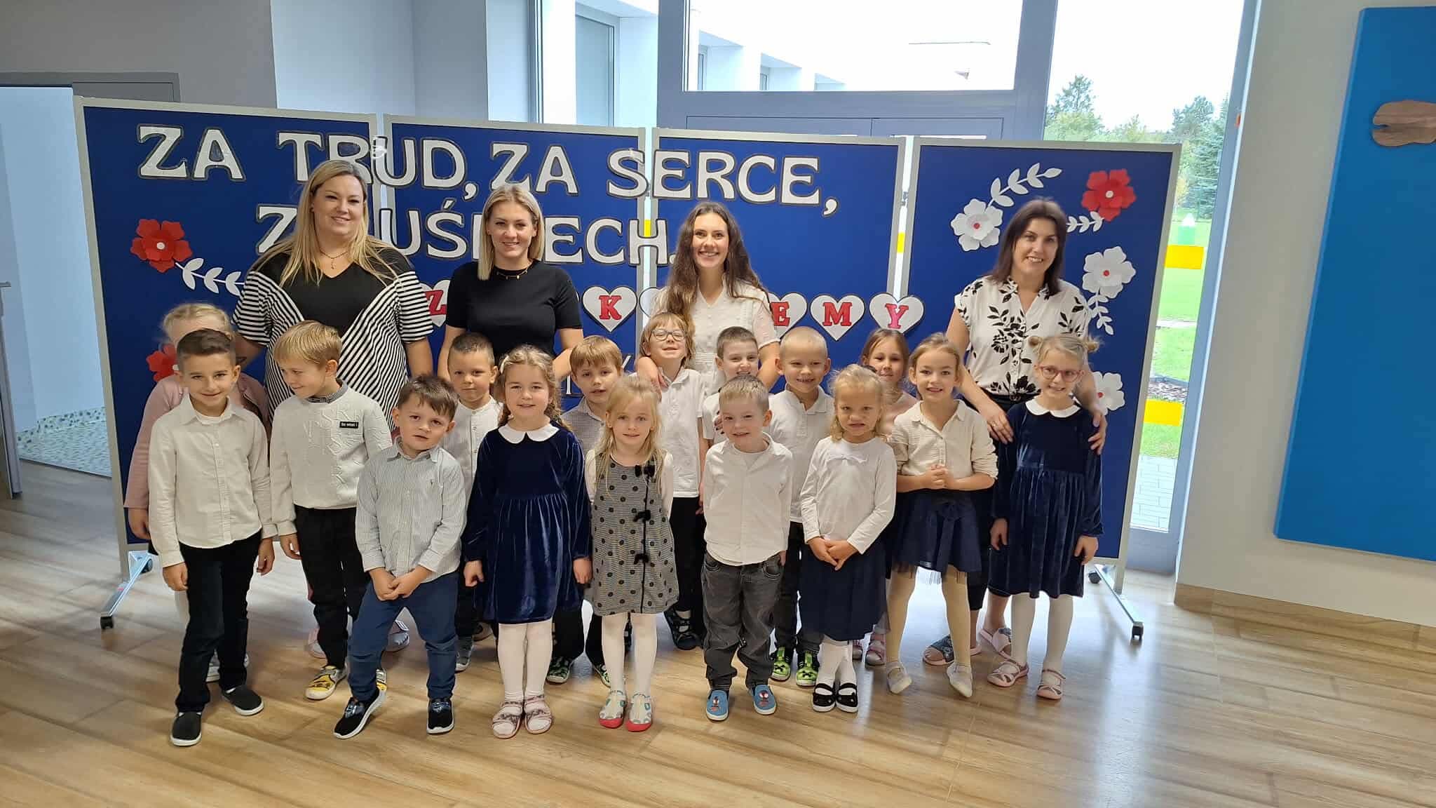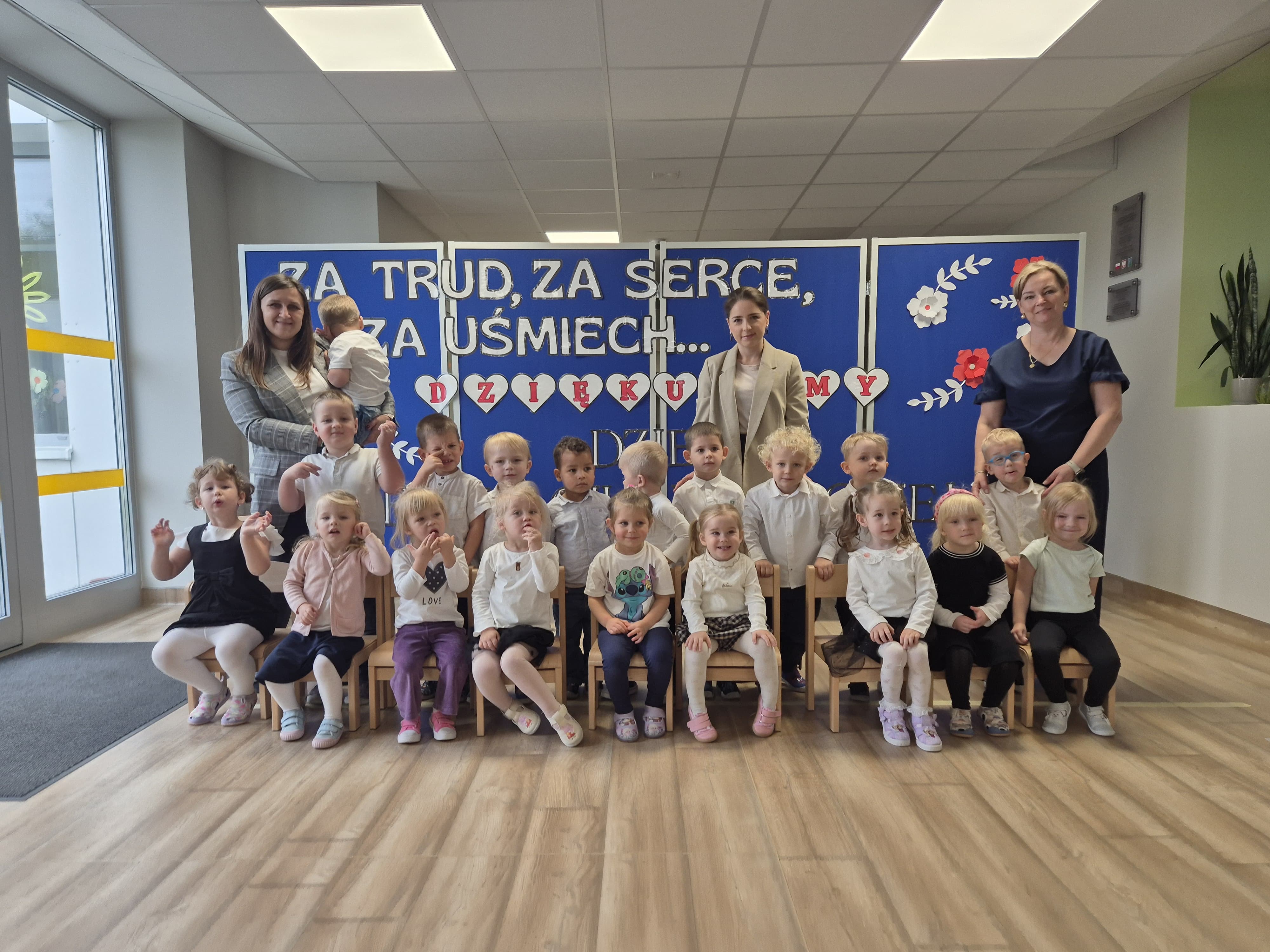 Dnia 14 października, zgodnie z tradycją, obchodziliśmy w naszym przedszkolu bardzo uroczyście Święto Edukacji Narodowej. Na akademię przybyli zaproszeni goście: Pan Maciej Rakowicz- Wójt gminy Jeżewo i Pani Karolina Gwizdała- kierownik Zespołu Obsługi Oświaty Samorządowej w Gminie Jeżewo. Dzieci z grupy „Żyrafy” i „Kangury” przygotowały przepiękny występ, wyrażając podziękowanie za troskę, opiekę i edukację.