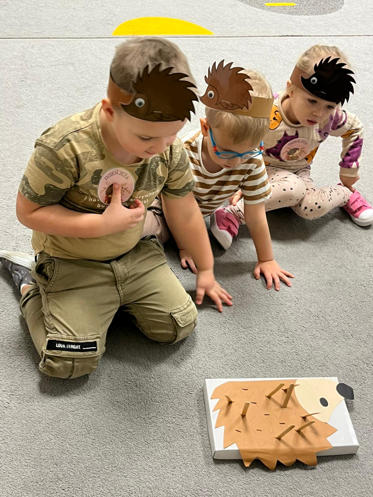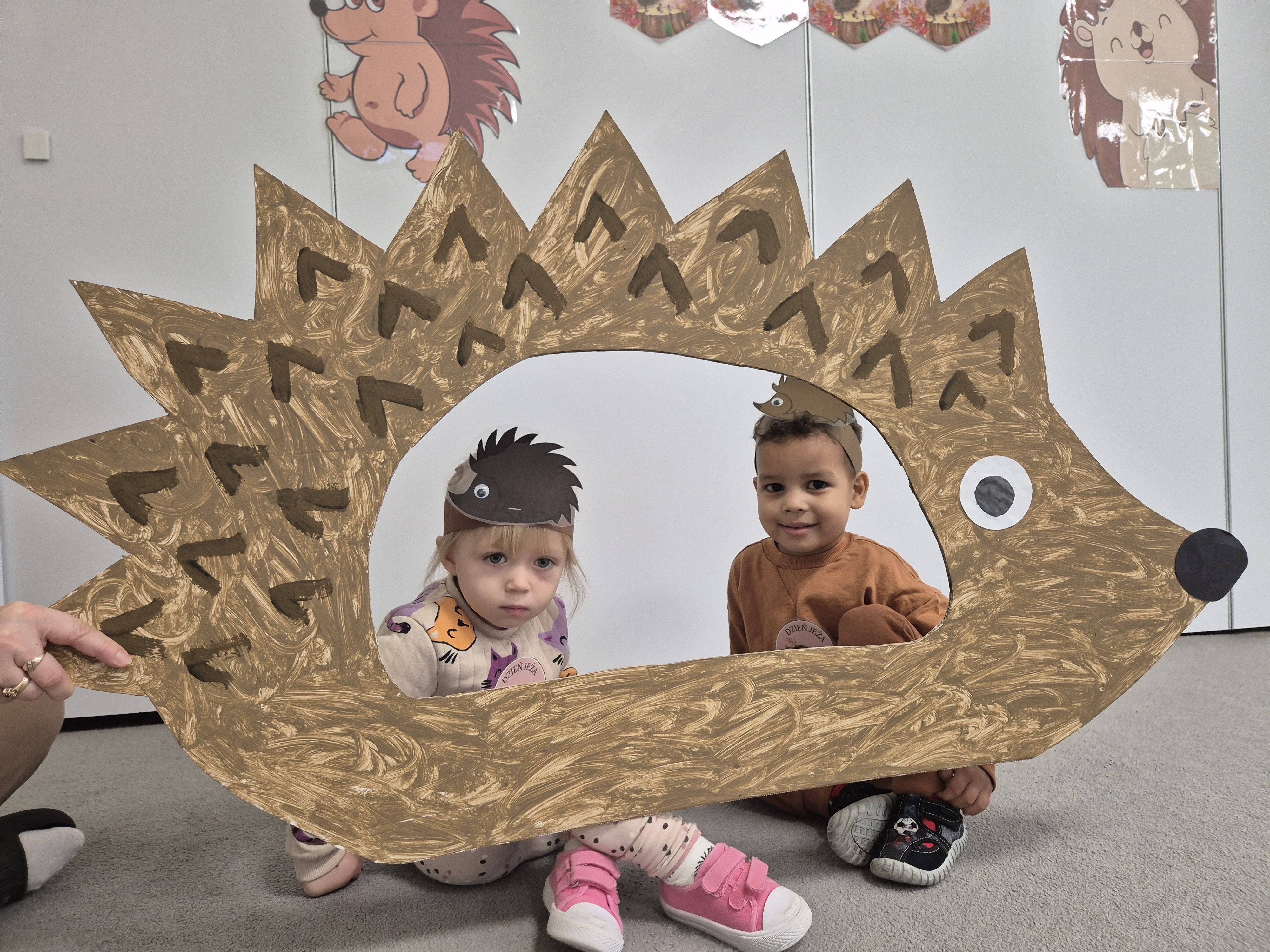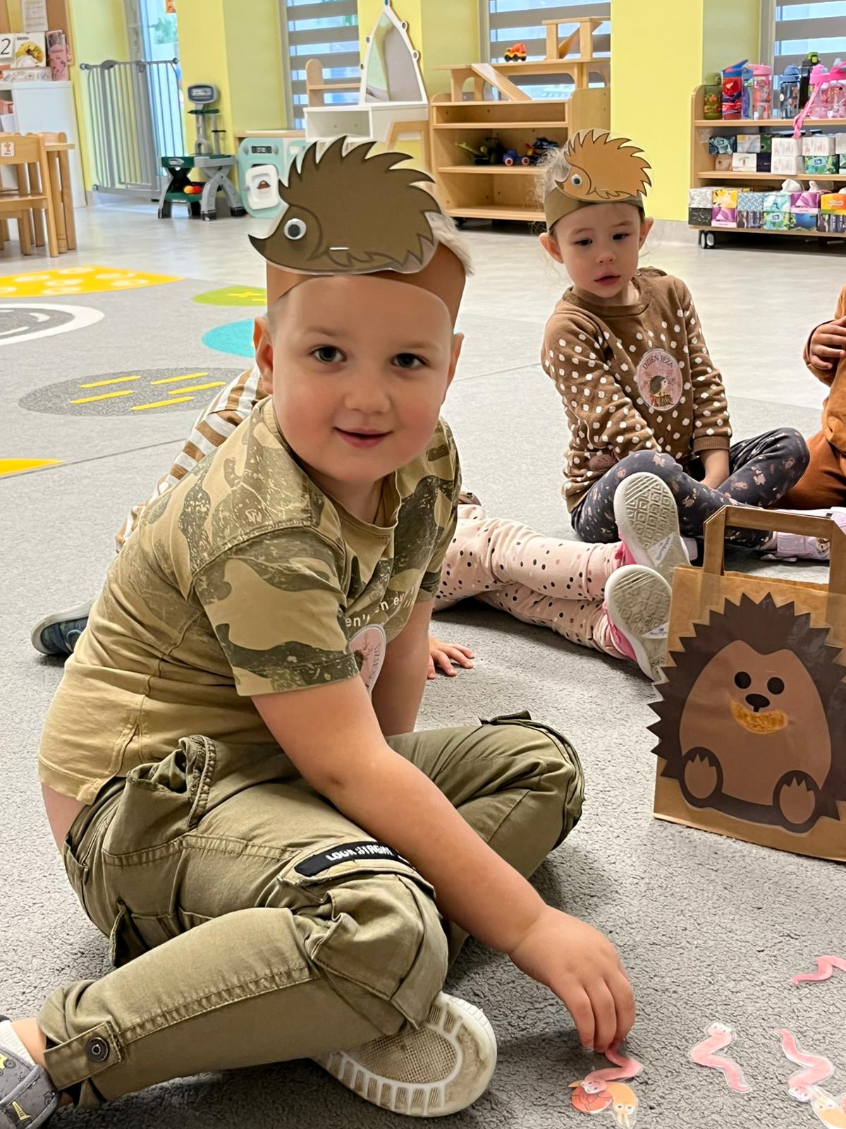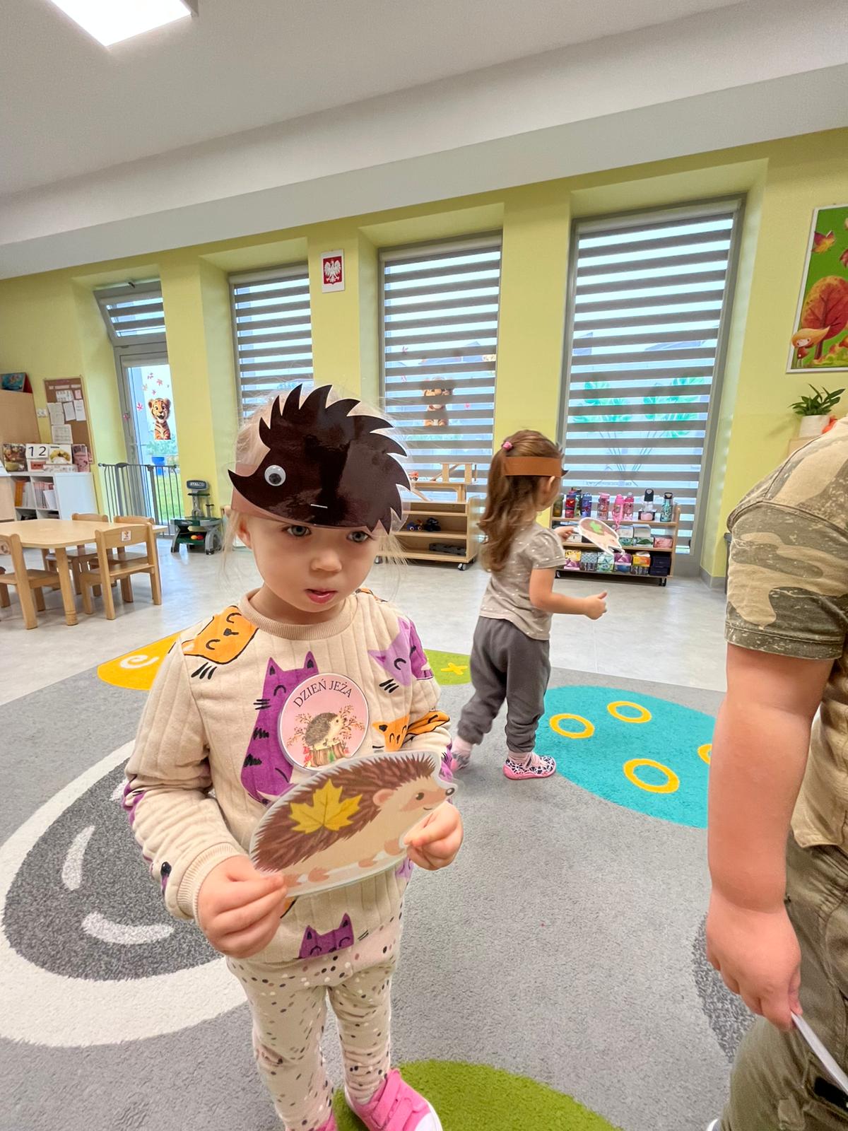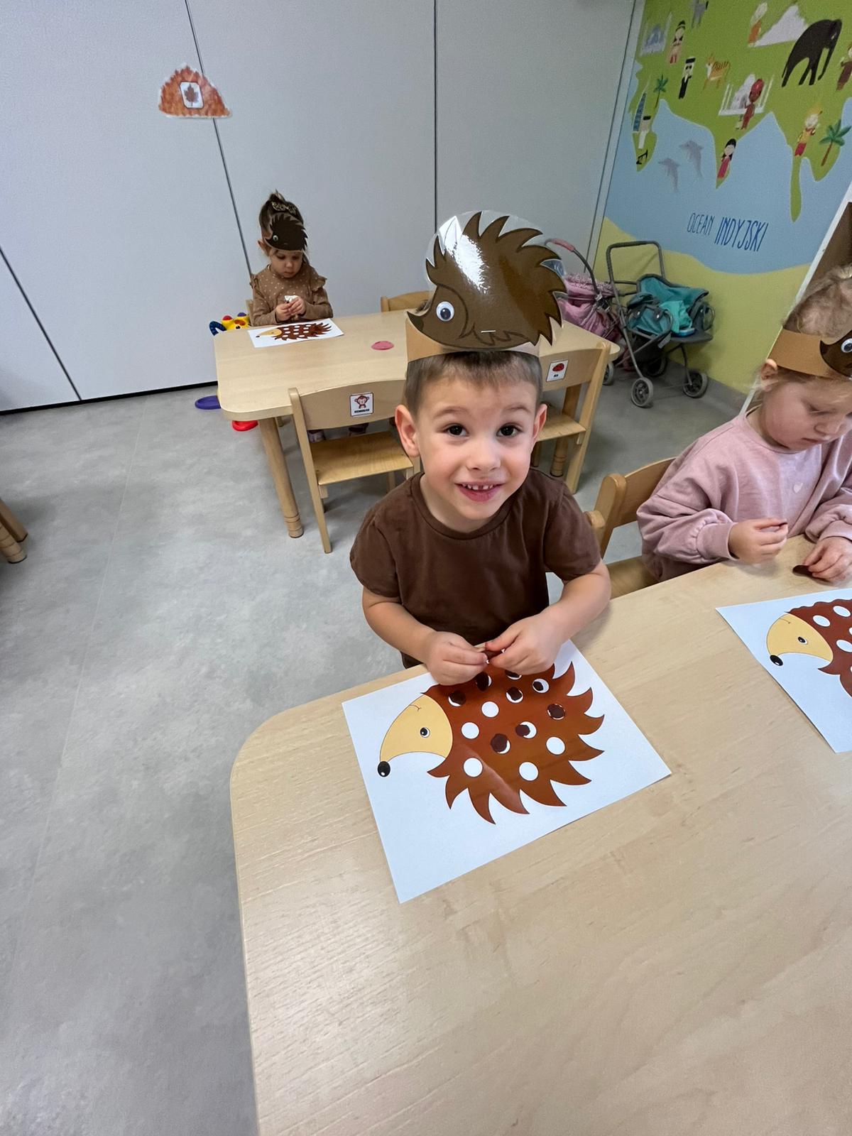 „Liski” rozpoczęły świętowanie od radosnego powitania pluszowego jeża, który odwiedził grupę i stał się bohaterem porannych zajęć. Dzieci mogły dokładnie przyjrzeć się jego wyglądowi i porozmawiać o tym, jak żyją prawdziwe jeże. Następnie wysłuchały bajki o jeżykach, a później same wcieliły się w małe jeże, biorąc udział w zabawach ruchowych rozwijających wyobraźnię i sprawność. Na zakończenie wykonały farbami prace plastyczne pt. „Jesienne jeże”. W tym samym czasie „Tygryski” obejrzały film edukacyjny o jeżach, dzięki któremu poznały ich zwyczaje, sposób życia i dietę. Następnie przygotowały plastelinowe prace plastyczne – jeżyki wyklejane plasteliną. Dzieci brały też udział w gimnastyce z jeżykiem oraz symbolicznie „karmiły jeżyka” dżdżownicami i ślimakami w formie pomocy dydaktycznych. Na zakończenie świetnie bawiły się przy piosence „Dwa malutkie jeże”, uczestnicząc w zabawach ruchowych. Wspólne obchody Dnia Jeża upłynęły w atmosferze zaangażowania, radości i twórczej zabawy, wzbogacając dzieci o nową wiedzę i piękne doświadczenia.