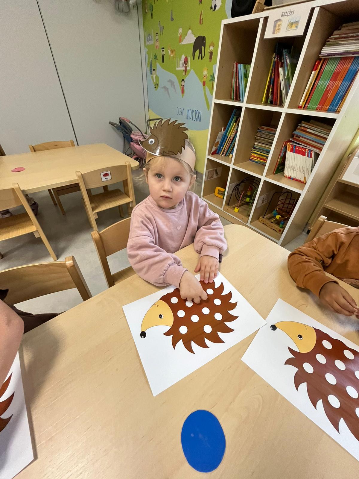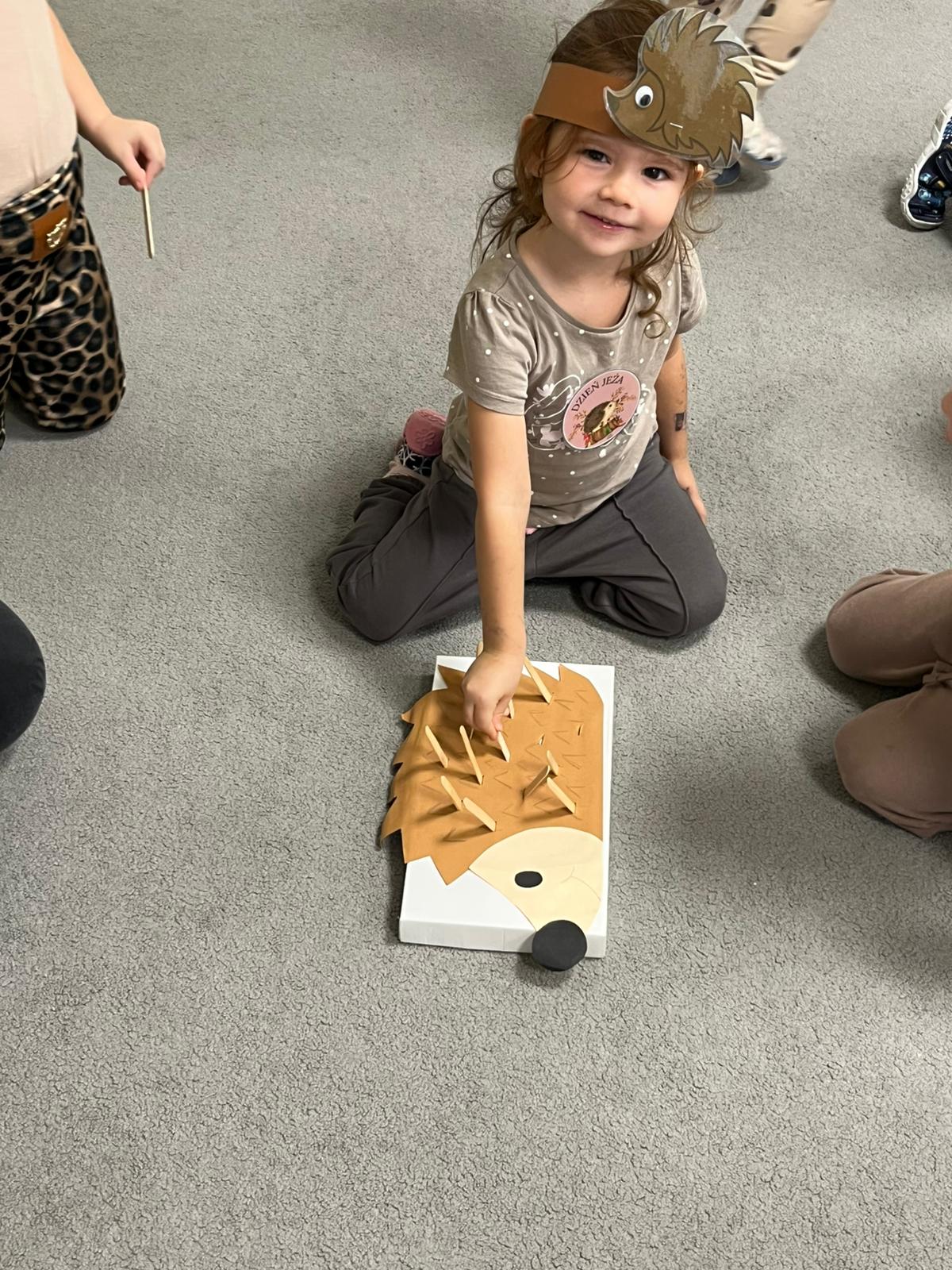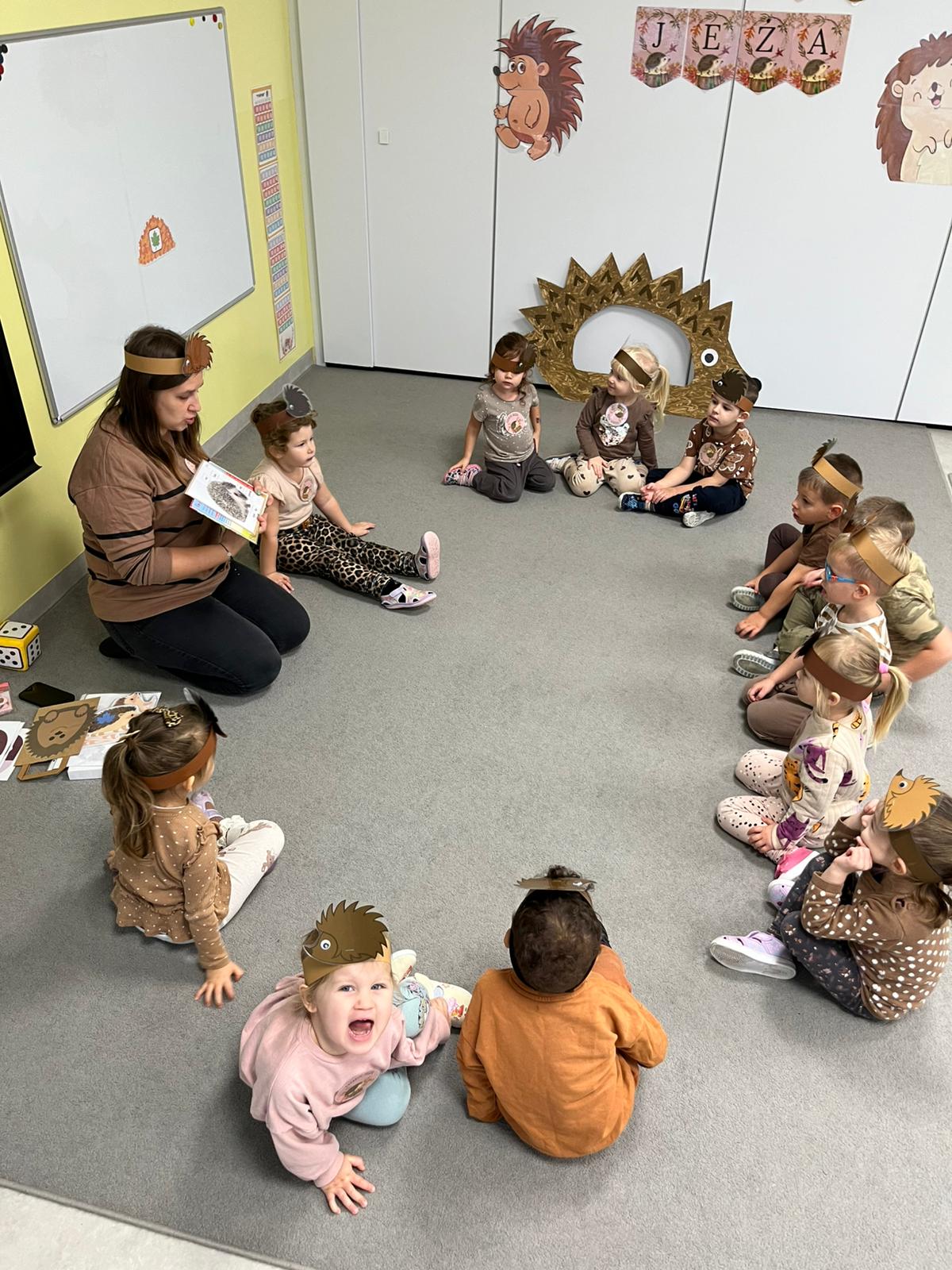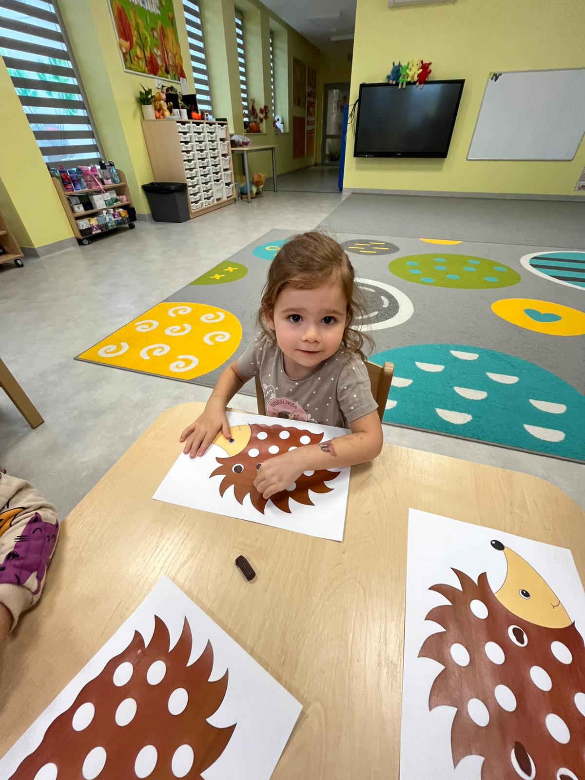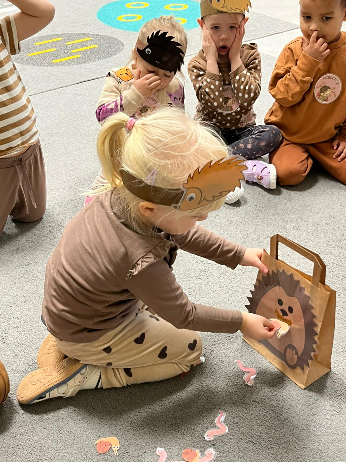 „Liski” rozpoczęły świętowanie od radosnego powitania pluszowego jeża, który odwiedził grupę i stał się bohaterem porannych zajęć. Dzieci mogły dokładnie przyjrzeć się jego wyglądowi i porozmawiać o tym, jak żyją prawdziwe jeże. Następnie wysłuchały bajki o jeżykach, a później same wcieliły się w małe jeże, biorąc udział w zabawach ruchowych rozwijających wyobraźnię i sprawność. Na zakończenie wykonały farbami prace plastyczne pt. „Jesienne jeże”. W tym samym czasie „Tygryski” obejrzały film edukacyjny o jeżach, dzięki któremu poznały ich zwyczaje, sposób życia i dietę. Następnie przygotowały plastelinowe prace plastyczne – jeżyki wyklejane plasteliną. Dzieci brały też udział w gimnastyce z jeżykiem oraz symbolicznie „karmiły jeżyka” dżdżownicami i ślimakami w formie pomocy dydaktycznych. Na zakończenie świetnie bawiły się przy piosence „Dwa malutkie jeże”, uczestnicząc w zabawach ruchowych. Wspólne obchody Dnia Jeża upłynęły w atmosferze zaangażowania, radości i twórczej zabawy, wzbogacając dzieci o nową wiedzę i piękne doświadczenia.
