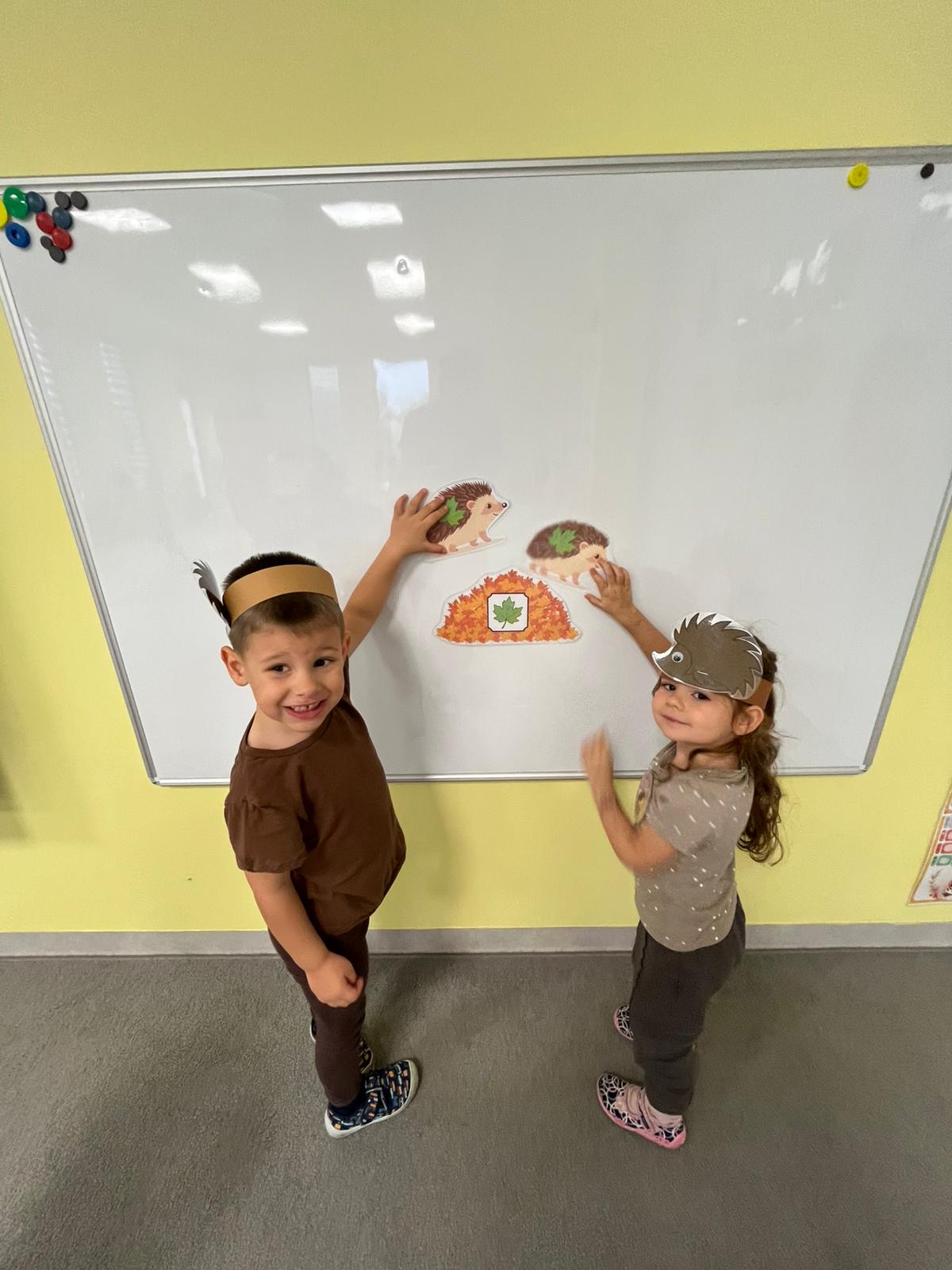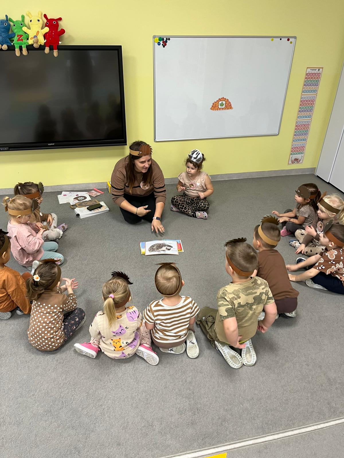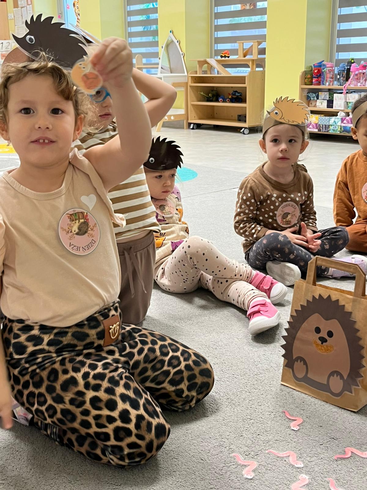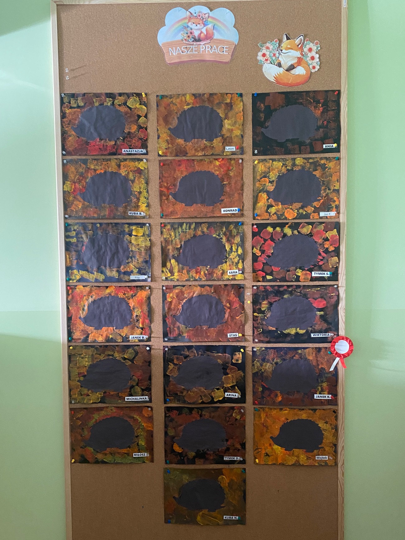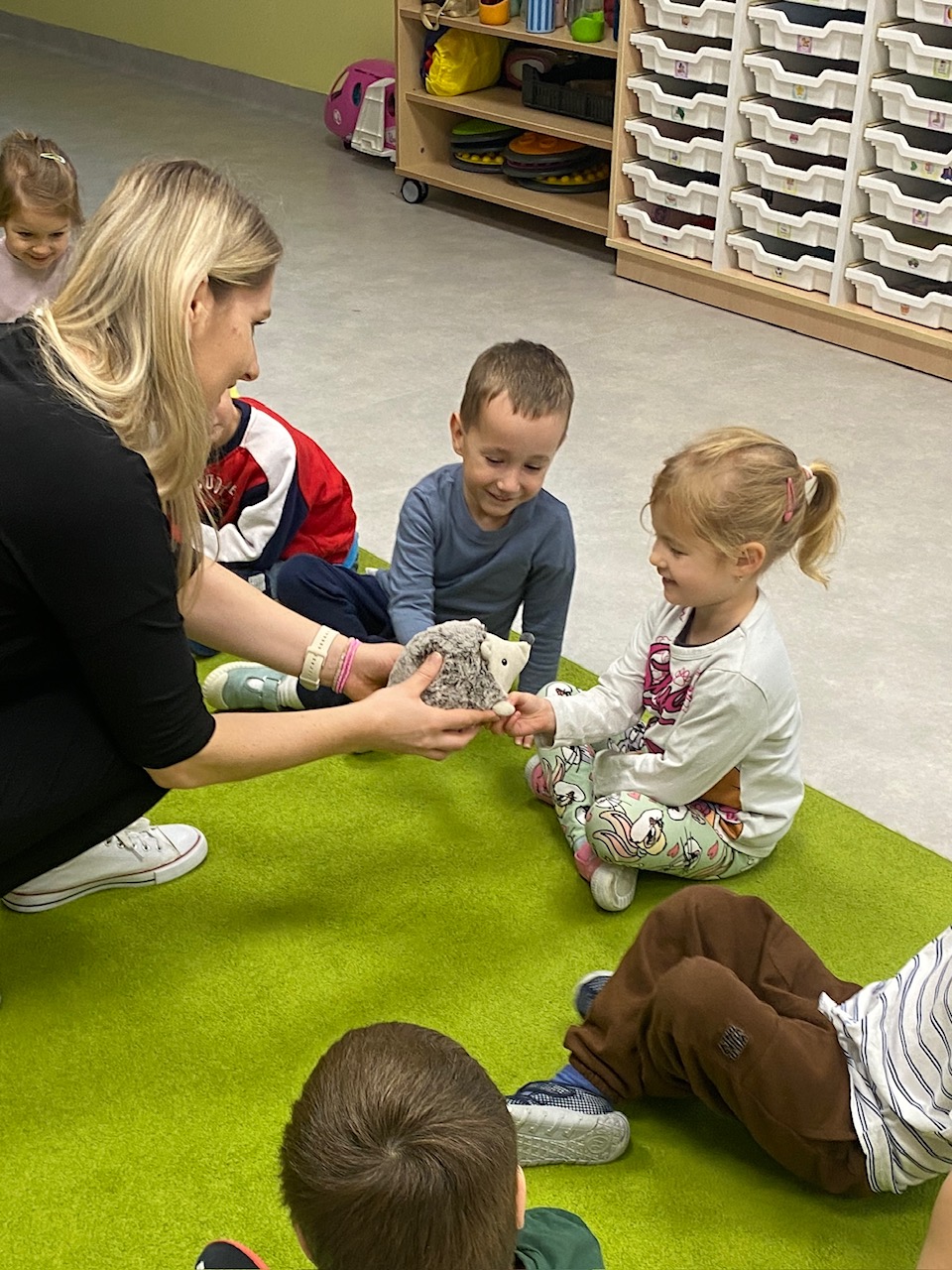 „Liski” rozpoczęły świętowanie od radosnego powitania pluszowego jeża, który odwiedził grupę i stał się bohaterem porannych zajęć. Dzieci mogły dokładnie przyjrzeć się jego wyglądowi i porozmawiać o tym, jak żyją prawdziwe jeże. Następnie wysłuchały bajki o jeżykach, a później same wcieliły się w małe jeże, biorąc udział w zabawach ruchowych rozwijających wyobraźnię i sprawność. Na zakończenie wykonały farbami prace plastyczne pt. „Jesienne jeże”. W tym samym czasie „Tygryski” obejrzały film edukacyjny o jeżach, dzięki któremu poznały ich zwyczaje, sposób życia i dietę. Następnie przygotowały plastelinowe prace plastyczne – jeżyki wyklejane plasteliną. Dzieci brały też udział w gimnastyce z jeżykiem oraz symbolicznie „karmiły jeżyka” dżdżownicami i ślimakami w formie pomocy dydaktycznych. Na zakończenie świetnie bawiły się przy piosence „Dwa malutkie jeże”, uczestnicząc w zabawach ruchowych. Wspólne obchody Dnia Jeża upłynęły w atmosferze zaangażowania, radości i twórczej zabawy, wzbogacając dzieci o nową wiedzę i piękne doświadczenia.