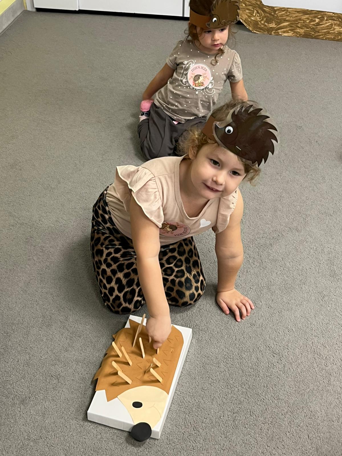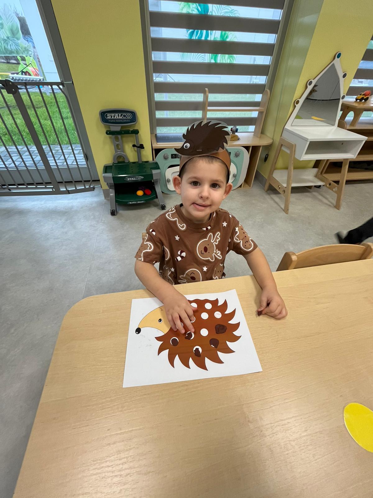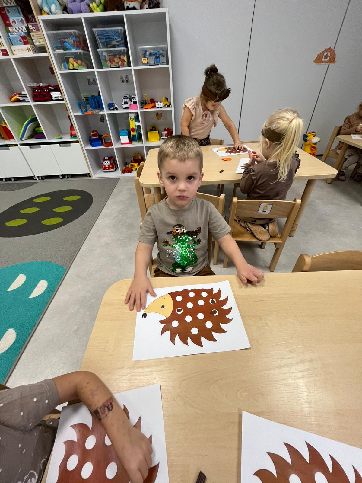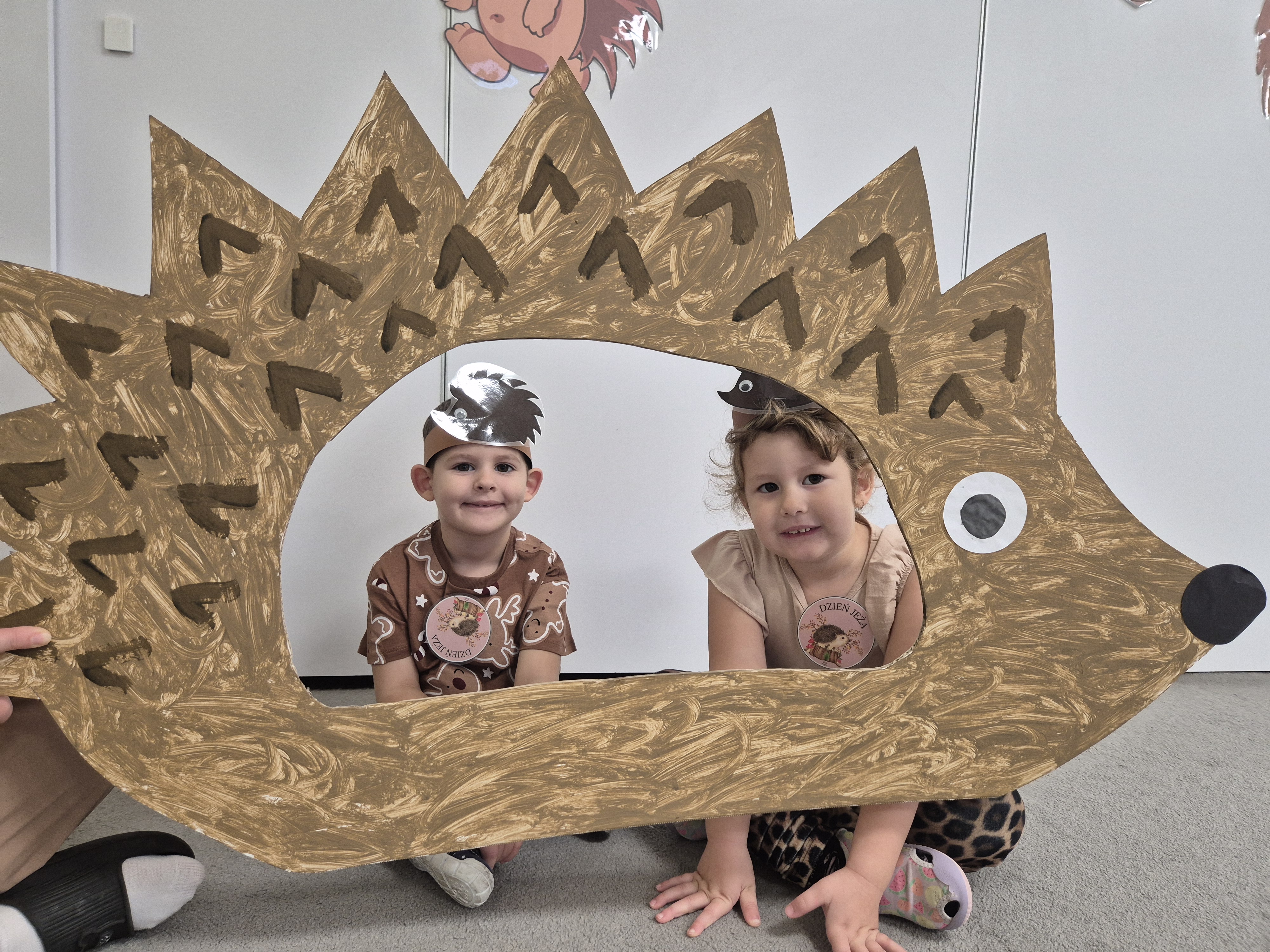 „Liski” rozpoczęły świętowanie od radosnego powitania pluszowego jeża, który odwiedził grupę i stał się bohaterem porannych zajęć. Dzieci mogły dokładnie przyjrzeć się jego wyglądowi i porozmawiać o tym, jak żyją prawdziwe jeże. Następnie wysłuchały bajki o jeżykach, a później same wcieliły się w małe jeże, biorąc udział w zabawach ruchowych rozwijających wyobraźnię i sprawność. Na zakończenie wykonały farbami prace plastyczne pt. „Jesienne jeże”. W tym samym czasie „Tygryski” obejrzały film edukacyjny o jeżach, dzięki któremu poznały ich zwyczaje, sposób życia i dietę. Następnie przygotowały plastelinowe prace plastyczne – jeżyki wyklejane plasteliną. Dzieci brały też udział w gimnastyce z jeżykiem oraz symbolicznie „karmiły jeżyka” dżdżownicami i ślimakami w formie pomocy dydaktycznych. Na zakończenie świetnie bawiły się przy piosence „Dwa malutkie jeże”, uczestnicząc w zabawach ruchowych. Wspólne obchody Dnia Jeża upłynęły w atmosferze zaangażowania, radości i twórczej zabawy, wzbogacając dzieci o nową wiedzę i piękne doświadczenia.