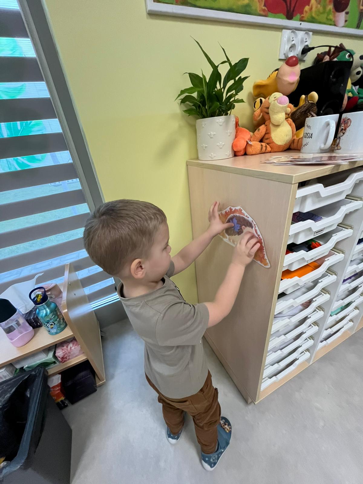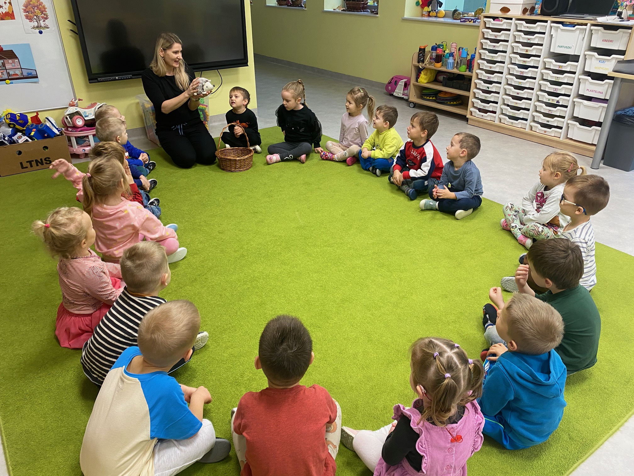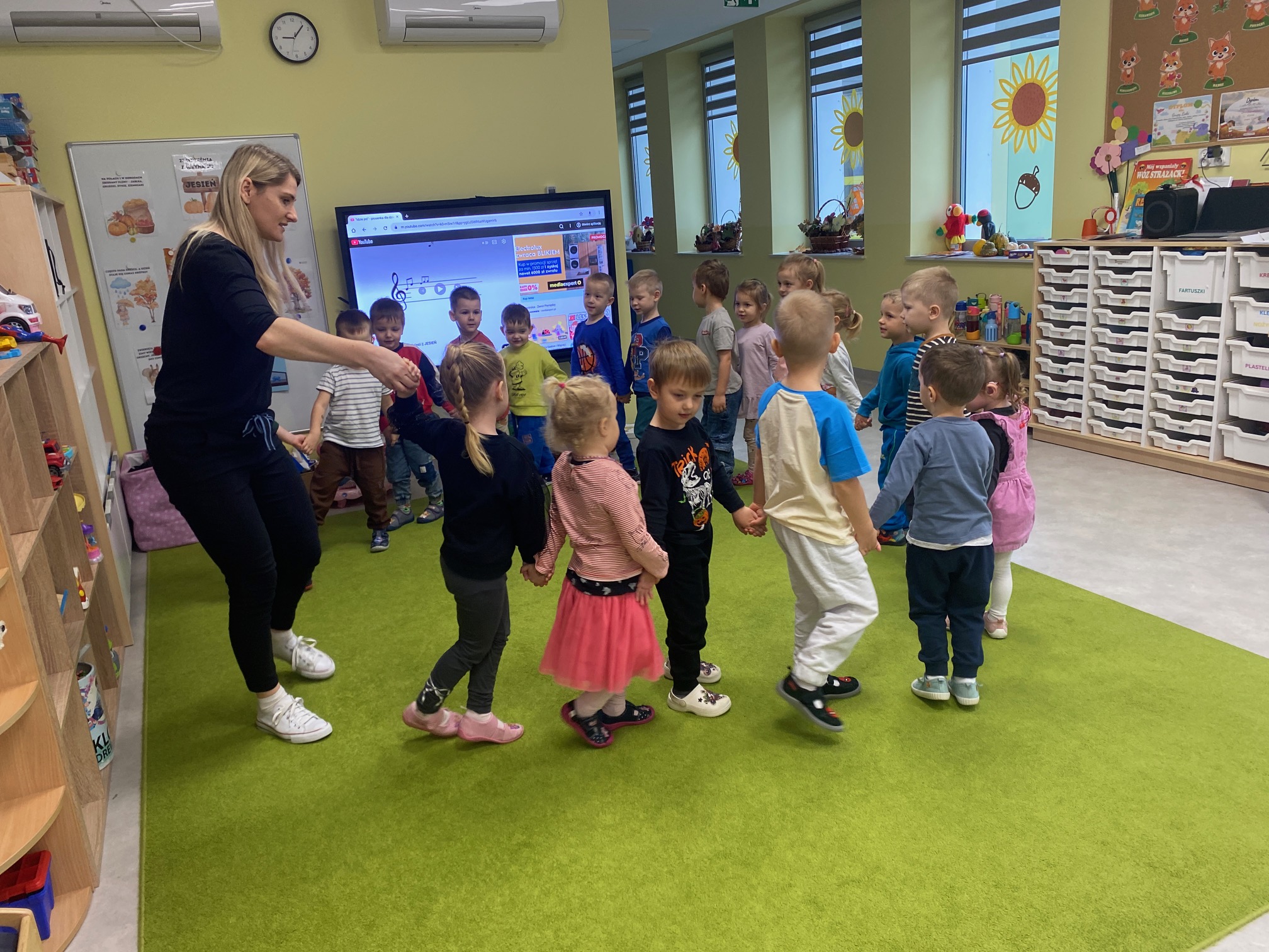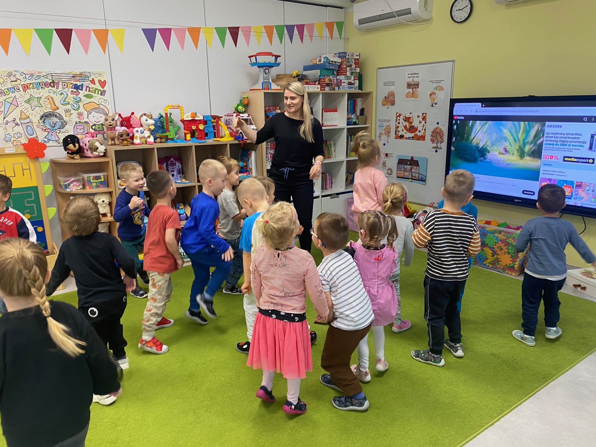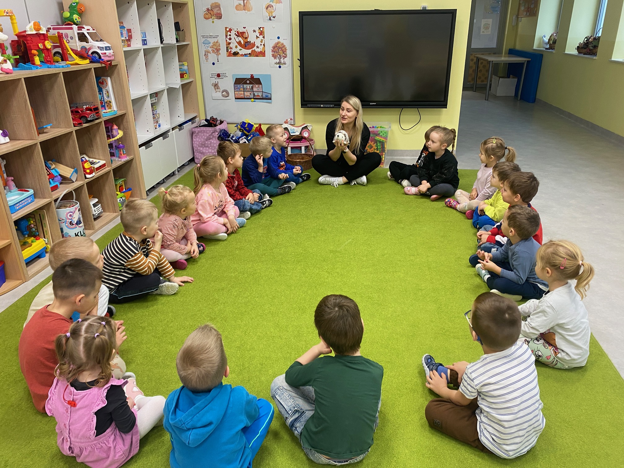 „Liski” rozpoczęły świętowanie od radosnego powitania pluszowego jeża, który odwiedził grupę i stał się bohaterem porannych zajęć. Dzieci mogły dokładnie przyjrzeć się jego wyglądowi i porozmawiać o tym, jak żyją prawdziwe jeże. Następnie wysłuchały bajki o jeżykach, a później same wcieliły się w małe jeże, biorąc udział w zabawach ruchowych rozwijających wyobraźnię i sprawność. Na zakończenie wykonały farbami prace plastyczne pt. „Jesienne jeże”. W tym samym czasie „Tygryski” obejrzały film edukacyjny o jeżach, dzięki któremu poznały ich zwyczaje, sposób życia i dietę. Następnie przygotowały plastelinowe prace plastyczne – jeżyki wyklejane plasteliną. Dzieci brały też udział w gimnastyce z jeżykiem oraz symbolicznie „karmiły jeżyka” dżdżownicami i ślimakami w formie pomocy dydaktycznych. Na zakończenie świetnie bawiły się przy piosence „Dwa malutkie jeże”, uczestnicząc w zabawach ruchowych. Wspólne obchody Dnia Jeża upłynęły w atmosferze zaangażowania, radości i twórczej zabawy, wzbogacając dzieci o nową wiedzę i piękne doświadczenia.