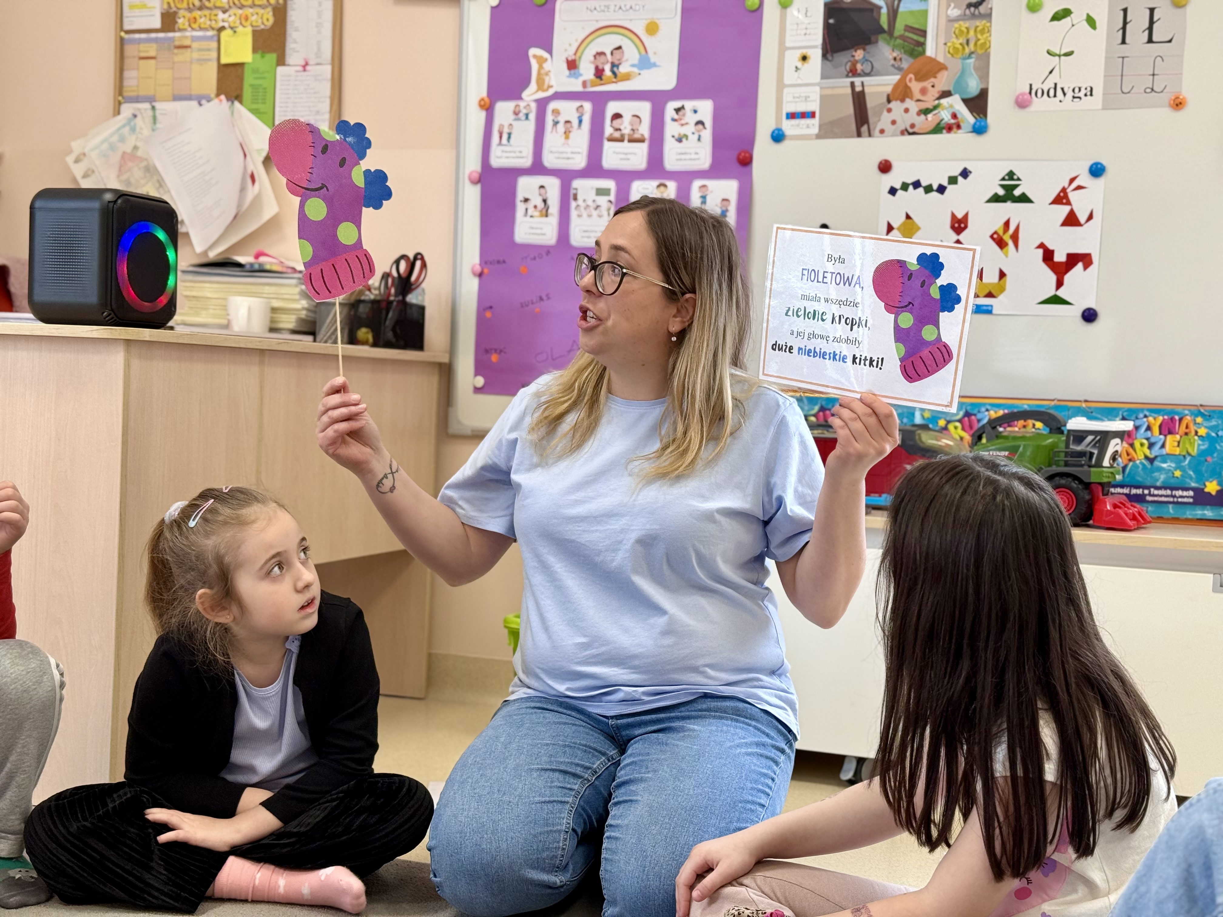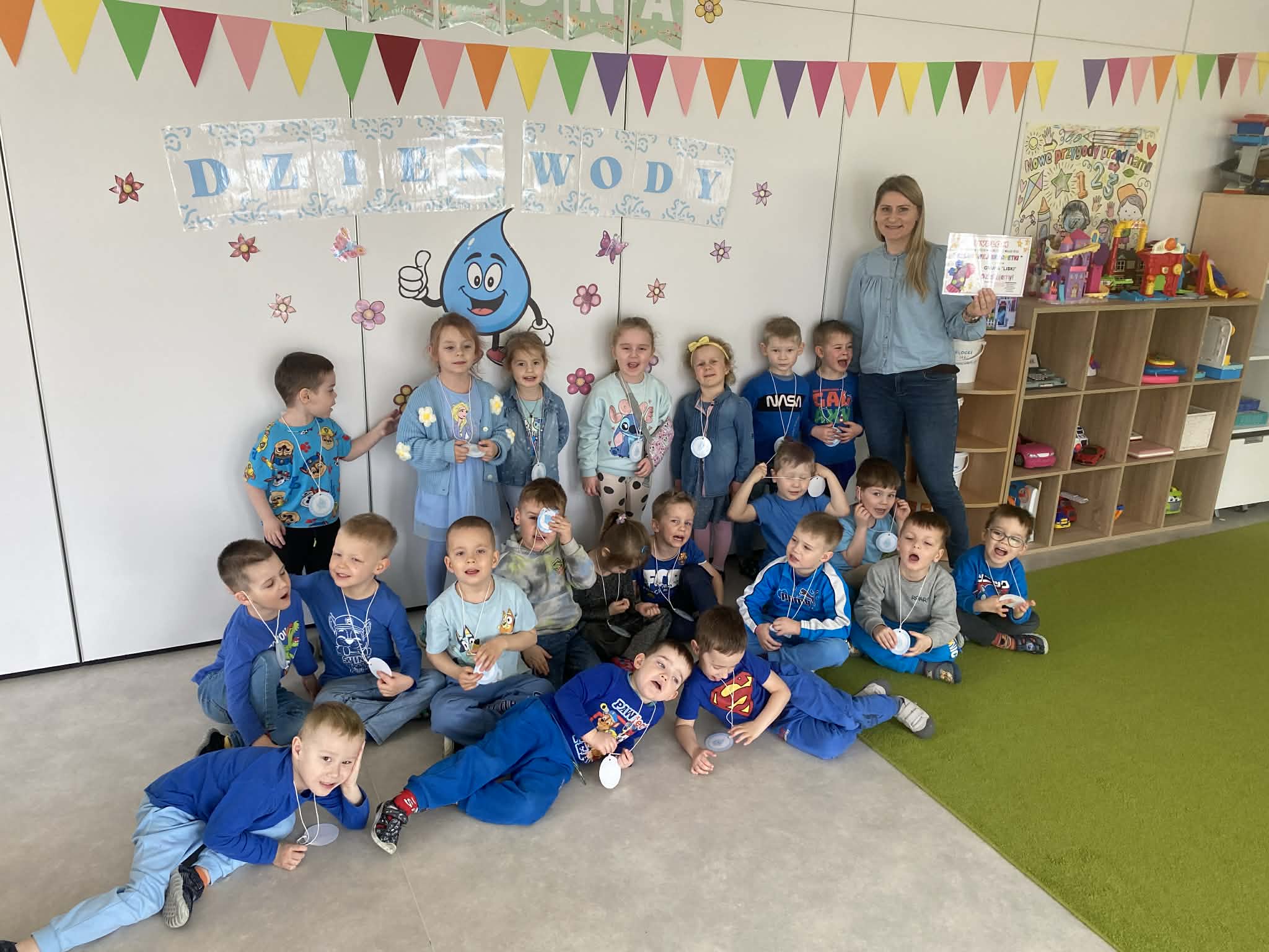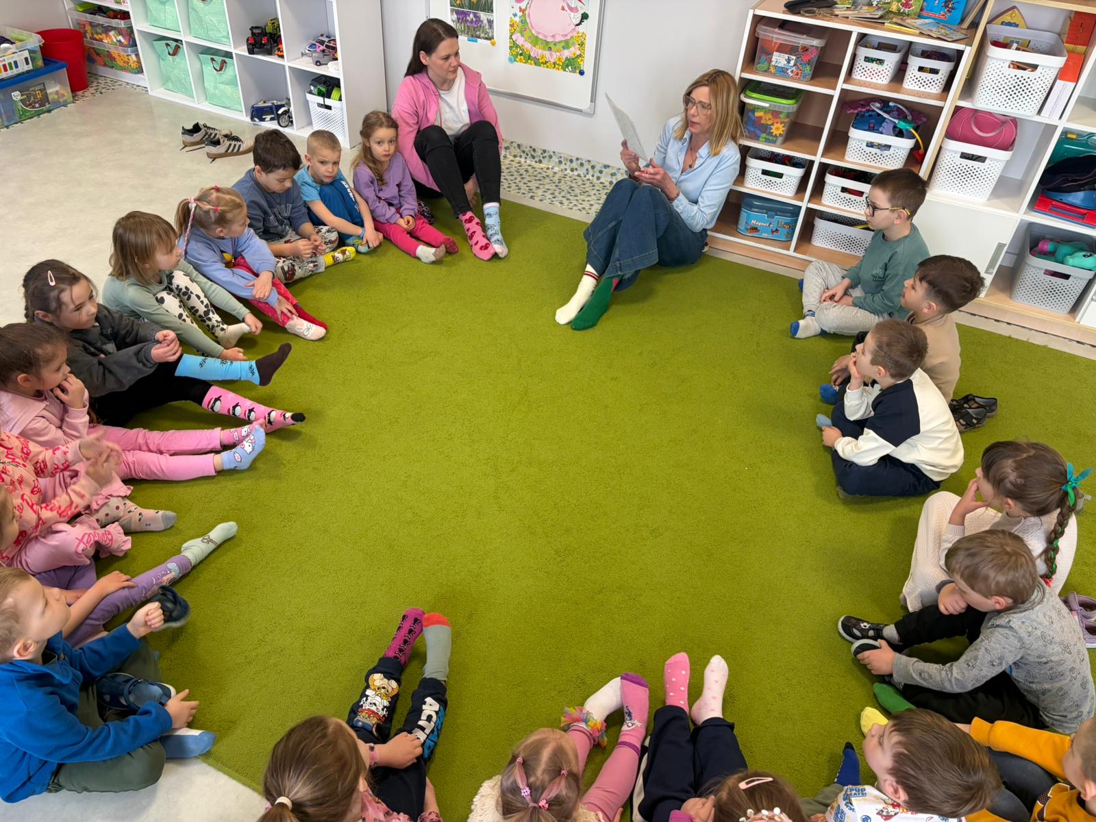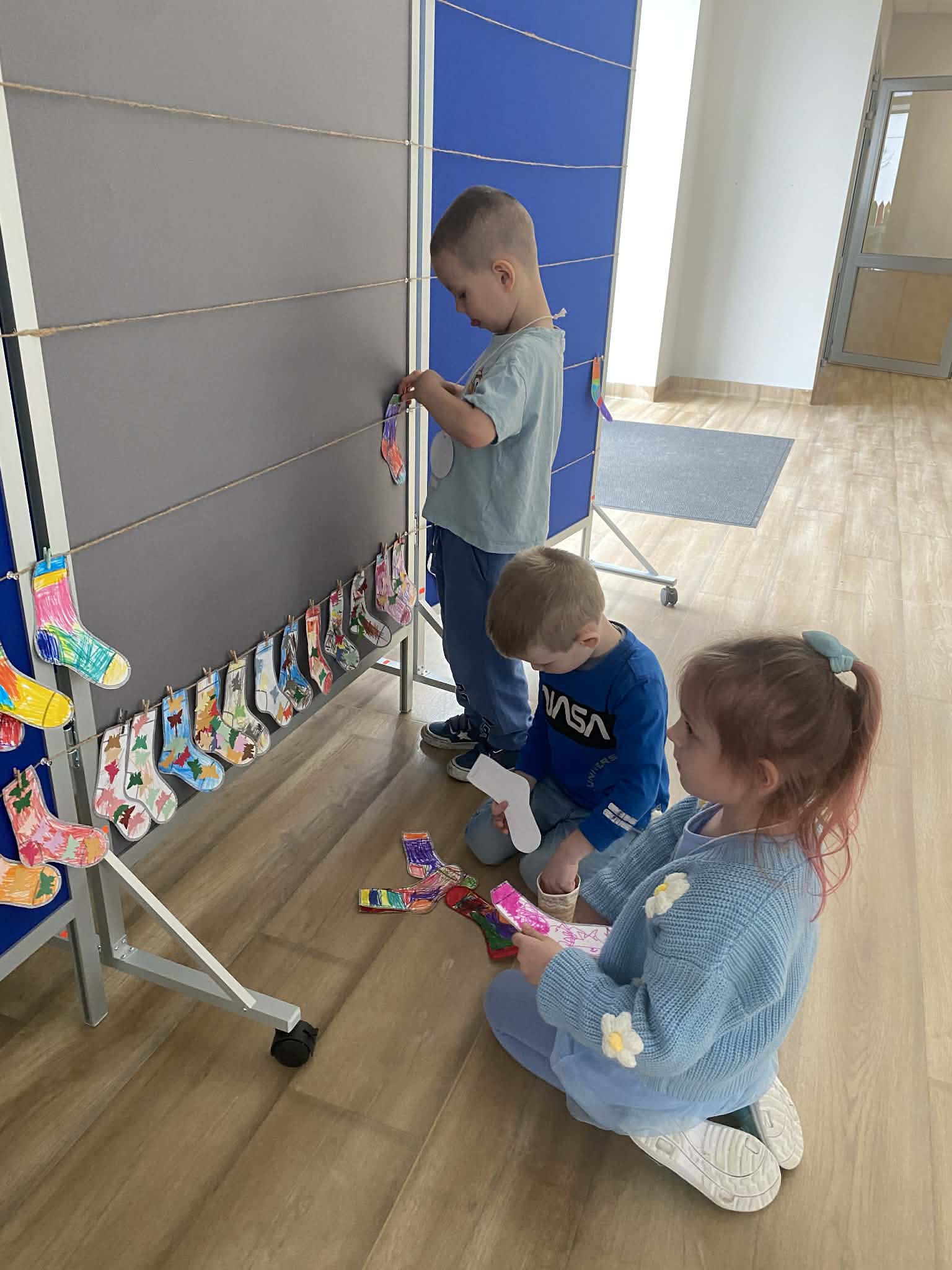 Dnia 20.03 26 roku w naszym przedszkolu obchodziliśmy Dzień Kolorowej Skarpetki – Światowy Dzień Zespołu Downa. Celem wydarzenia było zwiększenie u dzieci świadomości na temat Zespołu Downa, promowanie akceptacji i tolerancji. Wszystkie dzieci oraz pracownicy tego dnia ubrali skarpetki nie do pary, natomiast nauczycielki, odpowiedzialne za zorganizowanie tego święta odwiedziły każdy oddział, gdzie w sposób zrozumiały dla dzieci wytłumaczyły na czym polega ten dzień. Wykorzystały do tego piosenkę o kolorowych skarpetkach oraz bajkę pt.” Kolorowe skarpetki”. Następnie każda grupa miała zadanie, aby w dowolny sposób ozdobić dwie skarpetki oczywiście musiały być nie do pary. Na koniec dzieci przywiesiły swoje ozdobione skarpetki na korytarzu przedszkolnym. Dzień minął w atmosferze solidarności, radości, akceptacji i edukacji.