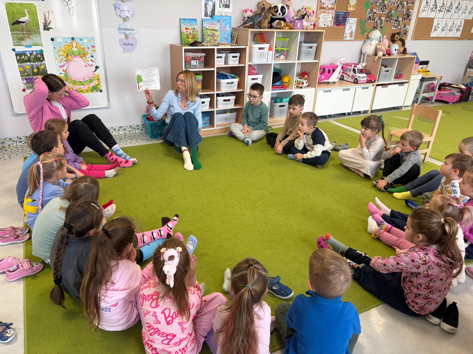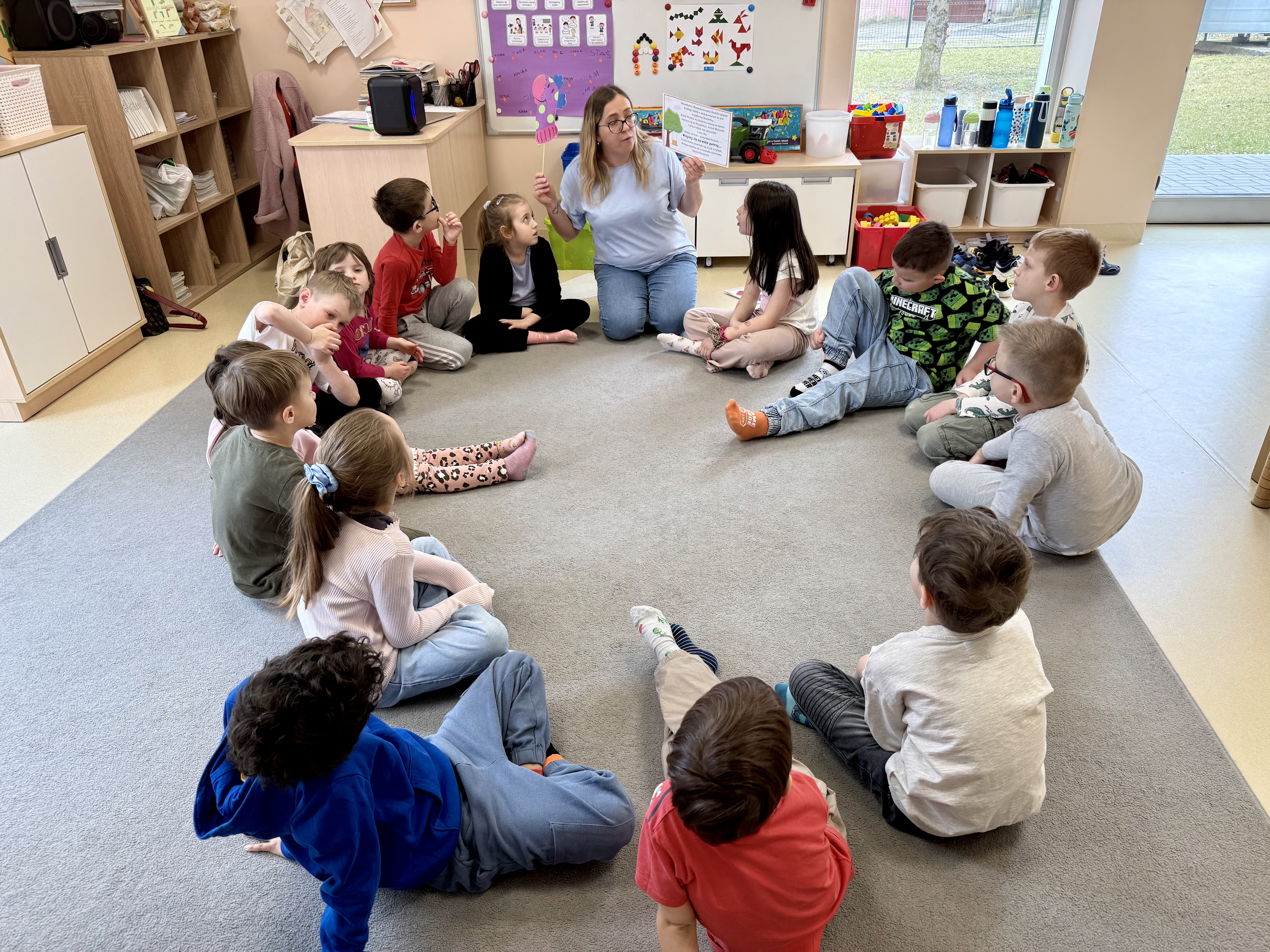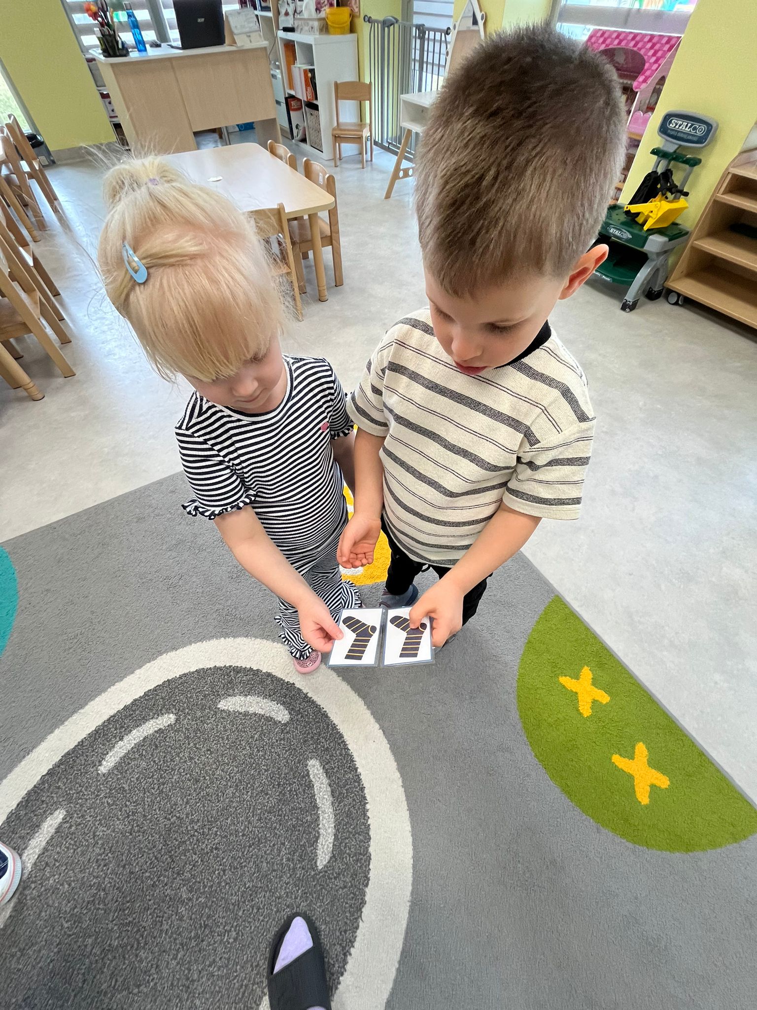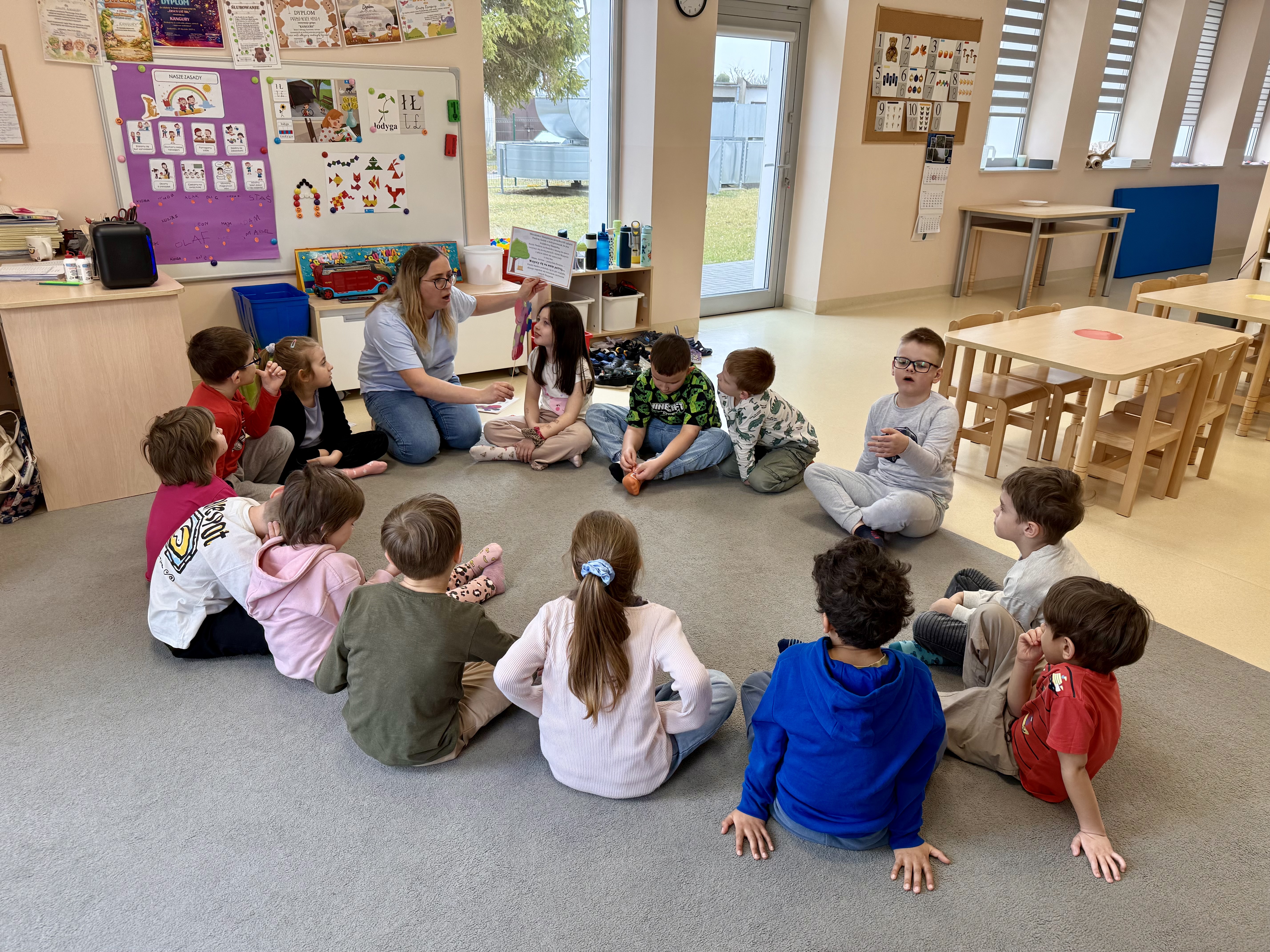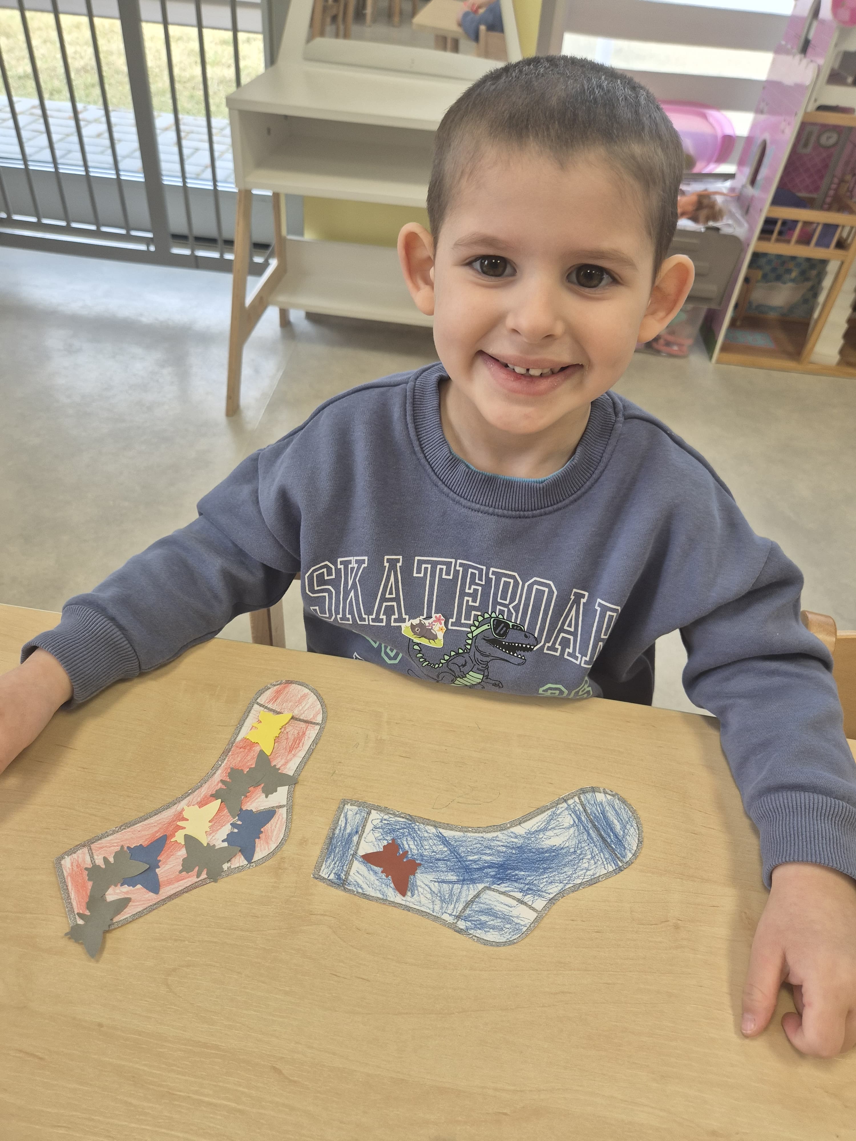Dnia 20.03 26 roku w naszym przedszkolu obchodziliśmy Dzień Kolorowej Skarpetki – Światowy Dzień Zespołu Downa. Celem wydarzenia było zwiększenie u dzieci świadomości na temat Zespołu Downa, promowanie akceptacji i tolerancji. Wszystkie dzieci oraz pracownicy tego dnia ubrali skarpetki nie do pary, natomiast nauczycielki, odpowiedzialne za zorganizowanie tego święta odwiedziły każdy oddział, gdzie w sposób zrozumiały dla dzieci wytłumaczyły na czym polega ten dzień. Wykorzystały do tego piosenkę o kolorowych skarpetkach oraz bajkę pt.” Kolorowe skarpetki”. Następnie każda grupa miała zadanie, aby w dowolny sposób ozdobić dwie skarpetki oczywiście musiały być nie do pary. Na koniec dzieci przywiesiły swoje ozdobione skarpetki na korytarzu przedszkolnym. Dzień minął w atmosferze solidarności, radości, akceptacji i edukacji.