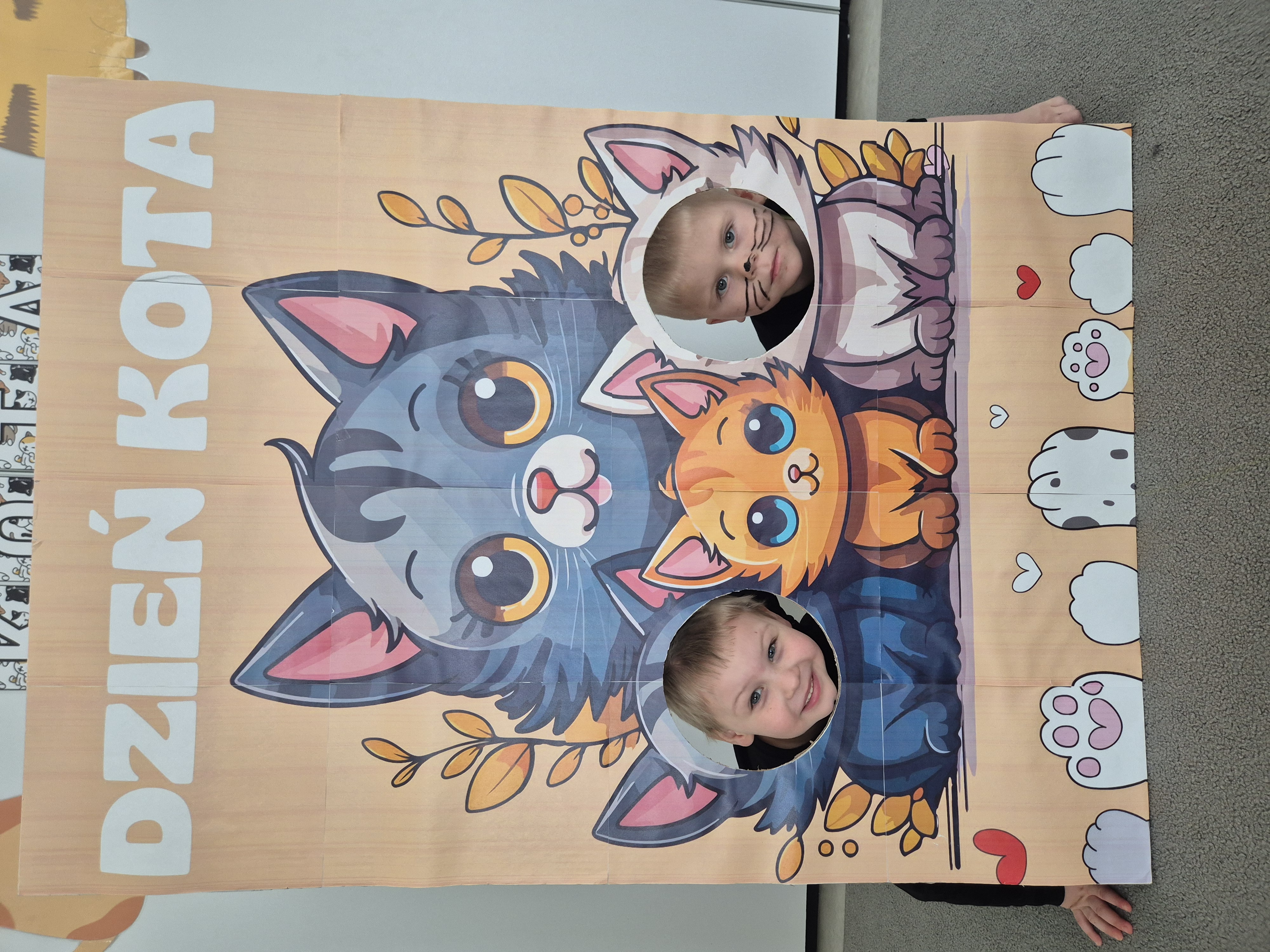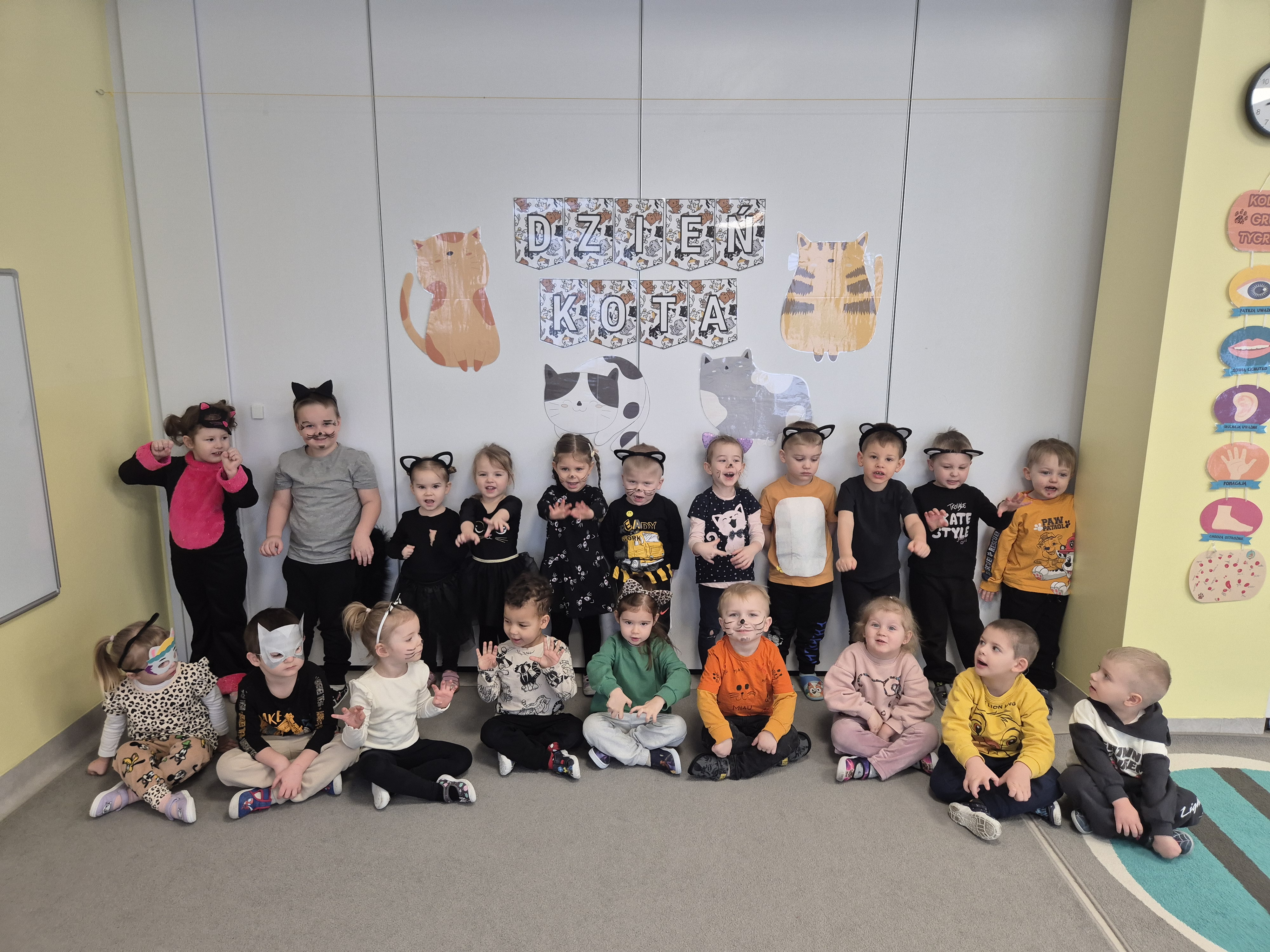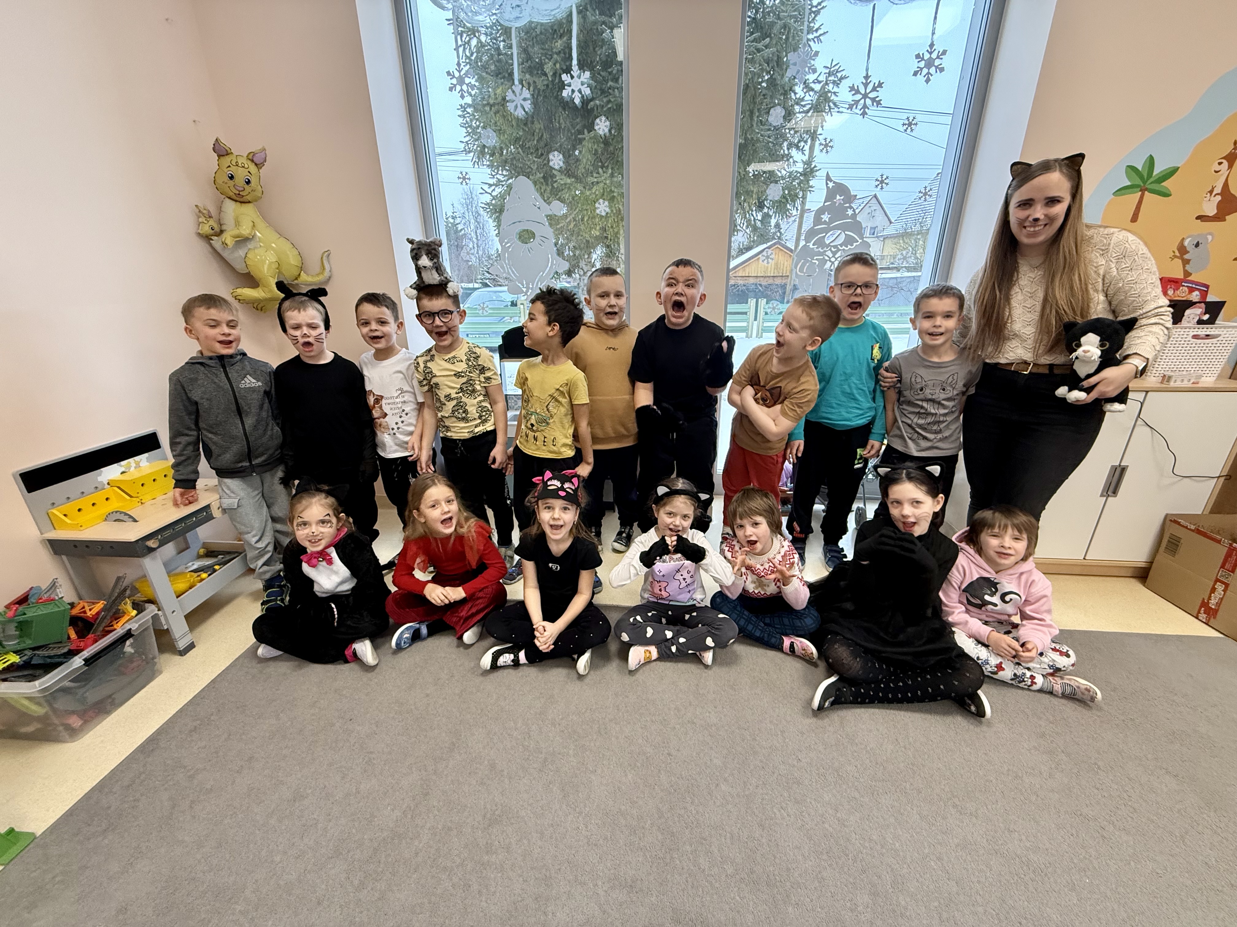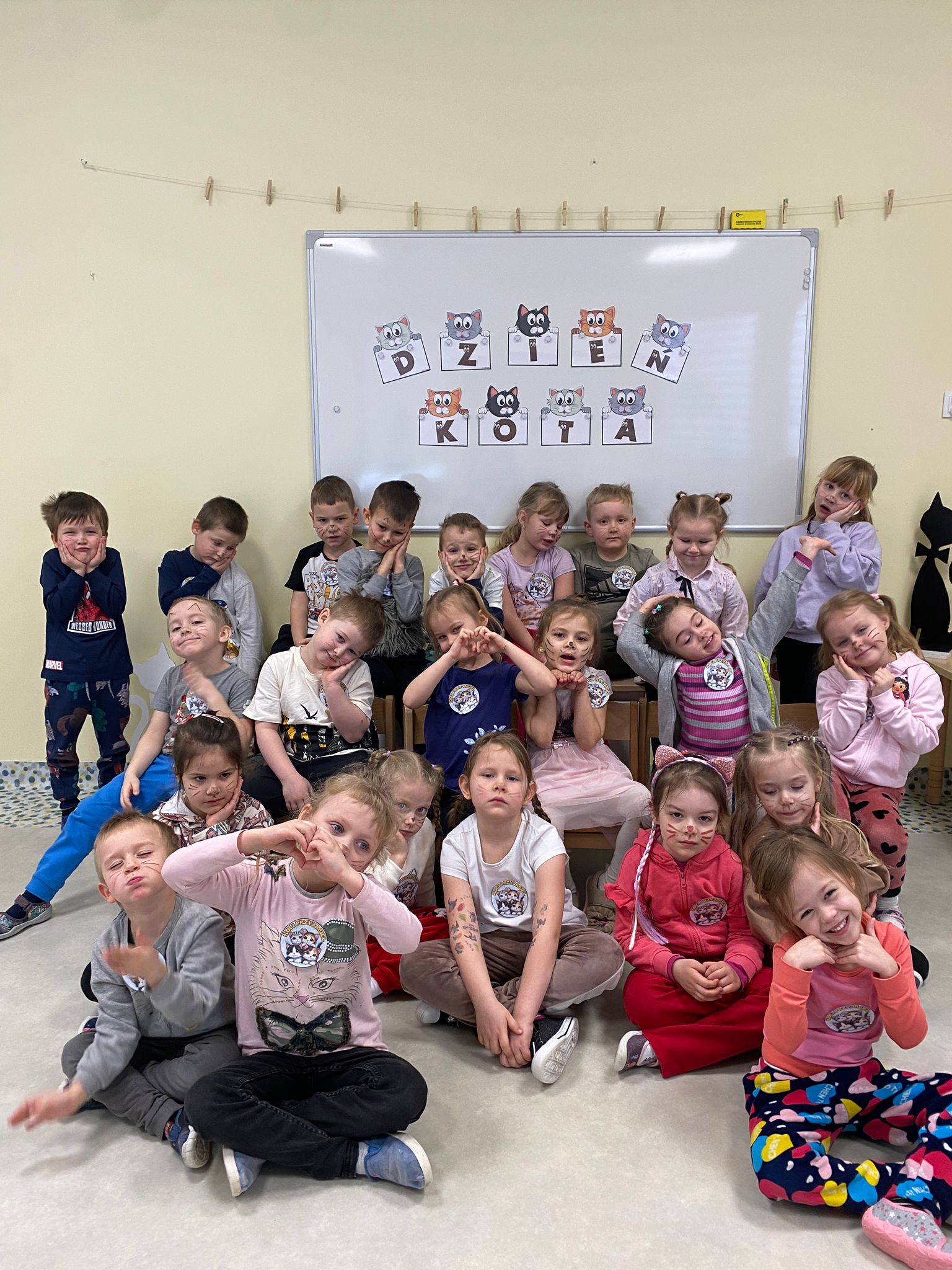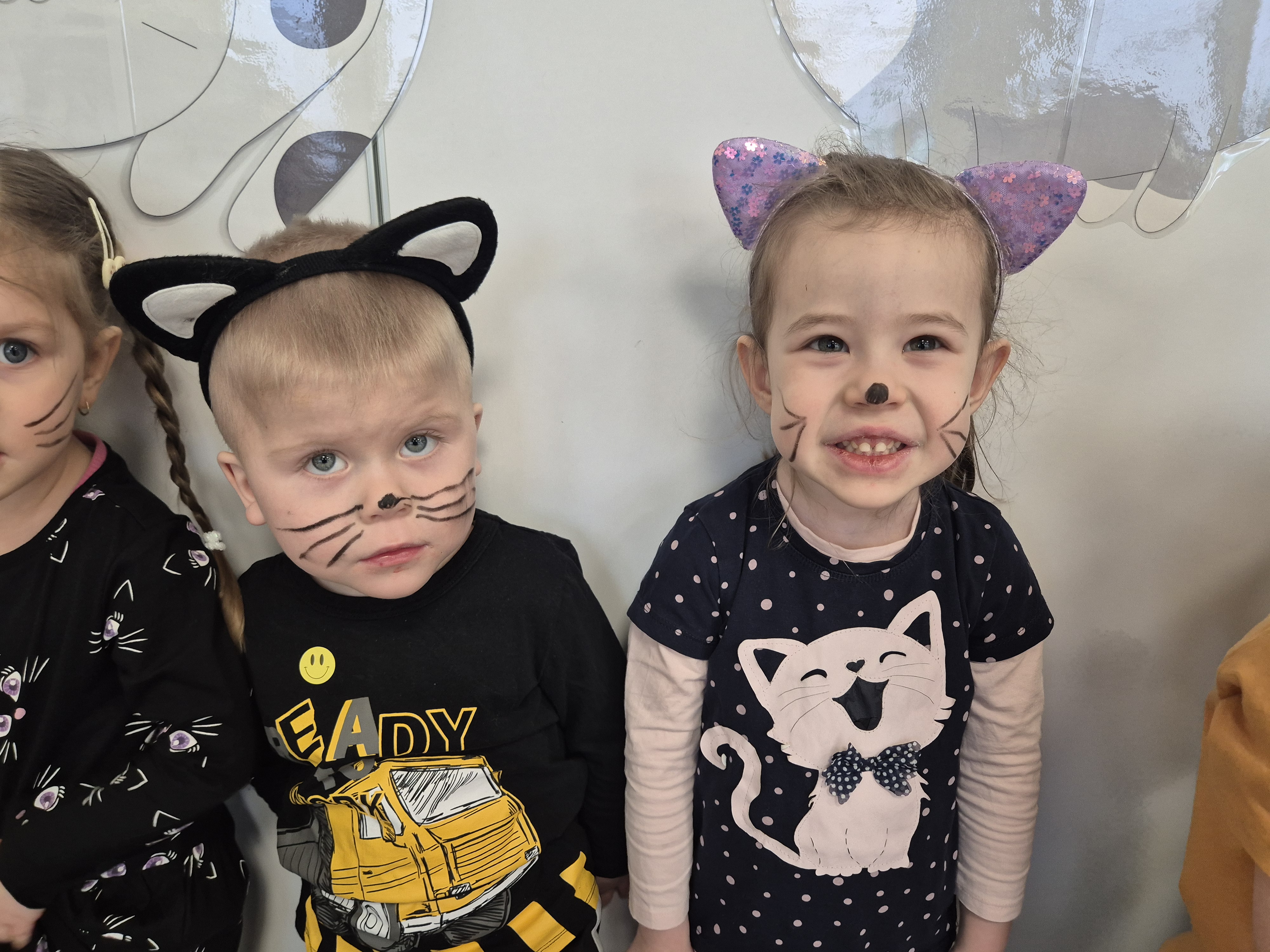 Dnia 17 lutego w naszym przedszkolu obchodziliśmy Dzień Kota. Celem zajęć było rozwijanie wrażliwości na potrzeby zwierząt oraz poszerzenie wiedzy dzieci na temat kotów. Tego dnia przedszkolaki przyszły ubrane w stroje z kocimi elementami – nie zabrakło opasek z uszkami, wąsików oraz ogonków. Dzieci z zainteresowaniem wysłuchały ciekawostek o kotach, poznały ich zwyczaje oraz dowiedziały się, jak należy dbać o domowe pupile. Rozmawialiśmy również o znanych kotach z bajek, takich jak Garfield czy Kot w Butach. Podczas zajęć plastycznych dzieci wykonały prace przedstawiające koty różnymi technikami. Nie zabrakło także zabaw ruchowych, takich jak „Kocie polowanie” oraz „Spacer kotka”, które dostarczyły wszystkim wiele radości i śmiechu. Na zakończenie dnia dzieci wspólnie śpiewały piosenki o kotach oraz obejrzały krótką bajkę edukacyjną. Był to dzień pełen uśmiechu, zabawy i nowych doświadczeń.