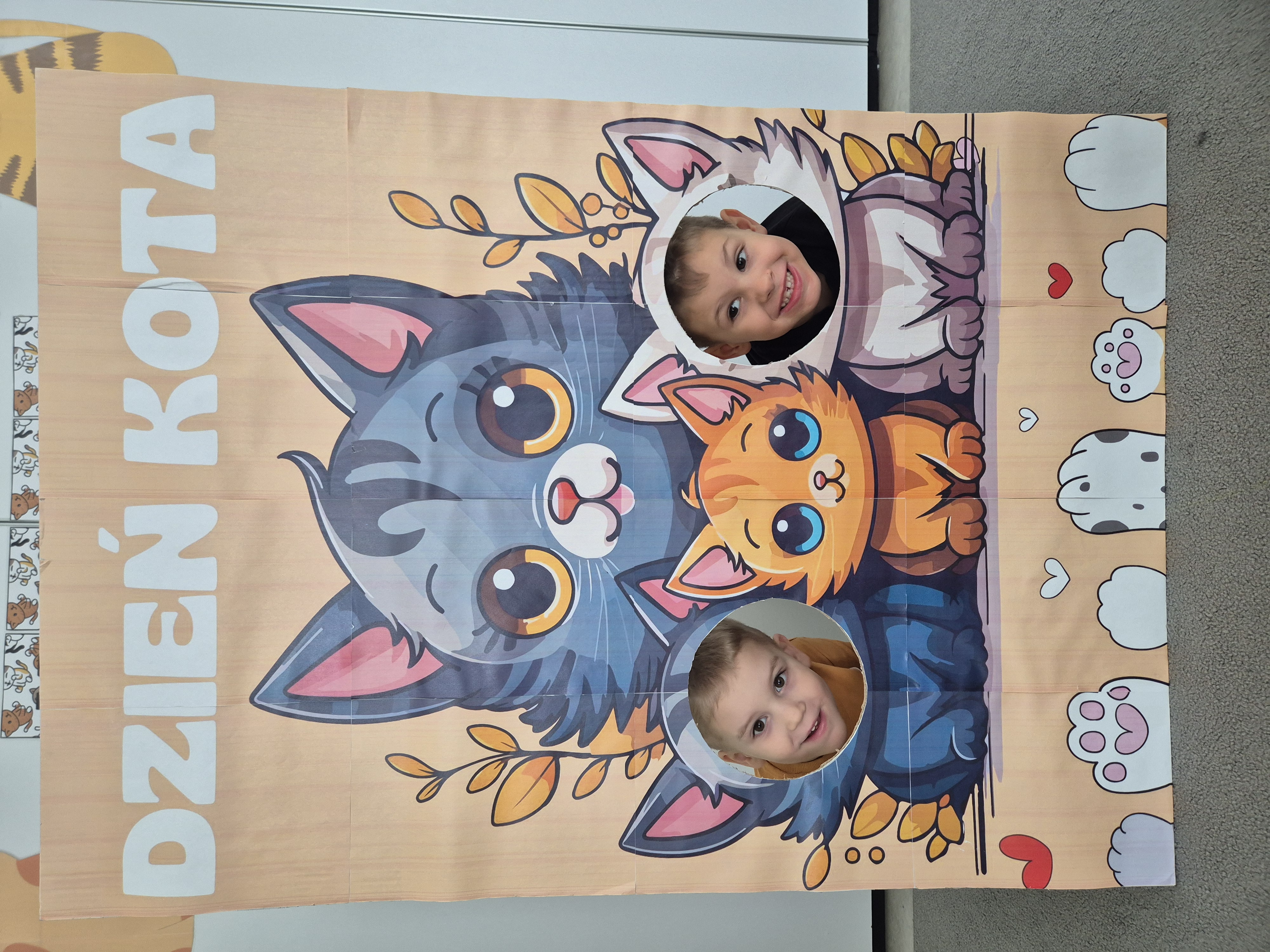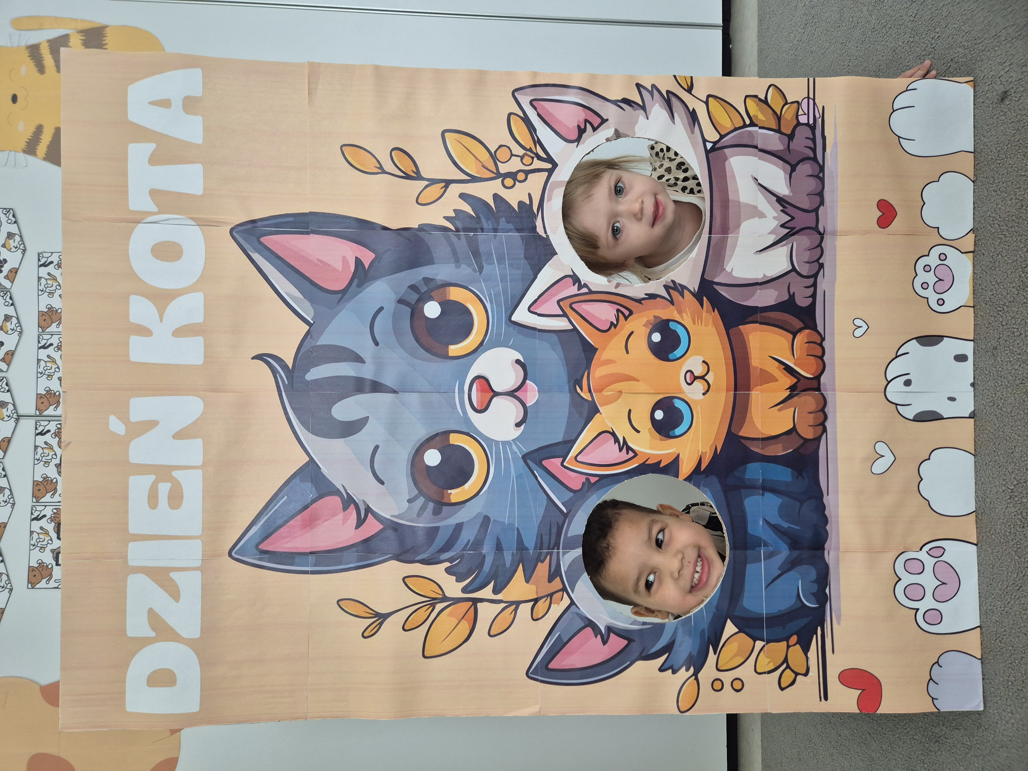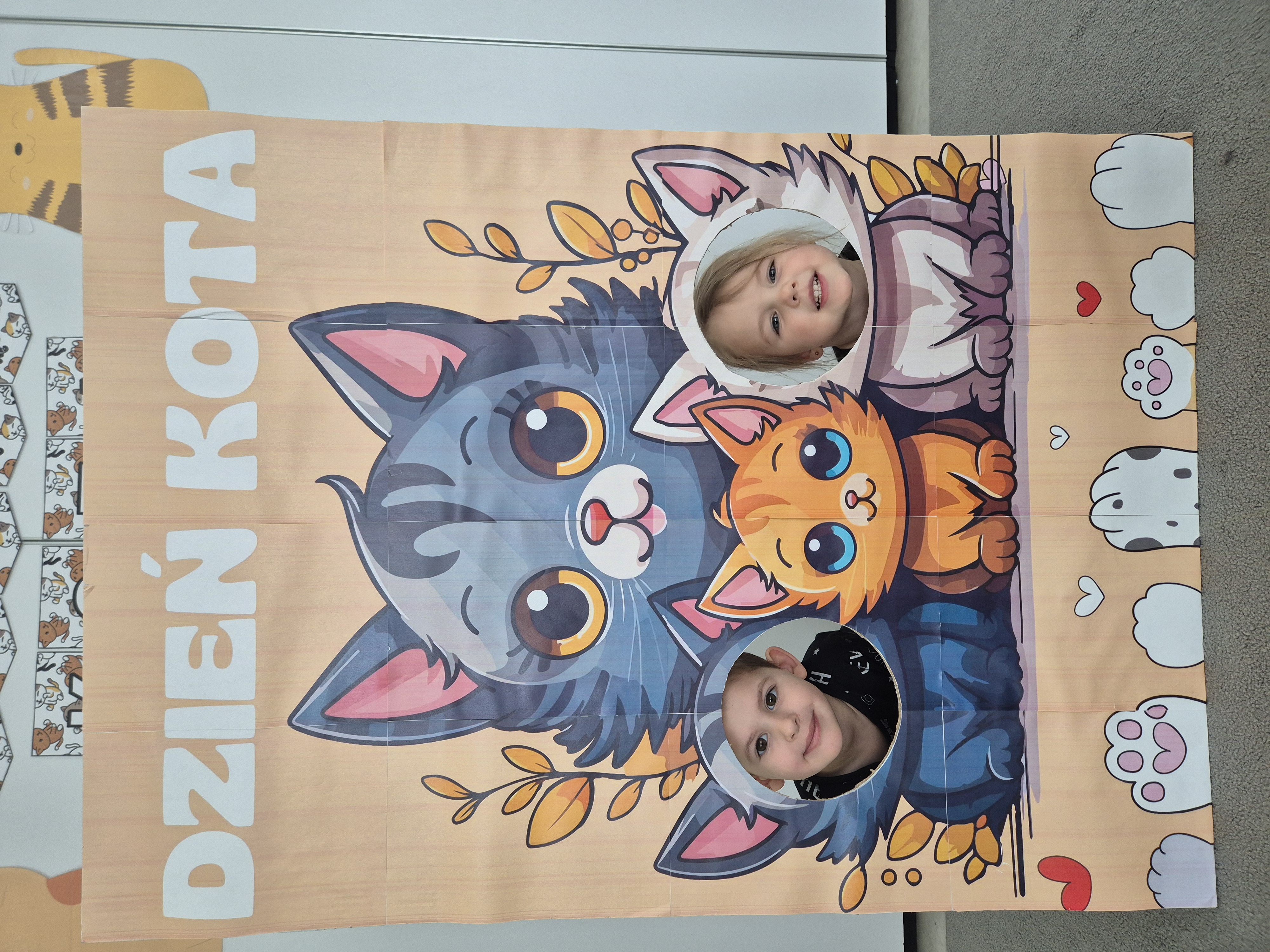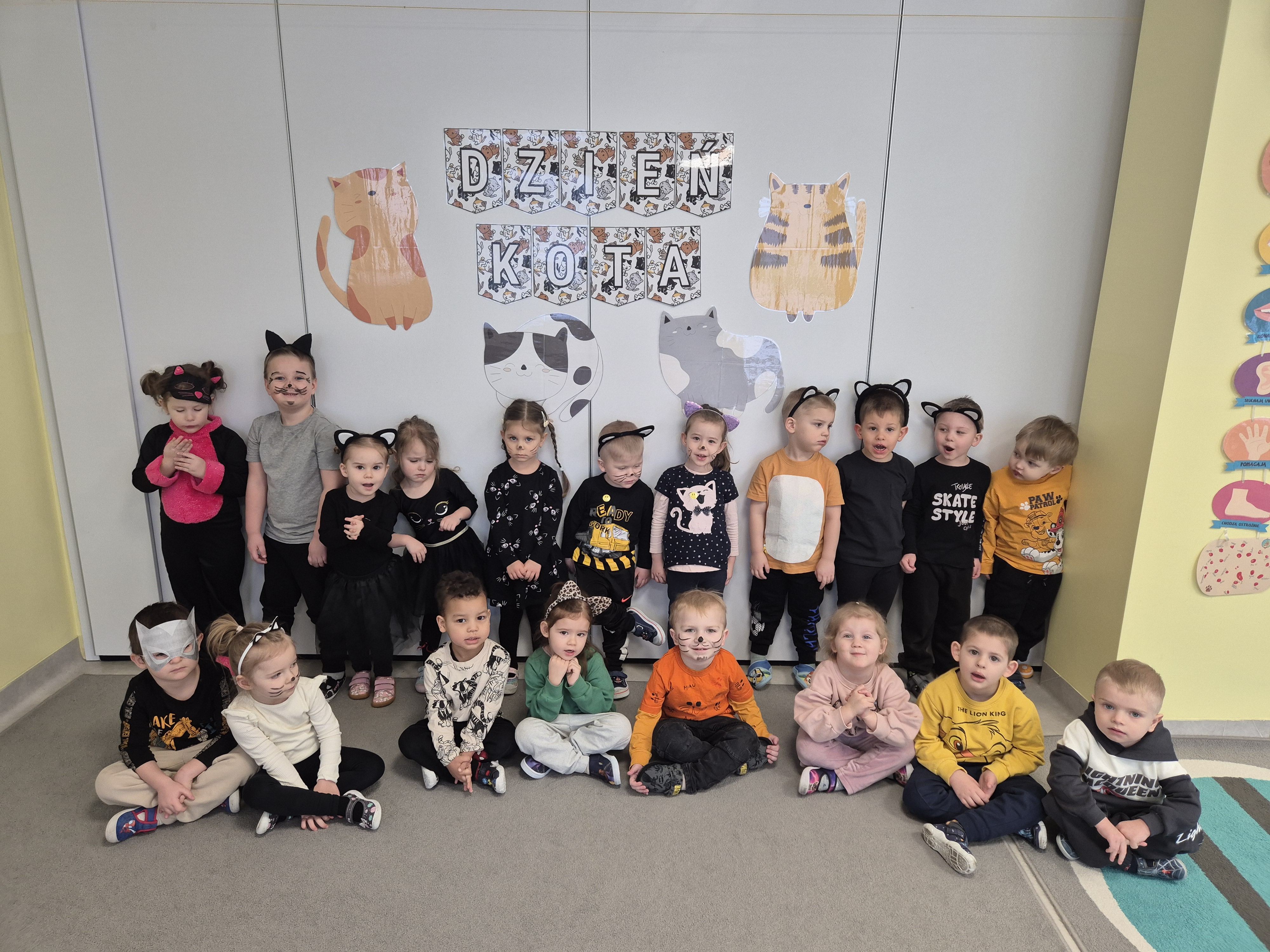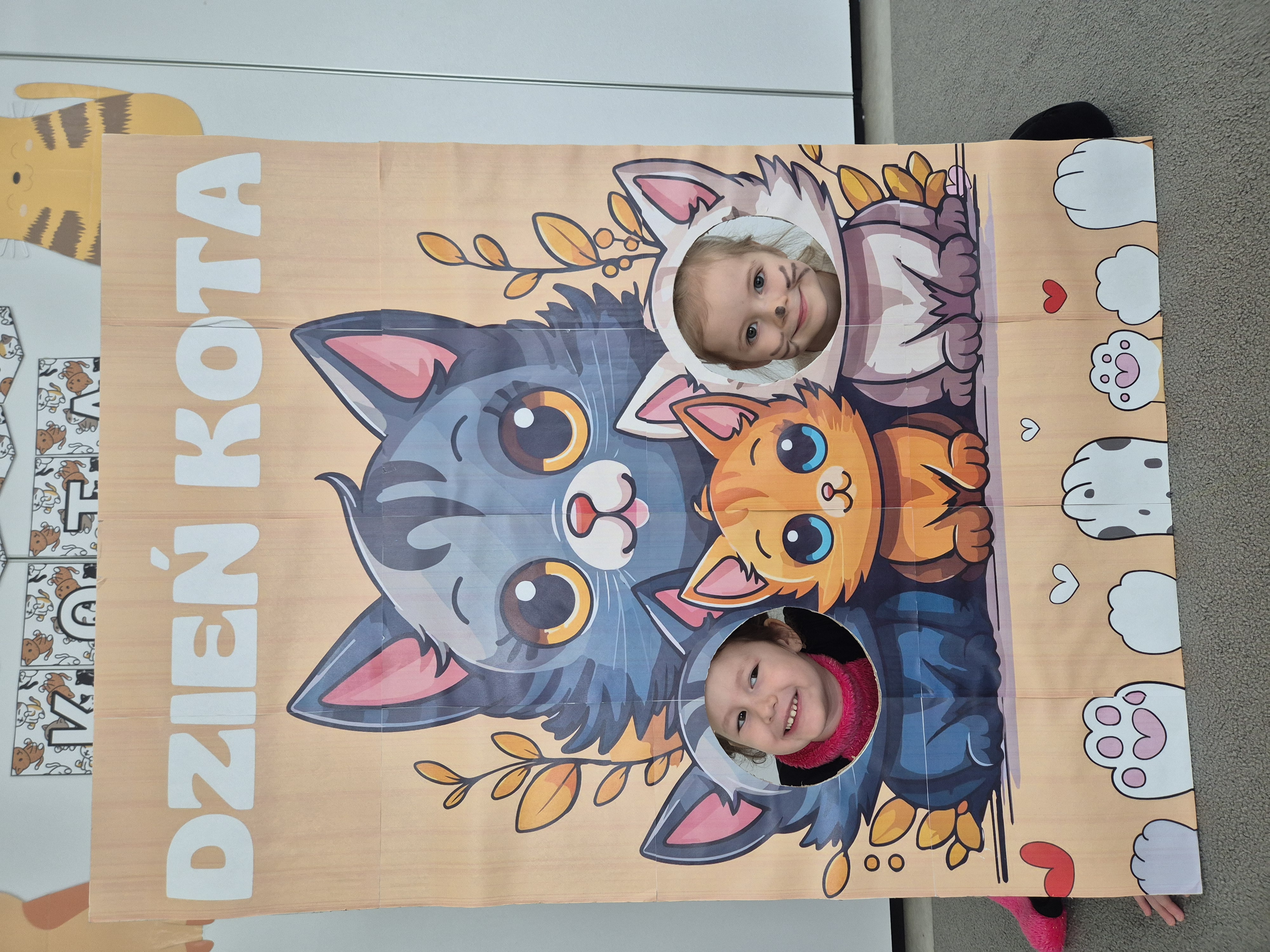 Dnia 17 lutego w naszym przedszkolu obchodziliśmy Dzień Kota. Celem zajęć było rozwijanie wrażliwości na potrzeby zwierząt oraz poszerzenie wiedzy dzieci na temat kotów. Tego dnia przedszkolaki przyszły ubrane w stroje z kocimi elementami – nie zabrakło opasek z uszkami, wąsików oraz ogonków. Dzieci z zainteresowaniem wysłuchały ciekawostek o kotach, poznały ich zwyczaje oraz dowiedziały się, jak należy dbać o domowe pupile. Rozmawialiśmy również o znanych kotach z bajek, takich jak Garfield czy Kot w Butach. Podczas zajęć plastycznych dzieci wykonały prace przedstawiające koty różnymi technikami. Nie zabrakło także zabaw ruchowych, takich jak „Kocie polowanie” oraz „Spacer kotka”, które dostarczyły wszystkim wiele radości i śmiechu. Na zakończenie dnia dzieci wspólnie śpiewały piosenki o kotach oraz obejrzały krótką bajkę edukacyjną. Był to dzień pełen uśmiechu, zabawy i nowych doświadczeń.
