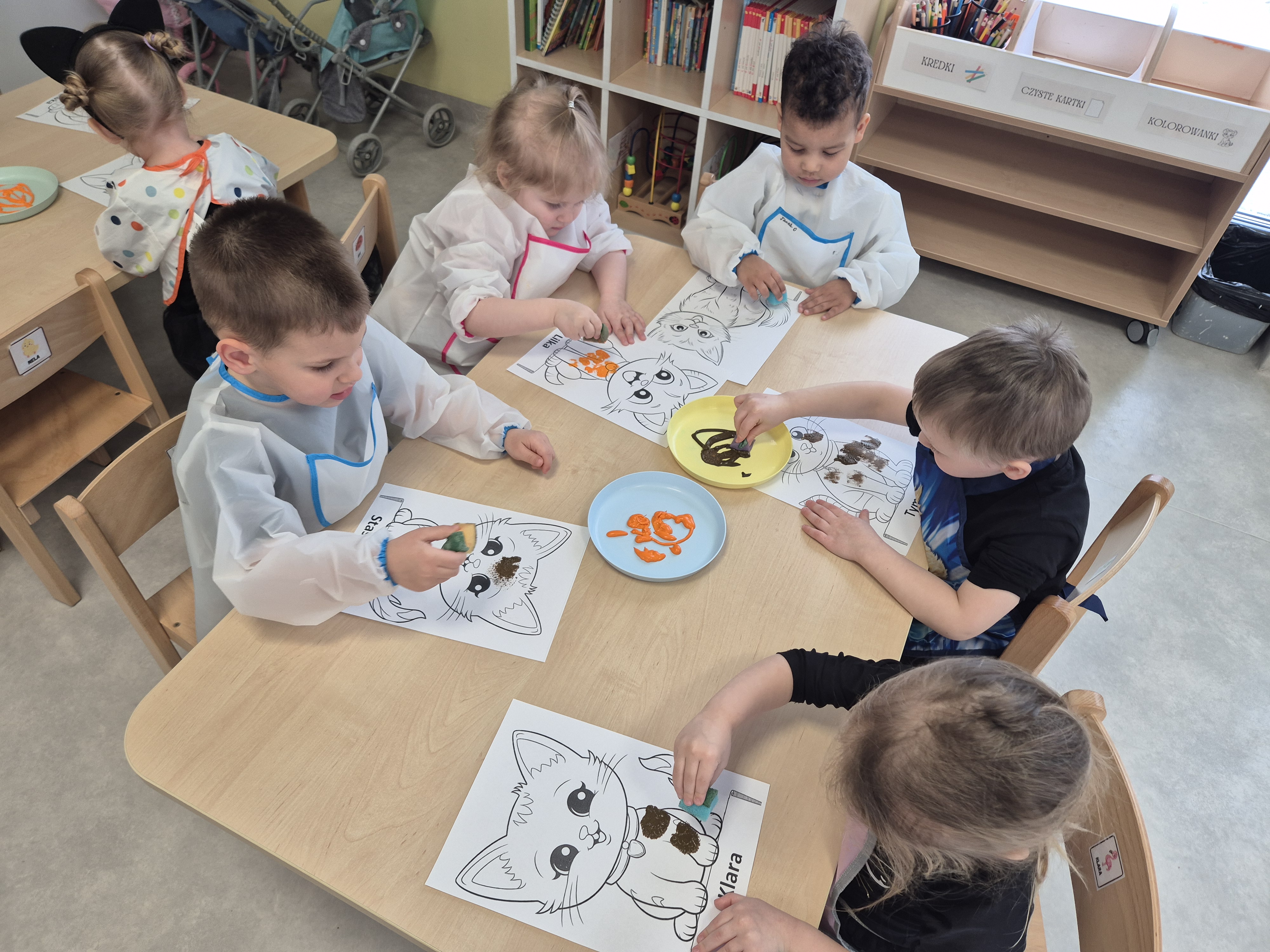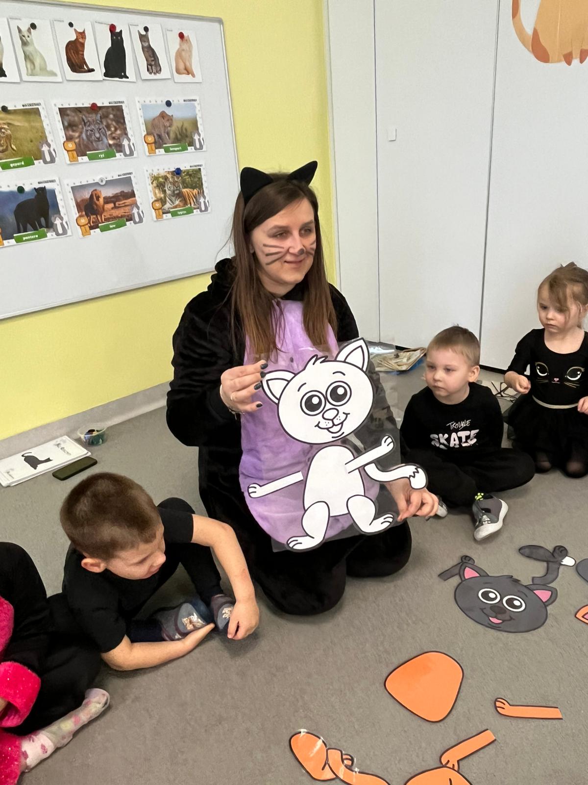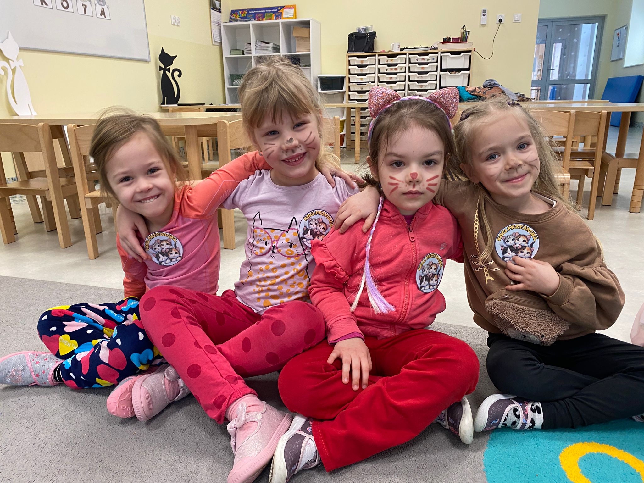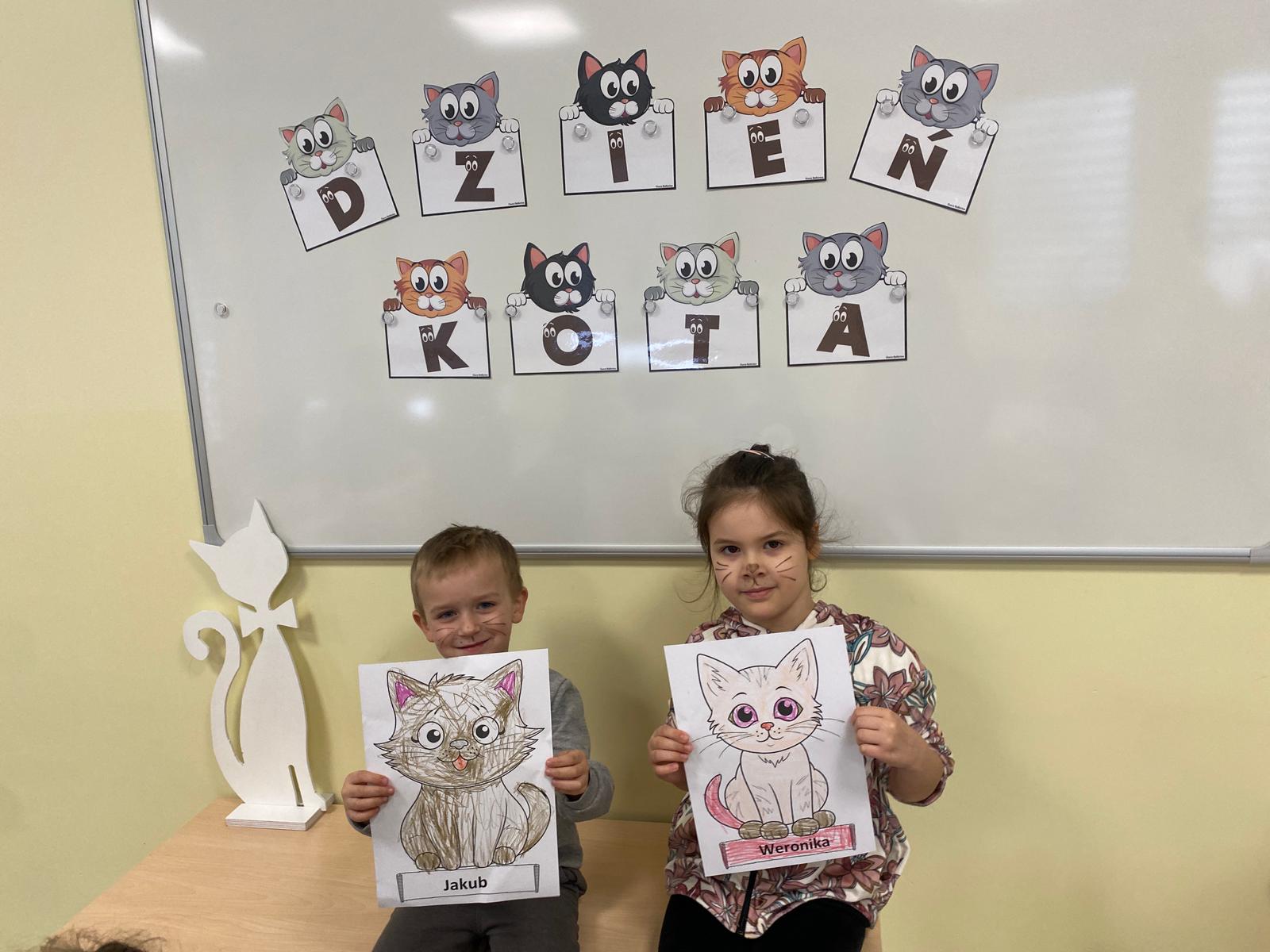 Dnia 17 lutego w naszym przedszkolu obchodziliśmy Dzień Kota. Celem zajęć było rozwijanie wrażliwości na potrzeby zwierząt oraz poszerzenie wiedzy dzieci na temat kotów. Tego dnia przedszkolaki przyszły ubrane w stroje z kocimi elementami – nie zabrakło opasek z uszkami, wąsików oraz ogonków. Dzieci z zainteresowaniem wysłuchały ciekawostek o kotach, poznały ich zwyczaje oraz dowiedziały się, jak należy dbać o domowe pupile. Rozmawialiśmy również o znanych kotach z bajek, takich jak Garfield czy Kot w Butach. Podczas zajęć plastycznych dzieci wykonały prace przedstawiające koty różnymi technikami. Nie zabrakło także zabaw ruchowych, takich jak „Kocie polowanie” oraz „Spacer kotka”, które dostarczyły wszystkim wiele radości i śmiechu. Na zakończenie dnia dzieci wspólnie śpiewały piosenki o kotach oraz obejrzały krótką bajkę edukacyjną. Był to dzień pełen uśmiechu, zabawy i nowych doświadczeń.