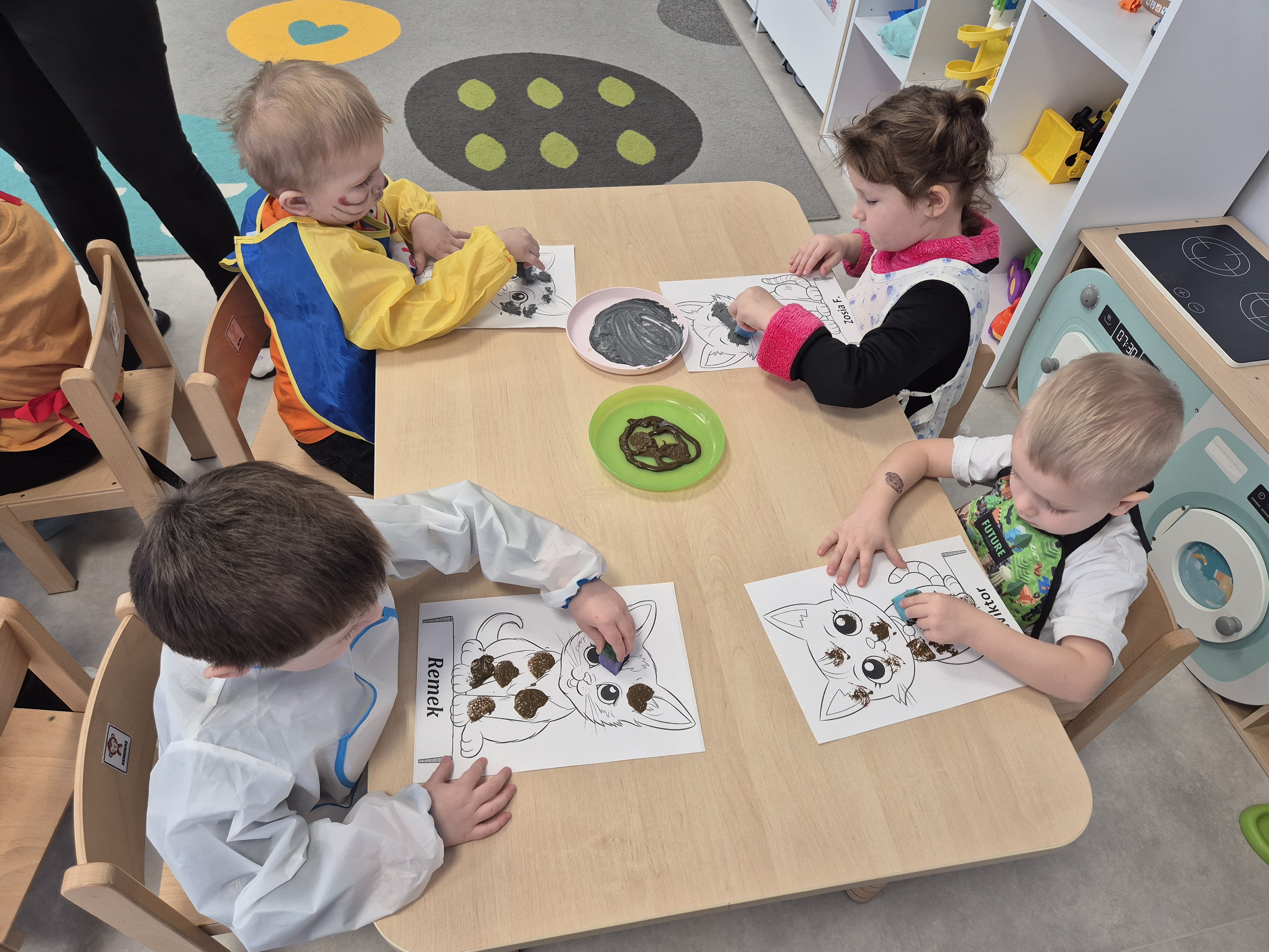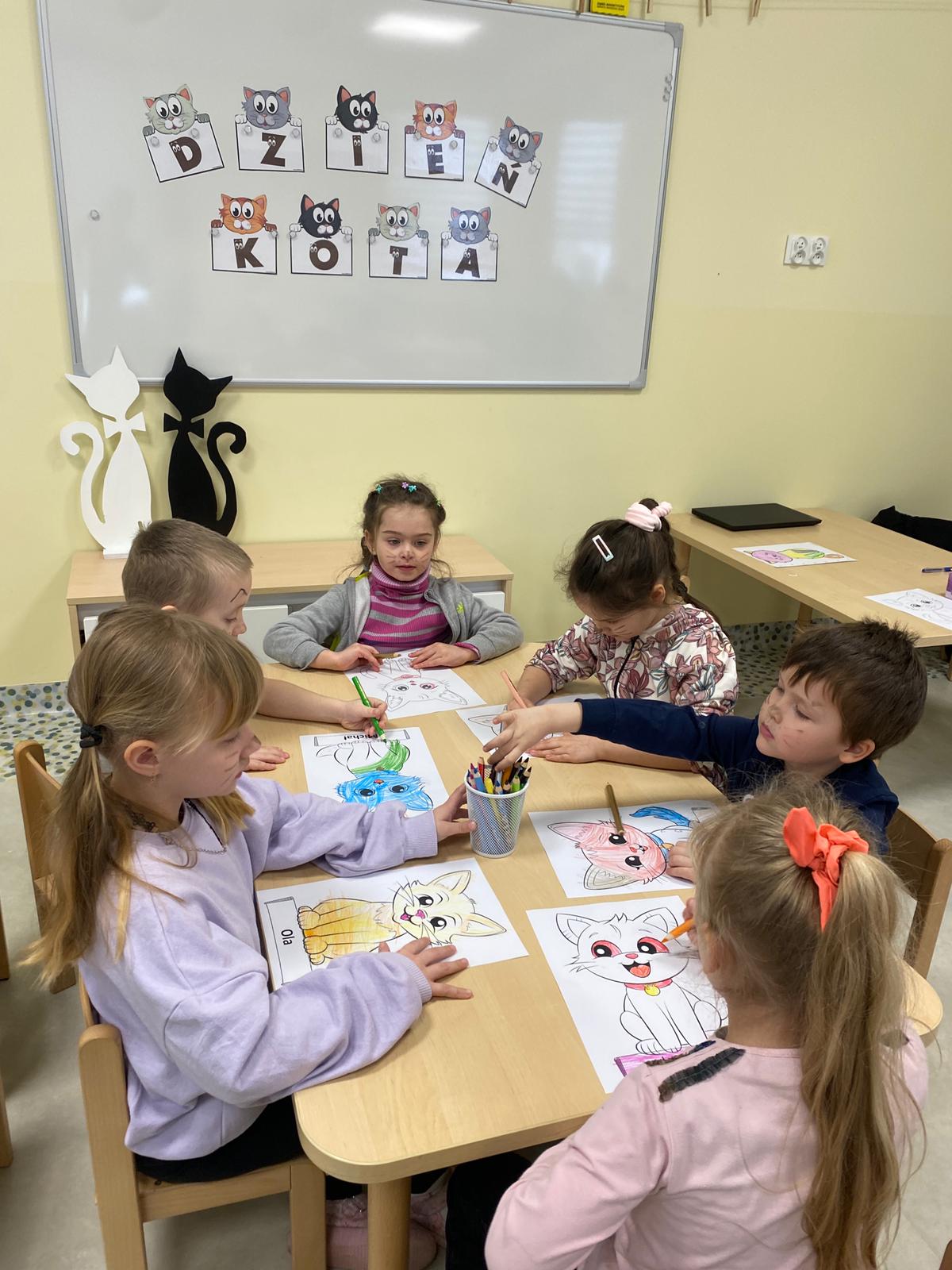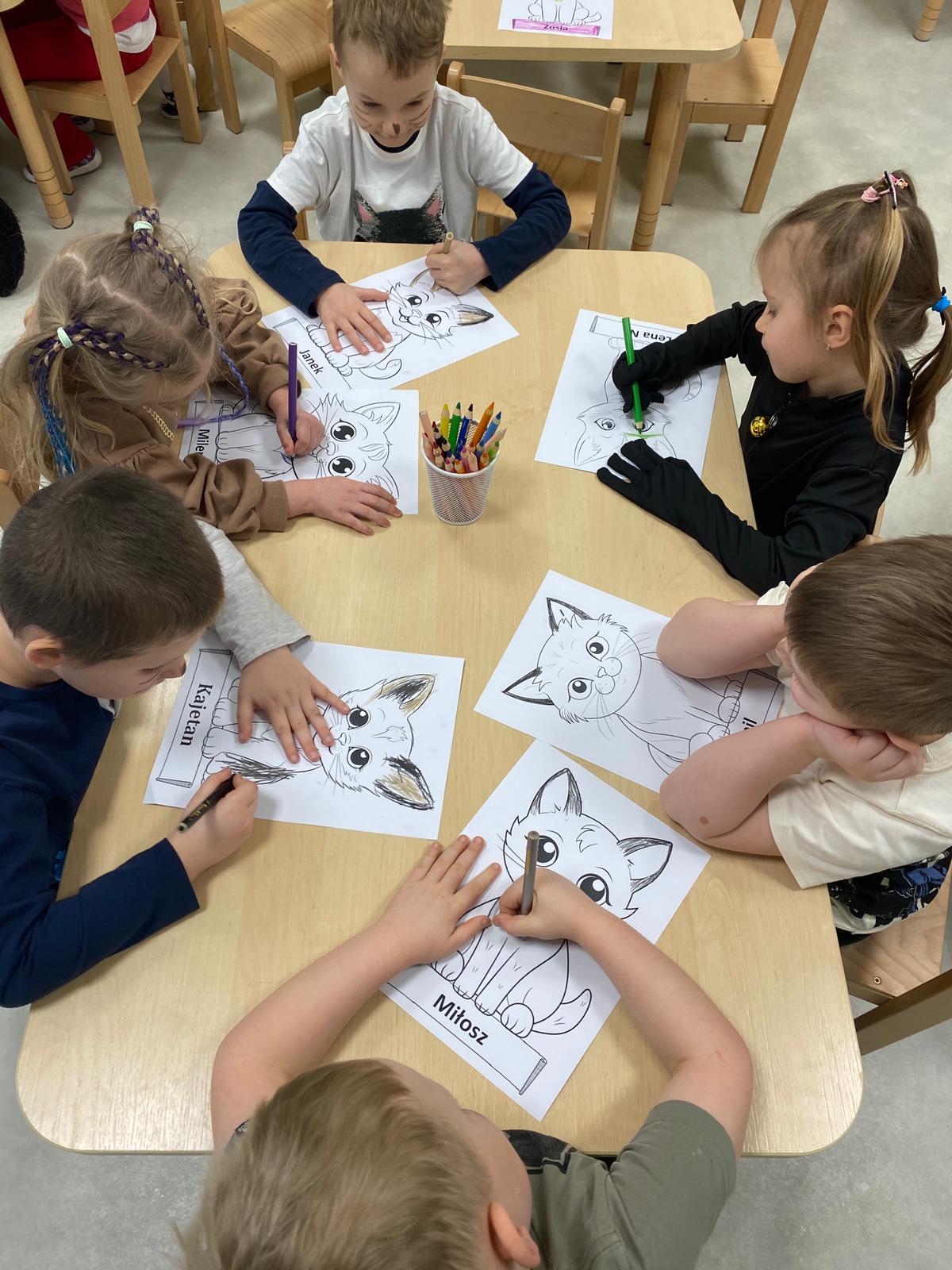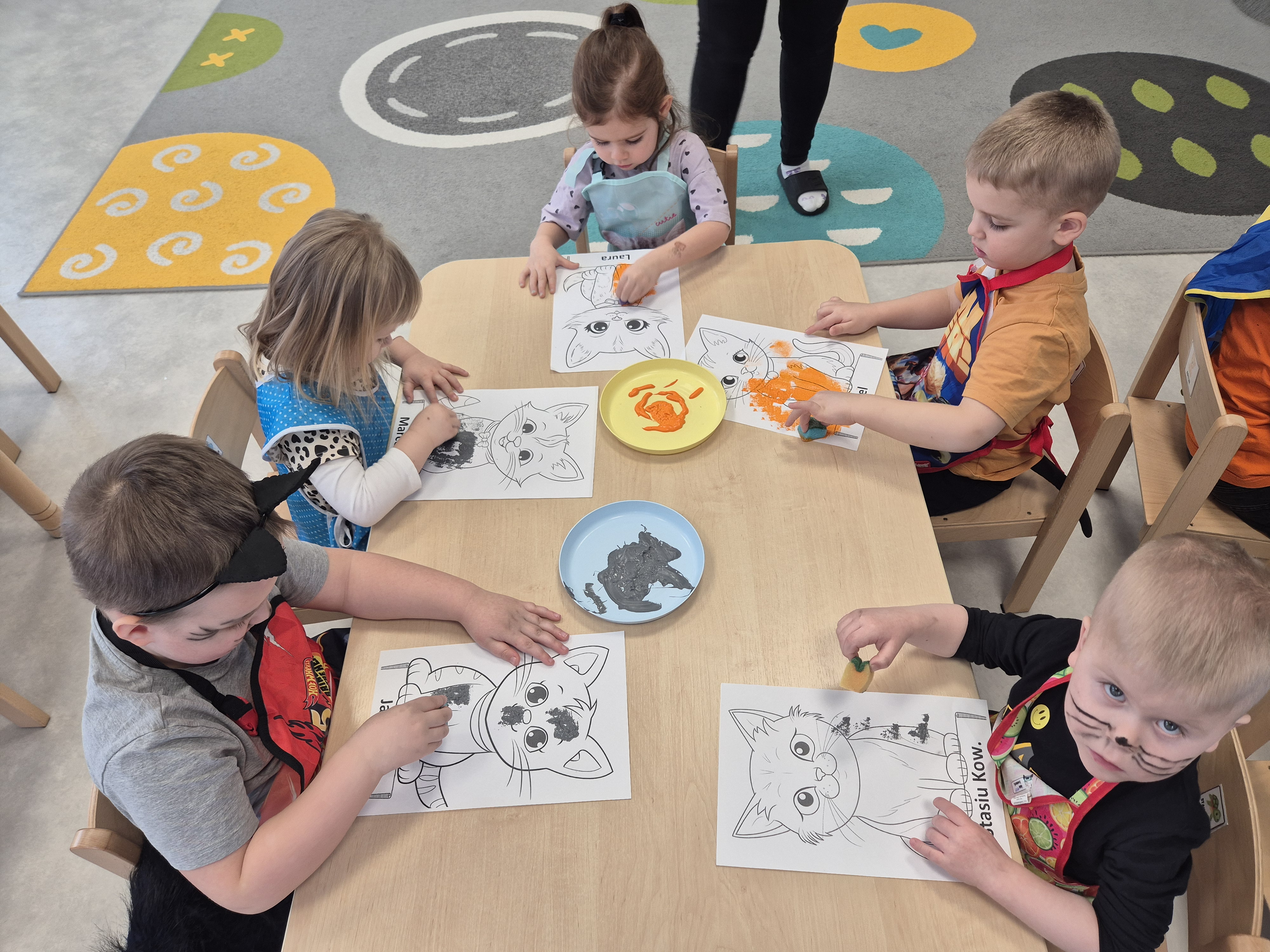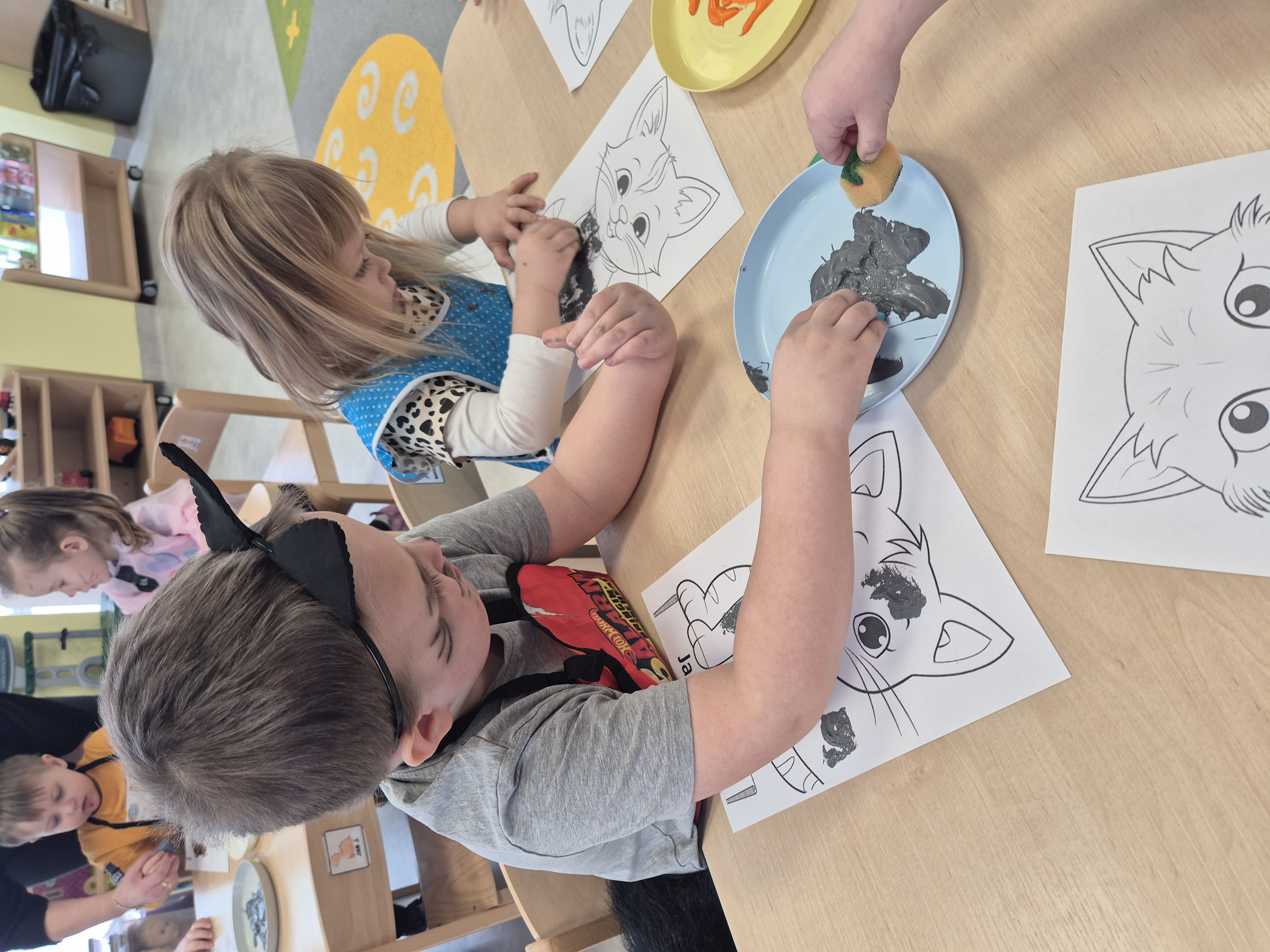 Dnia 17 lutego w naszym przedszkolu obchodziliśmy Dzień Kota. Celem zajęć było rozwijanie wrażliwości na potrzeby zwierząt oraz poszerzenie wiedzy dzieci na temat kotów. Tego dnia przedszkolaki przyszły ubrane w stroje z kocimi elementami – nie zabrakło opasek z uszkami, wąsików oraz ogonków. Dzieci z zainteresowaniem wysłuchały ciekawostek o kotach, poznały ich zwyczaje oraz dowiedziały się, jak należy dbać o domowe pupile. Rozmawialiśmy również o znanych kotach z bajek, takich jak Garfield czy Kot w Butach. Podczas zajęć plastycznych dzieci wykonały prace przedstawiające koty różnymi technikami. Nie zabrakło także zabaw ruchowych, takich jak „Kocie polowanie” oraz „Spacer kotka”, które dostarczyły wszystkim wiele radości i śmiechu. Na zakończenie dnia dzieci wspólnie śpiewały piosenki o kotach oraz obejrzały krótką bajkę edukacyjną. Był to dzień pełen uśmiechu, zabawy i nowych doświadczeń.