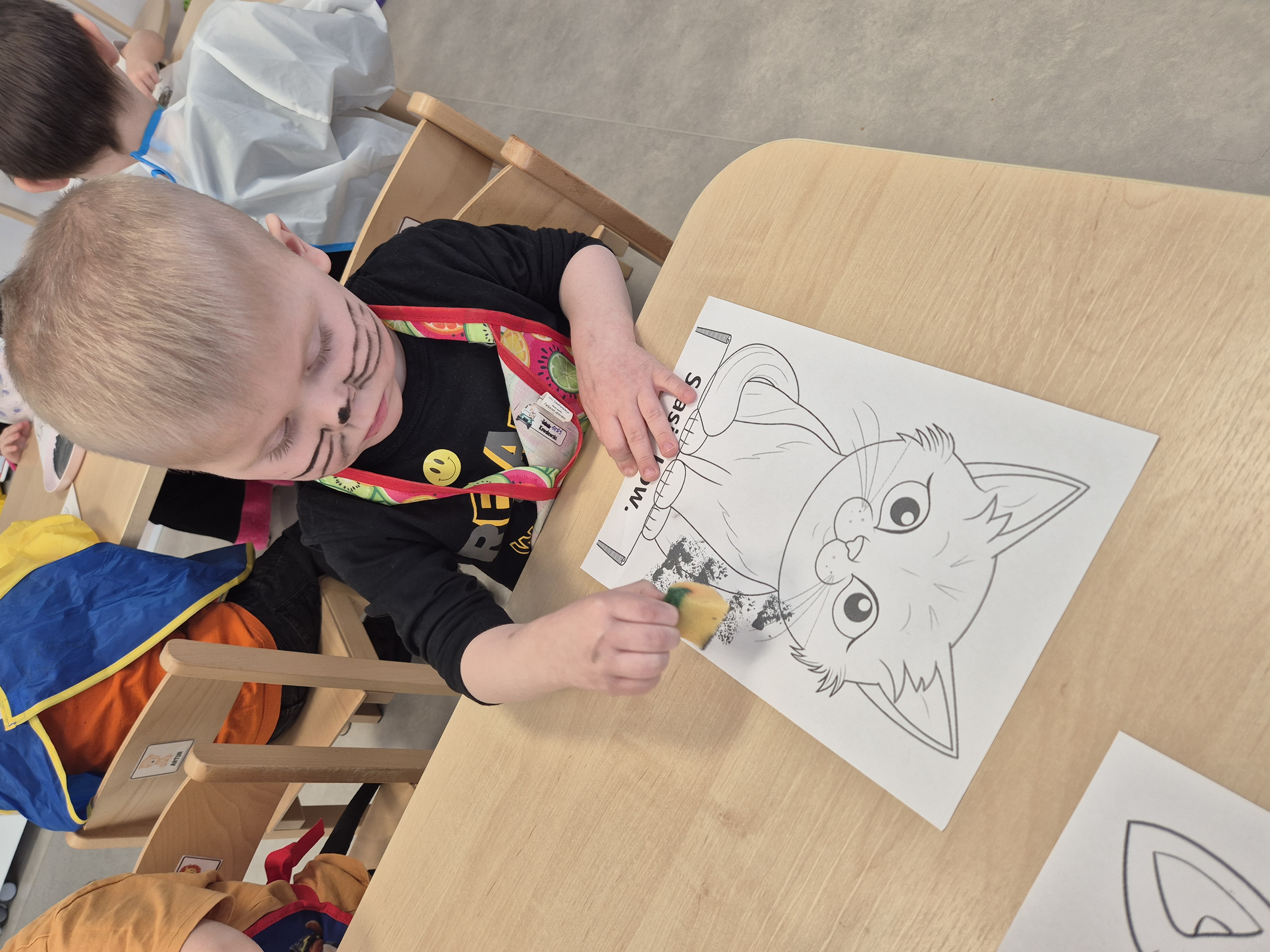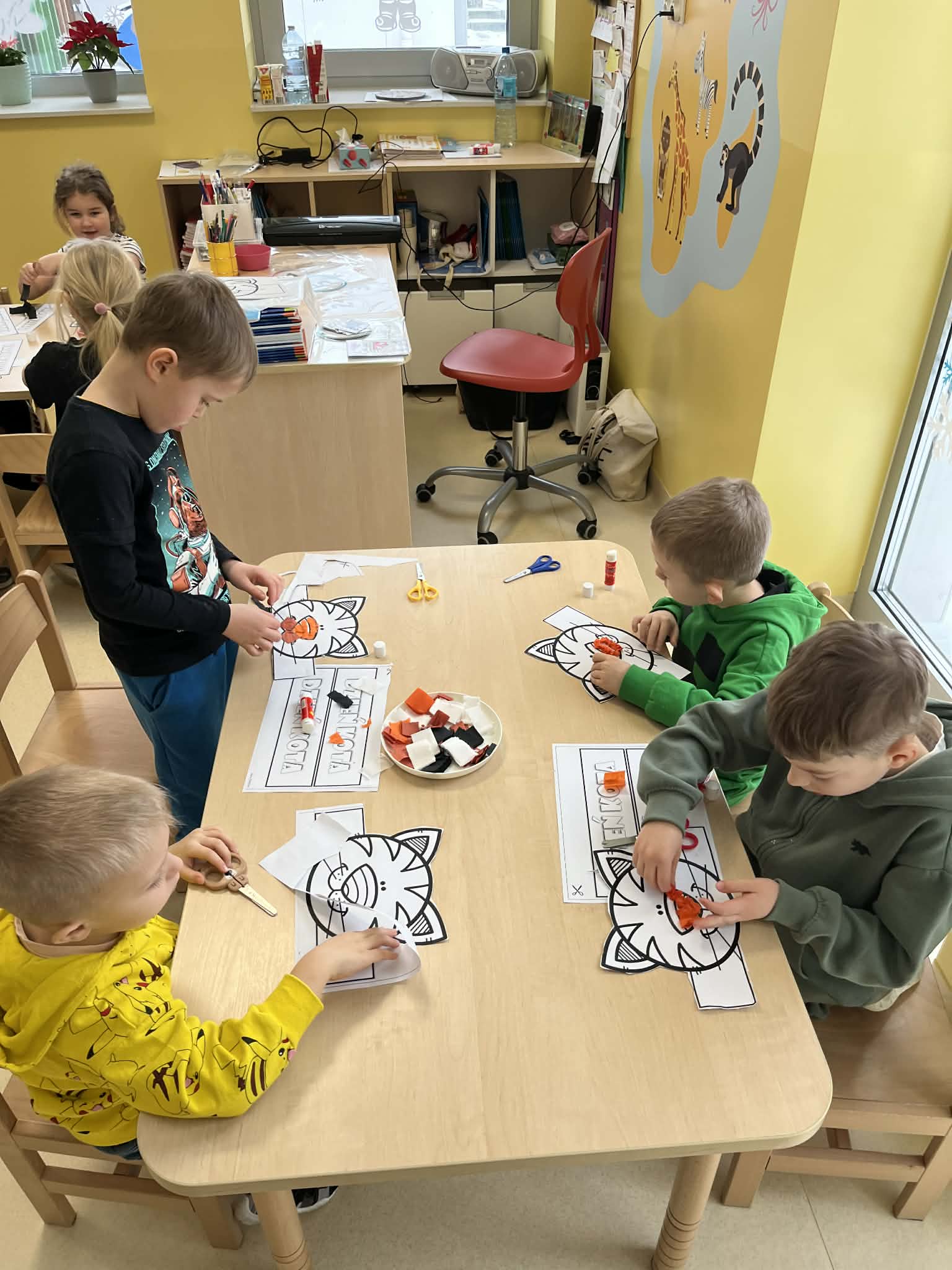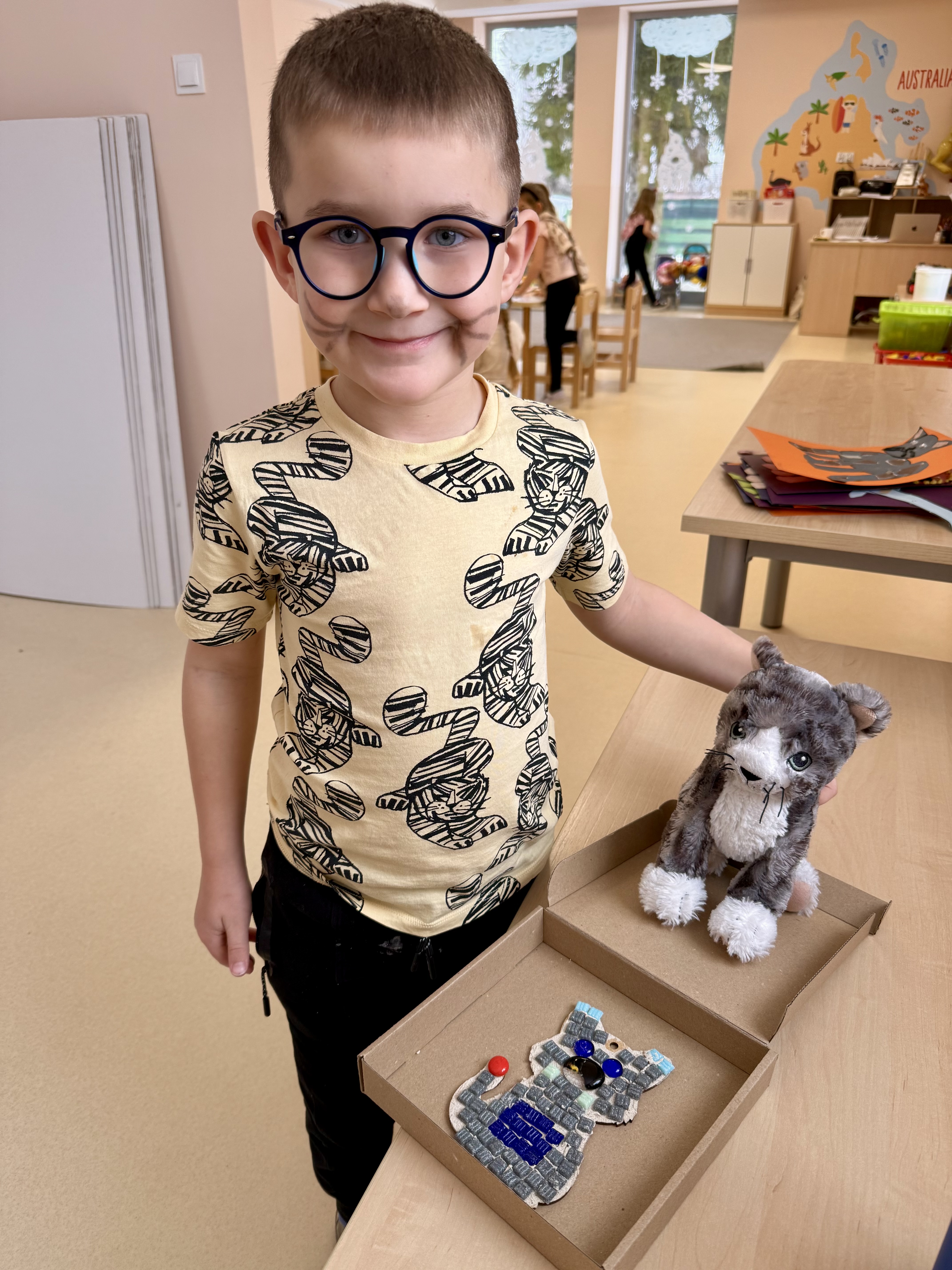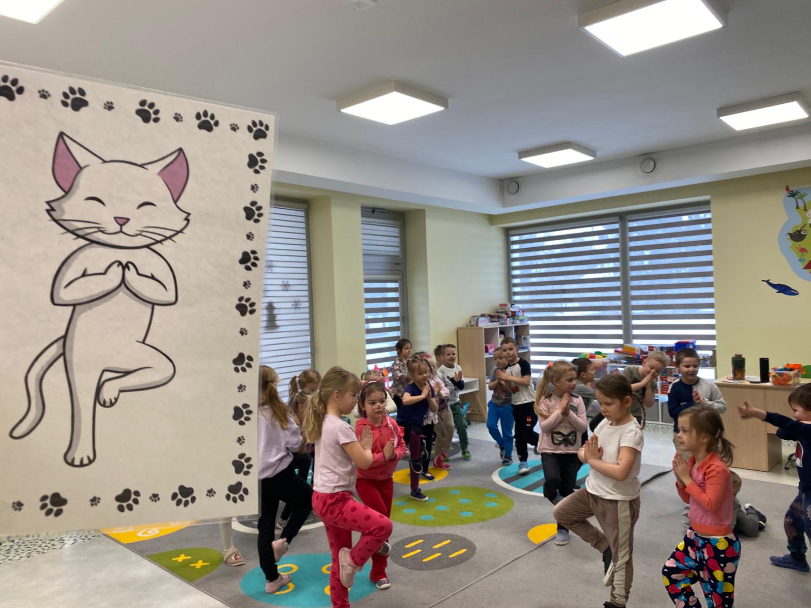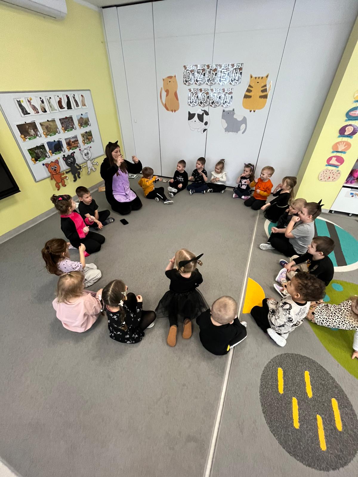 Dnia 17 lutego w naszym przedszkolu obchodziliśmy Dzień Kota. Celem zajęć było rozwijanie wrażliwości na potrzeby zwierząt oraz poszerzenie wiedzy dzieci na temat kotów. Tego dnia przedszkolaki przyszły ubrane w stroje z kocimi elementami – nie zabrakło opasek z uszkami, wąsików oraz ogonków. Dzieci z zainteresowaniem wysłuchały ciekawostek o kotach, poznały ich zwyczaje oraz dowiedziały się, jak należy dbać o domowe pupile. Rozmawialiśmy również o znanych kotach z bajek, takich jak Garfield czy Kot w Butach. Podczas zajęć plastycznych dzieci wykonały prace przedstawiające koty różnymi technikami. Nie zabrakło także zabaw ruchowych, takich jak „Kocie polowanie” oraz „Spacer kotka”, które dostarczyły wszystkim wiele radości i śmiechu. Na zakończenie dnia dzieci wspólnie śpiewały piosenki o kotach oraz obejrzały krótką bajkę edukacyjną. Był to dzień pełen uśmiechu, zabawy i nowych doświadczeń.