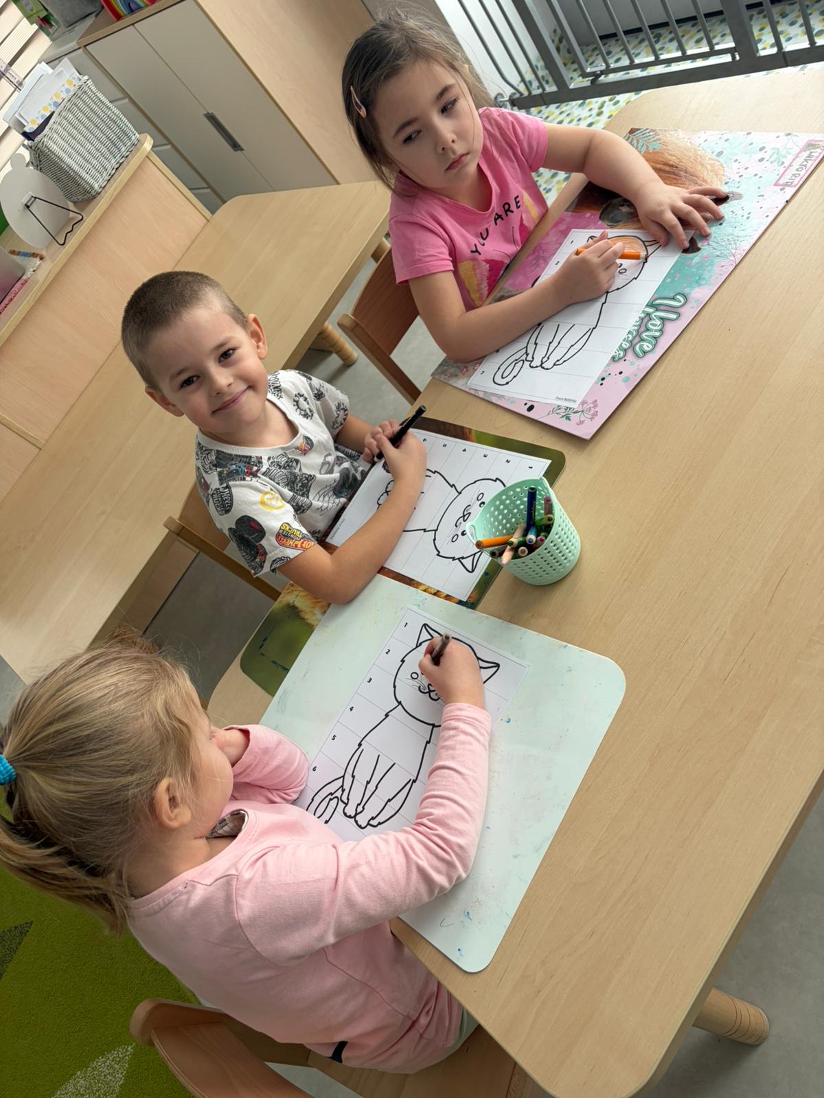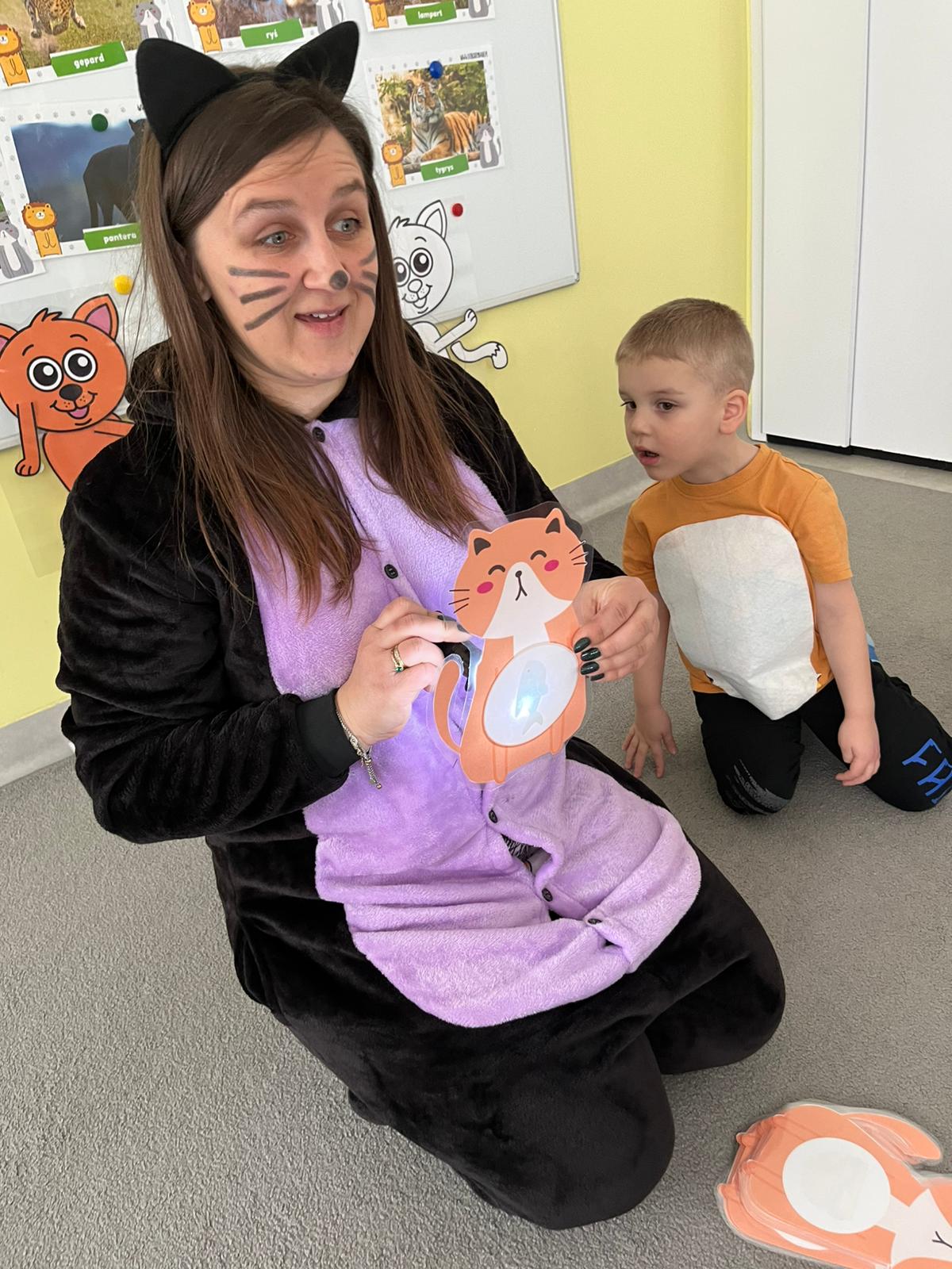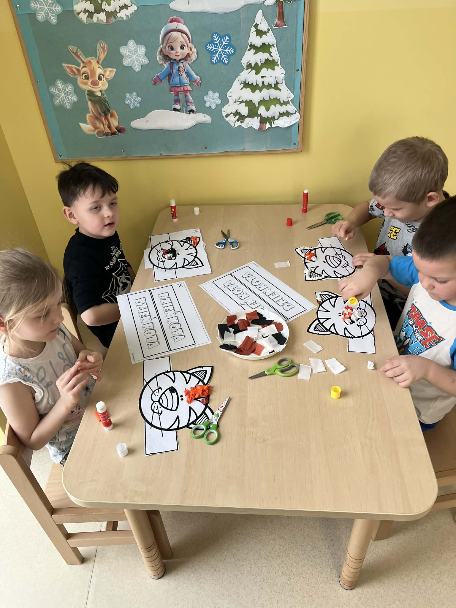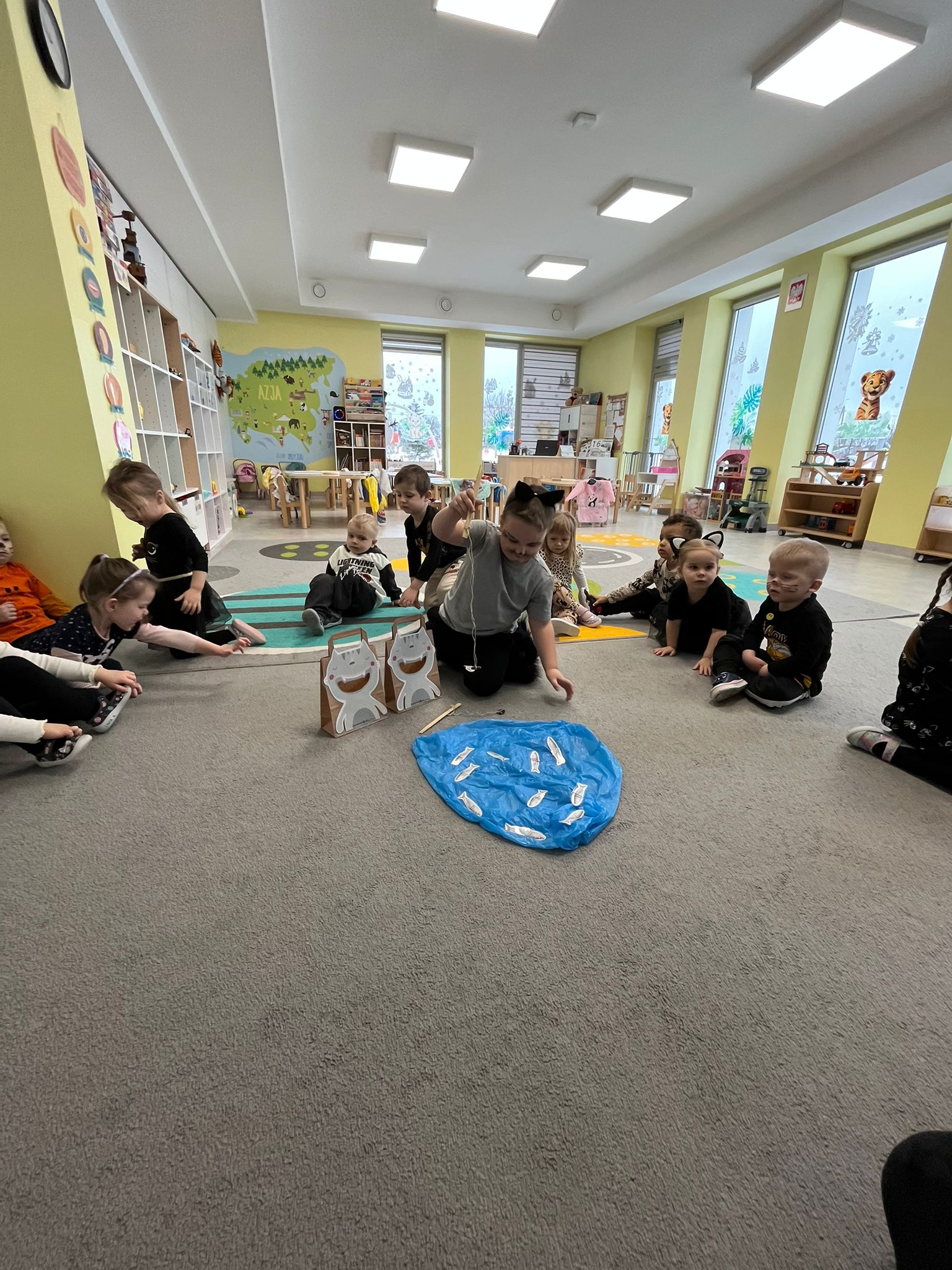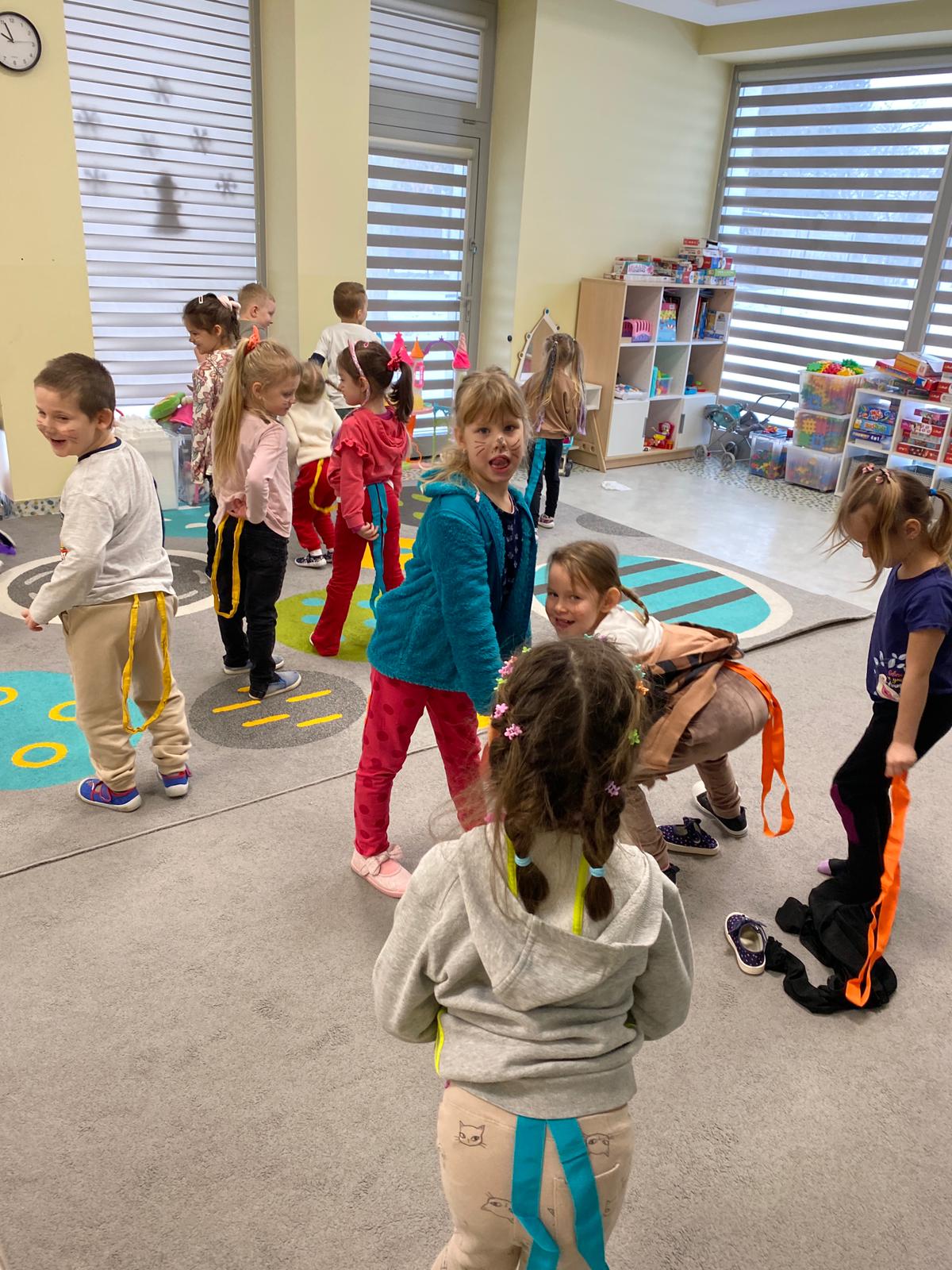 Dnia 17 lutego w naszym przedszkolu obchodziliśmy Dzień Kota. Celem zajęć było rozwijanie wrażliwości na potrzeby zwierząt oraz poszerzenie wiedzy dzieci na temat kotów. Tego dnia przedszkolaki przyszły ubrane w stroje z kocimi elementami – nie zabrakło opasek z uszkami, wąsików oraz ogonków. Dzieci z zainteresowaniem wysłuchały ciekawostek o kotach, poznały ich zwyczaje oraz dowiedziały się, jak należy dbać o domowe pupile. Rozmawialiśmy również o znanych kotach z bajek, takich jak Garfield czy Kot w Butach. Podczas zajęć plastycznych dzieci wykonały prace przedstawiające koty różnymi technikami. Nie zabrakło także zabaw ruchowych, takich jak „Kocie polowanie” oraz „Spacer kotka”, które dostarczyły wszystkim wiele radości i śmiechu. Na zakończenie dnia dzieci wspólnie śpiewały piosenki o kotach oraz obejrzały krótką bajkę edukacyjną. Był to dzień pełen uśmiechu, zabawy i nowych doświadczeń.