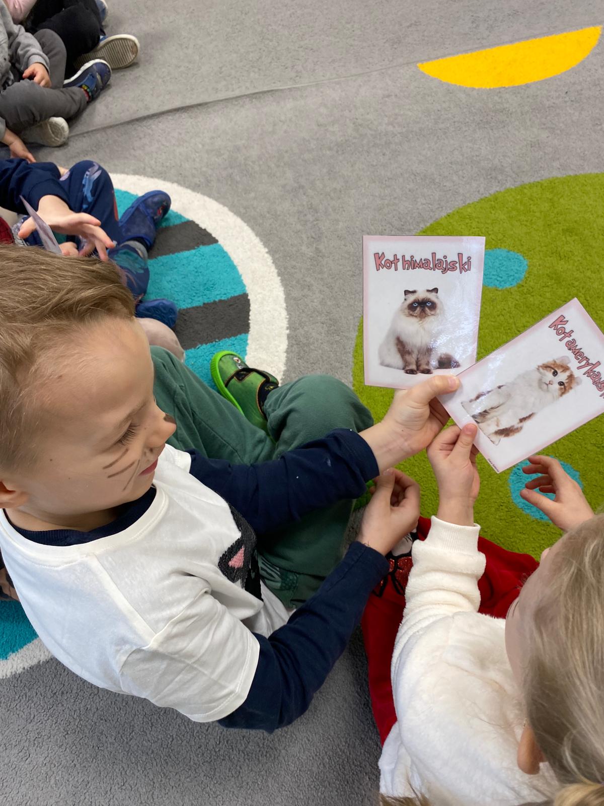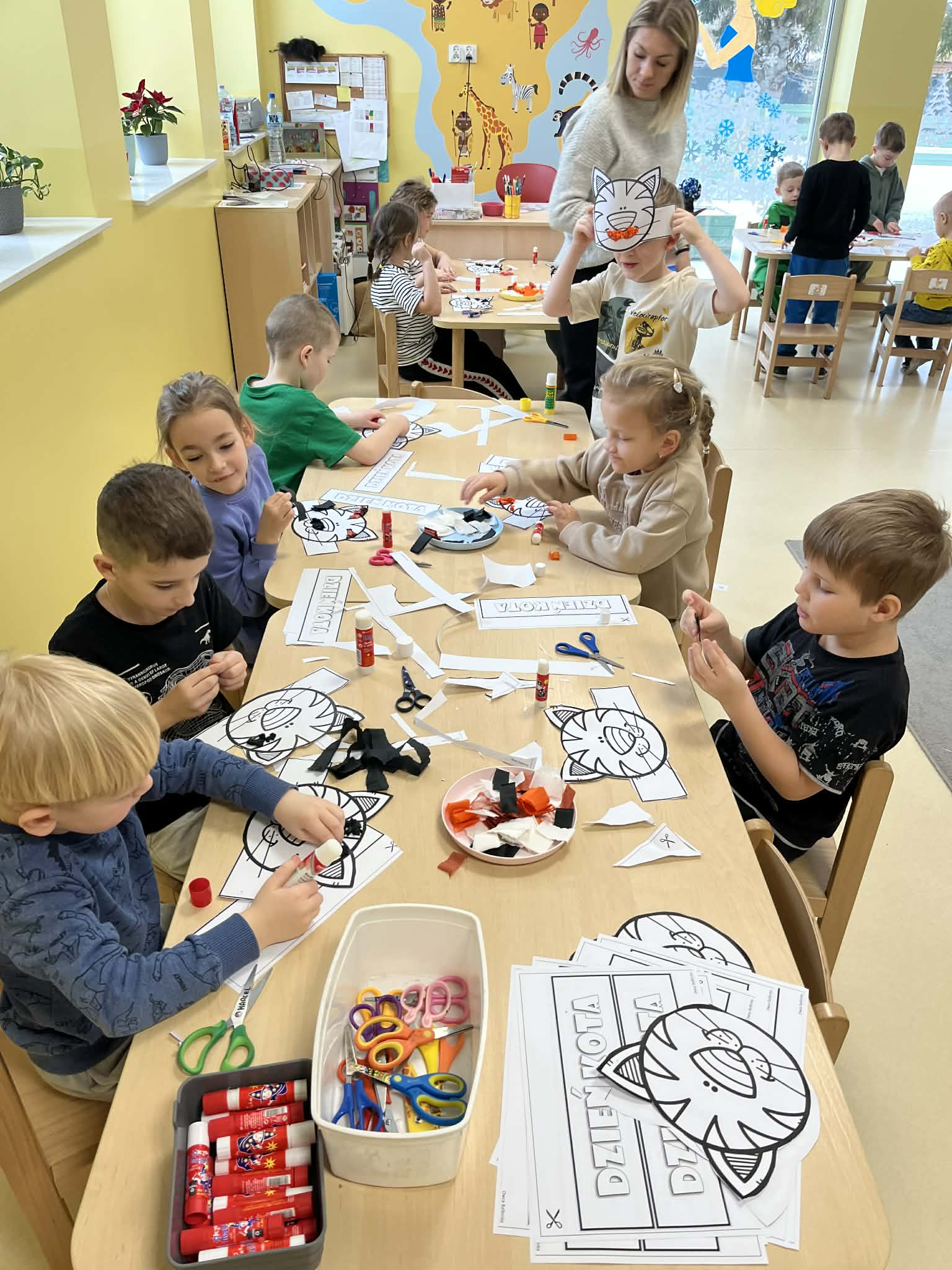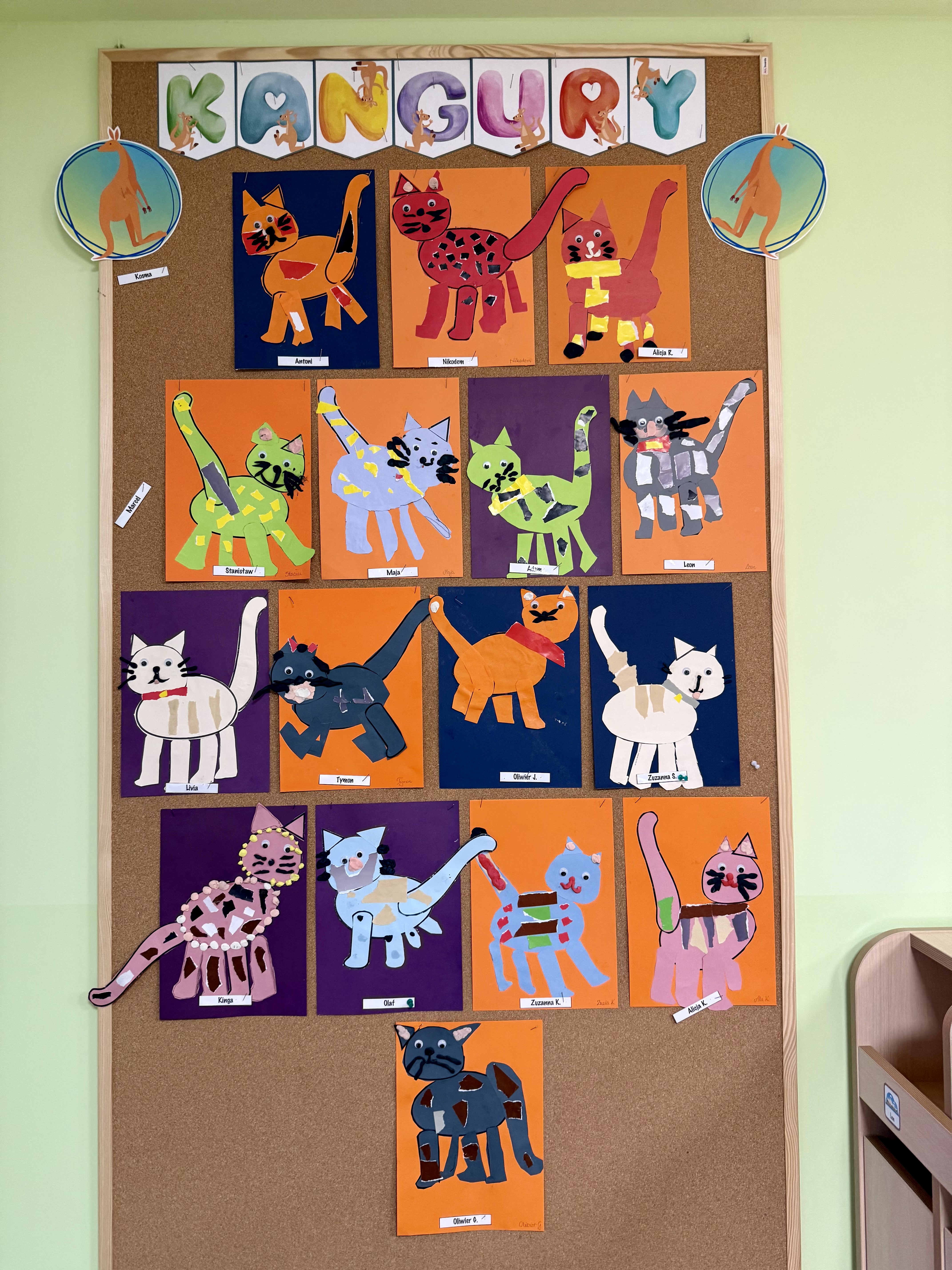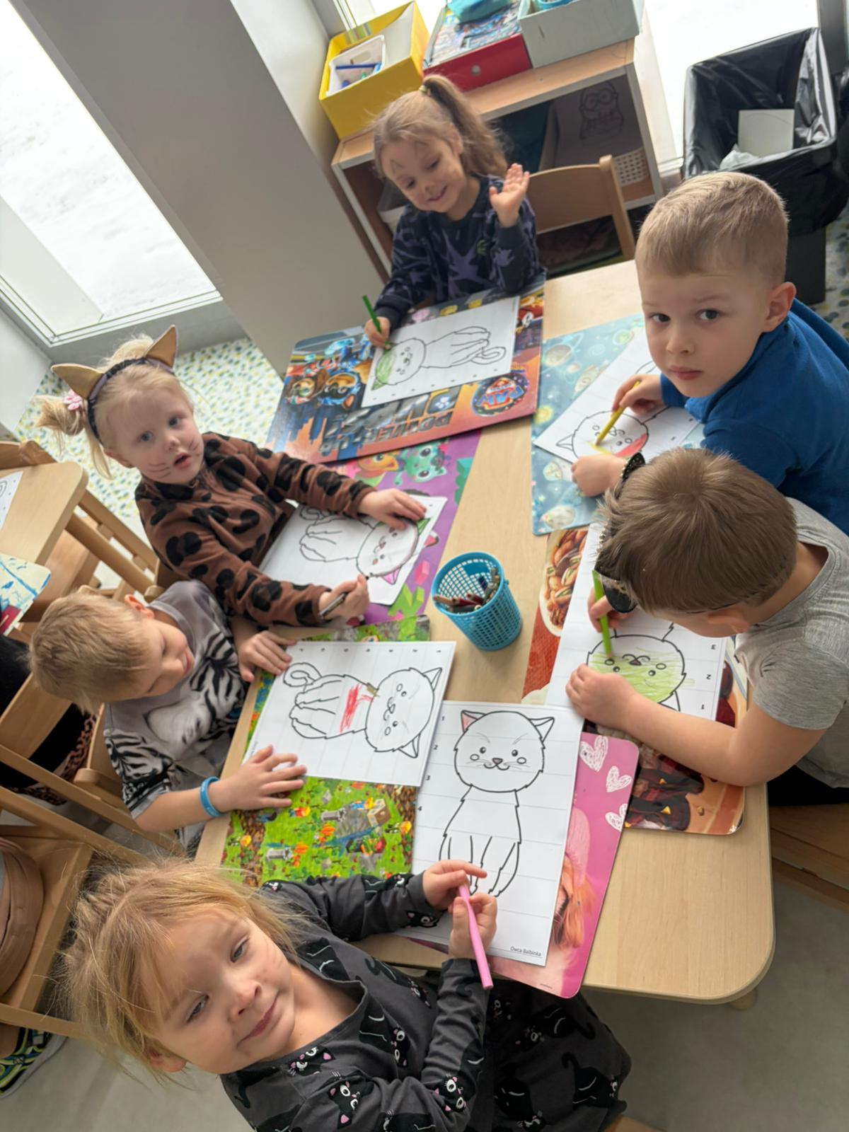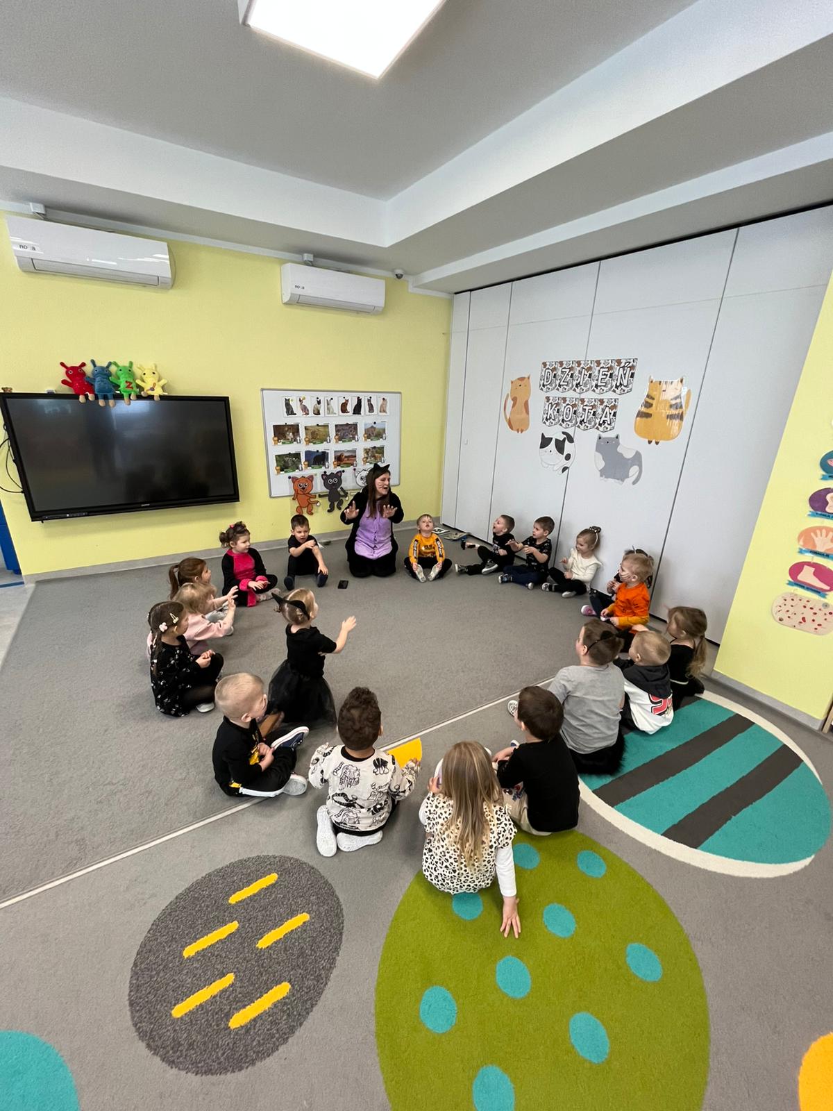 Dnia 17 lutego w naszym przedszkolu obchodziliśmy Dzień Kota. Celem zajęć było rozwijanie wrażliwości na potrzeby zwierząt oraz poszerzenie wiedzy dzieci na temat kotów. Tego dnia przedszkolaki przyszły ubrane w stroje z kocimi elementami – nie zabrakło opasek z uszkami, wąsików oraz ogonków. Dzieci z zainteresowaniem wysłuchały ciekawostek o kotach, poznały ich zwyczaje oraz dowiedziały się, jak należy dbać o domowe pupile. Rozmawialiśmy również o znanych kotach z bajek, takich jak Garfield czy Kot w Butach. Podczas zajęć plastycznych dzieci wykonały prace przedstawiające koty różnymi technikami. Nie zabrakło także zabaw ruchowych, takich jak „Kocie polowanie” oraz „Spacer kotka”, które dostarczyły wszystkim wiele radości i śmiechu. Na zakończenie dnia dzieci wspólnie śpiewały piosenki o kotach oraz obejrzały krótką bajkę edukacyjną. Był to dzień pełen uśmiechu, zabawy i nowych doświadczeń.