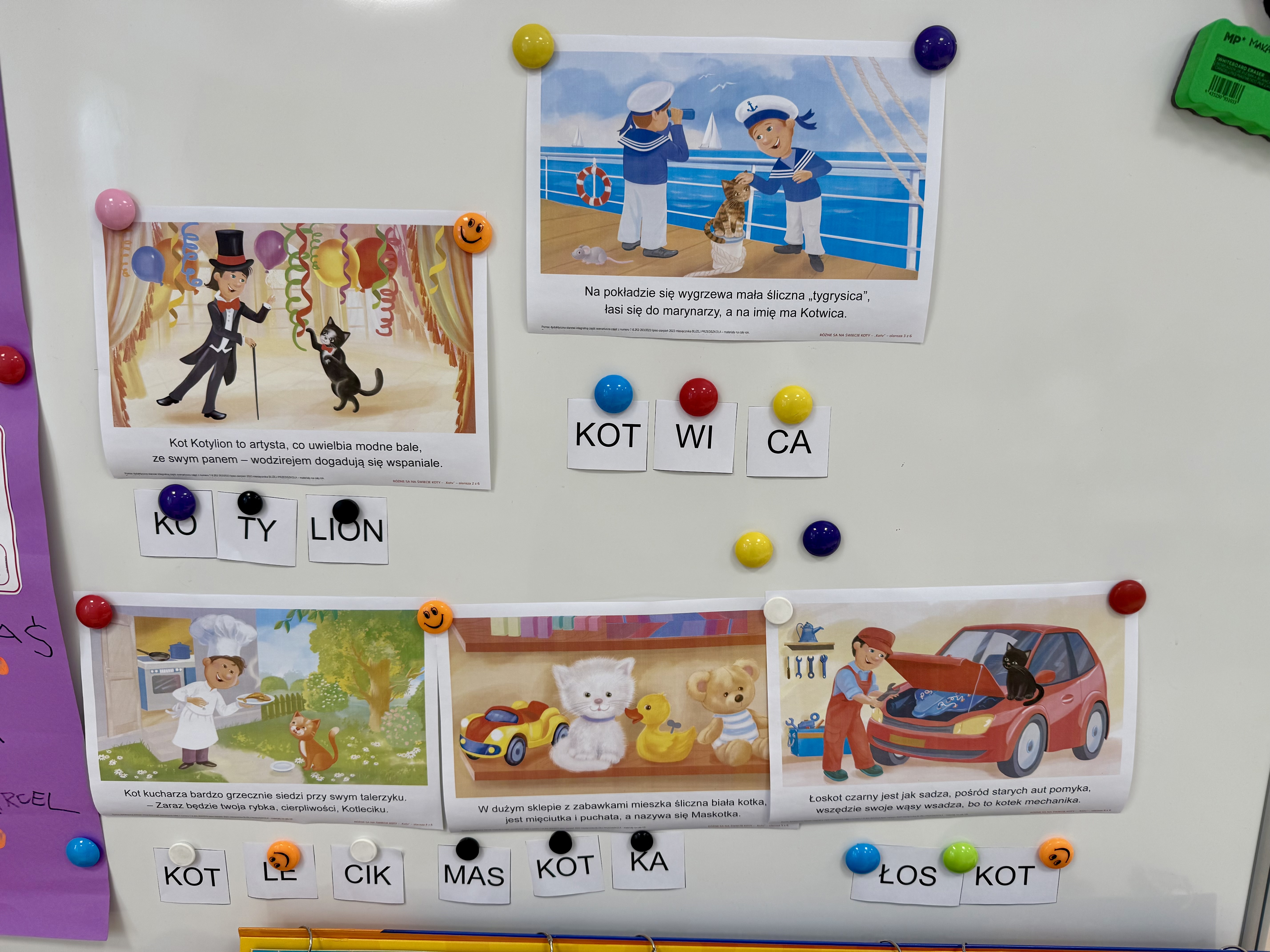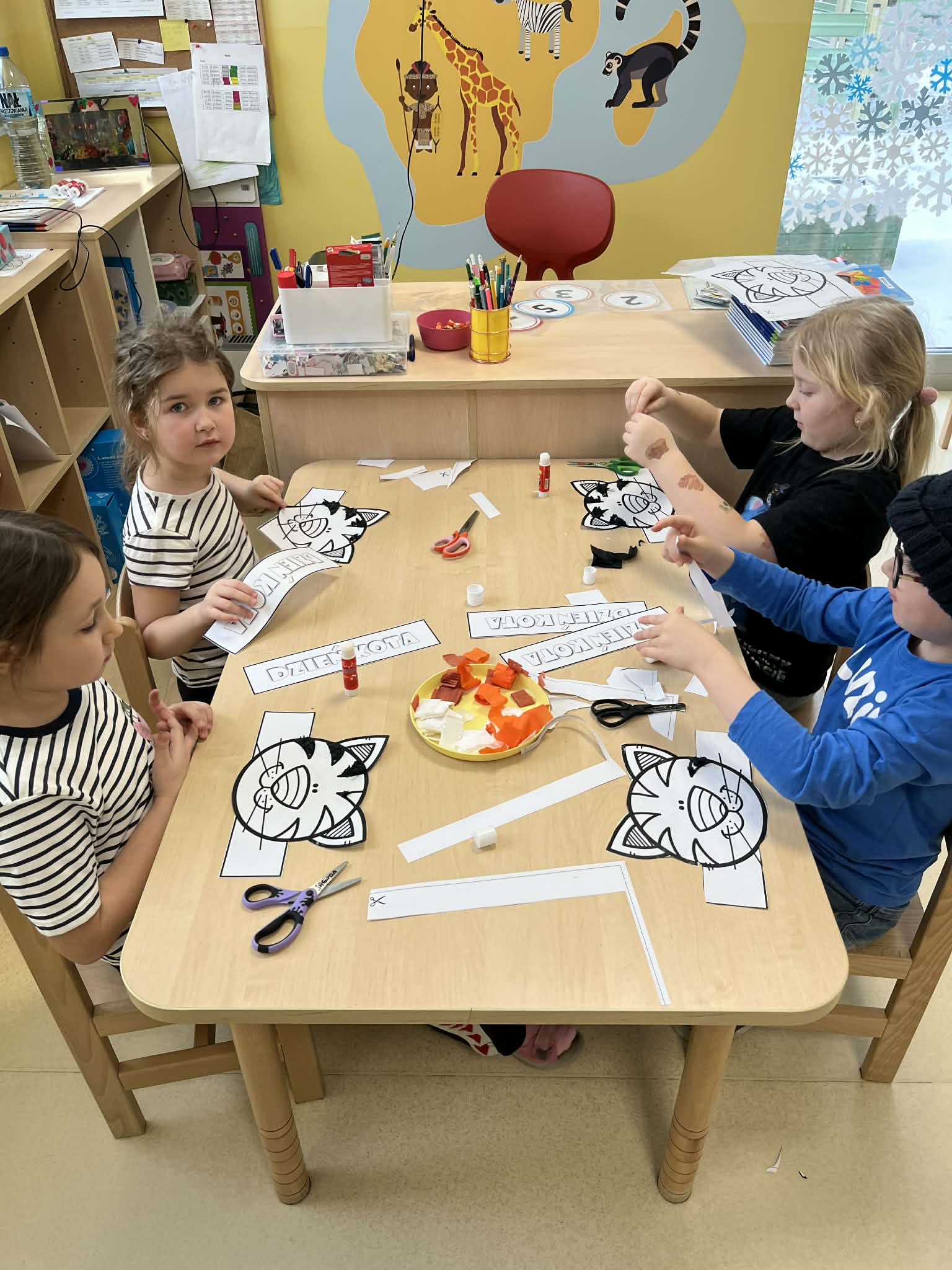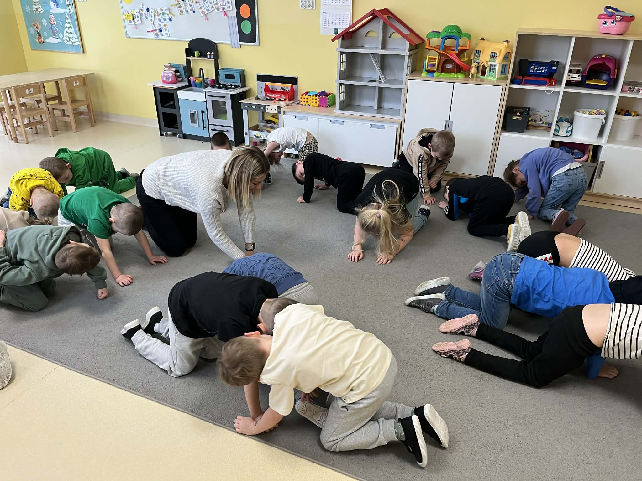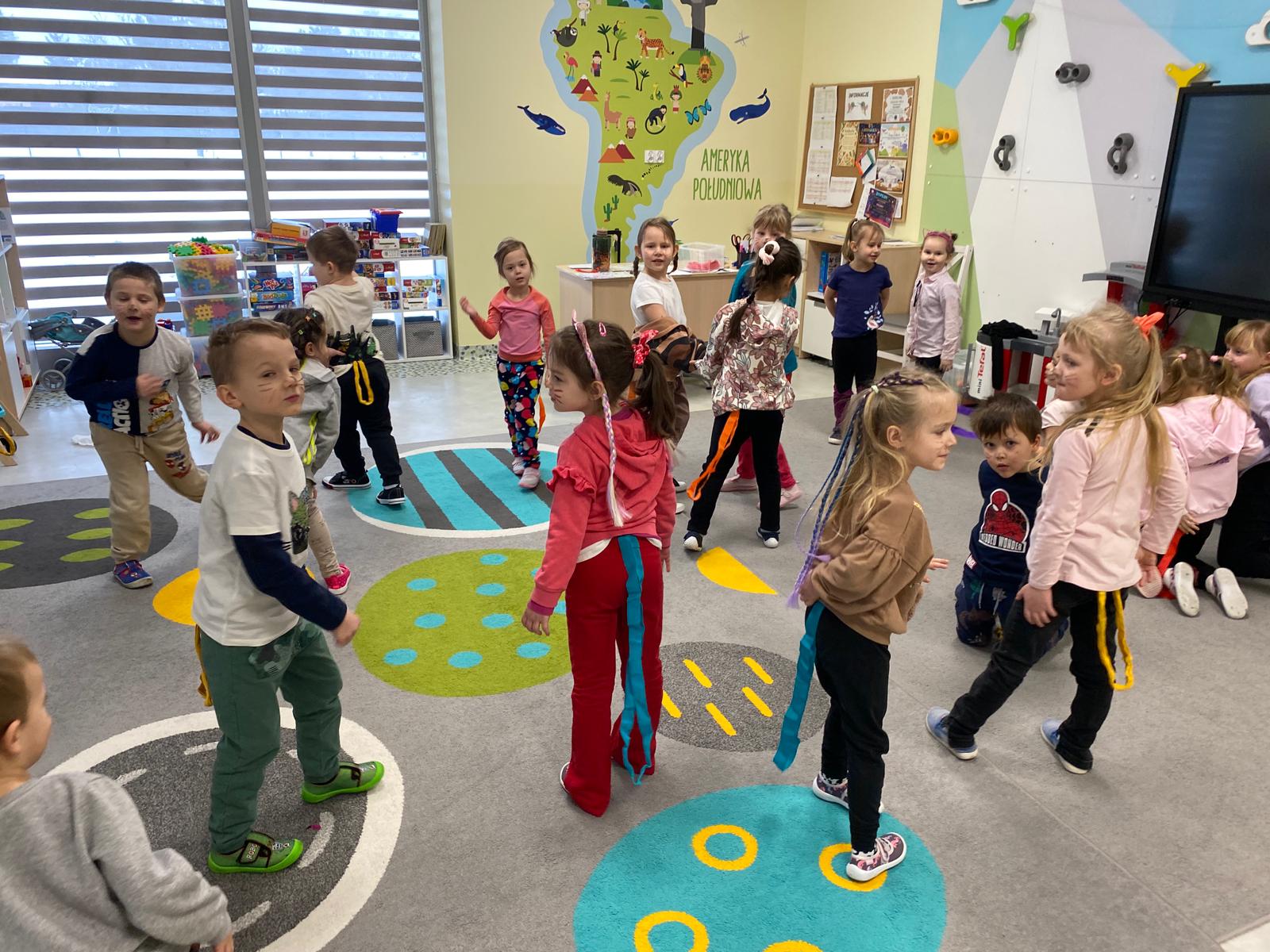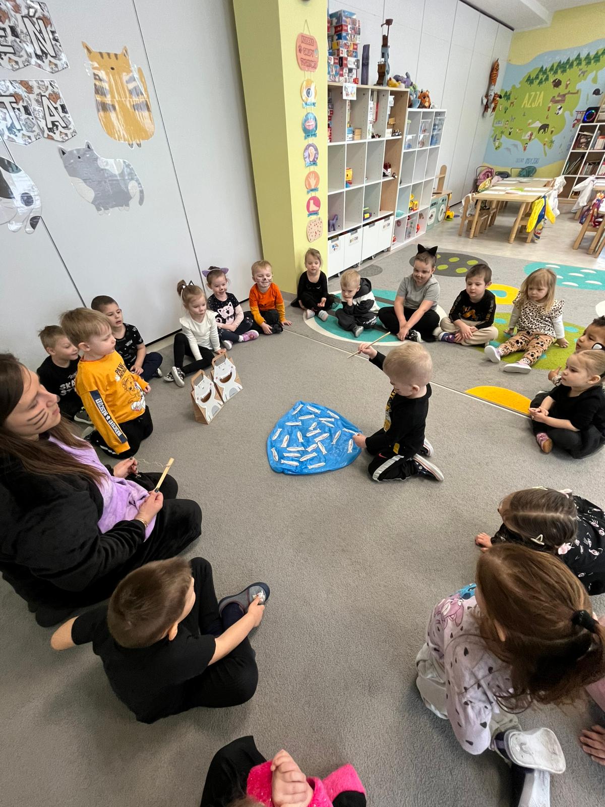 Dnia 17 lutego w naszym przedszkolu obchodziliśmy Dzień Kota. Celem zajęć było rozwijanie wrażliwości na potrzeby zwierząt oraz poszerzenie wiedzy dzieci na temat kotów. Tego dnia przedszkolaki przyszły ubrane w stroje z kocimi elementami – nie zabrakło opasek z uszkami, wąsików oraz ogonków. Dzieci z zainteresowaniem wysłuchały ciekawostek o kotach, poznały ich zwyczaje oraz dowiedziały się, jak należy dbać o domowe pupile. Rozmawialiśmy również o znanych kotach z bajek, takich jak Garfield czy Kot w Butach. Podczas zajęć plastycznych dzieci wykonały prace przedstawiające koty różnymi technikami. Nie zabrakło także zabaw ruchowych, takich jak „Kocie polowanie” oraz „Spacer kotka”, które dostarczyły wszystkim wiele radości i śmiechu. Na zakończenie dnia dzieci wspólnie śpiewały piosenki o kotach oraz obejrzały krótką bajkę edukacyjną. Był to dzień pełen uśmiechu, zabawy i nowych doświadczeń.