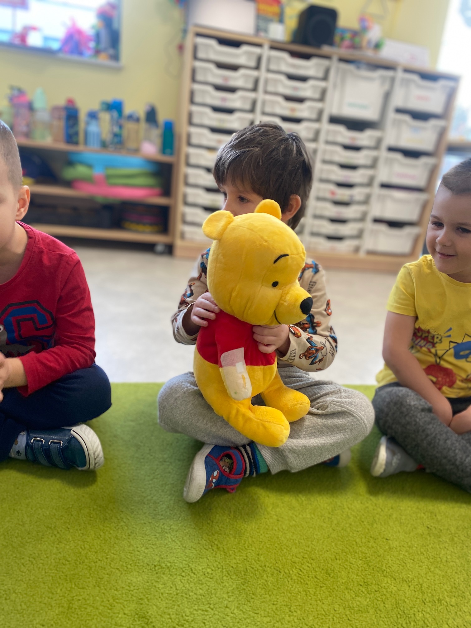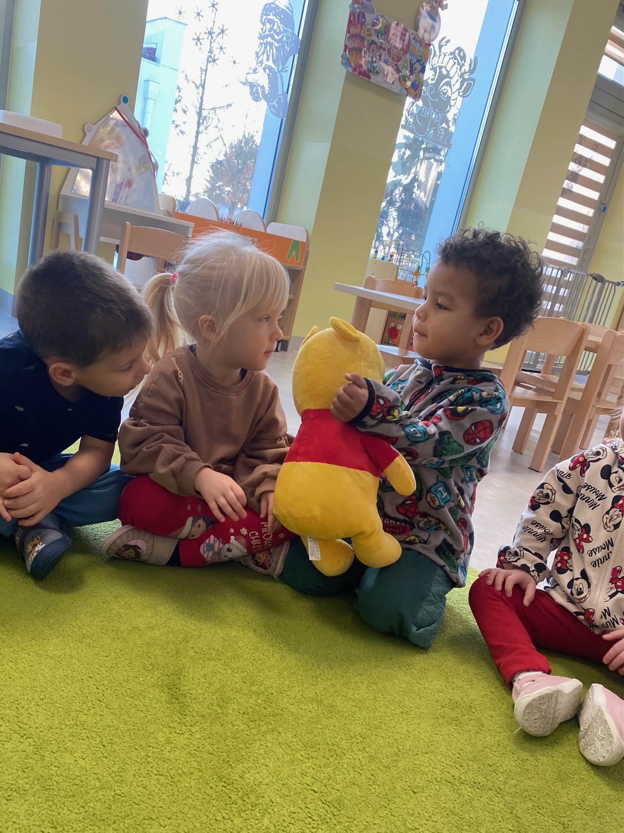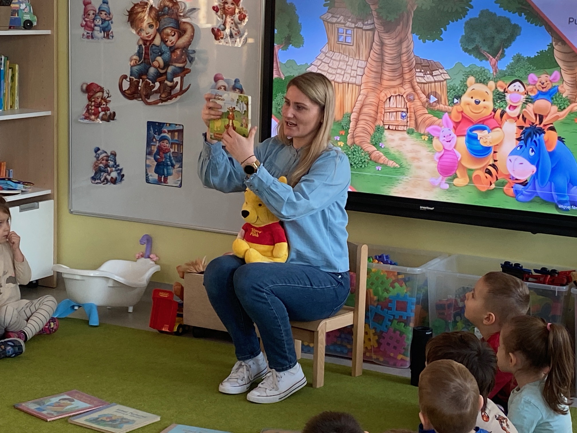 Dnia 19 stycznia 2026 roku dzieci z grup Liski i Tygryski obchodziły Dzień Kubusia Puchatka. Tego dnia w sali towarzyszył im wyjątkowy gość- Kubuś Puchatek, z którym dzieci mogły się przywitać, przytulić oraz wspólnie spędzić czas w radosnej atmosferze.