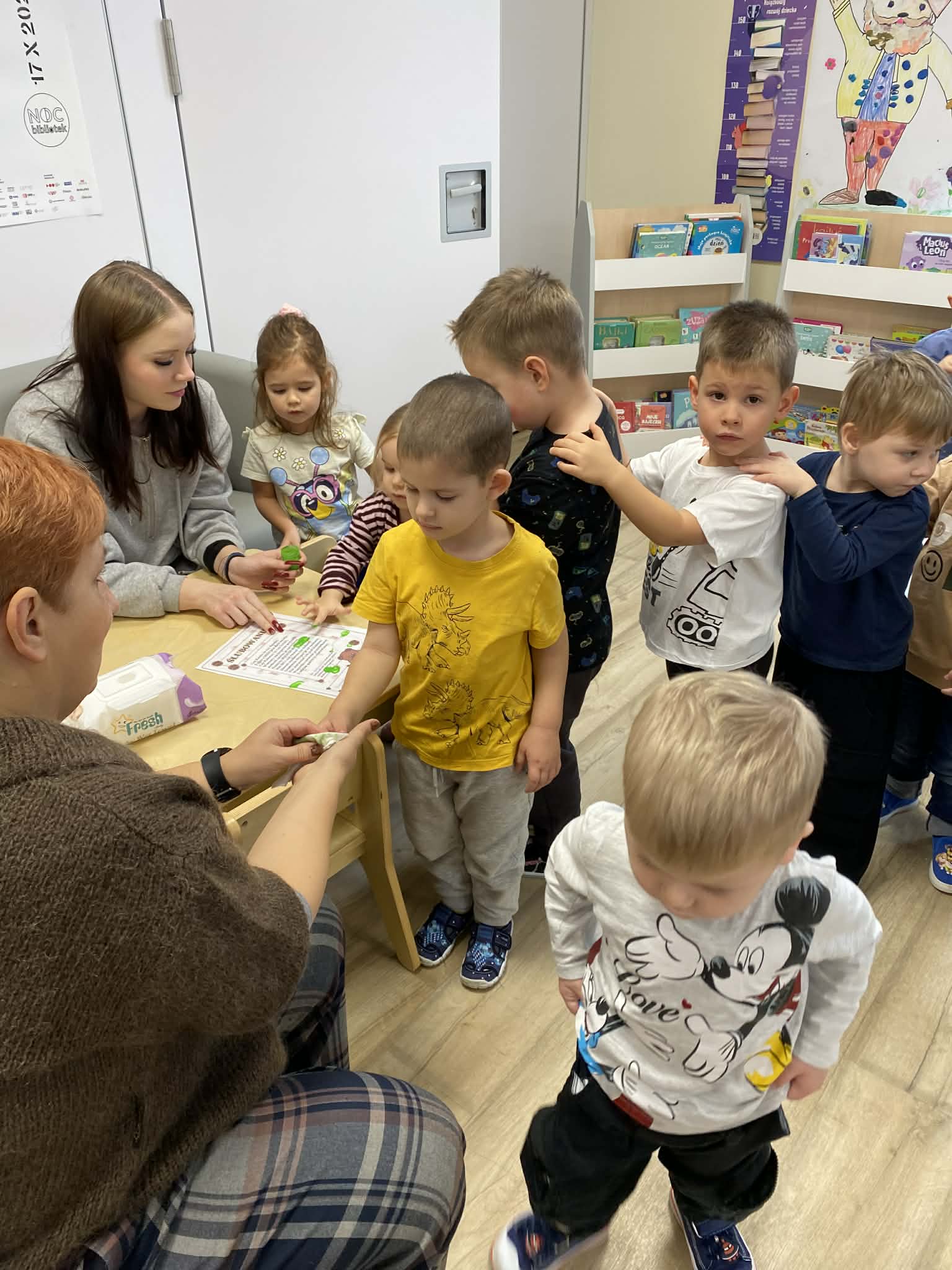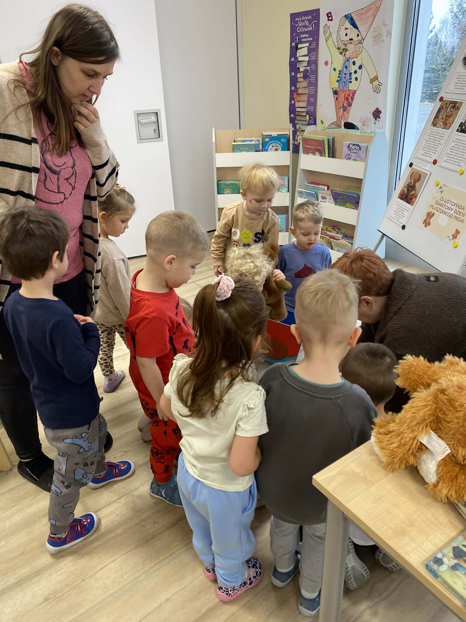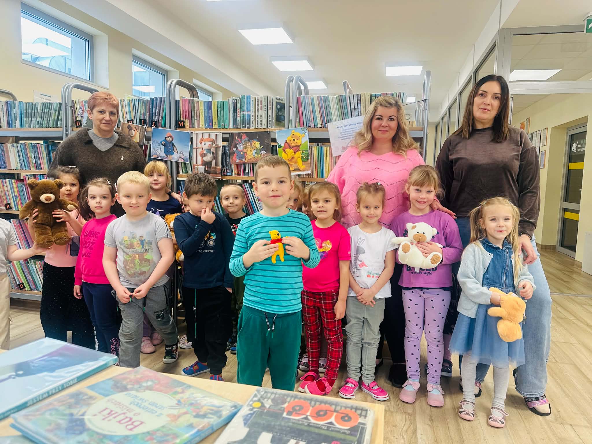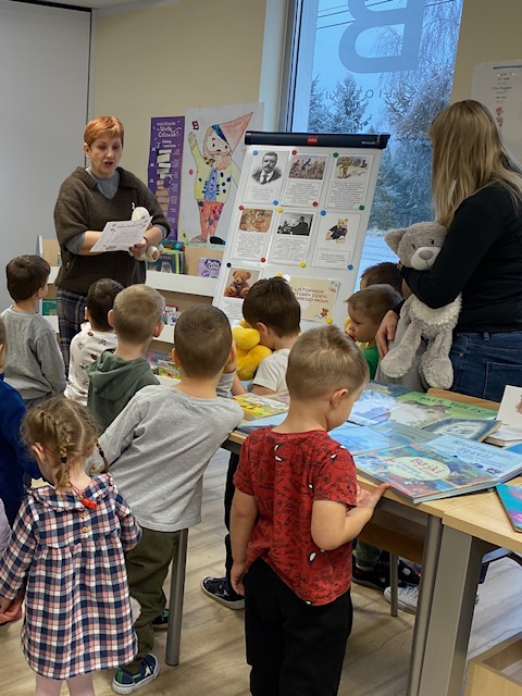 W dniach 24–25 listopada 2025 r. wszystkie grupy z naszego przedszkola odwiedziły bibliotekę w Laskowicach. Już od progu było widać, że to nie będzie zwykłe spotkanie – na stoliku czekały książki o misiach, a kolorowe ilustracje w sali zapraszały do wspólnej przygody.