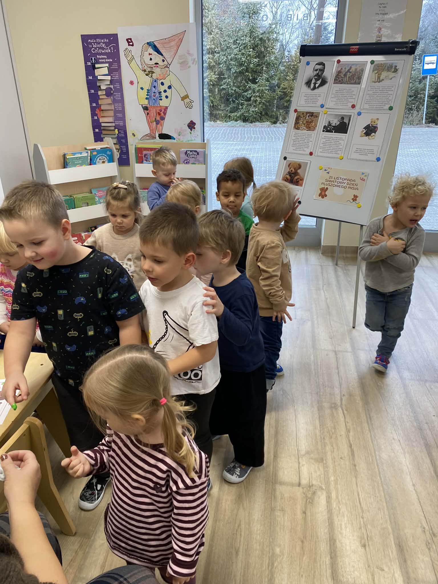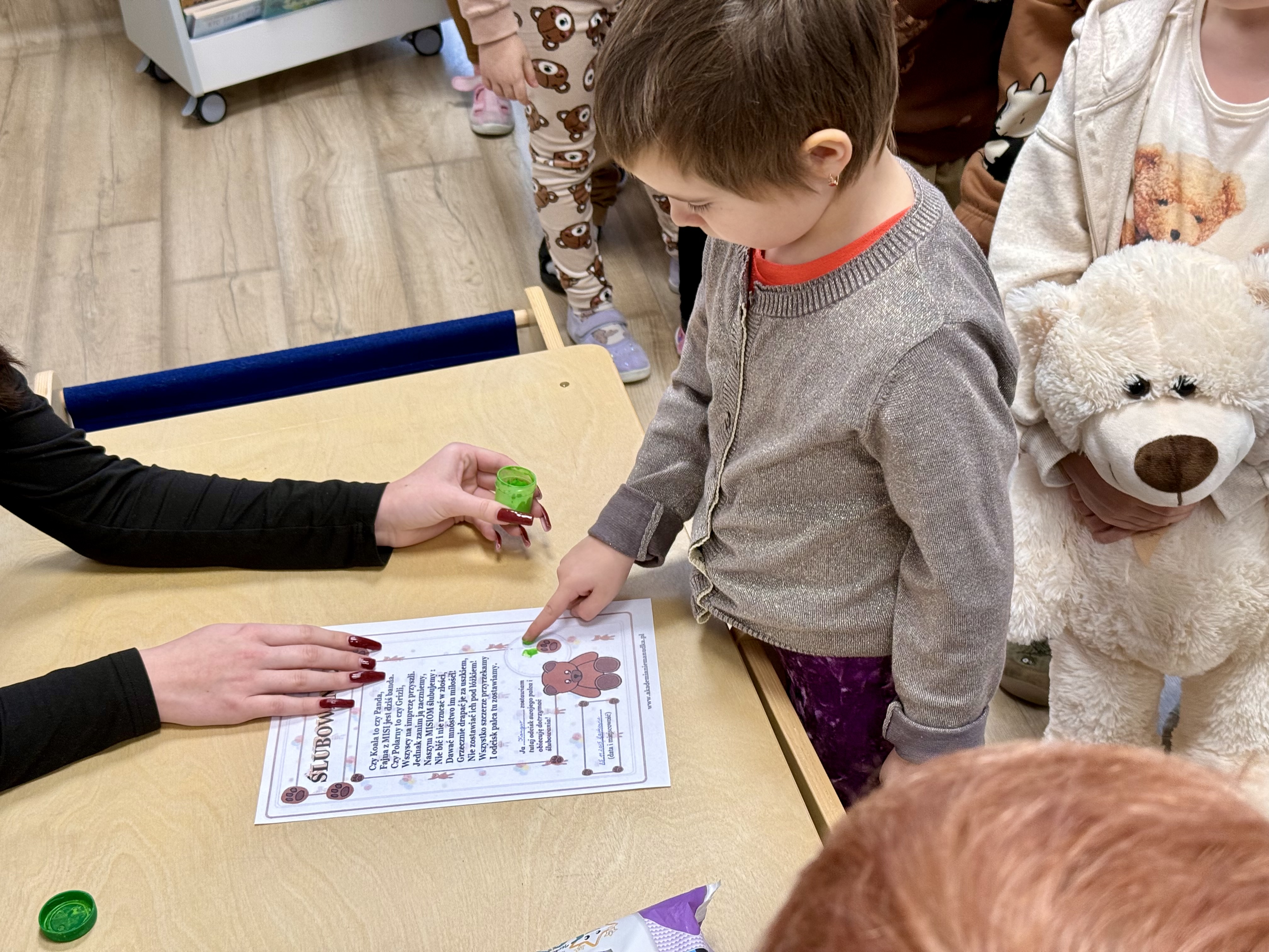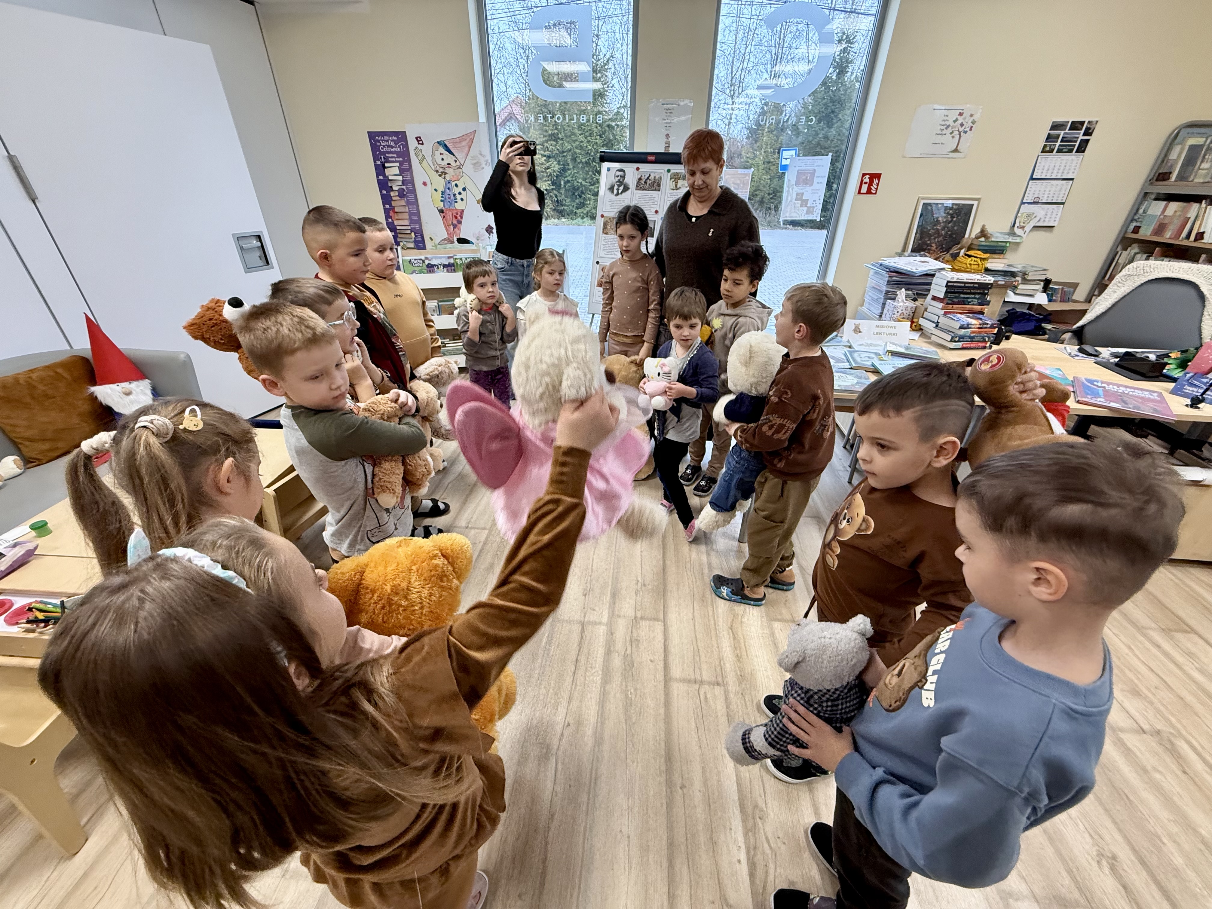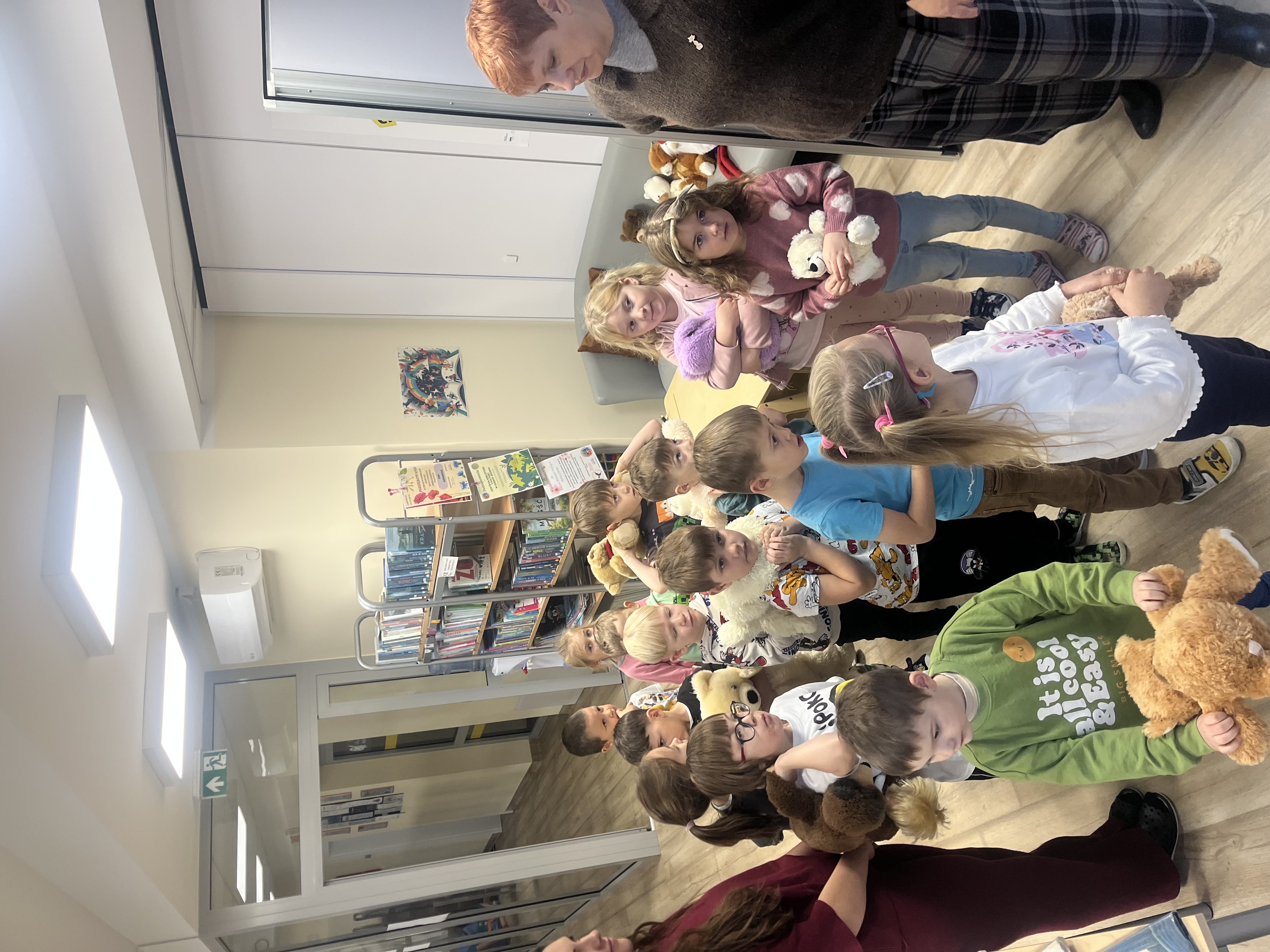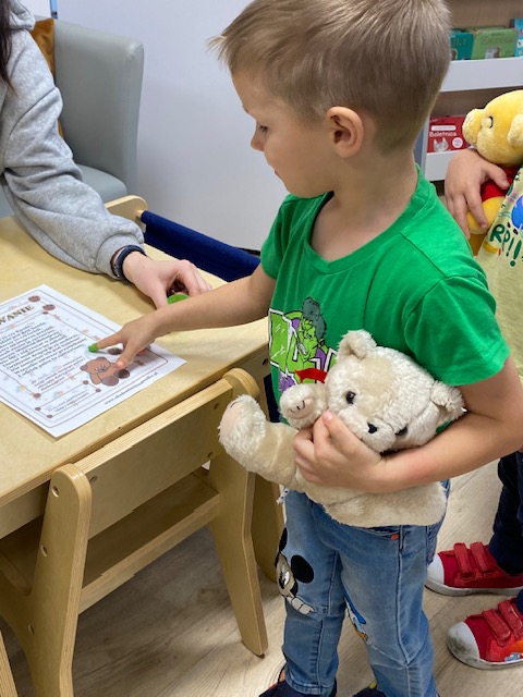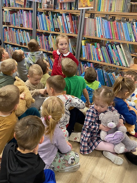 Na początku wizyty dzieci wysłuchały krótkiej historii o pluszowym misiu: skąd się wziął, kto go wymyślił i jak zmieniał się przez lata. Później przyszła pora na zabawę, w której każde dziecko mogło zaprezentować swojego pluszowego przyjaciela – jedne misie miały ubranka, inne kolorowe futerka, a jeszcze inne wyglądały tak, jakby towarzyszyły właścicielom od bardzo dawna. Ale wszystkie łączyło jedno – były kochane i wyjątkowe.