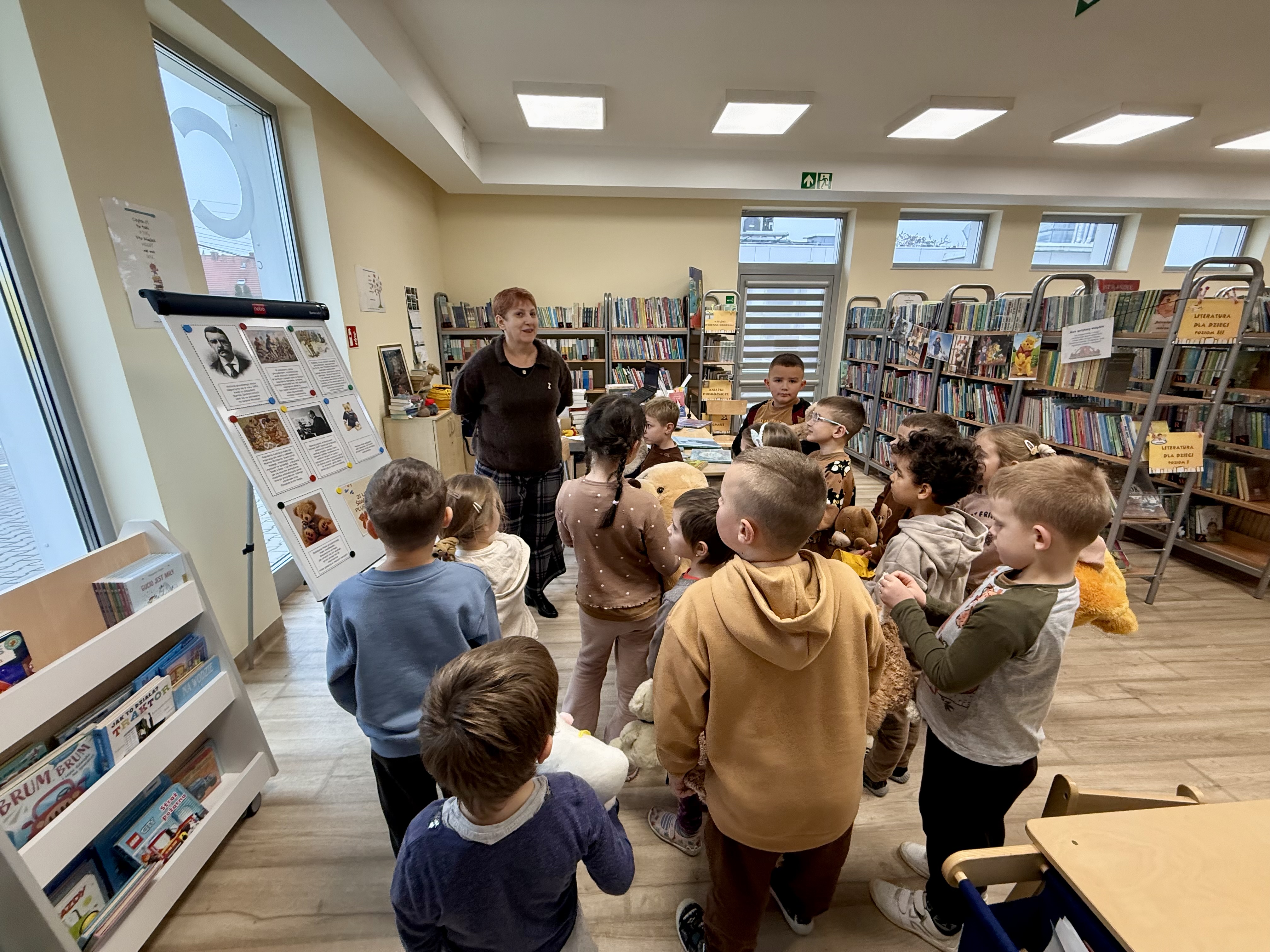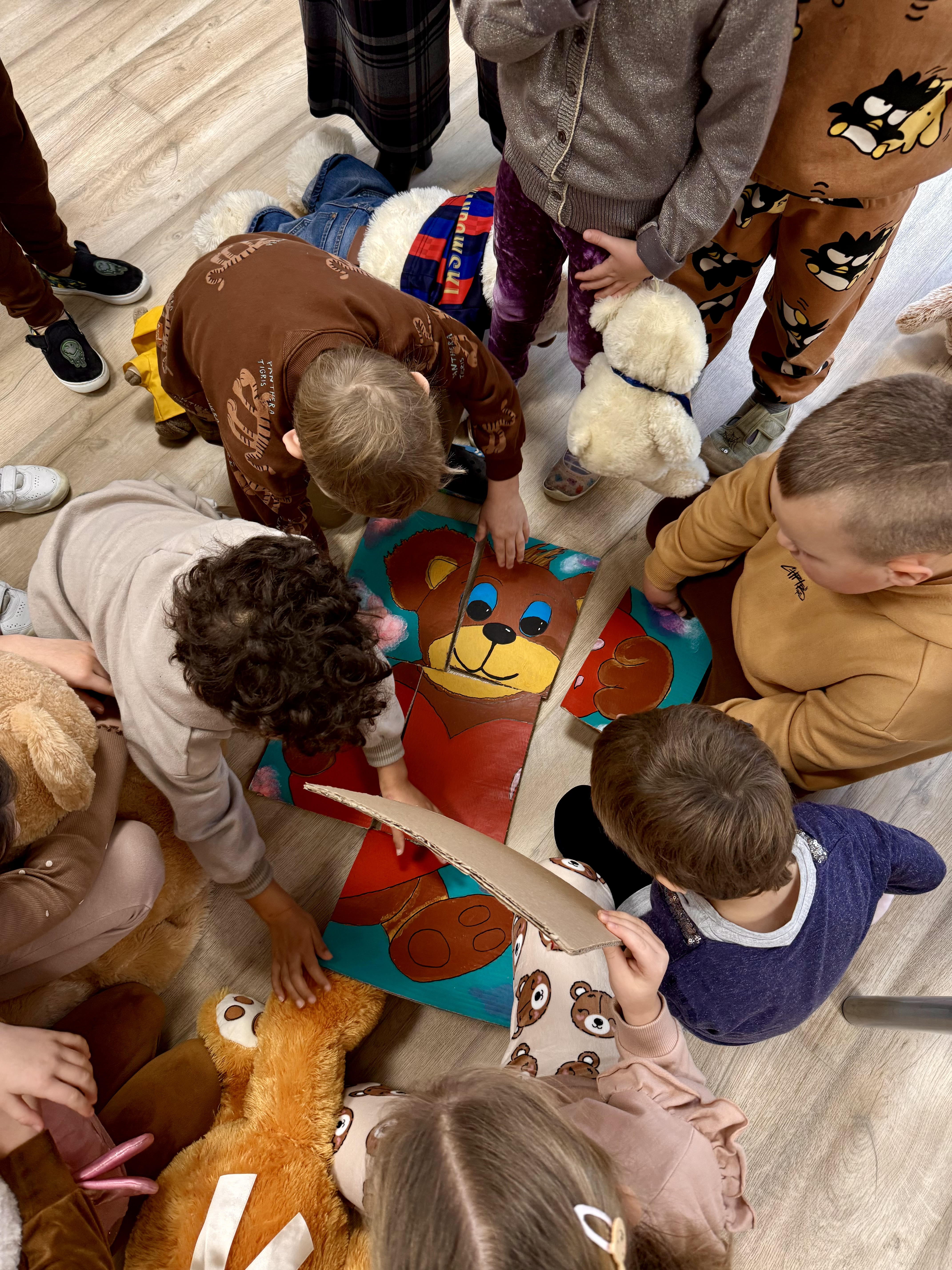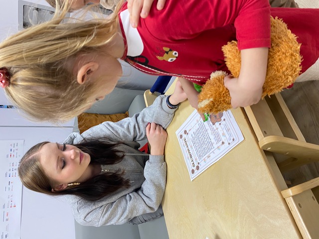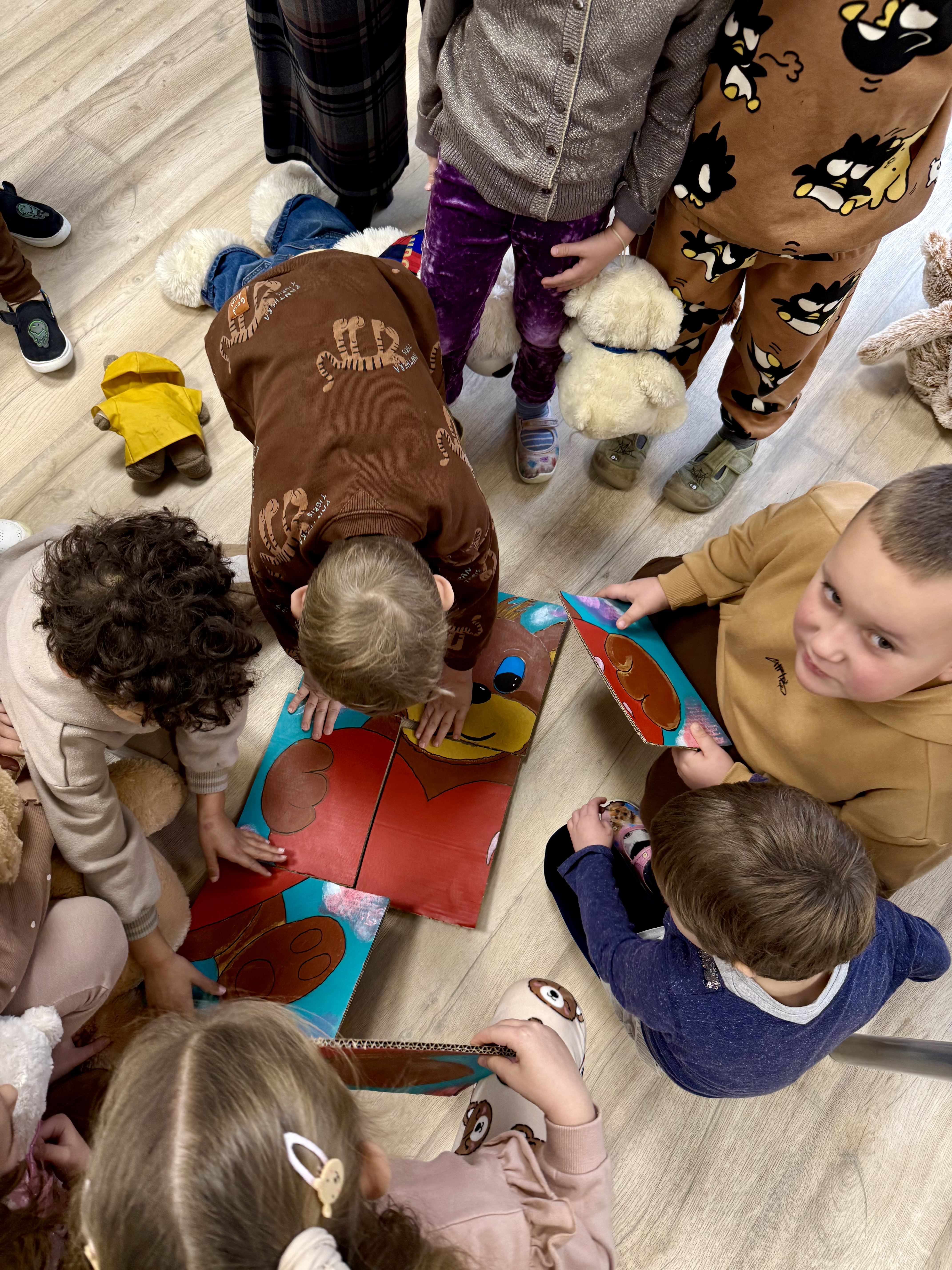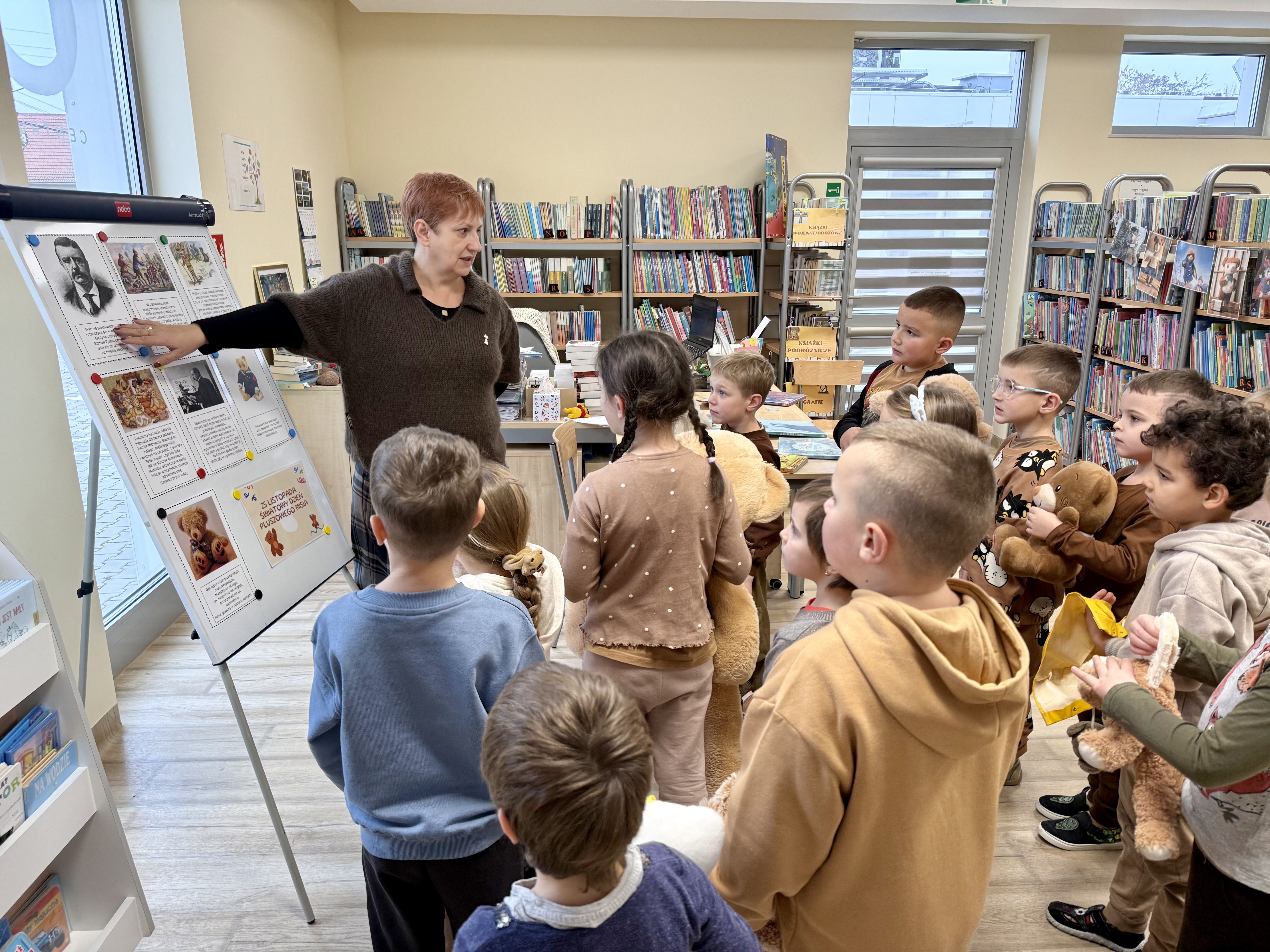 Na początku wizyty dzieci wysłuchały krótkiej historii o pluszowym misiu: skąd się wziął, kto go wymyślił i jak zmieniał się przez lata. Później przyszła pora na zabawę, w której każde dziecko mogło zaprezentować swojego pluszowego przyjaciela – jedne misie miały ubranka, inne kolorowe futerka, a jeszcze inne wyglądały tak, jakby towarzyszyły właścicielom od bardzo dawna. Ale wszystkie łączyło jedno – były kochane i wyjątkowe.