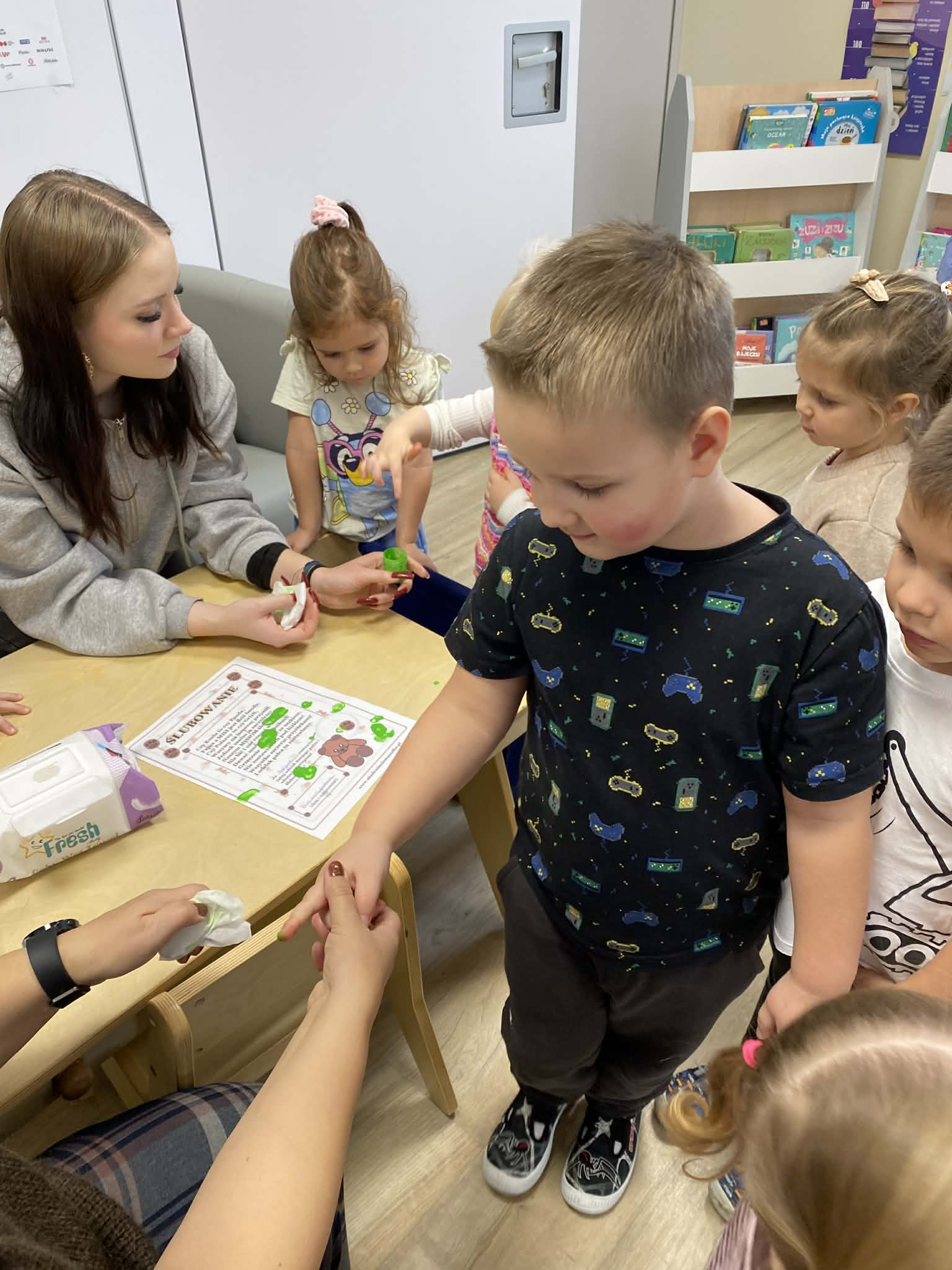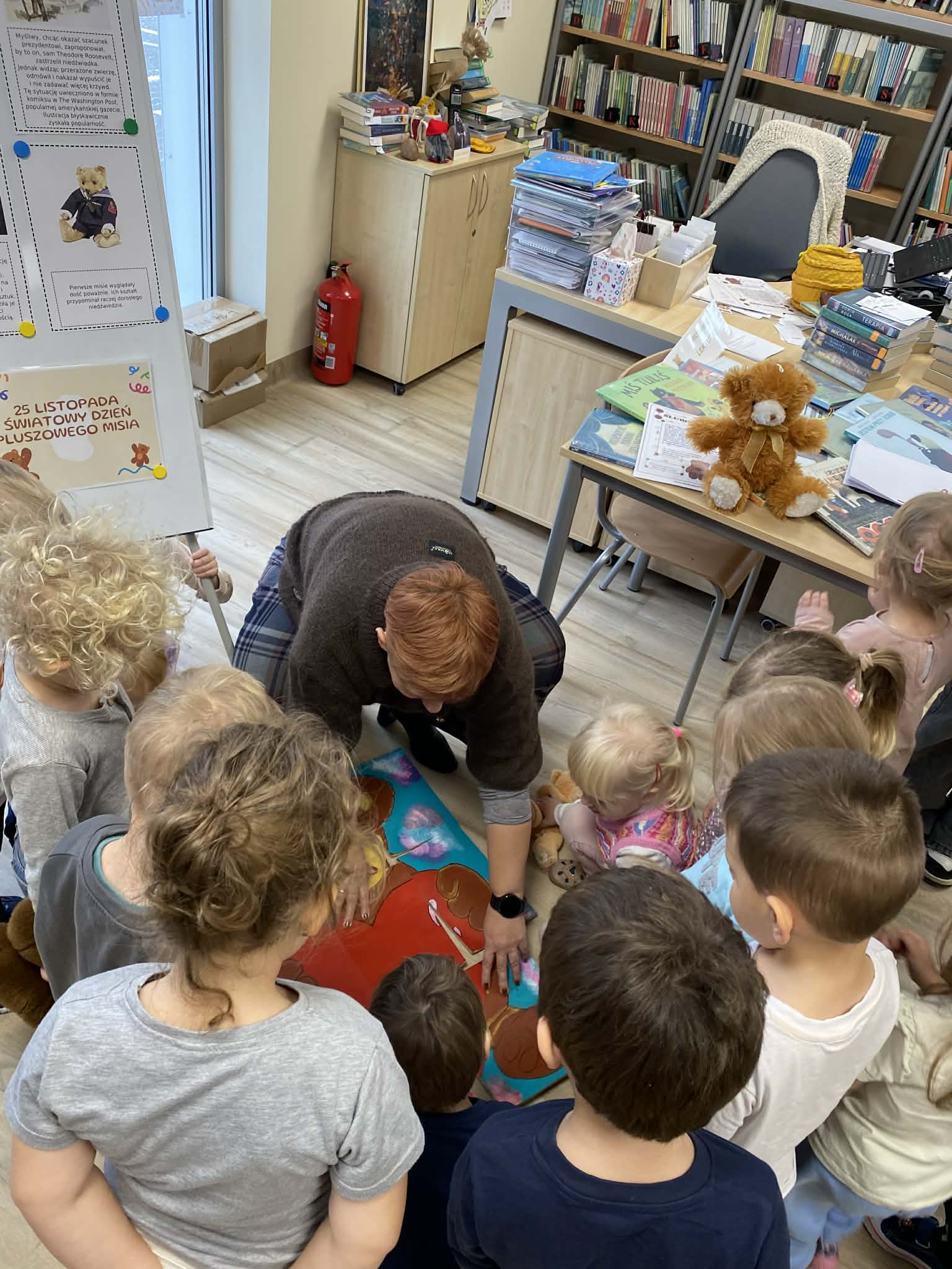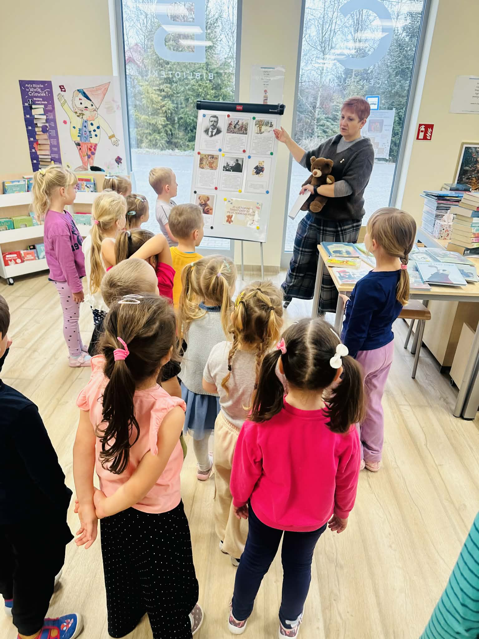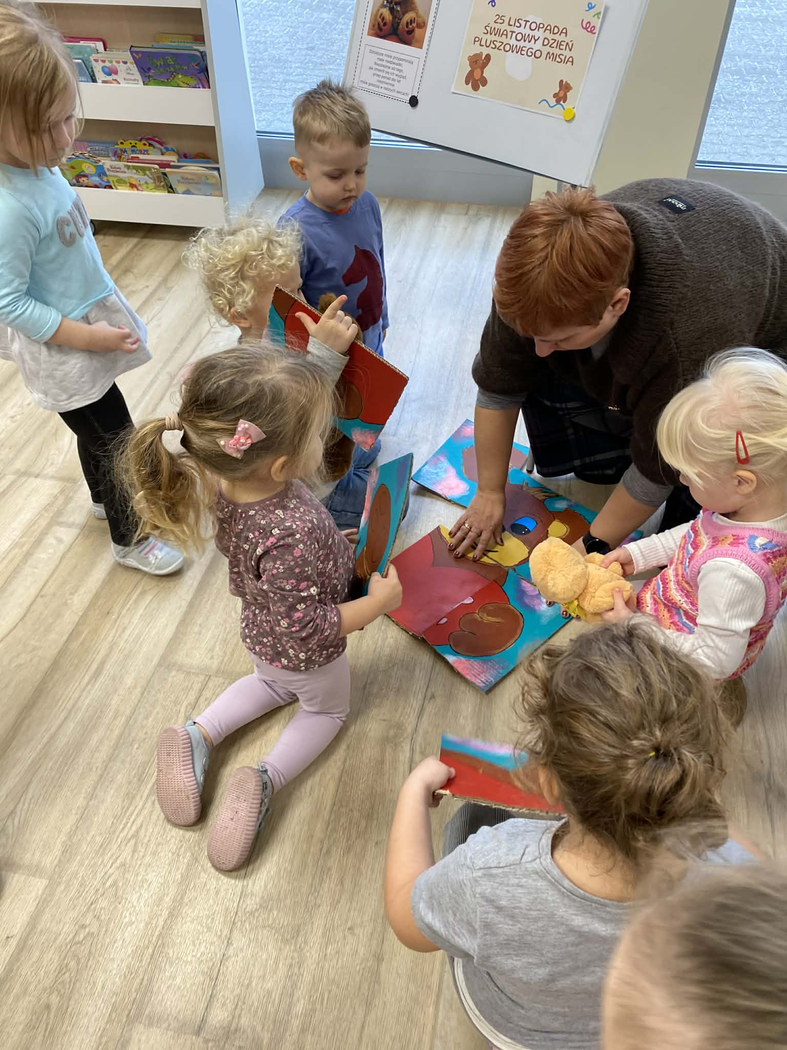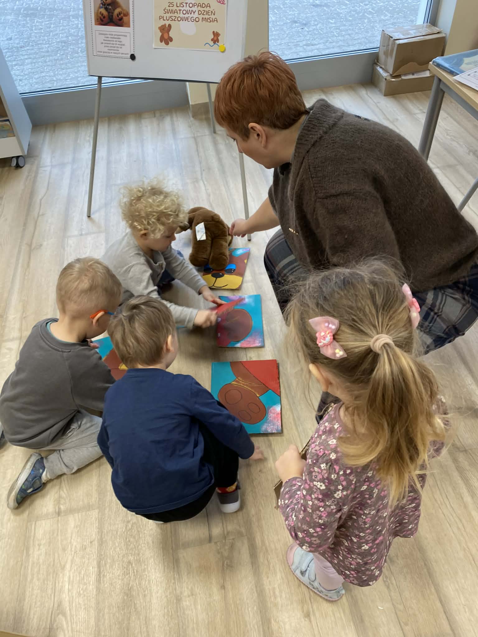 Na początku wizyty dzieci wysłuchały krótkiej historii o pluszowym misiu: skąd się wziął, kto go wymyślił i jak zmieniał się przez lata. Później przyszła pora na zabawę, w której każde dziecko mogło zaprezentować swojego pluszowego przyjaciela – jedne misie miały ubranka, inne kolorowe futerka, a jeszcze inne wyglądały tak, jakby towarzyszyły właścicielom od bardzo dawna. Ale wszystkie łączyło jedno – były kochane i wyjątkowe.