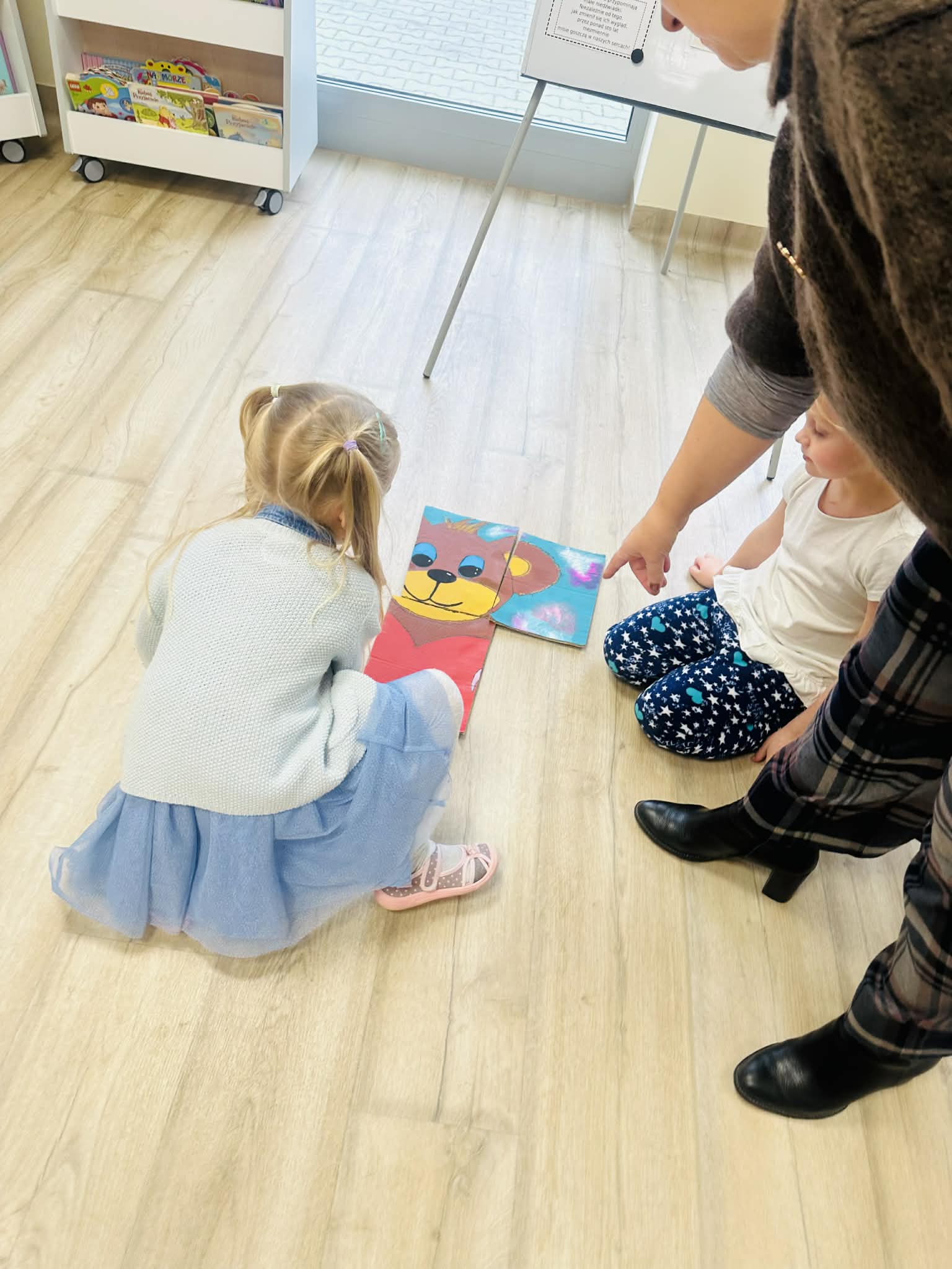 Nie zabrakło też zabawy w rozpoznawanie bajkowych misiów. Kubuś Puchatek i Miś Uszatek nie sprawili większych trudności, jednak przy Colargolu pojawiła się chwila zawahania – wiele dzieci przyznało, że tego misia widzi pierwszy raz.