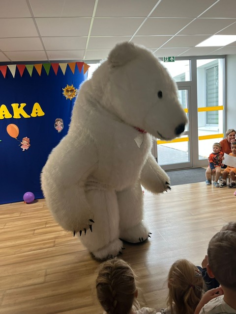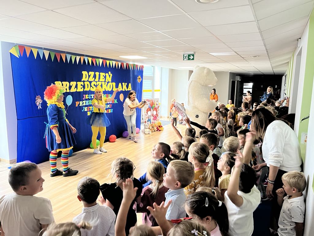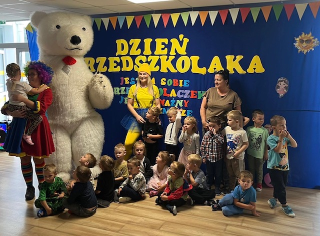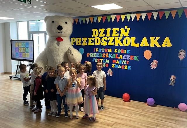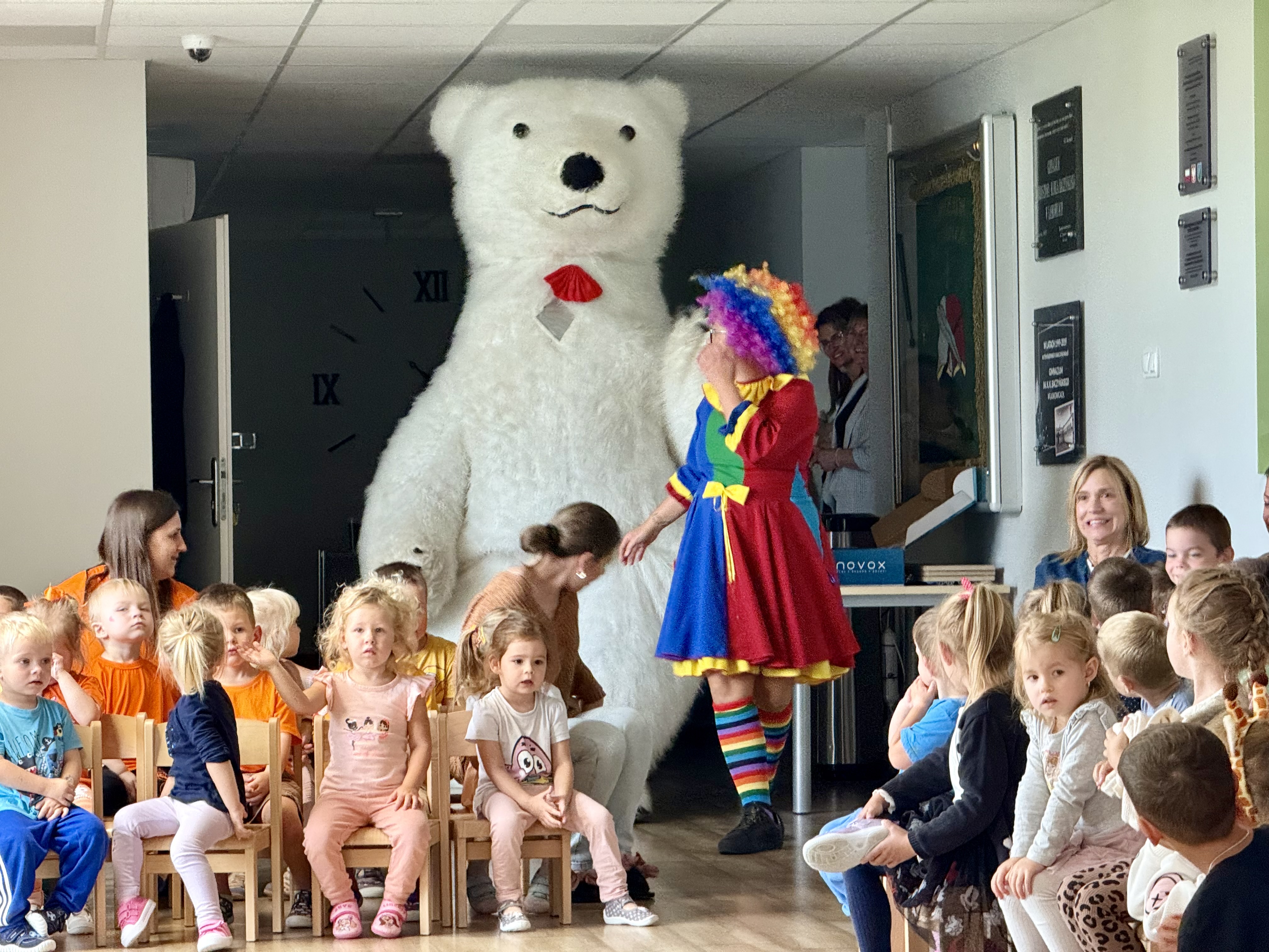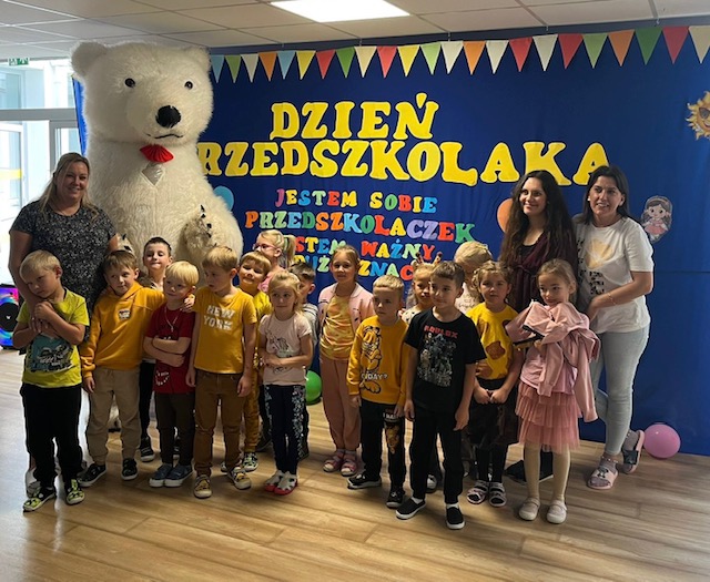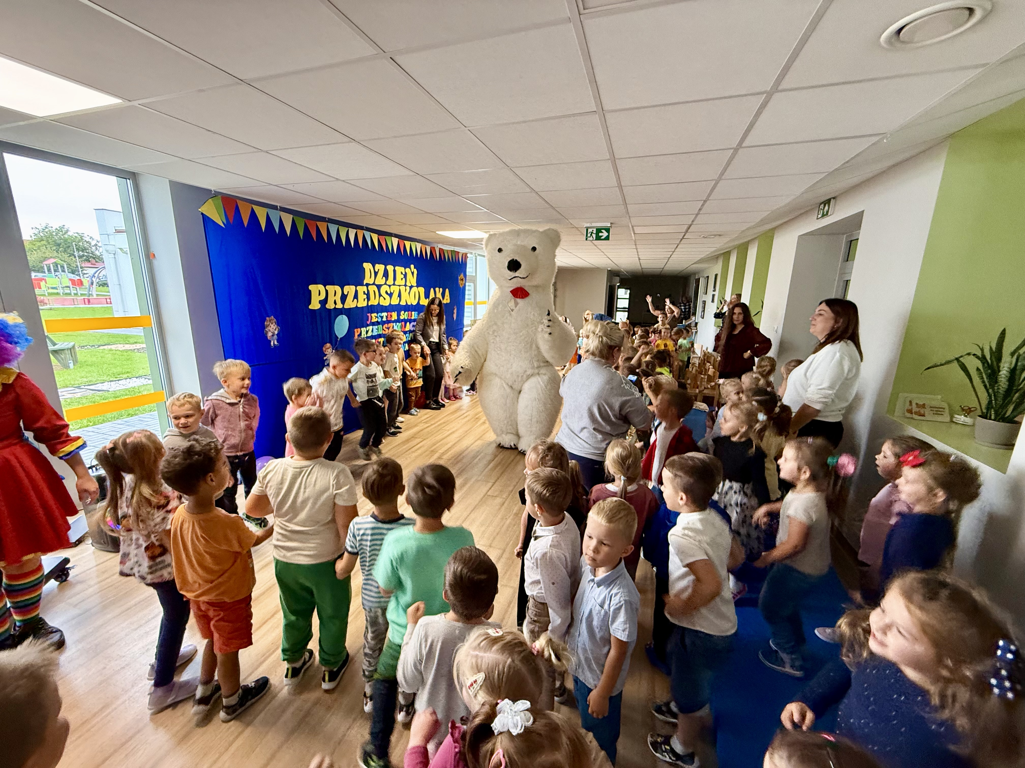 Największą niespodzianką okazała się wizyta pluszowego misia, który zaprosił dzieci do wspólnego tańca – na sali panowała prawdziwa, radosna atmosfera! Po powrocie do sal na przedszkolaków czekały małe upominki – paczuszki z prezentami i kolorowe balony, które wywołały mnóstwo uśmiechów.