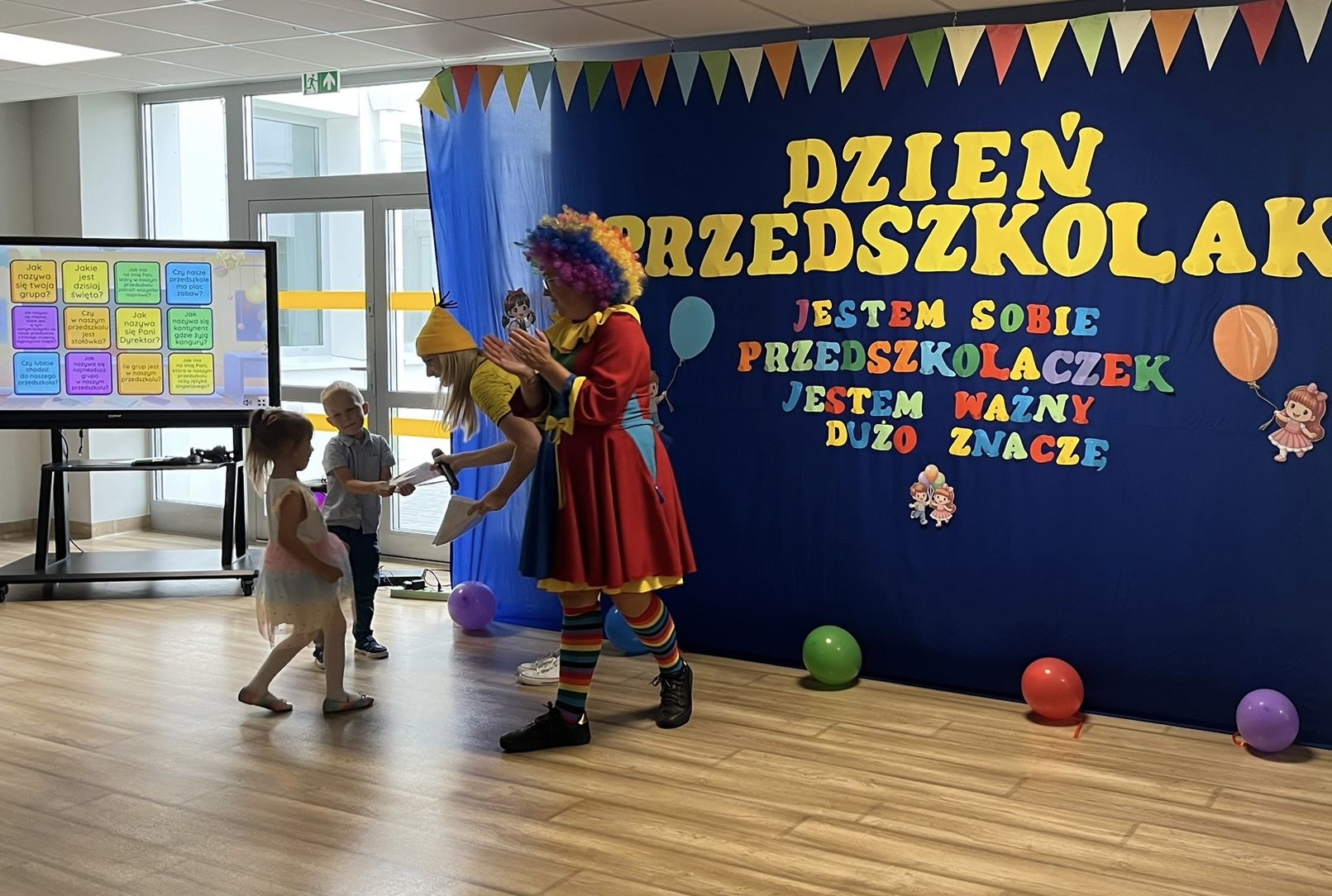 Dnia 18.09.2025 w naszym przedszkolu świętowaliśmy wyjątkowy dzień – Dzień Przedszkolaka! Uroczystość rozpoczęła się na holu, gdzie wszystkie dzieci przywitała Pani Dyrektor. Następnie przedszkolaki wzięły udział w wesołym quizie, odpowiadając na pytania dotyczące życia przedszkolnego. Każda grupa otrzymała pamiątkowy dyplom, który będzie przypominał o tym radosnym dniu.