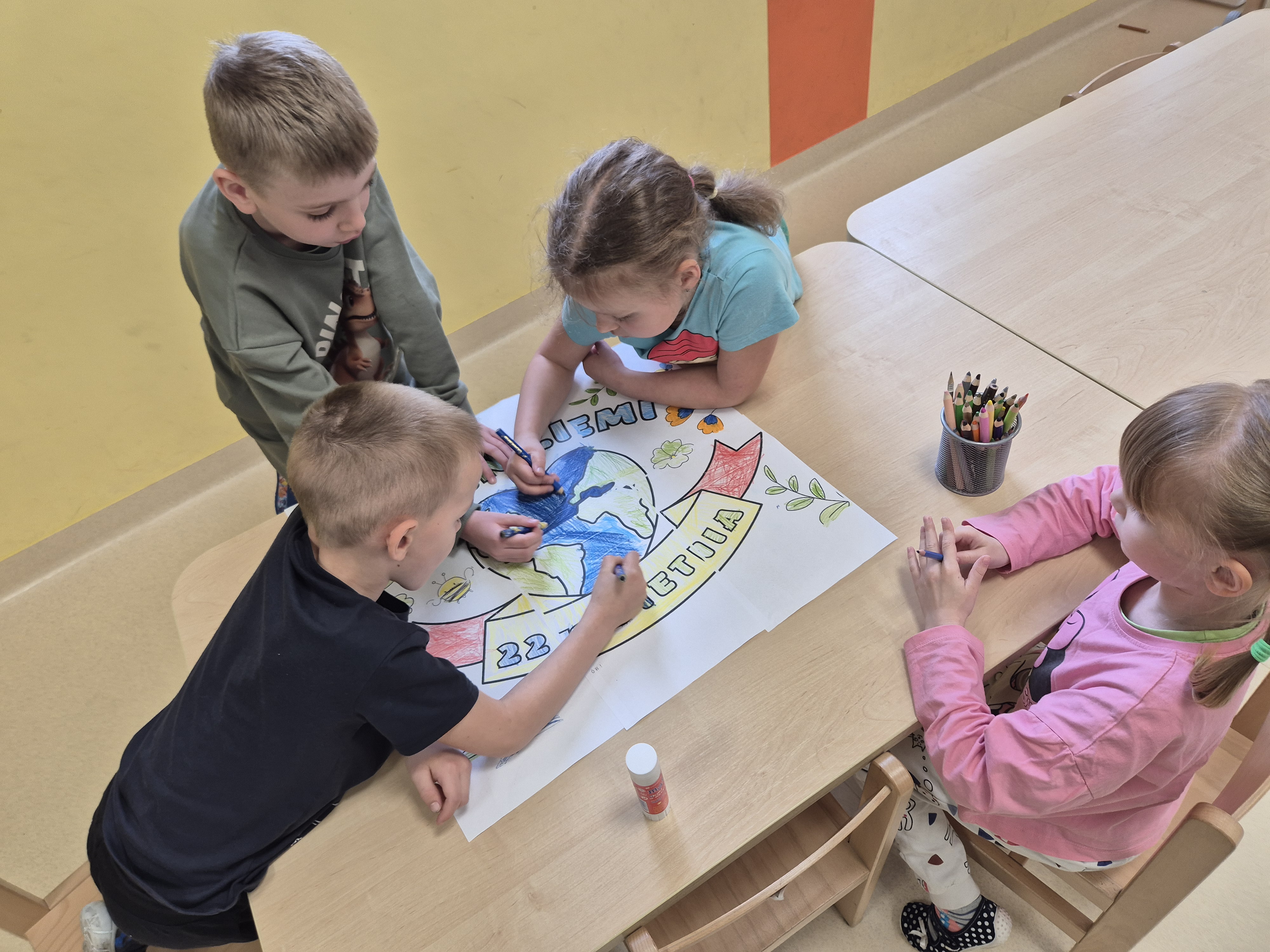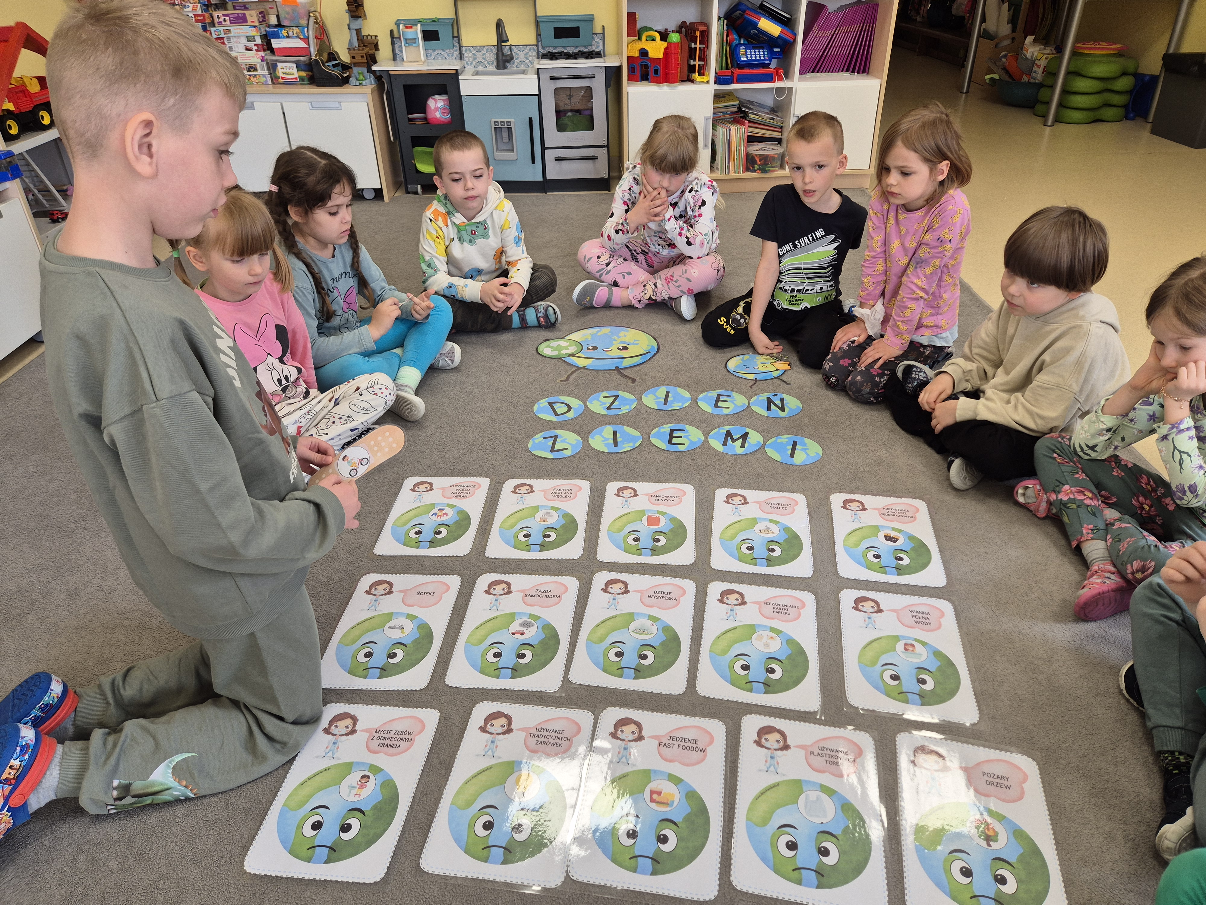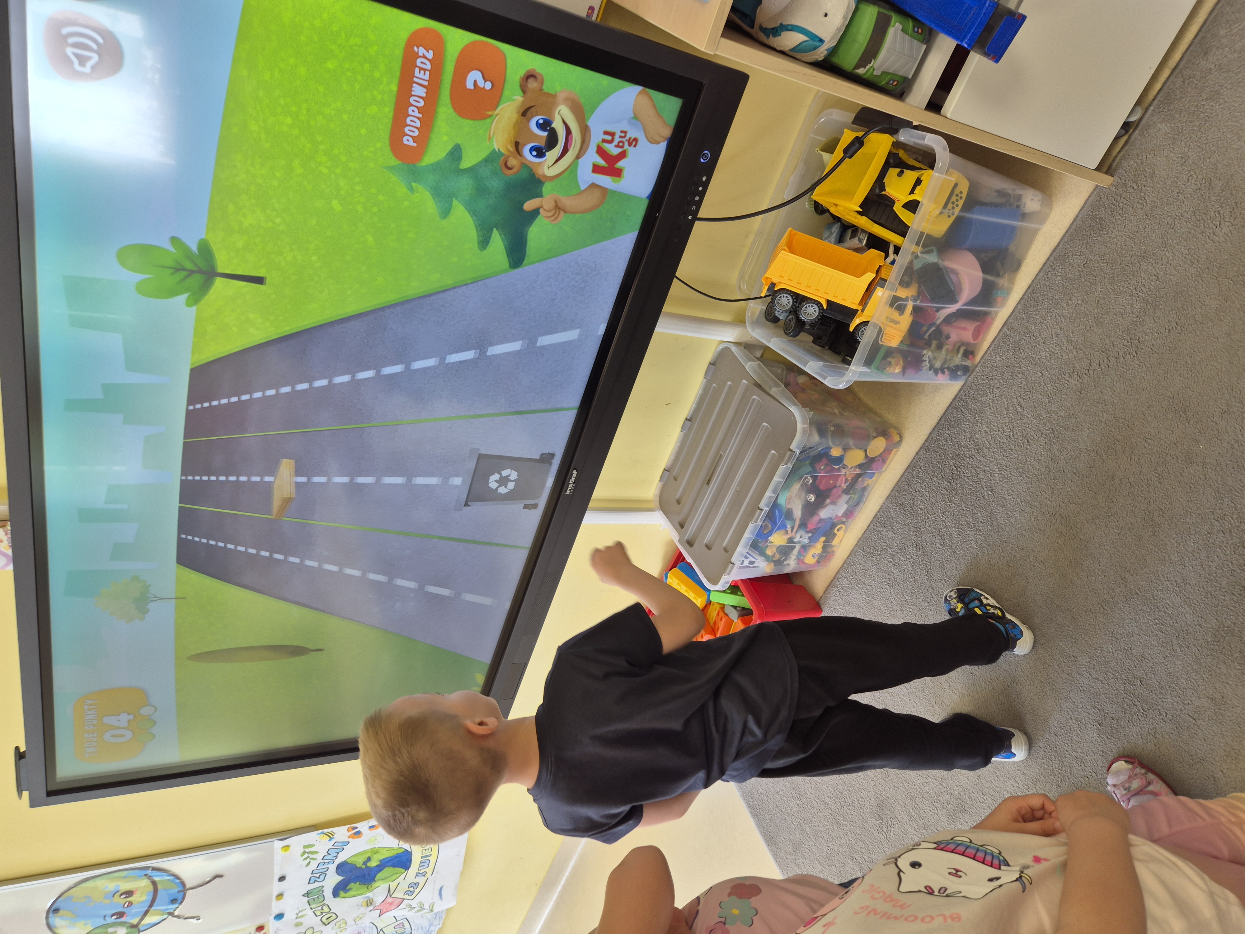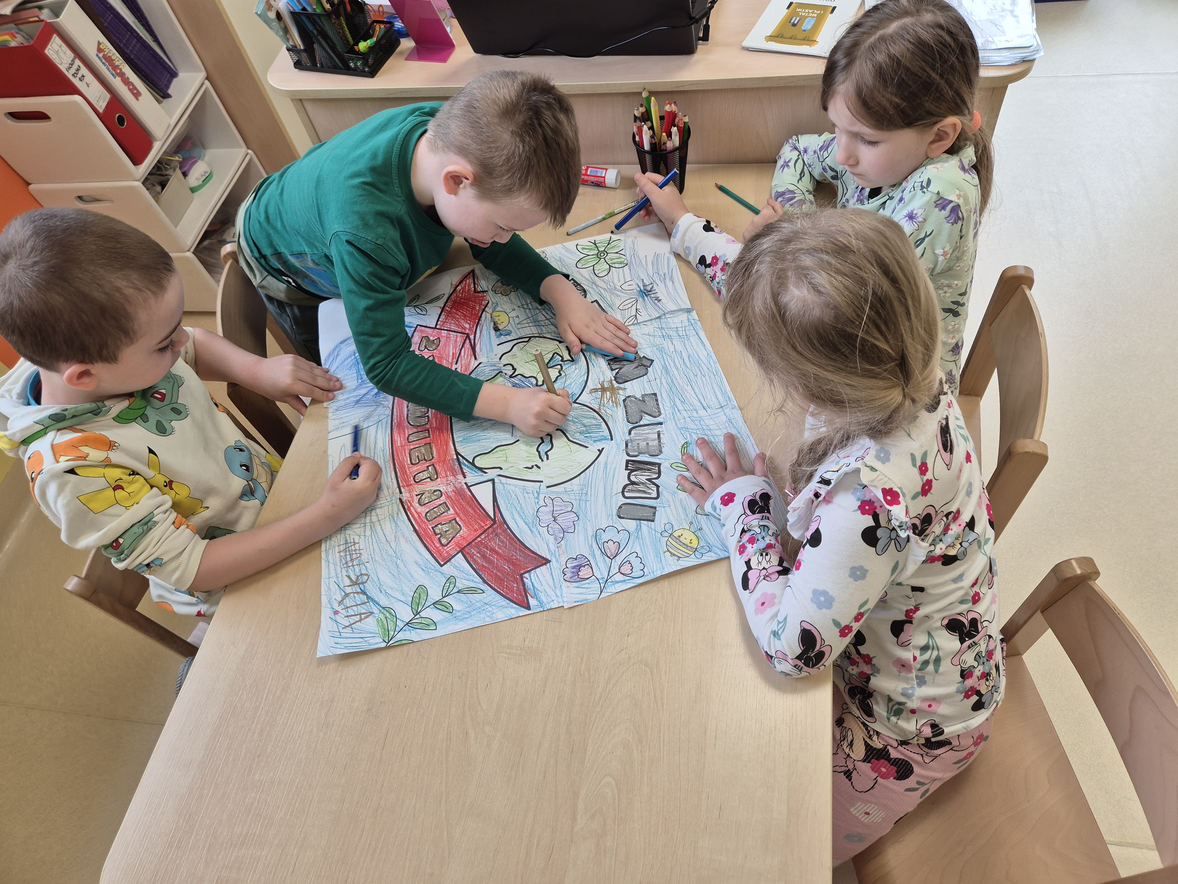Dnia 22 kwietnia grupa „Żyrafy” świętowała Dzień Ziemi. Był to dzień pełen ekologicznych wyzwań, zabawy i nauki przez działanie. Dzieci rozpoczęły dzień od rozmowy na temat dbania o naszą planetę. Następnie segregowały śmieci, ucząc się rozpoznawać różne rodzaje odpadów i przyporządkowywać je do odpowiednich pojemników. Kolejnym punktem dnia było tworzenie plakatów w grupach. Dzieci rozwijały umiejętności współpracy i kreatywność. Na zakończenie przedszkolaki uczestniczyły w zabawach z kodowaniem o tematyce ekologicznej. Grupa „Żyrafy” pokazała, że wie, jak dbać o naszą planetę!