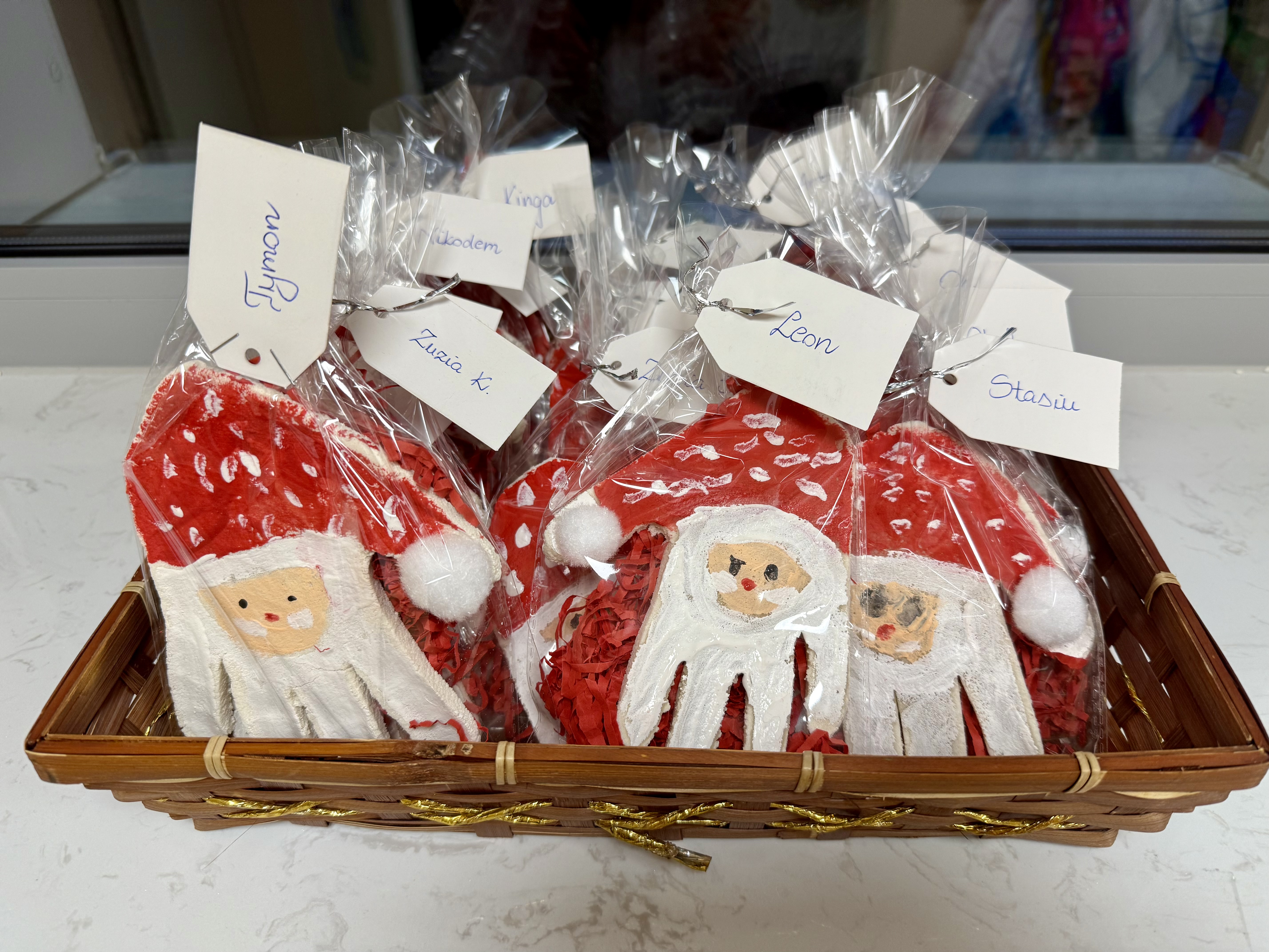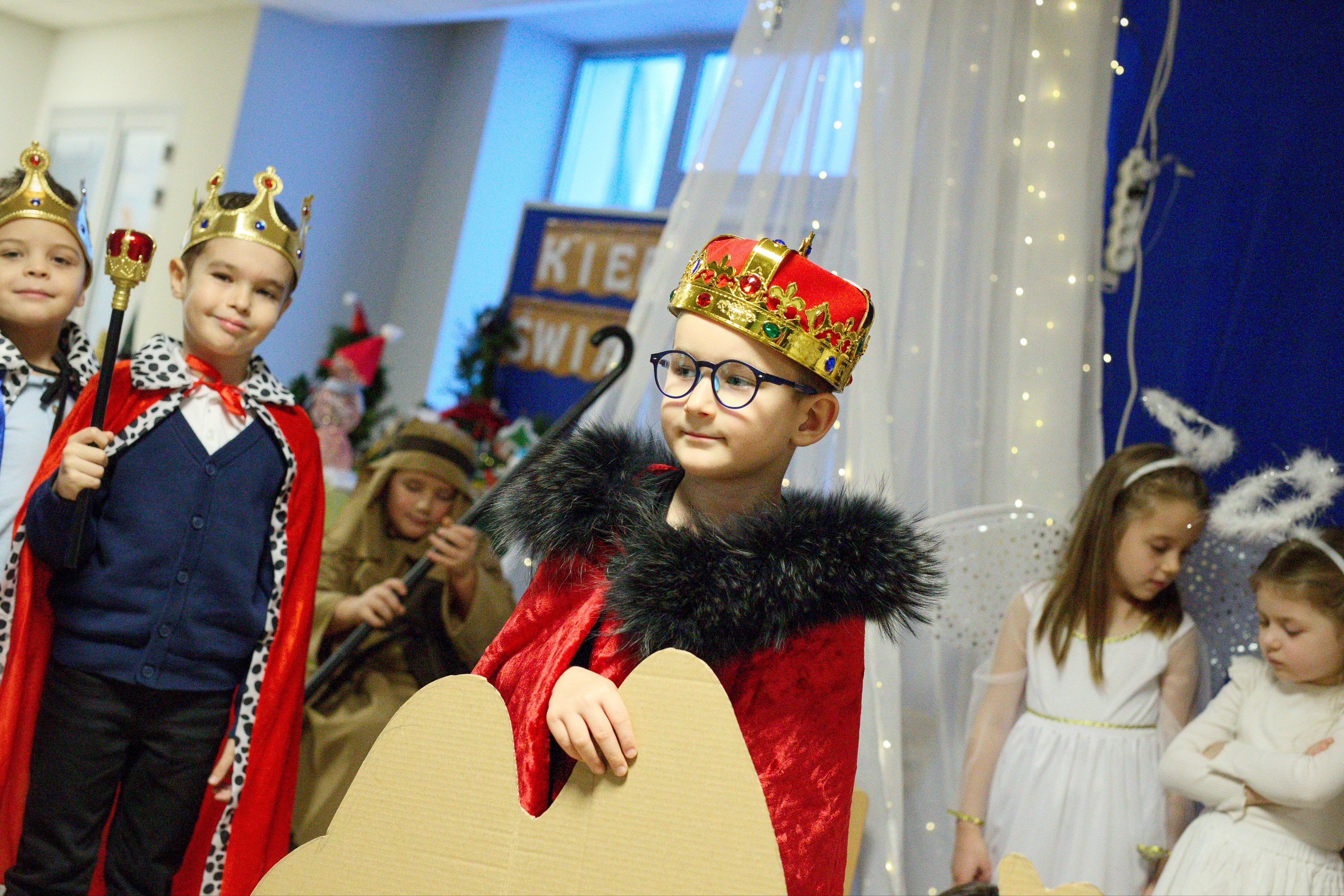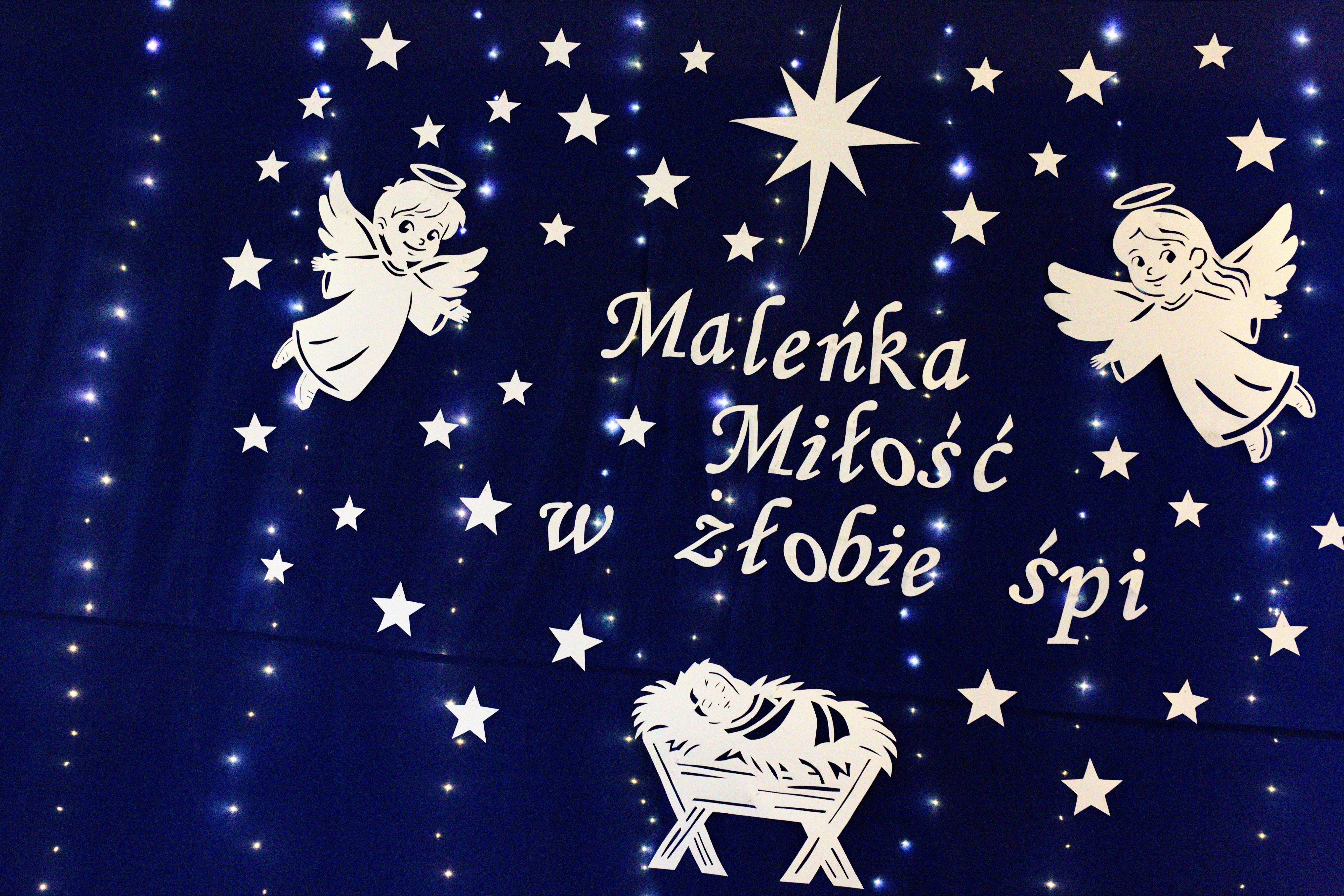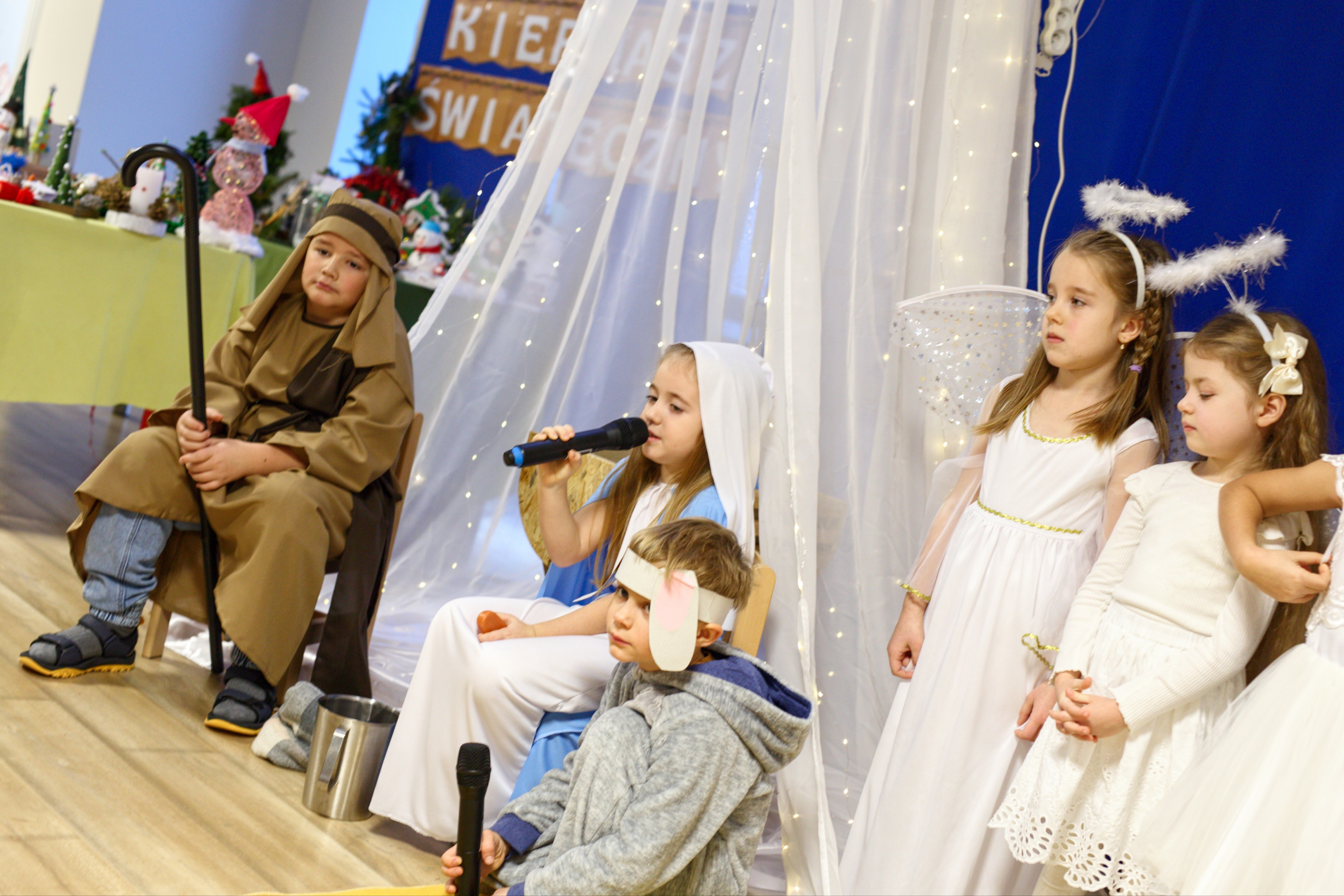 W trakcie występu zaprezentowano także krótki teatrzyk żywych cieni, dodający całemu widowisku odrobiny tajemniczości oraz niezwykłego klimatu. Nie zabrakło również muzyki. Hol wypełniła spokojna, kojąca kołysanka, tradycyjne polskie kolędy, a także piosenka w języku angielskim, która dodała przedstawieniu nowoczesnego i radosnego brzmienia. Całość zakończyła się gromkimi brawami, a na twarzach wszystkich zebranych pojawiły się uśmiechy i wzruszenie. Po występie dzieci z dumą wręczyły rodzicom własnoręcznie wykonane upominki, które stały się piękną pamiątką tego wyjątkowego dnia.