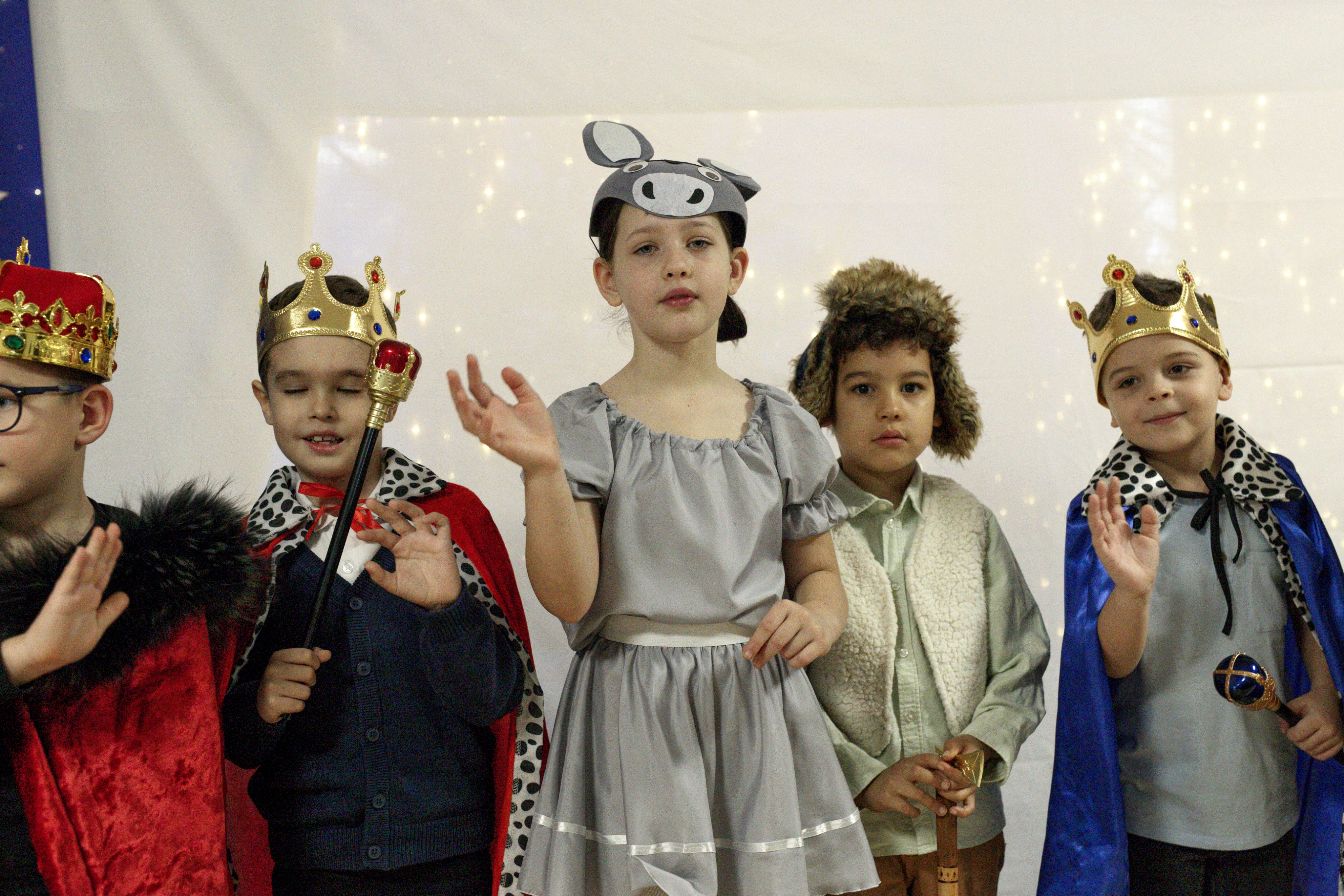 W przedstawieniu pojawili się wszyscy najważniejsi bohaterowie: Maryja, Józef, pastuszkowie, królowie oraz zwierzątka – osiołki i wół. Nad przebiegiem wydarzeń czuwały aniołki, które z wdziękiem prowadziły widownię przez kolejne sceny.