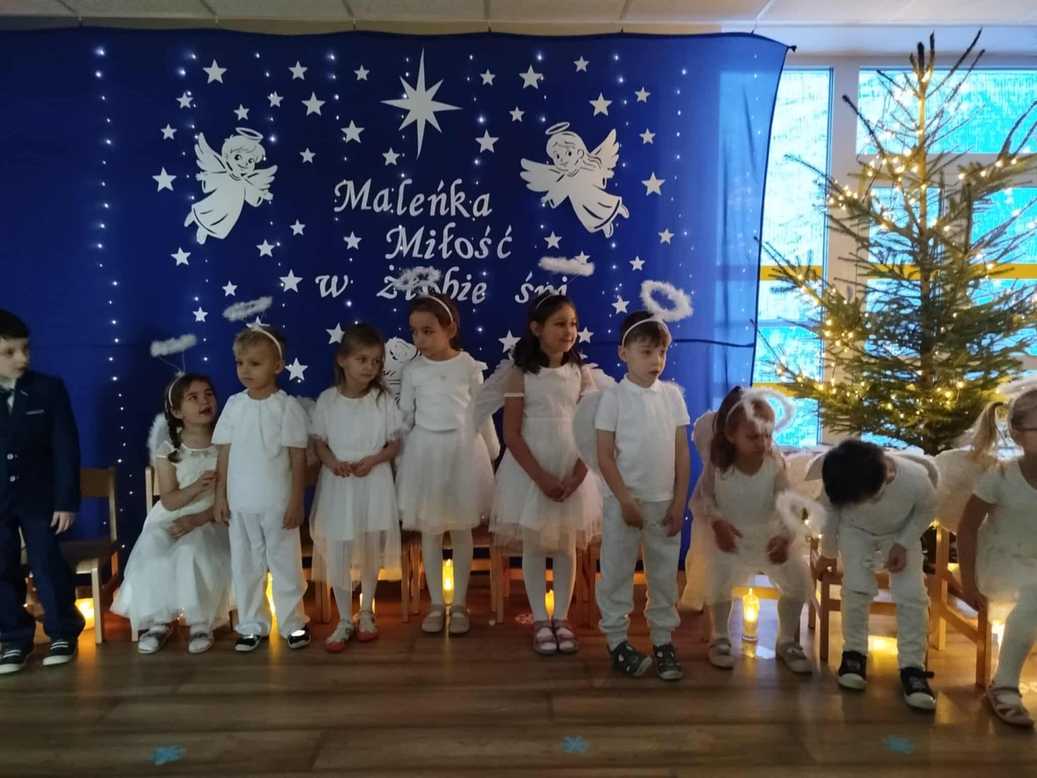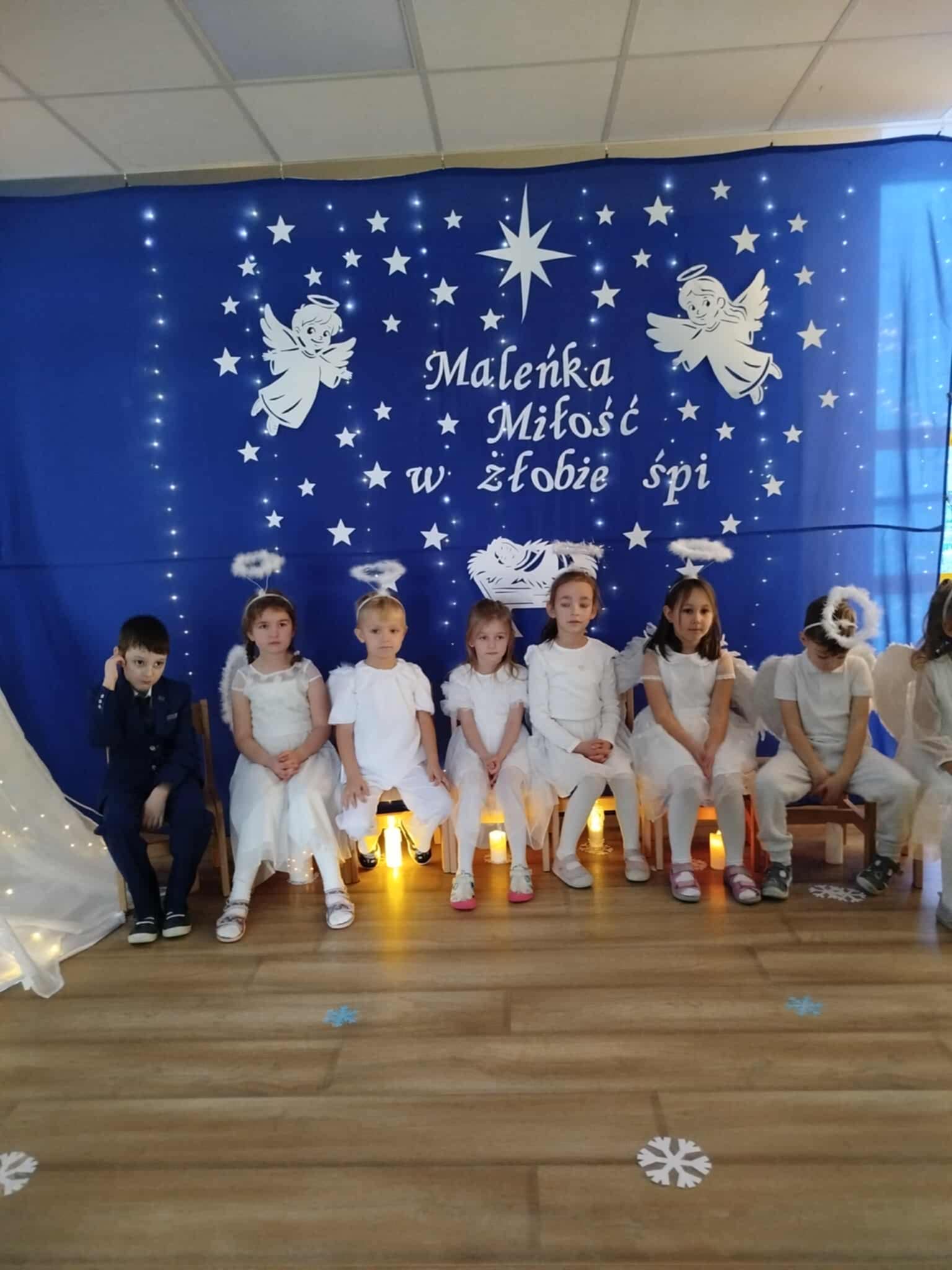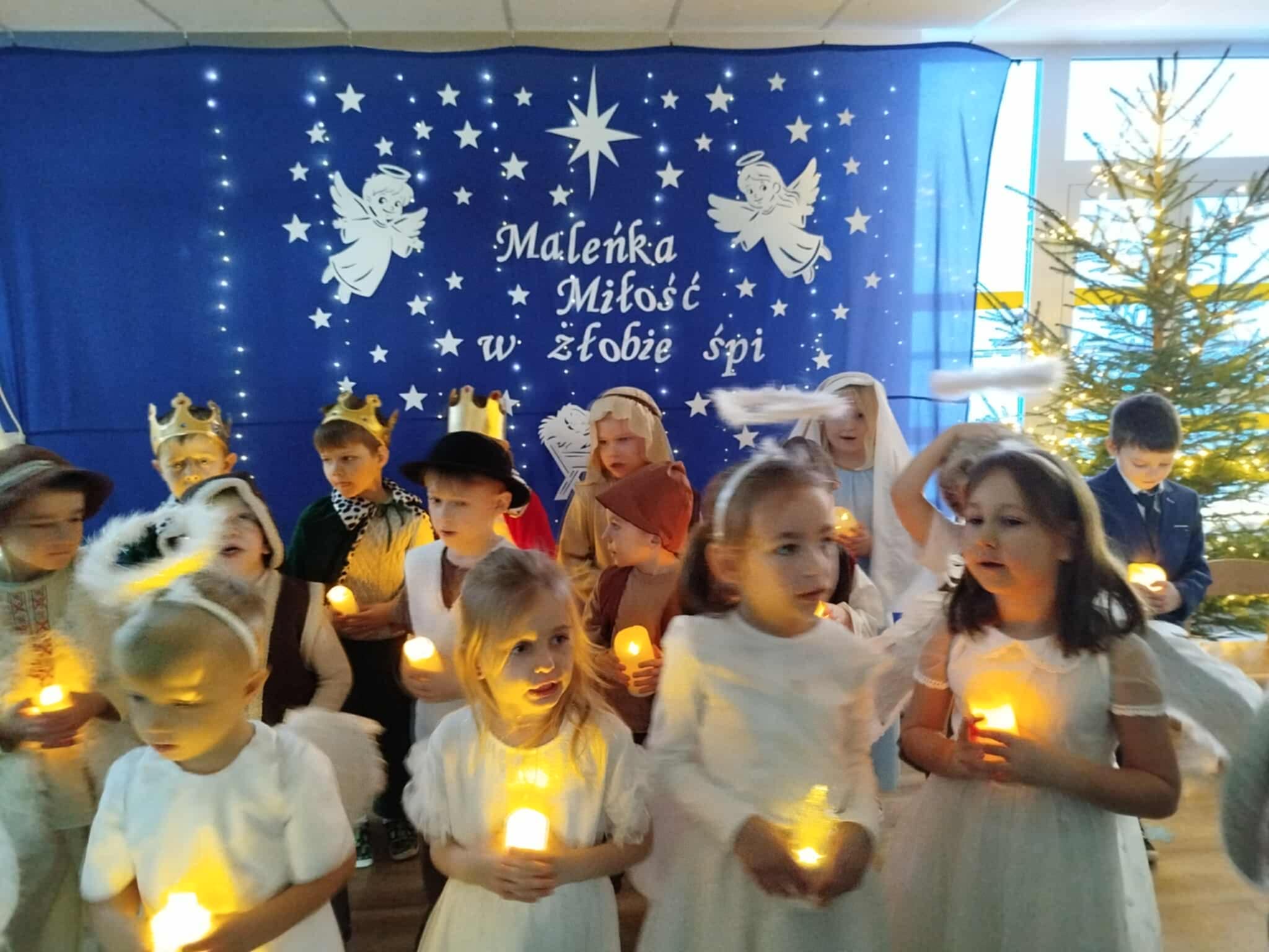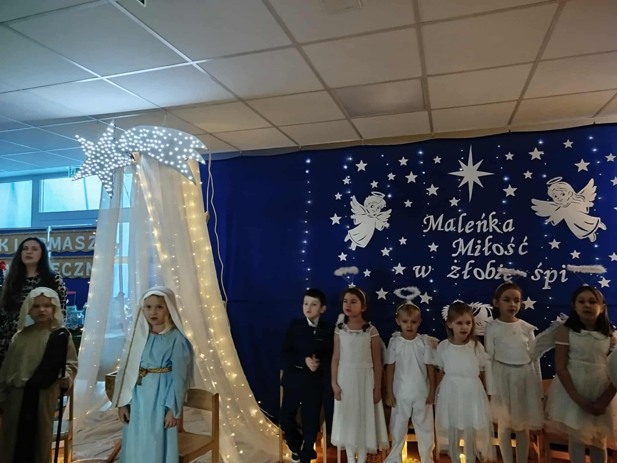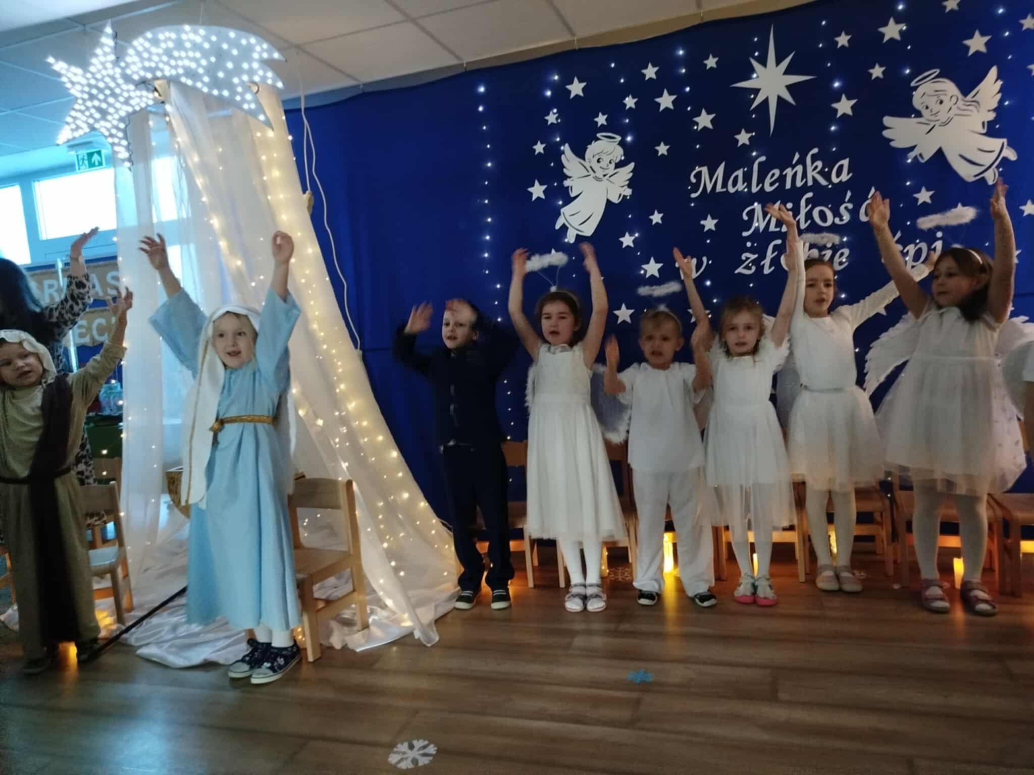 Na scenie pojawili się Józef i Maryja, otoczeni przez rozświetlone Anioły, dzielnych Pasterzy, dostojnych Króli oraz wspaniałego prowadzącego, który z uśmiechem towarzyszył całemu przedstawieniu. Mali artyści z ogromnym zaangażowaniem odegrali swoje role, tworząc piękną opowieść o Narodzeniu Jezusa.