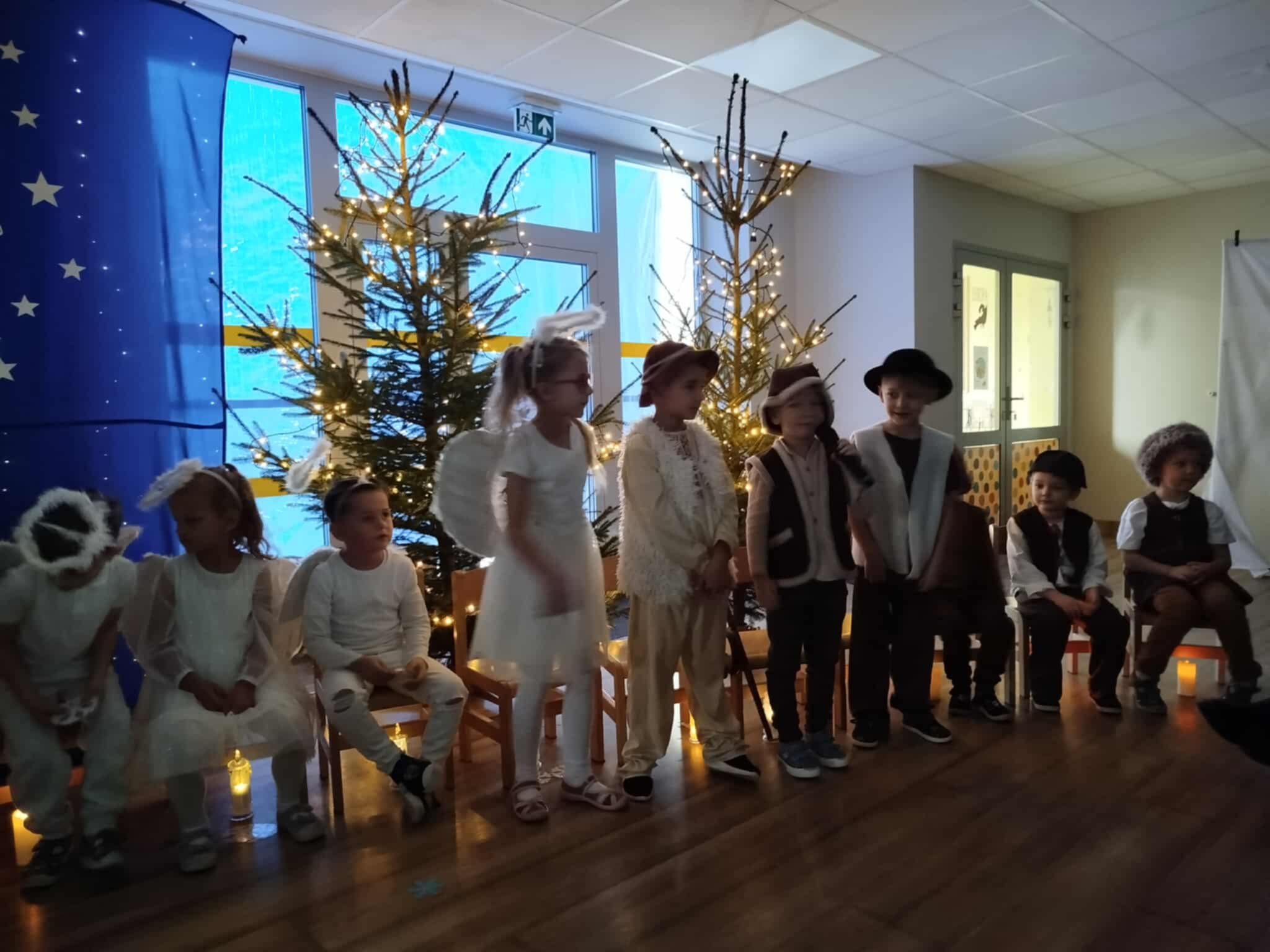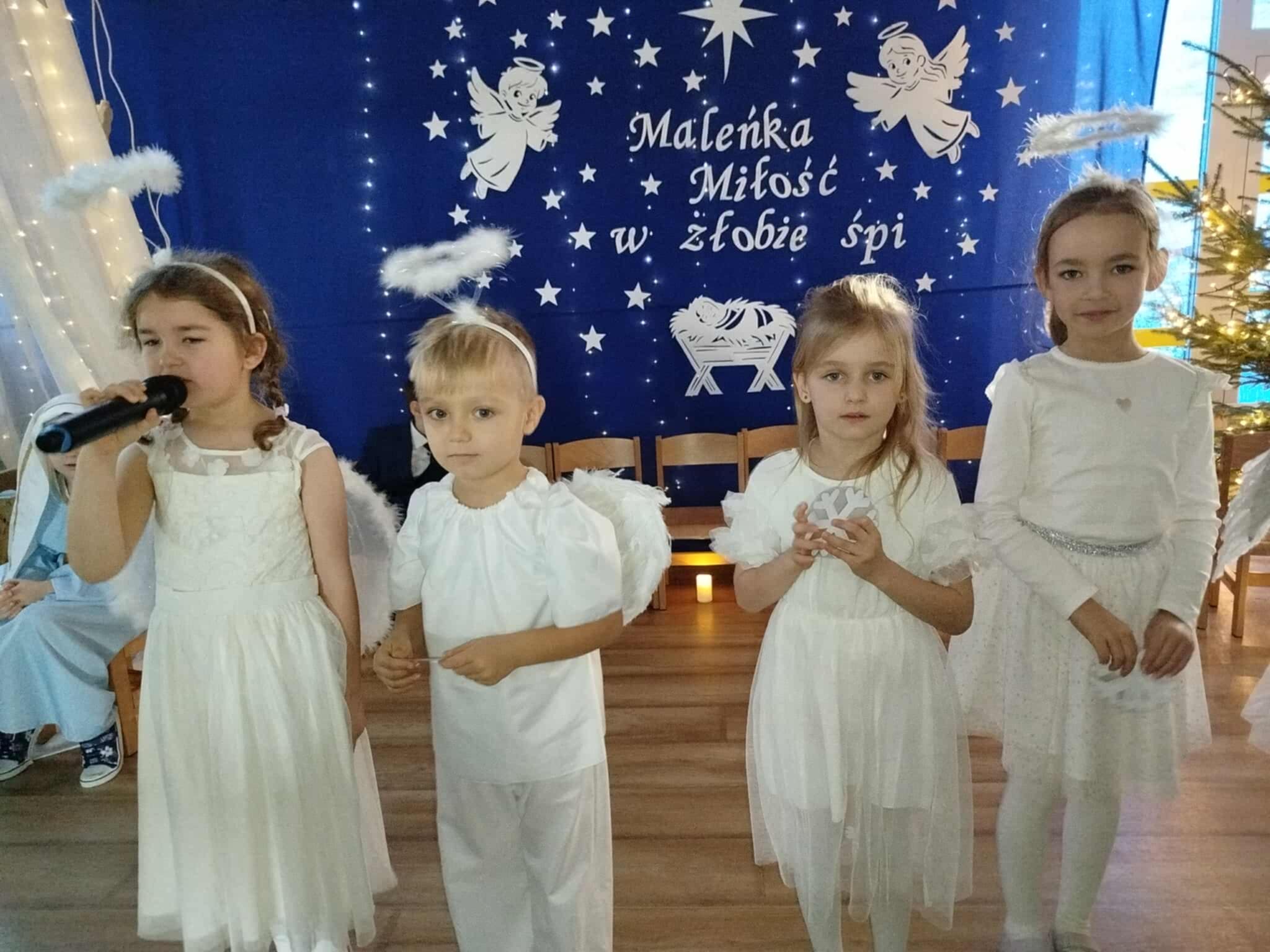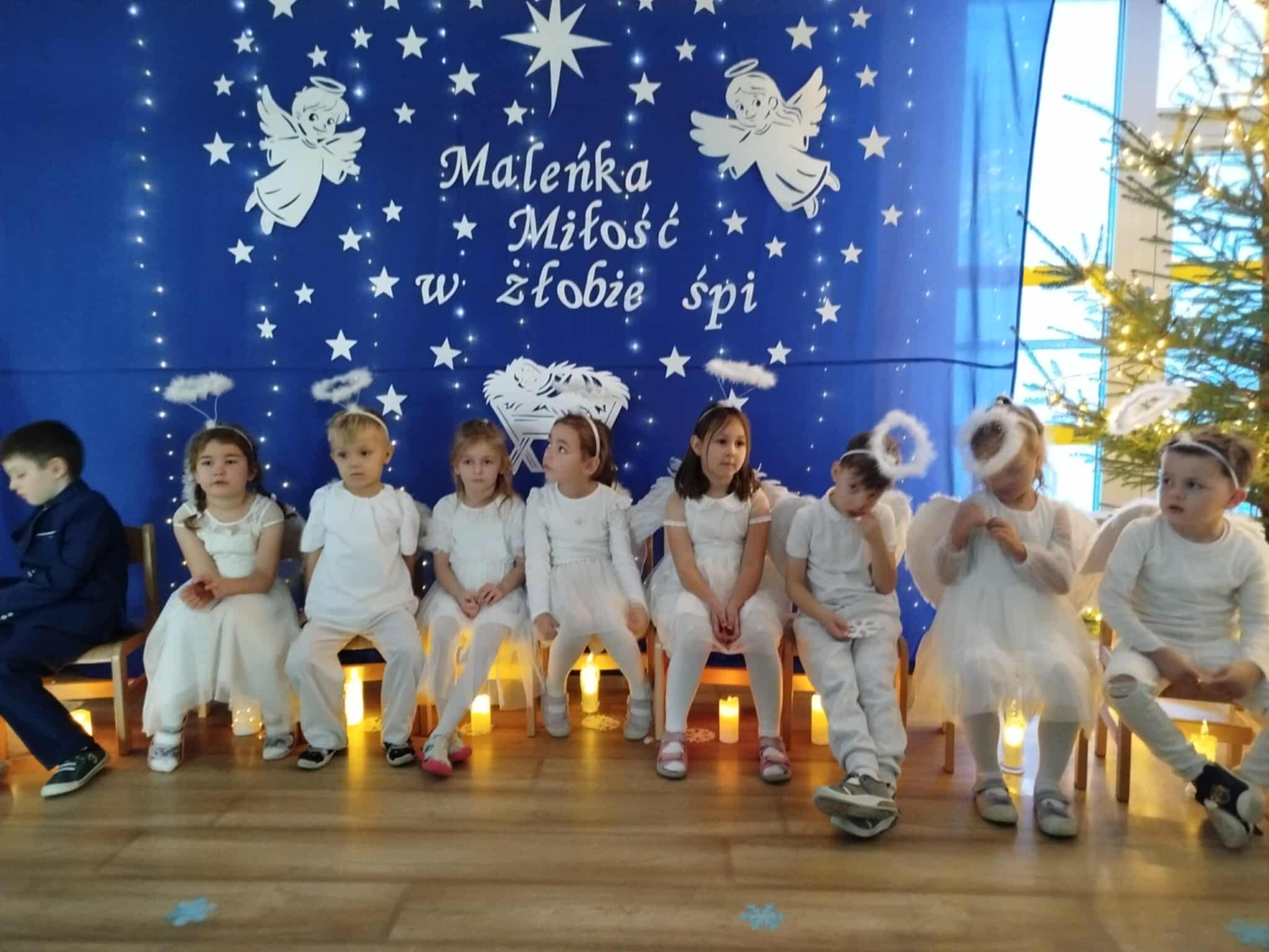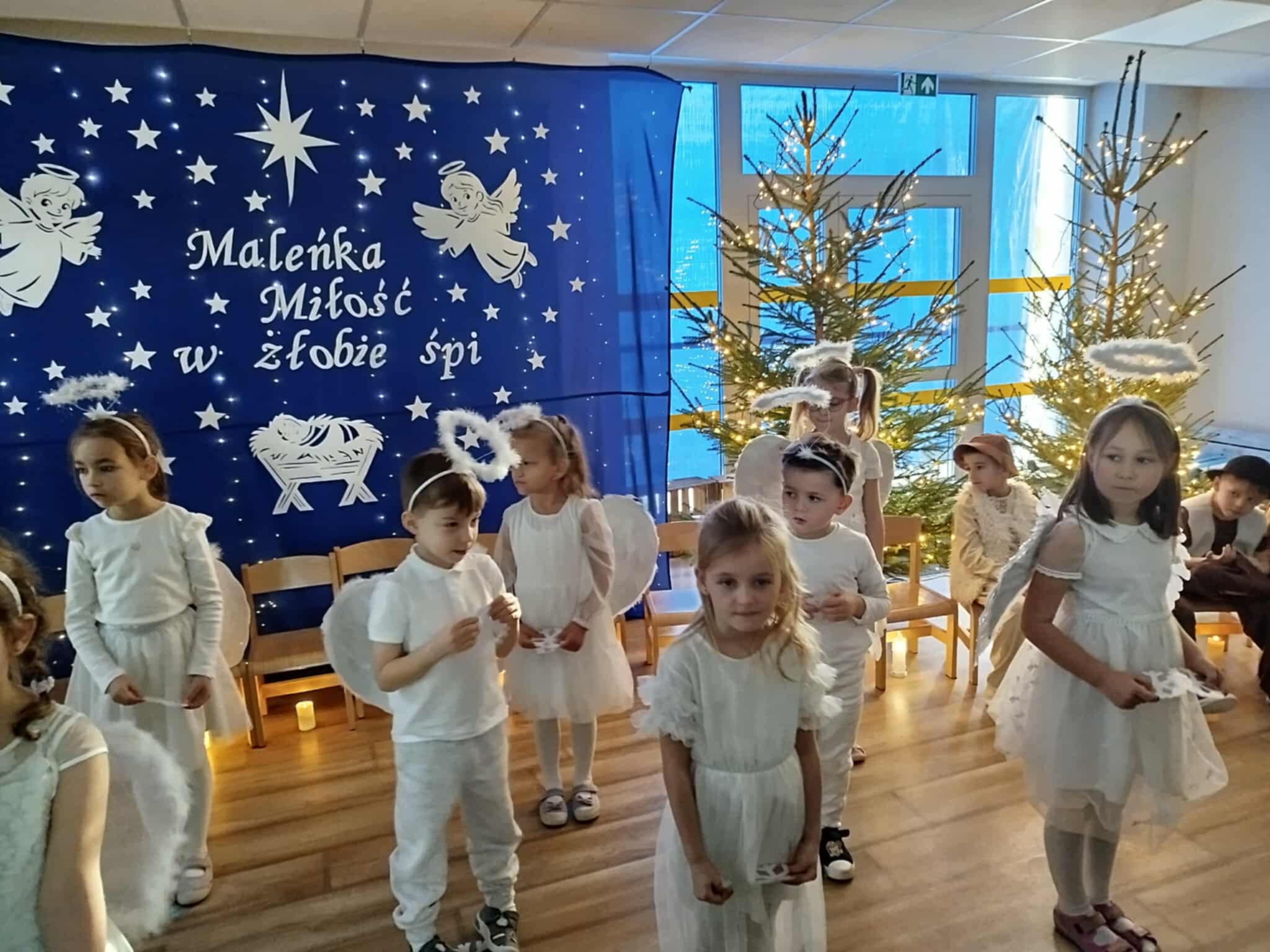 Na scenie pojawili się Józef i Maryja, otoczeni przez rozświetlone Anioły, dzielnych Pasterzy, dostojnych Króli oraz wspaniałego prowadzącego, który z uśmiechem towarzyszył całemu przedstawieniu. Mali artyści z ogromnym zaangażowaniem odegrali swoje role, tworząc piękną opowieść o Narodzeniu Jezusa.