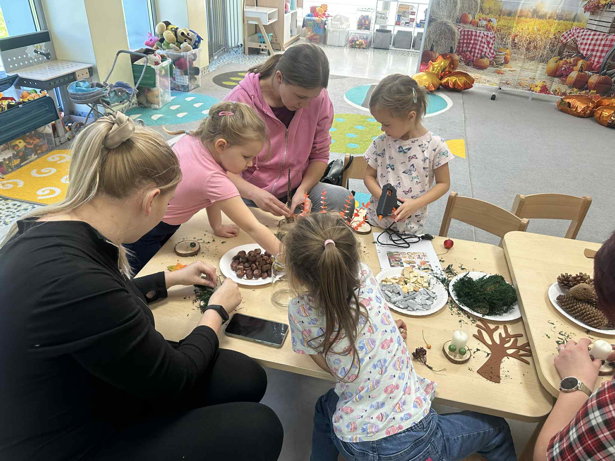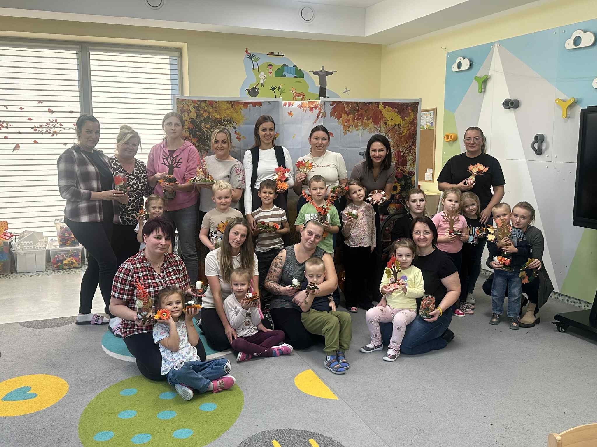 W piękne, październikowe popołudnie — 20 października — w Grupie „Koliberki” odbyło się wyjątkowe spotkanie dzieci i ich mam. Tego dnia sala przedszkolna zamieniła się w mały warsztat artystyczny, w którym powstawały przepiękne jesienne stroiki.