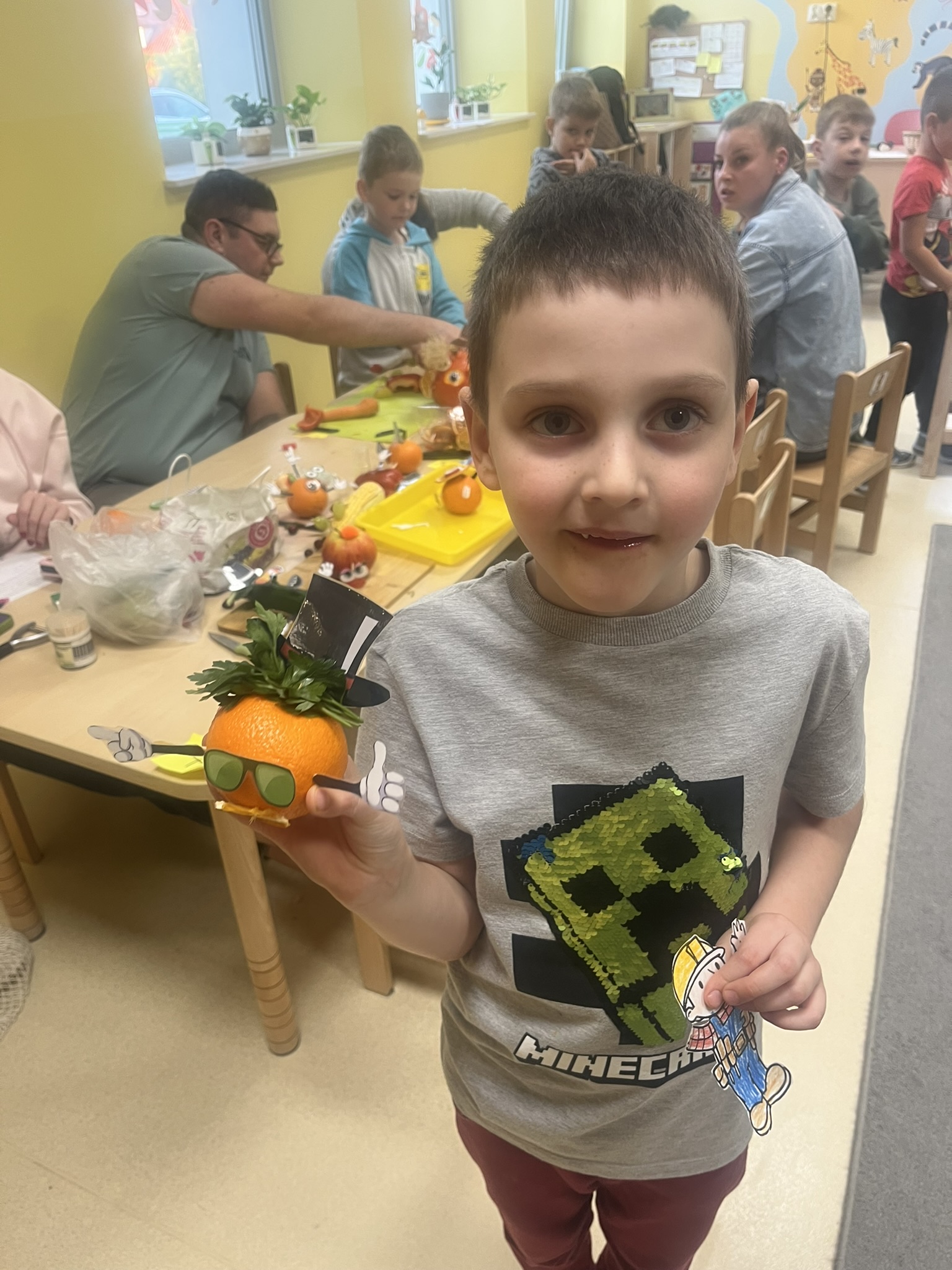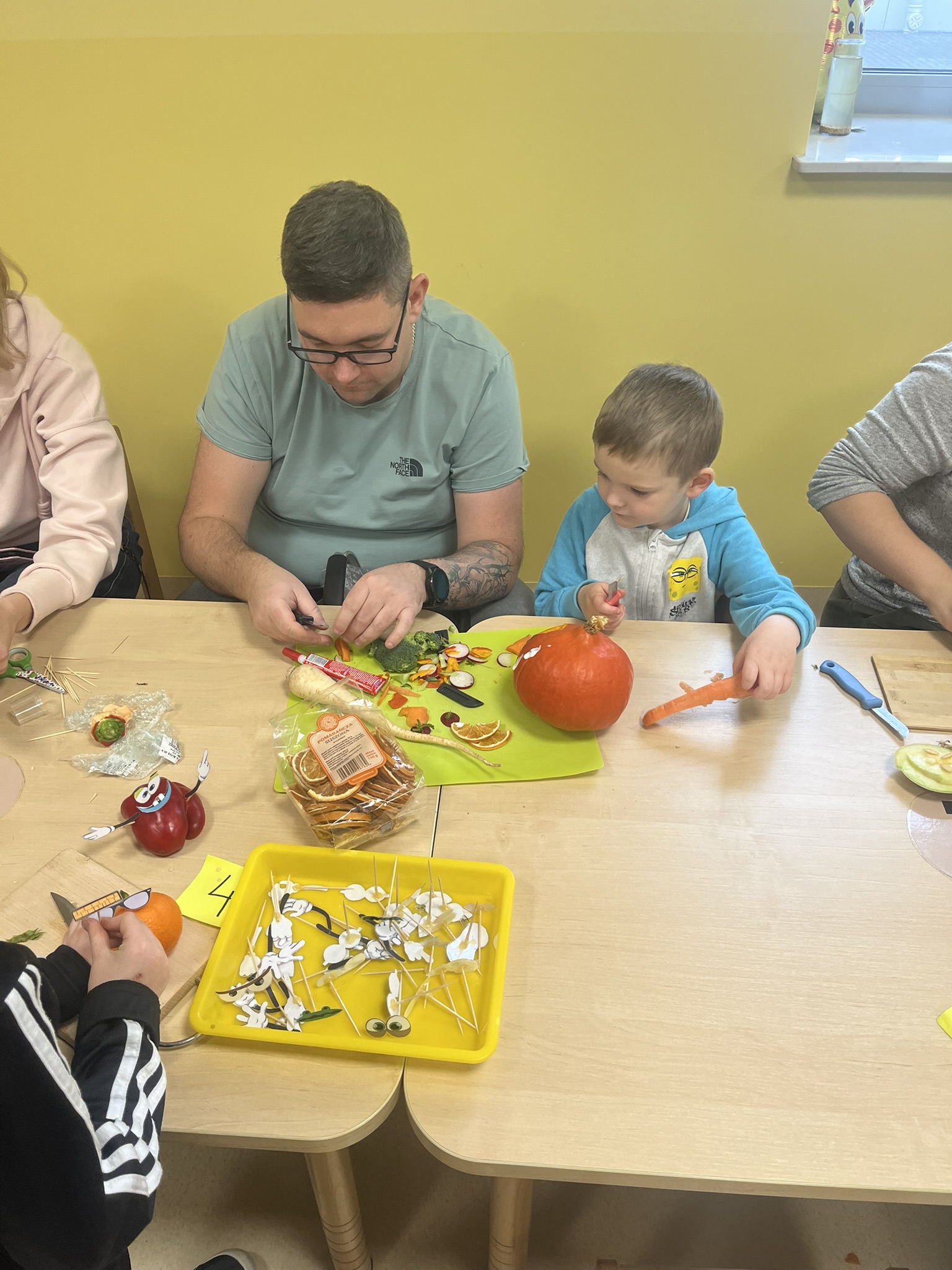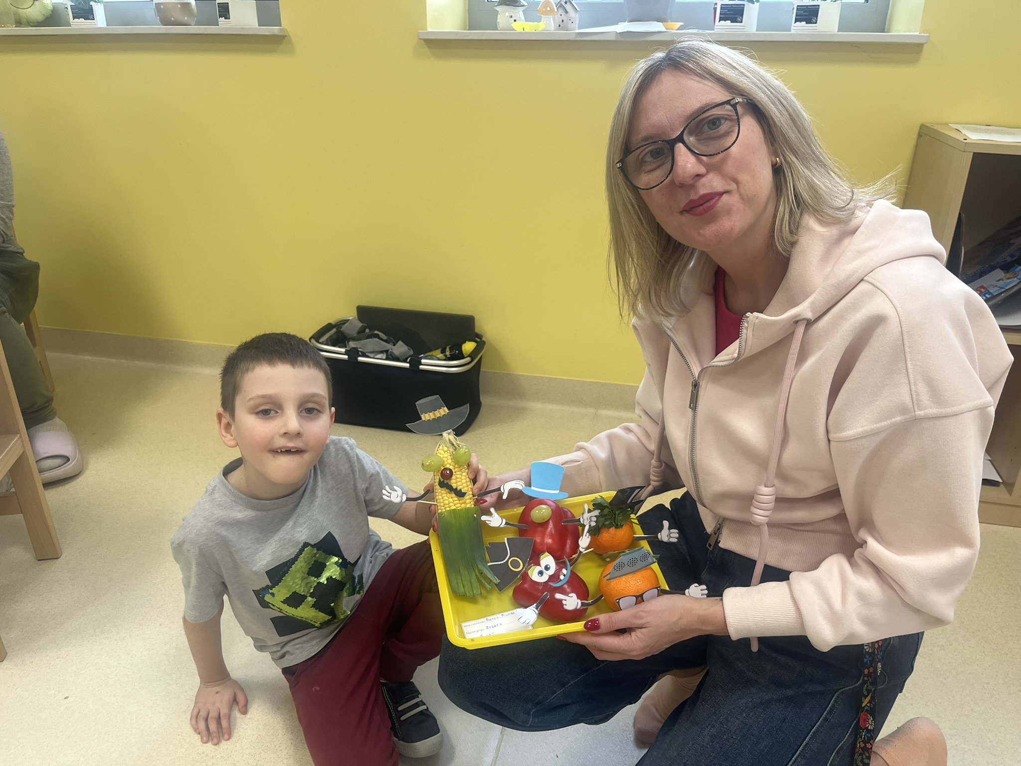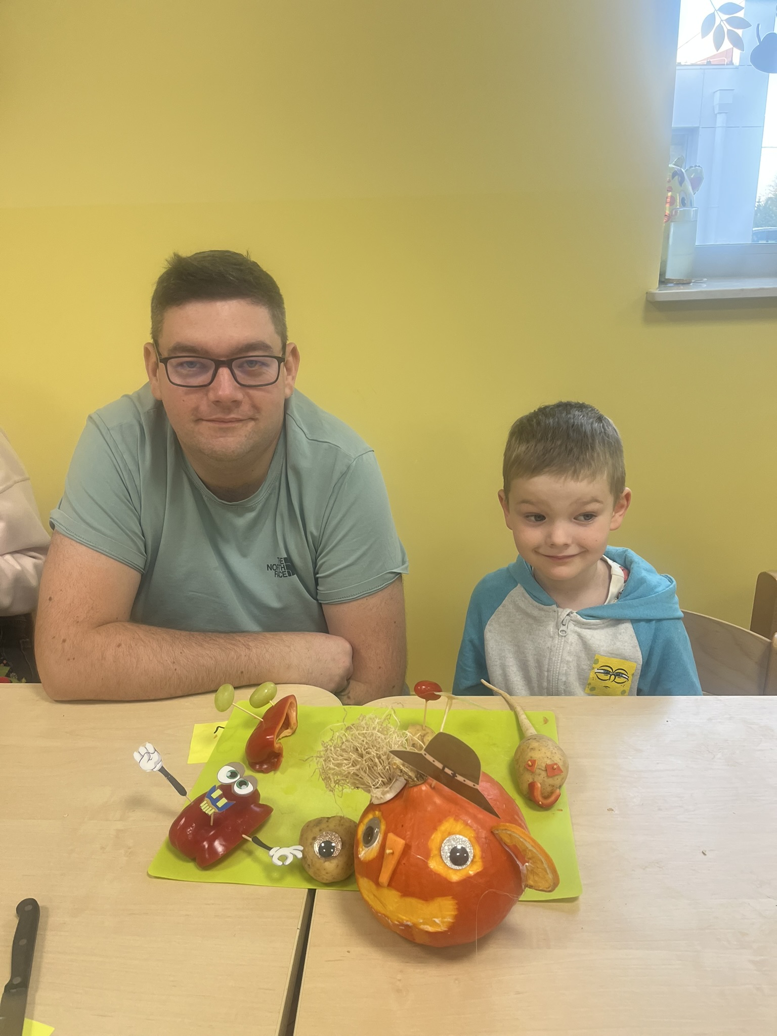 Na stołach królowały marchewki z uśmiechami, cukiniowe wieloryby, ziemniaczane potworki i kalafiorowe owce. W ruch poszły wykałaczki, ziarna, liście sałaty i mnóstwo fantazji! Nie brakowało śmiechu, a każda nowa postać budziła zachwyt i... czasem mały głód.