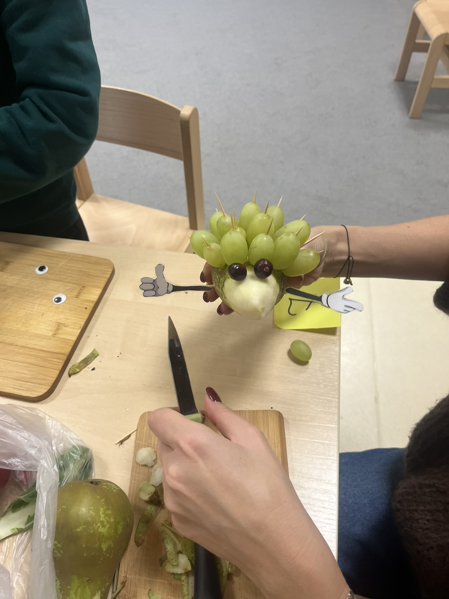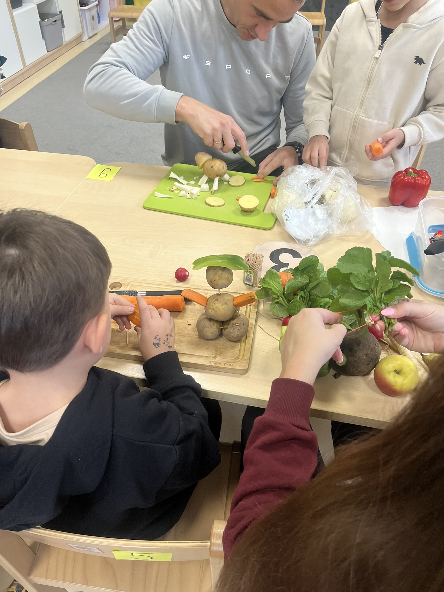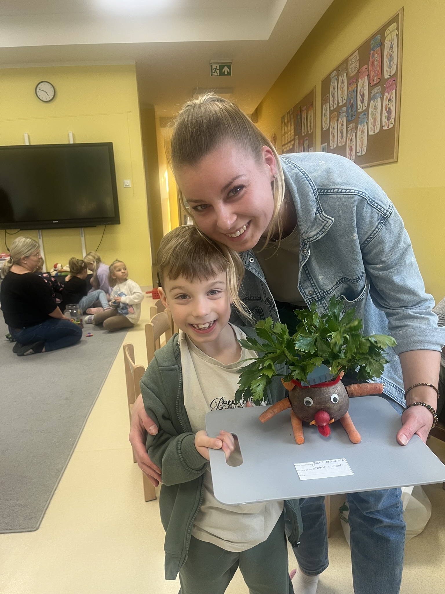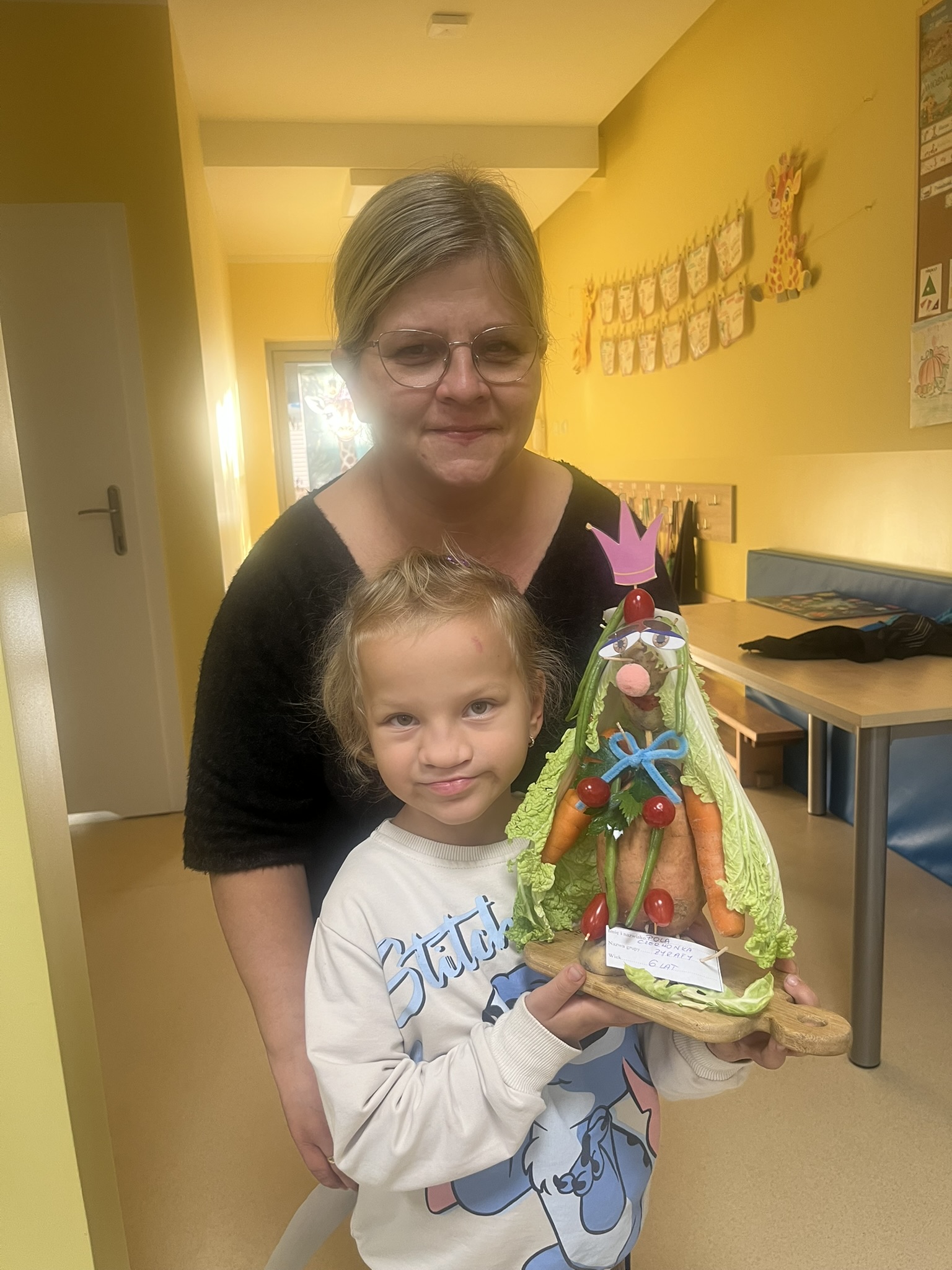 Na stołach królowały marchewki z uśmiechami, cukiniowe wieloryby, ziemniaczane potworki i kalafiorowe owce. W ruch poszły wykałaczki, ziarna, liście sałaty i mnóstwo fantazji! Nie brakowało śmiechu, a każda nowa postać budziła zachwyt i... czasem mały głód.