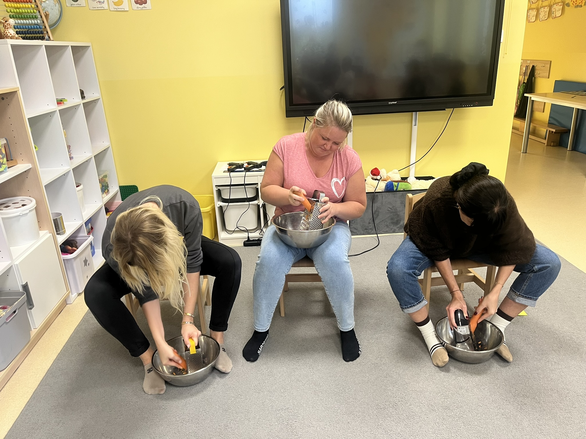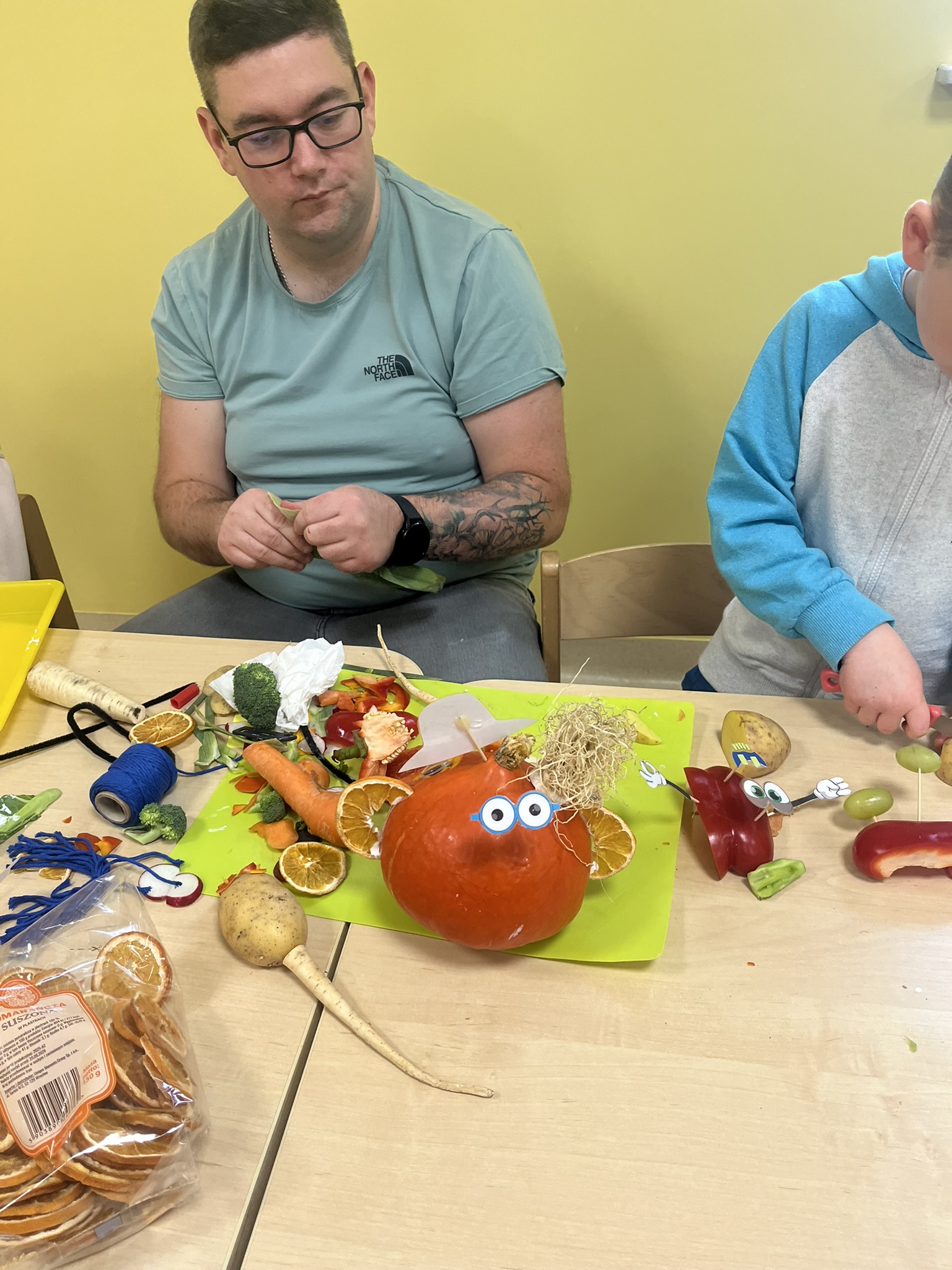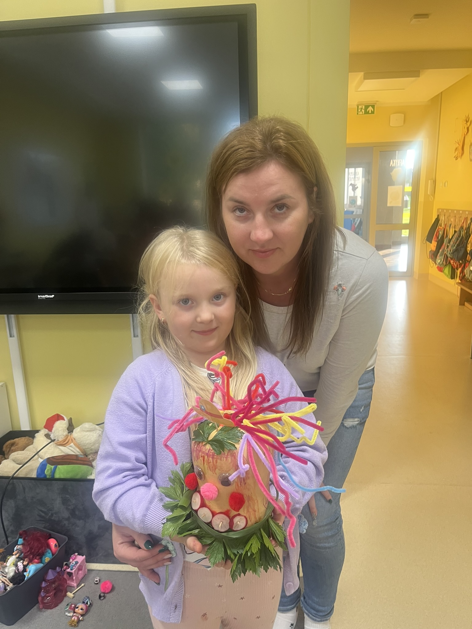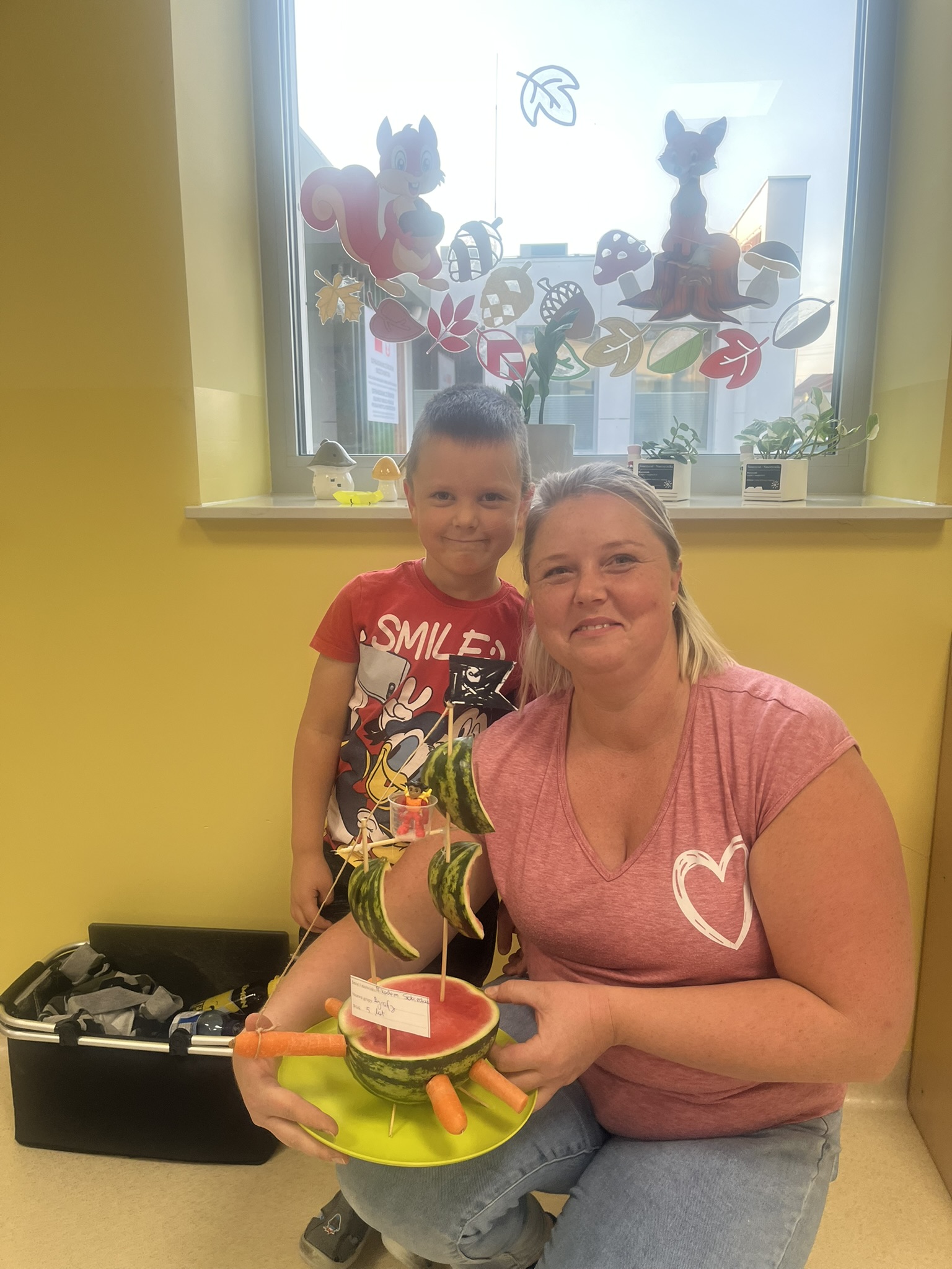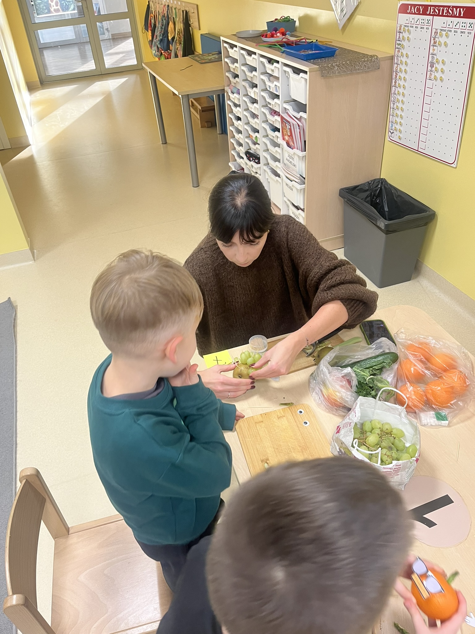 Na stołach królowały marchewki z uśmiechami, cukiniowe wieloryby, ziemniaczane potworki i kalafiorowe owce. W ruch poszły wykałaczki, ziarna, liście sałaty i mnóstwo fantazji! Nie brakowało śmiechu, a każda nowa postać budziła zachwyt i... czasem mały głód.