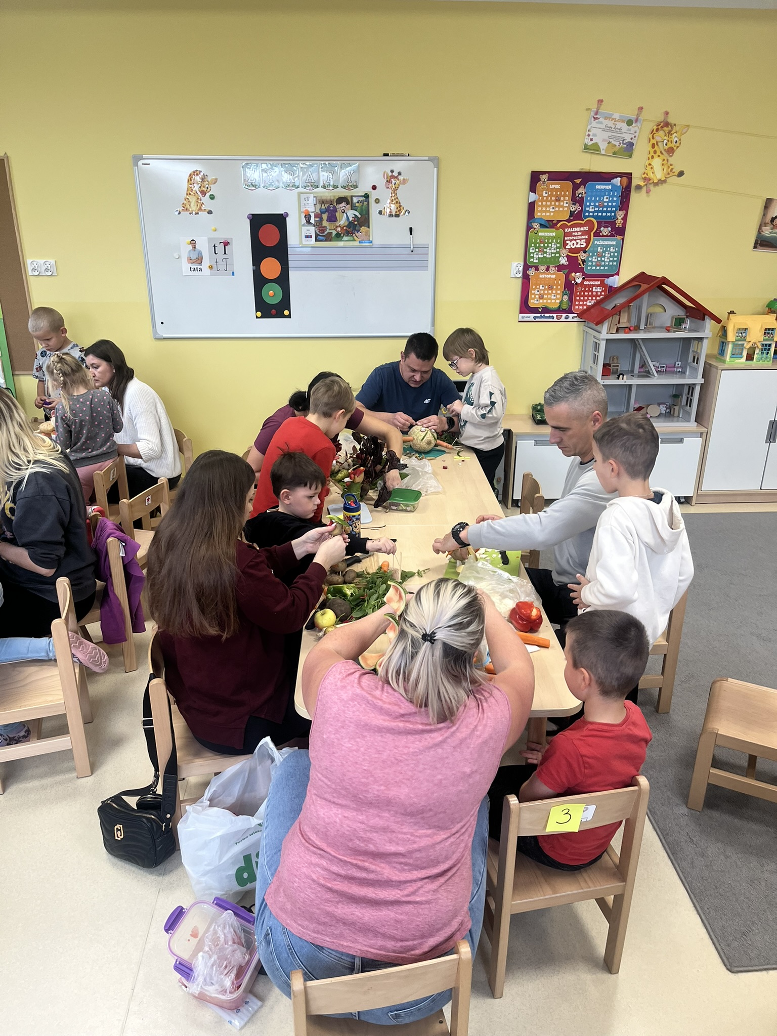 Dnia 21 października w grupie Żyrafek zrobiło się naprawdę kolorowo i... smakowicie! Dzieci razem z rodzicami wzięły udział w warsztatach „Warzywne stworki”, podczas których zamienili zwykłe warzywa w niezwykłe dzieła sztuki.