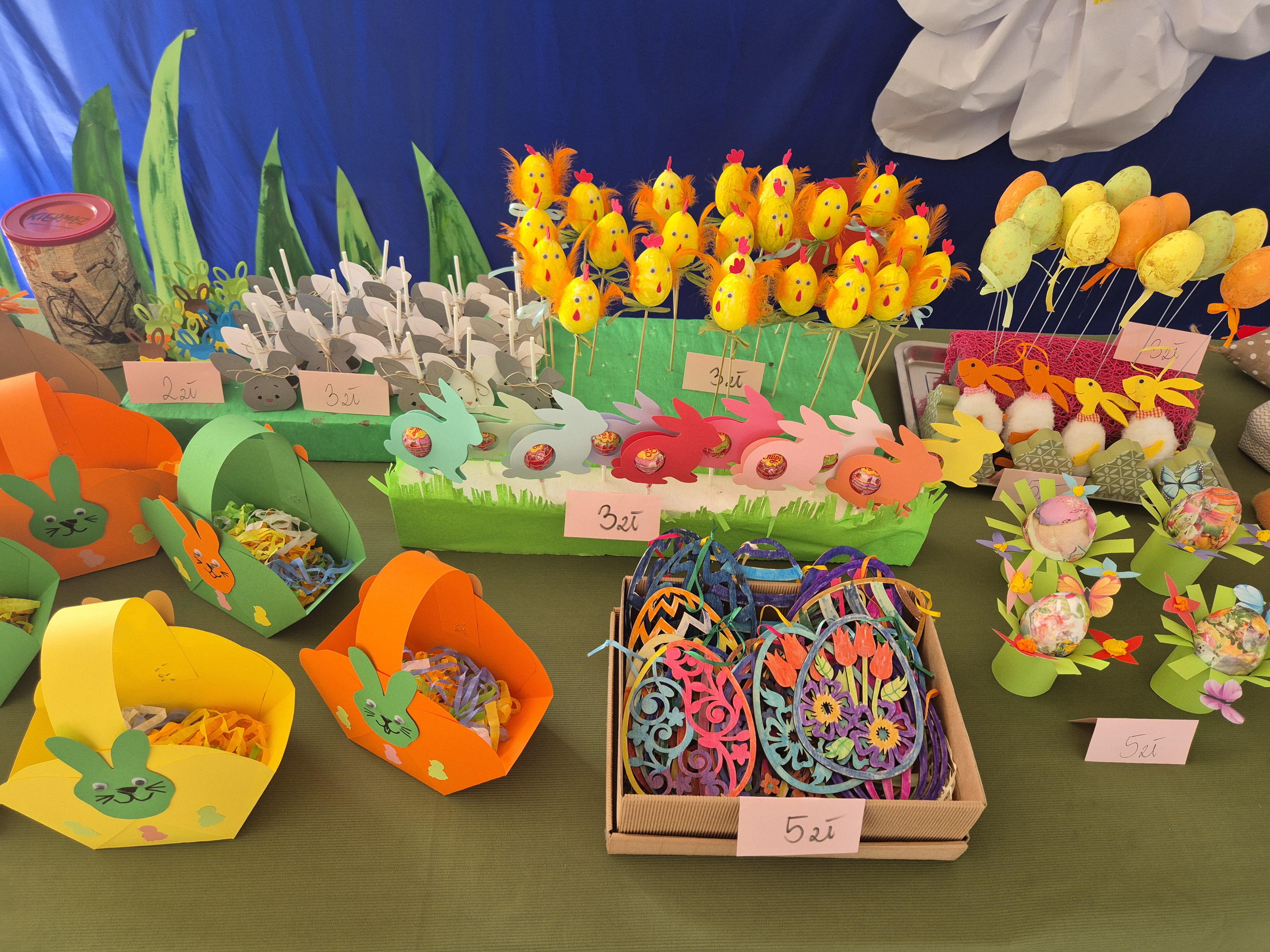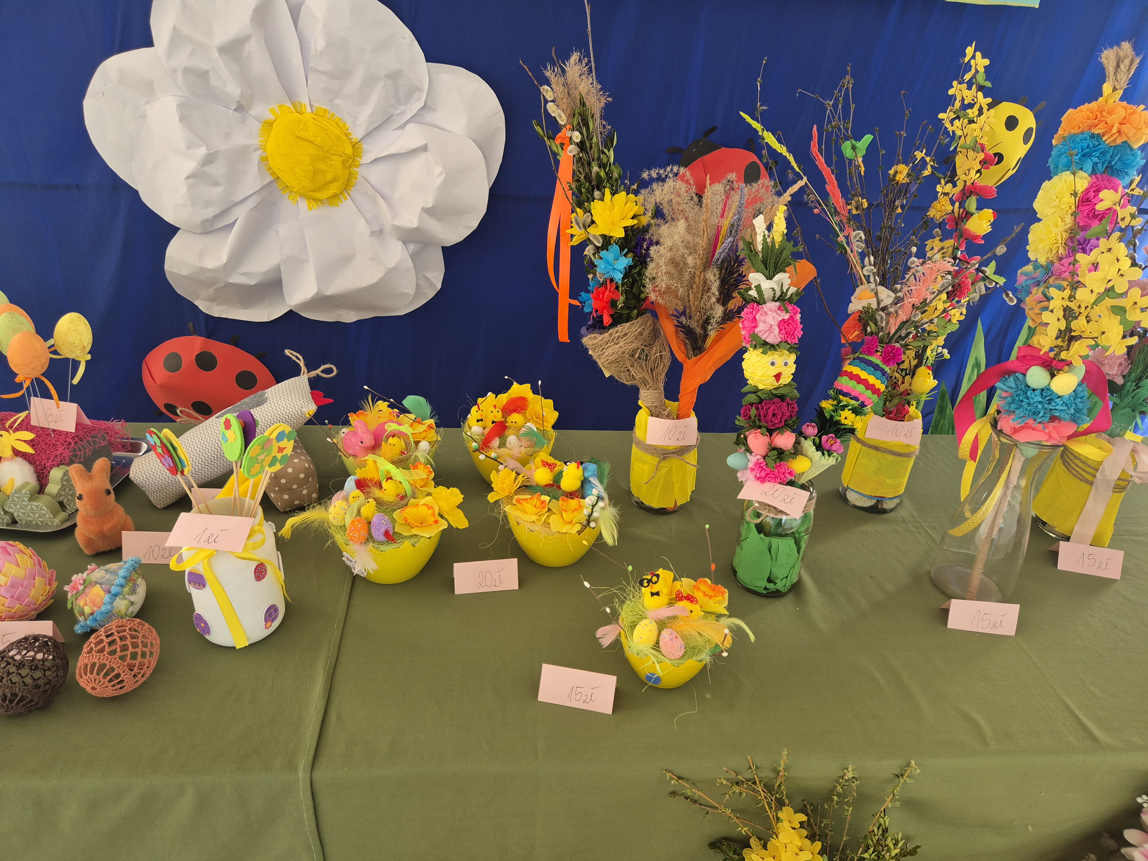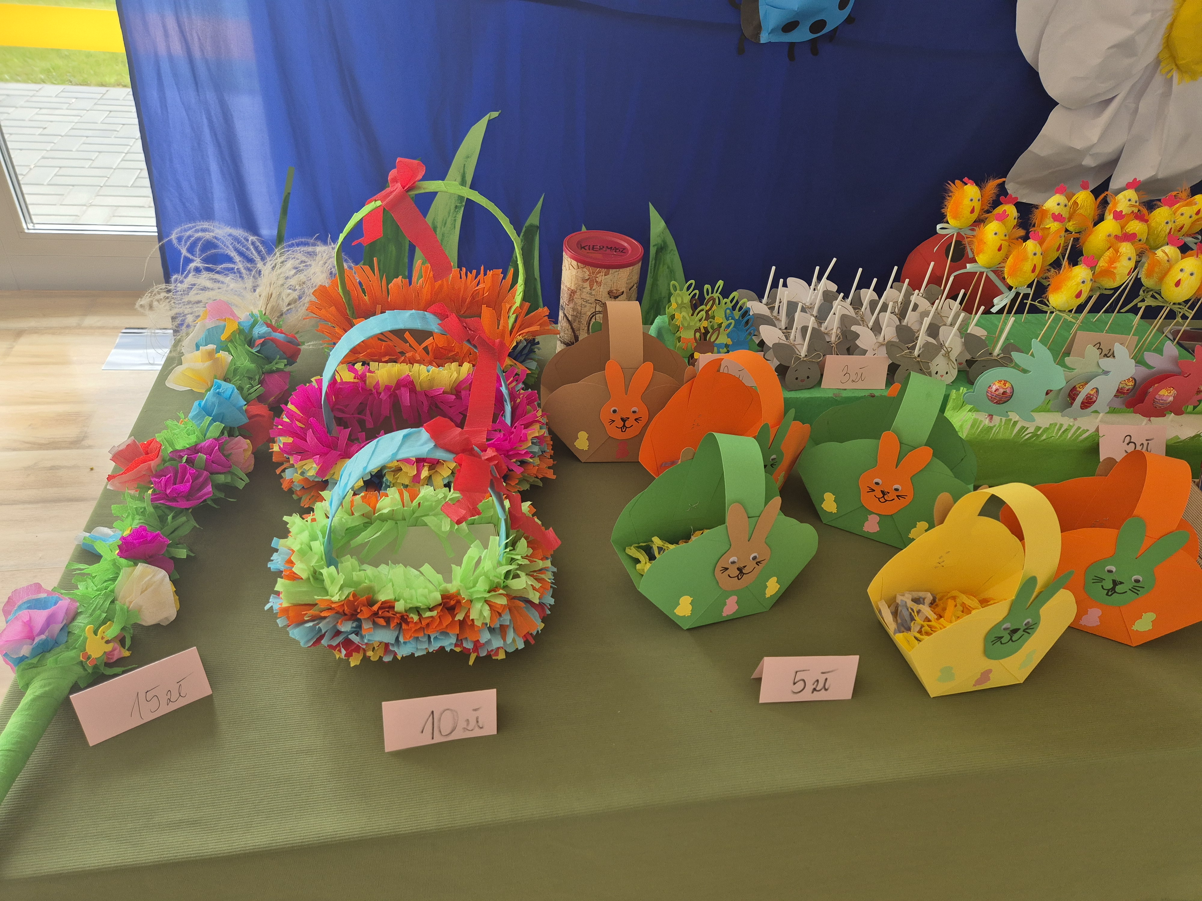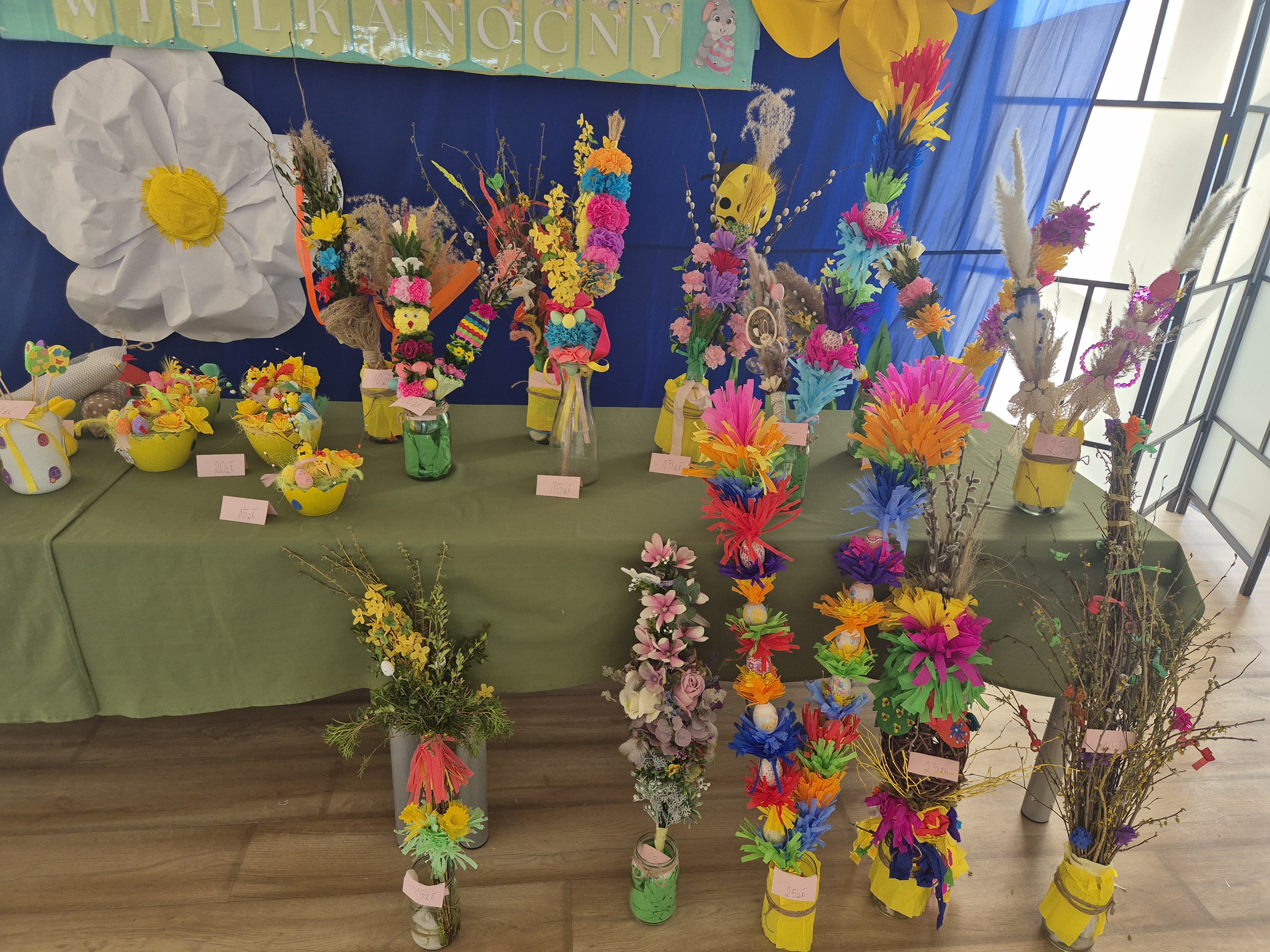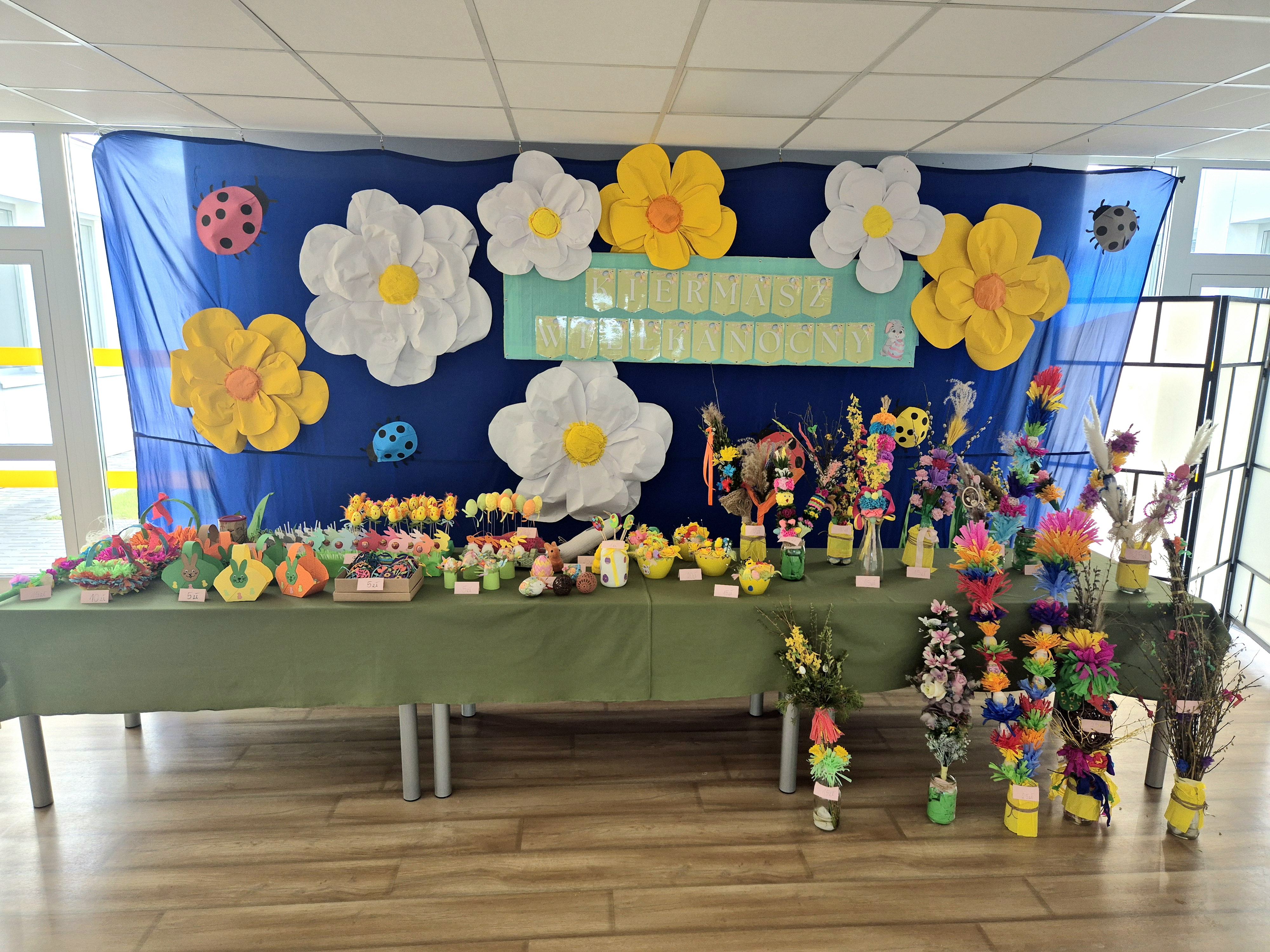 W dniach 07-18.04.2025r. zorganizowaliśmy w naszym przedszkolu drugi Kiermasz Wielkanocny, na którym każdy mógł znaleźć coś dla siebie – stroiki wielkanocne, palmy, koszyki, jajka oraz inne ozdoby. Na kiermaszu zostały również wystawione palmy z konkursu na „Najpiękniejszą Palmę Wielkanocną”. Składamy serdeczne podziękowania wszystkim rodzicom i pracownikom przedszkola, którzy zaangażowali się w organizację tego przedsięwzięcia, zarówno poprzez dostarczenie rękodzieła jak i wsparcie finansowe w postaci kupna stworzonych ozdób. Kwota uzbierana podczas kiermaszu wyniosła 1195 zł. Cały dochód zostanie przeznaczony na potrzeby przedszkola oraz jego wychowanków.
