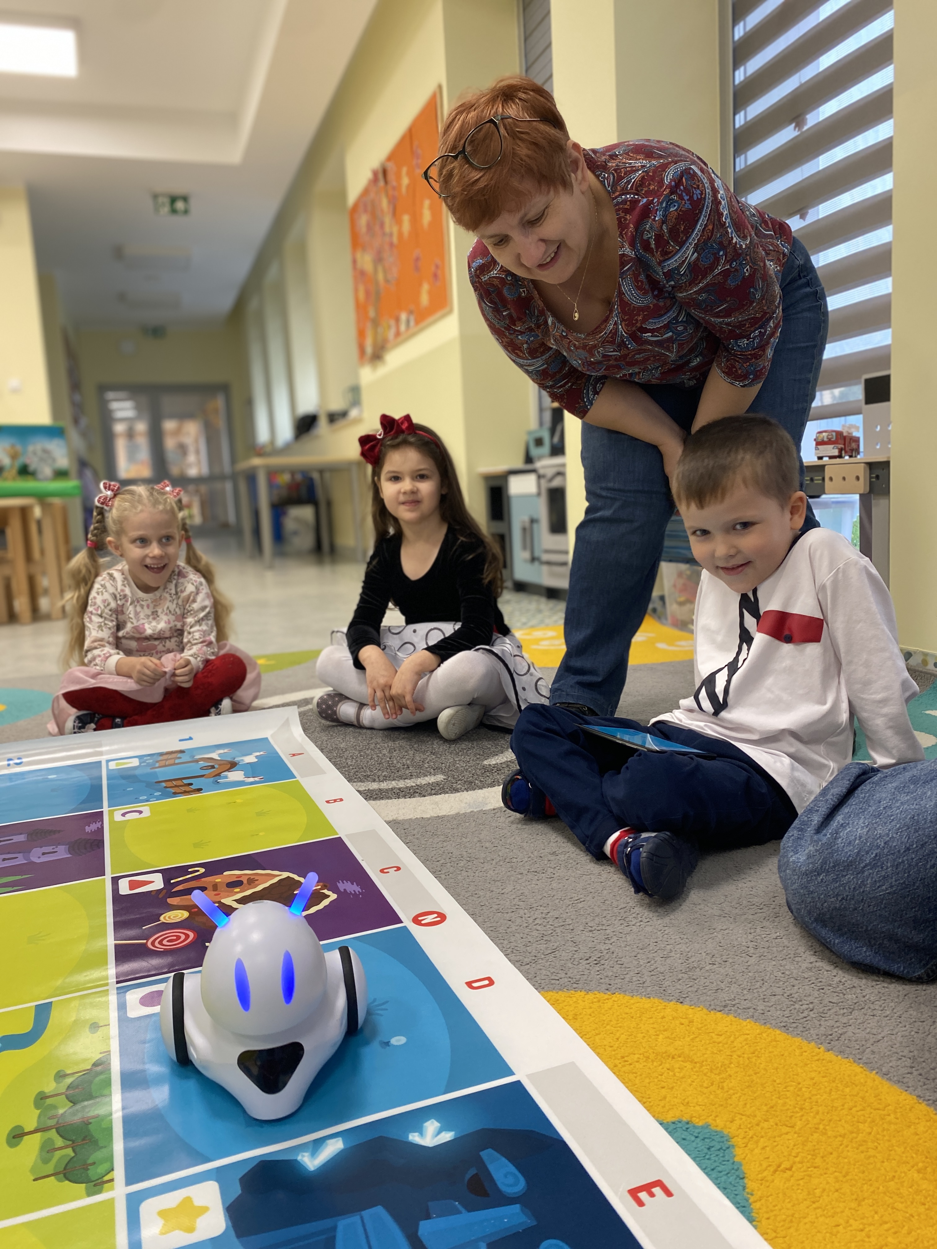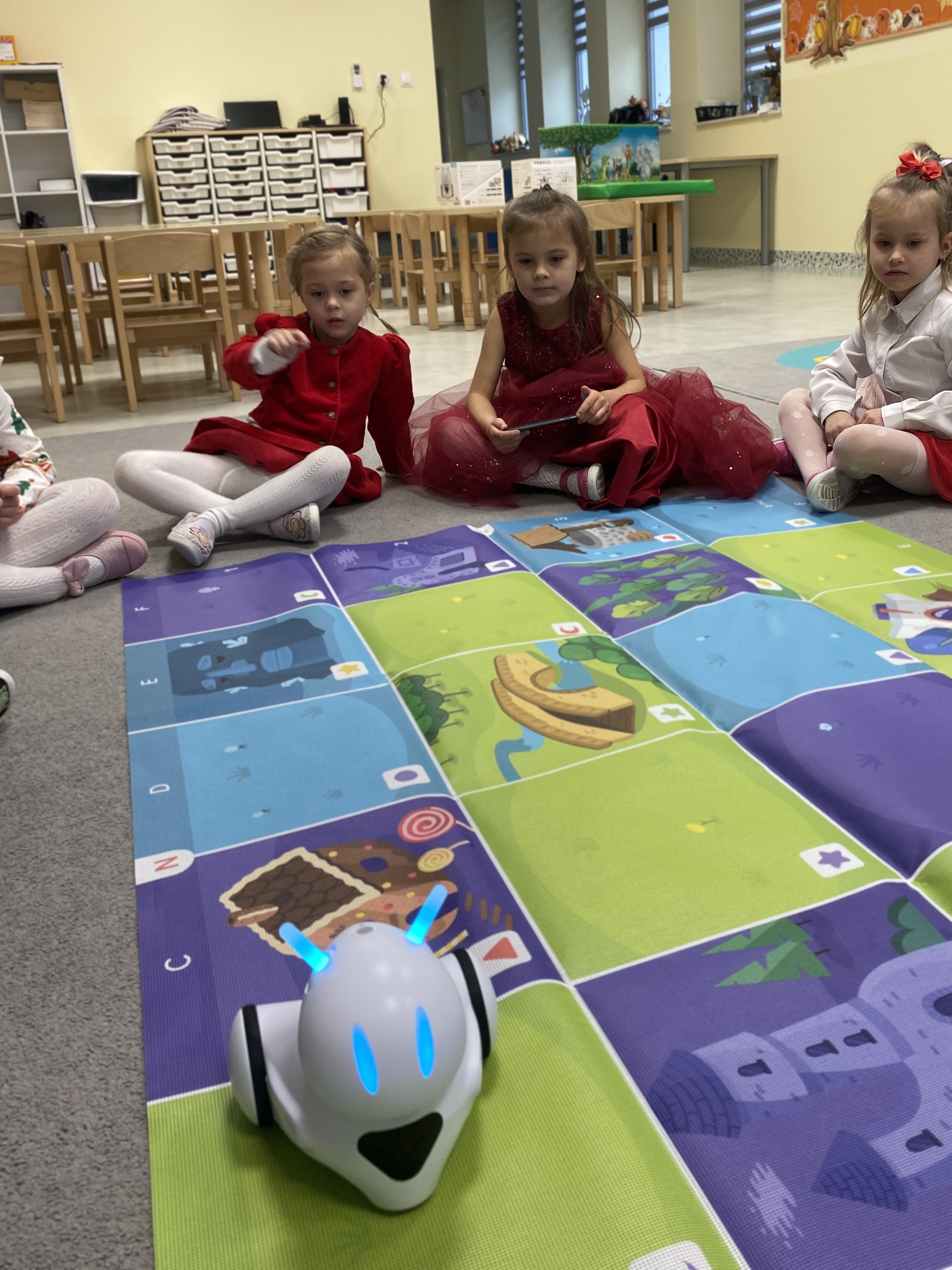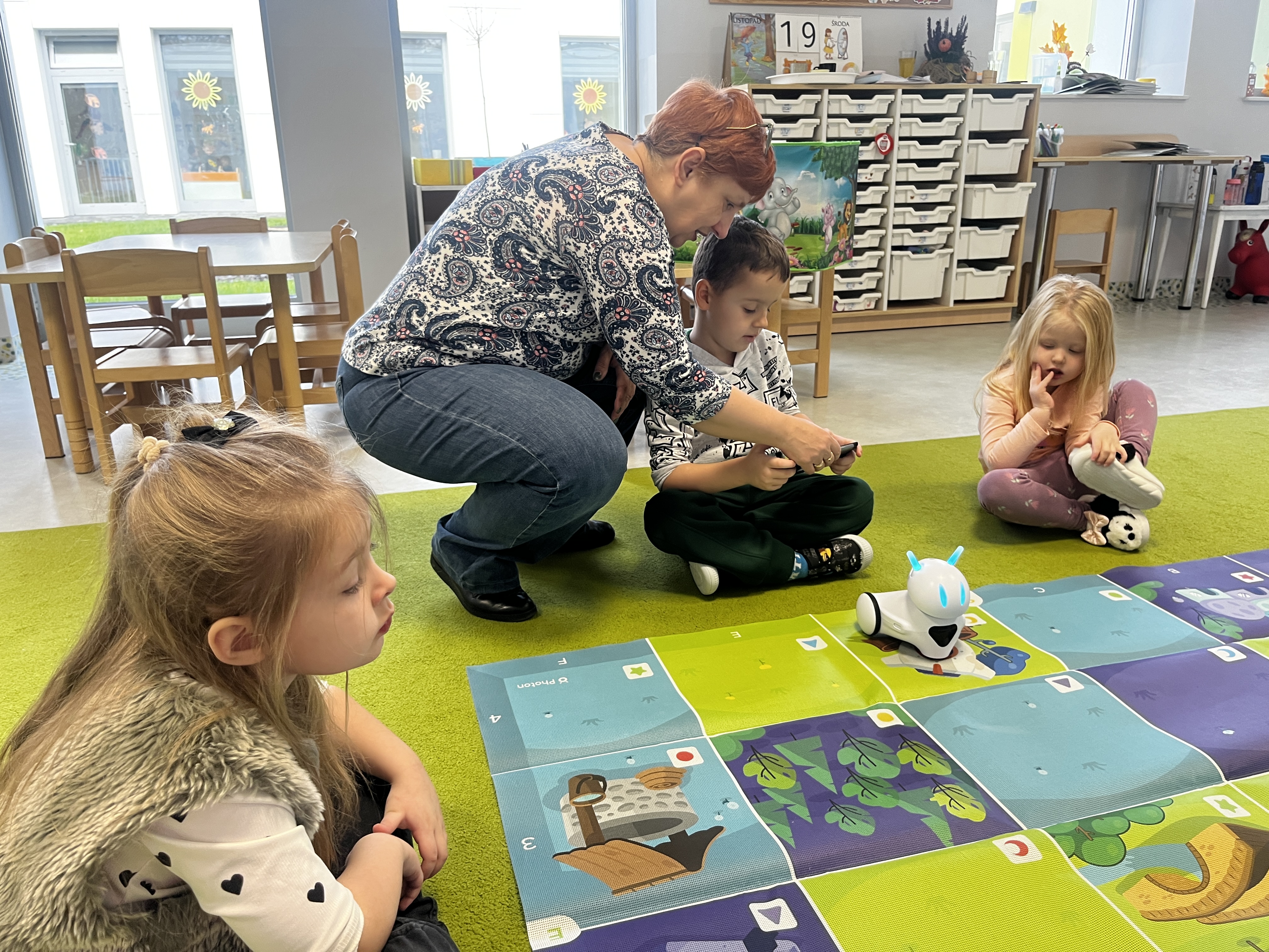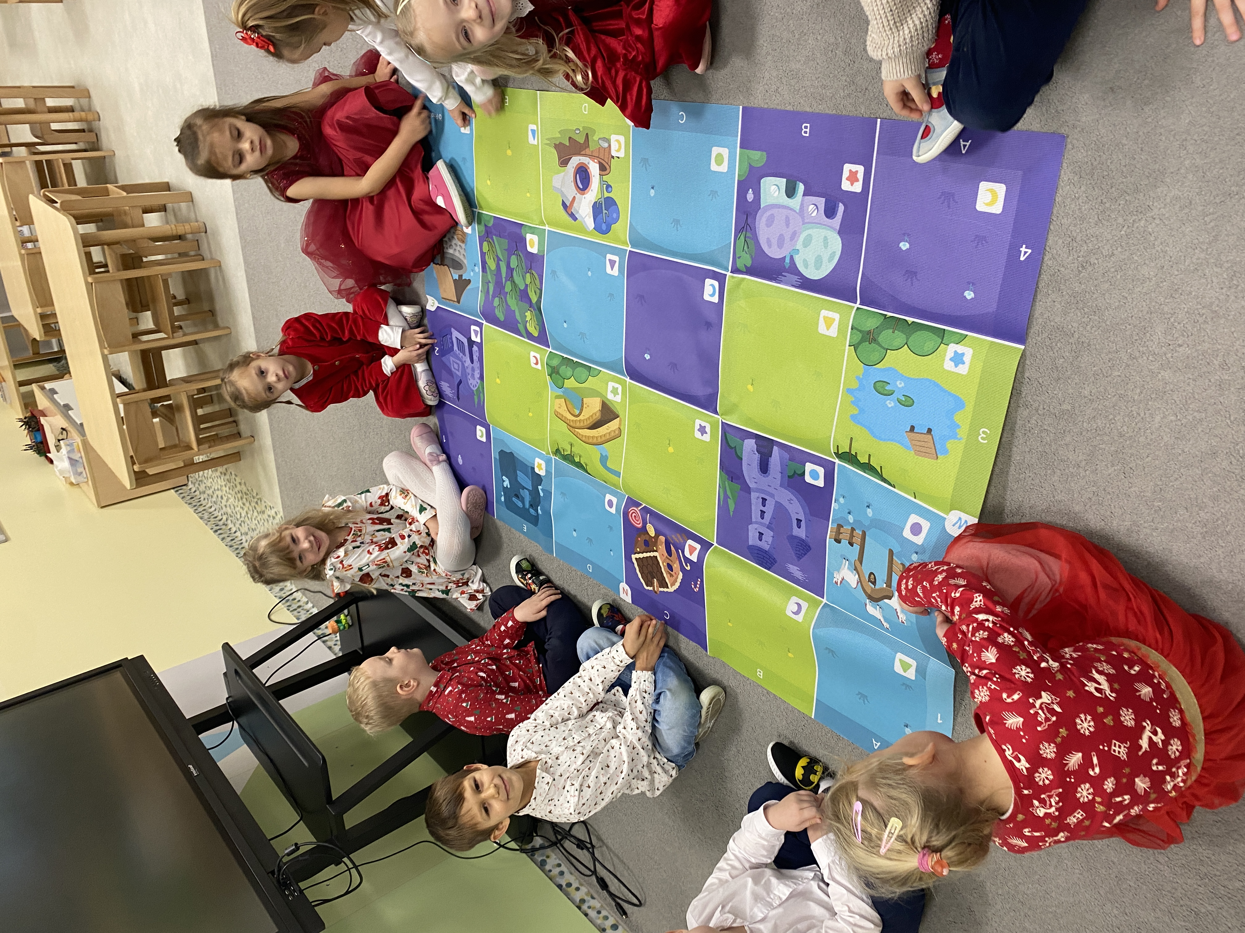Podczas zajęć przedszkolaki pracowały na specjalnych matach edukacyjnych, gdzie przeliczały pola oraz wyznaczały trasy dla poznanych wcześniej robotów Photonów. Jednym z zadań było również zaplanowanie drogi prowadzącej do kolegów