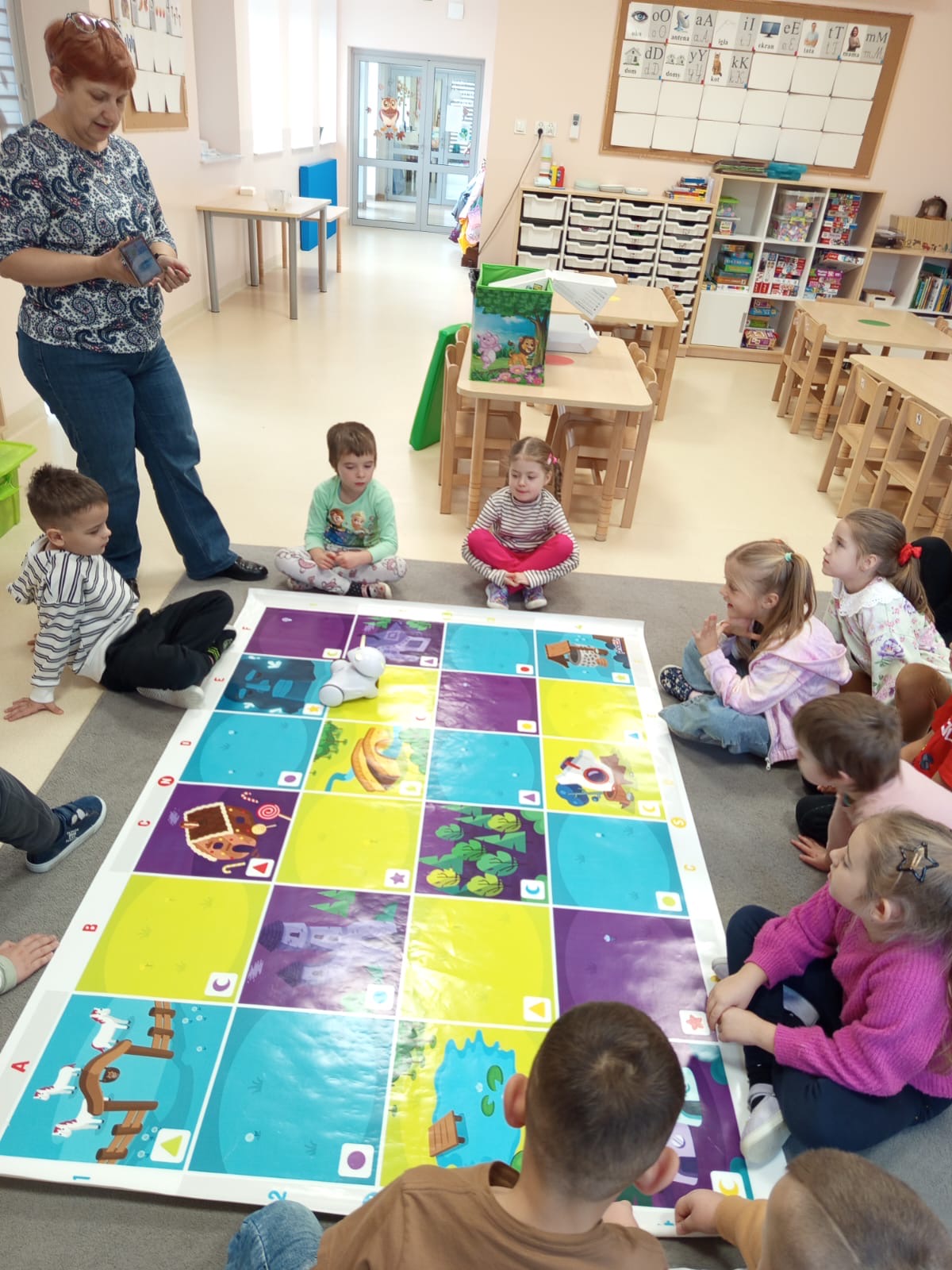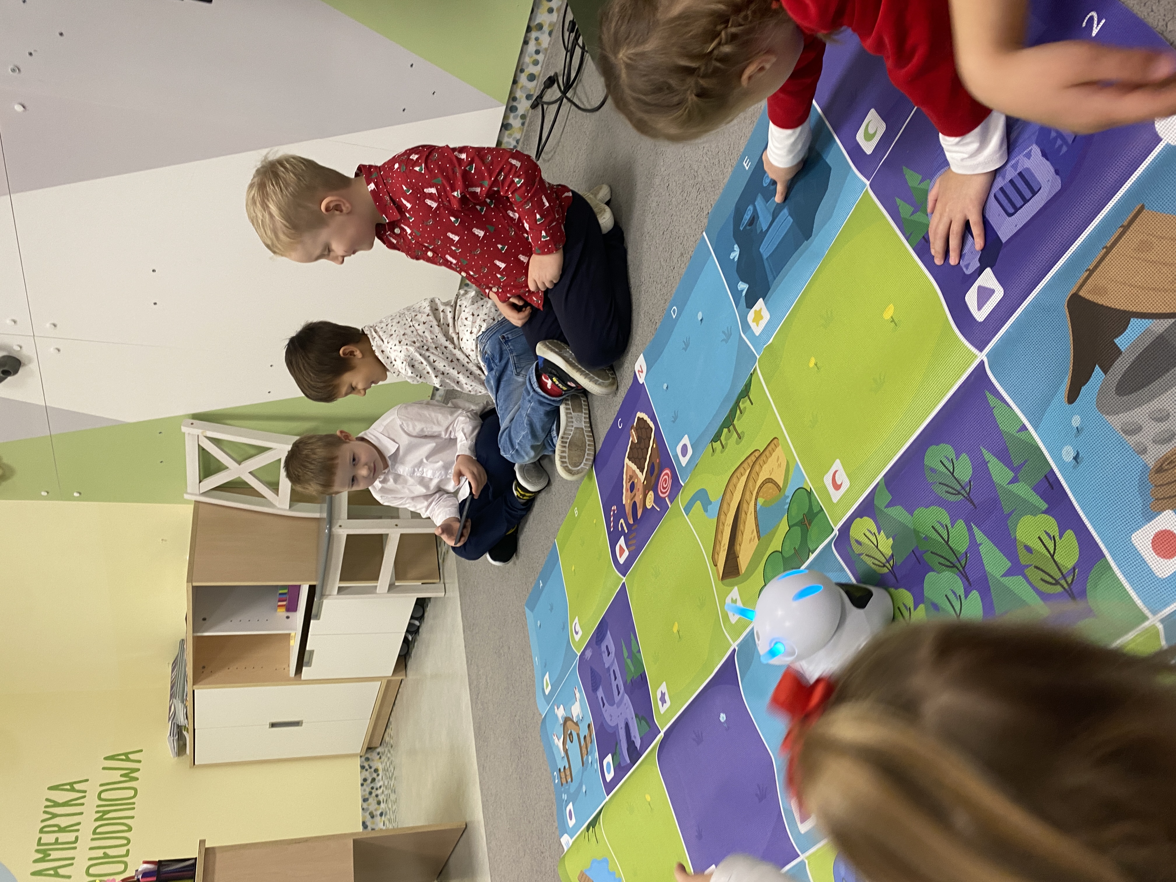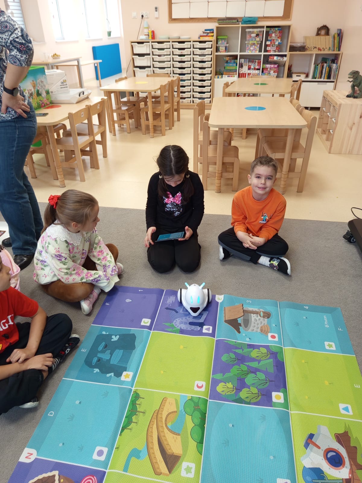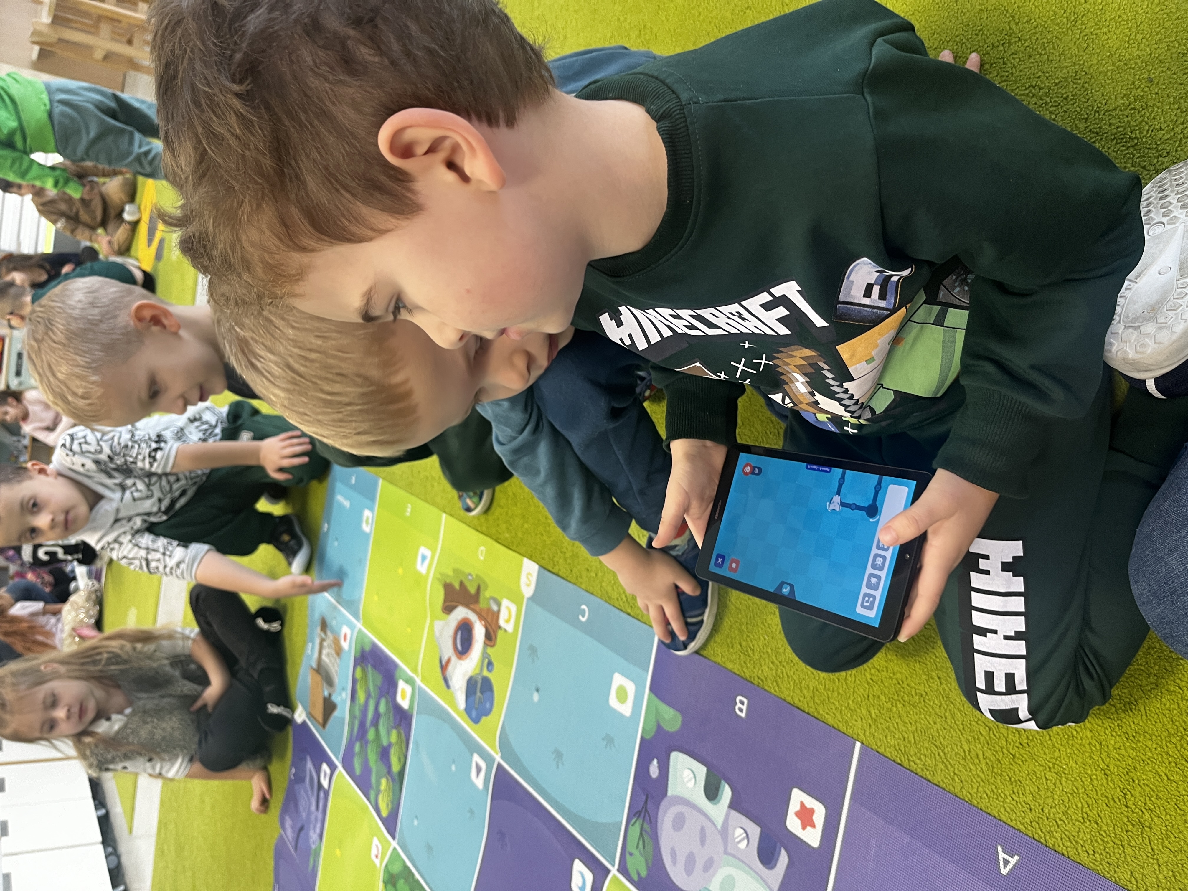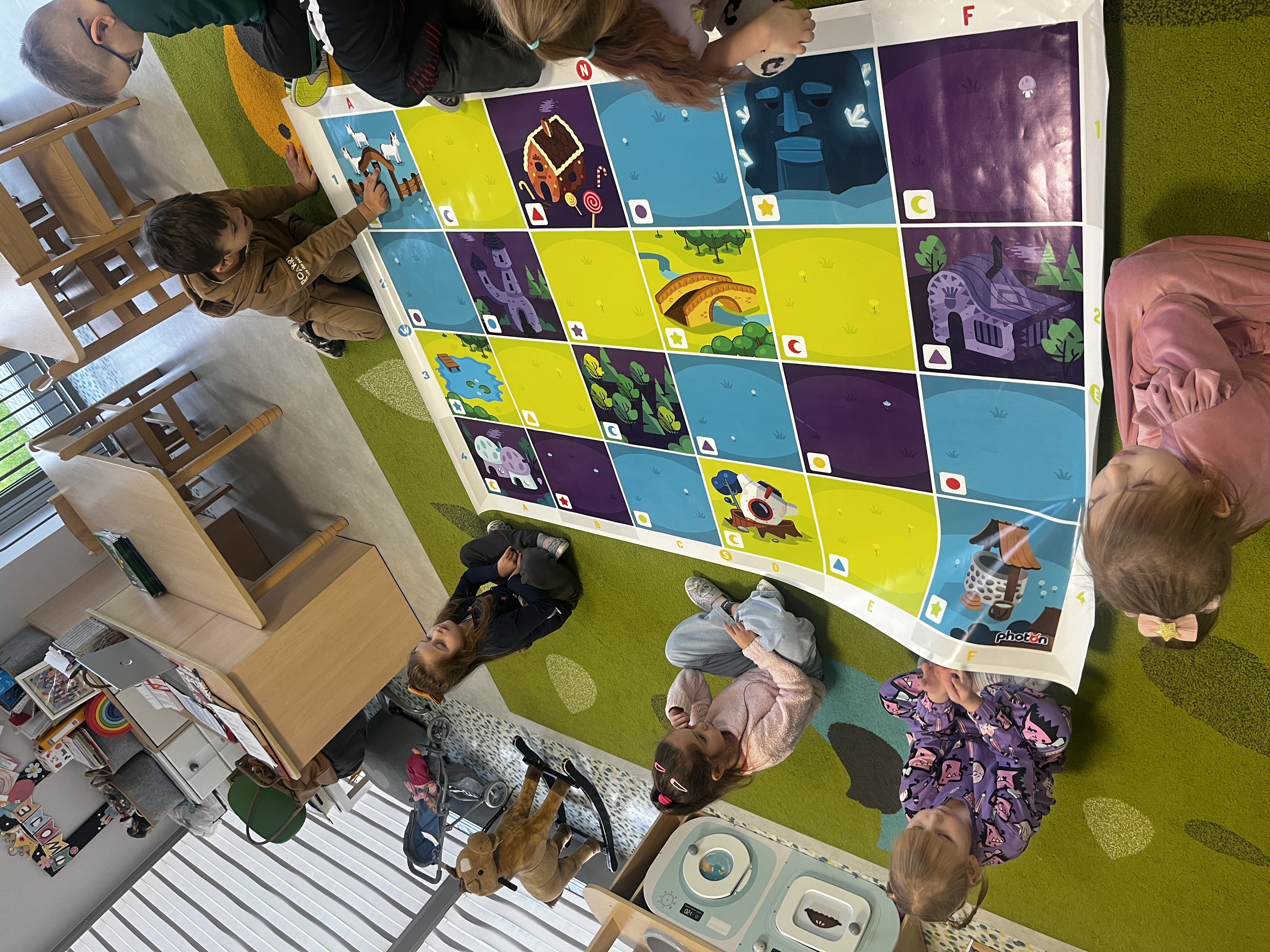 Podczas zajęć przedszkolaki pracowały na specjalnych matach edukacyjnych, gdzie przeliczały pola oraz wyznaczały trasy dla poznanych wcześniej robotów Photonów. Jednym z zadań było również zaplanowanie drogi prowadzącej do kolegów