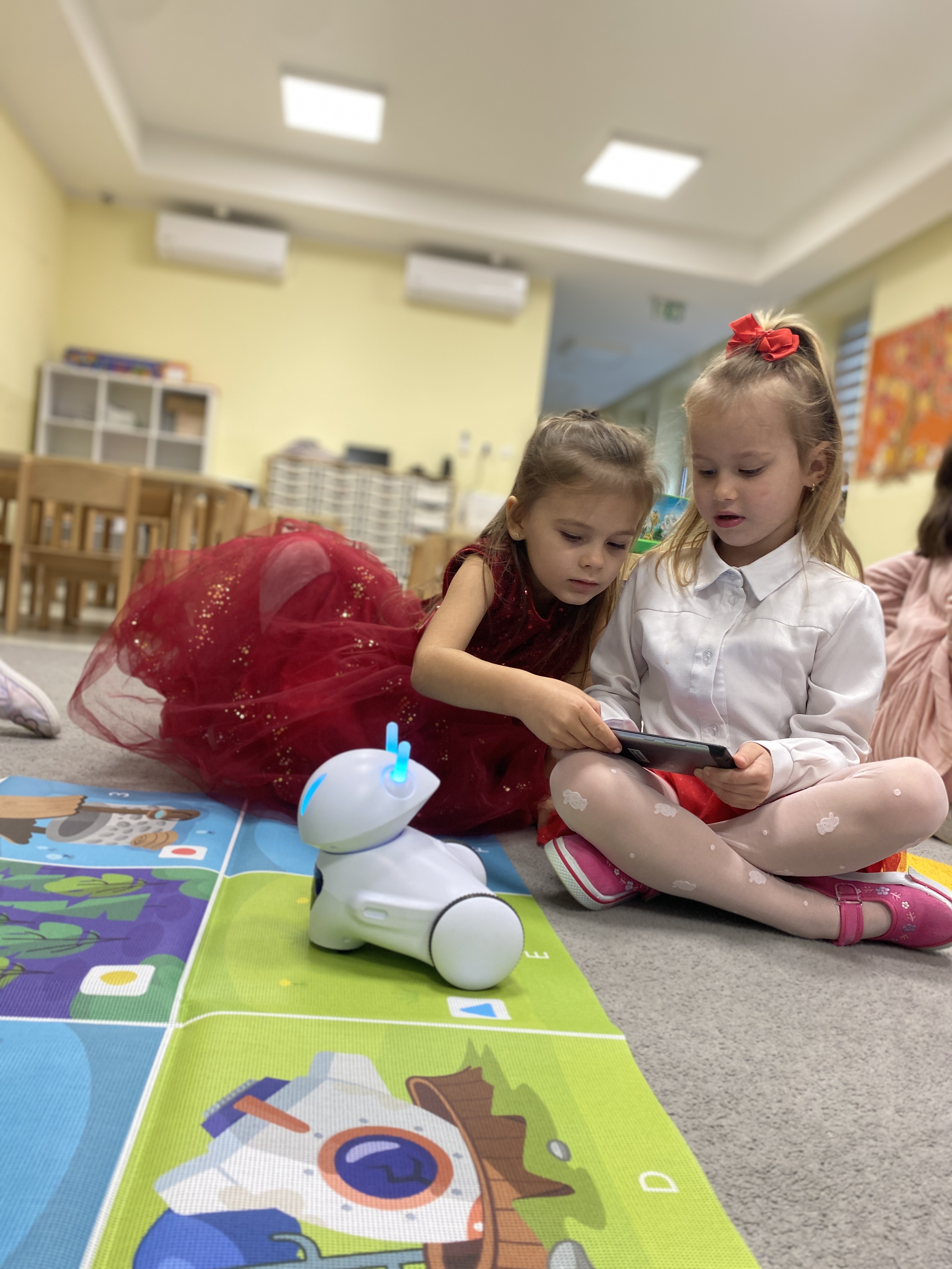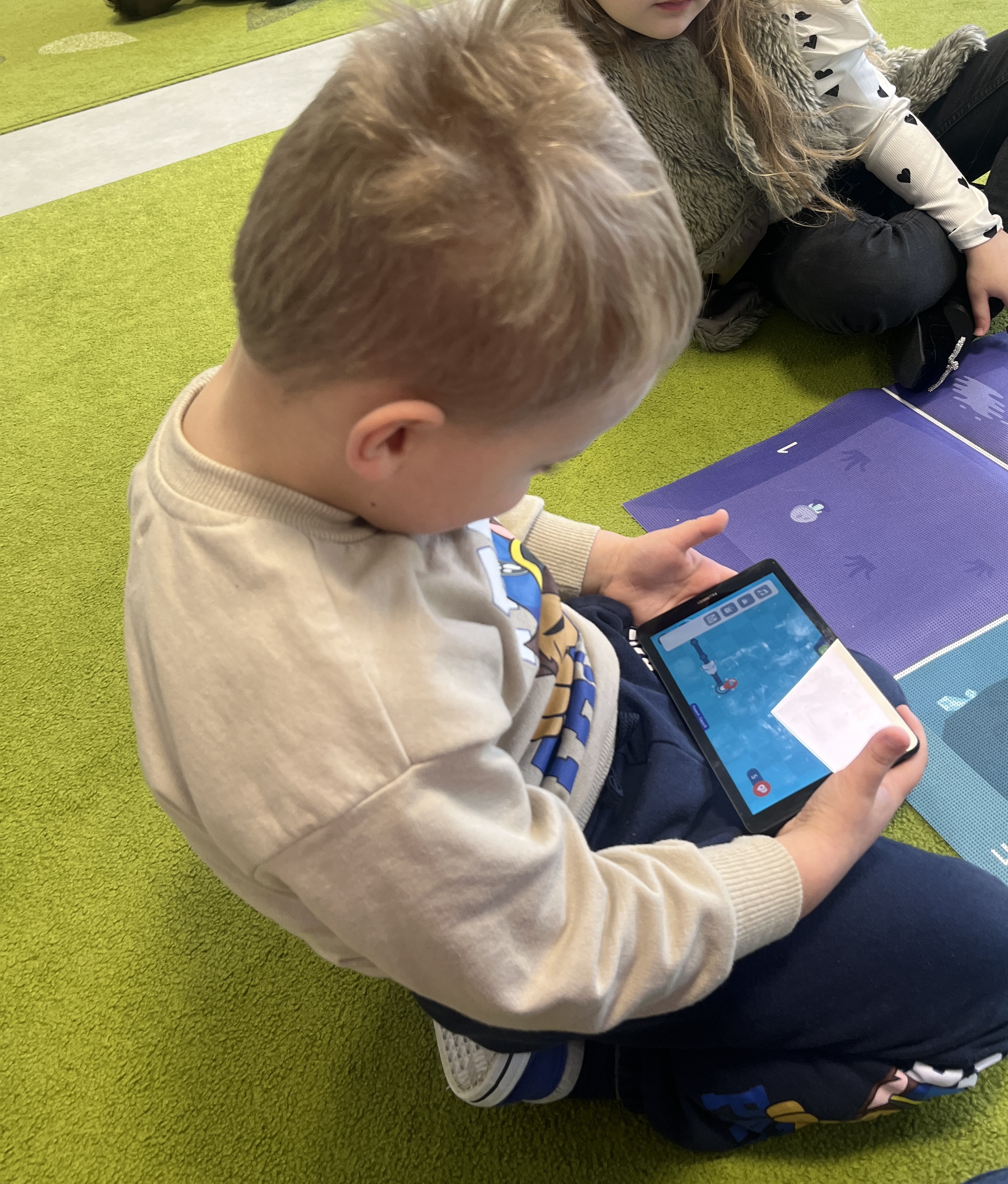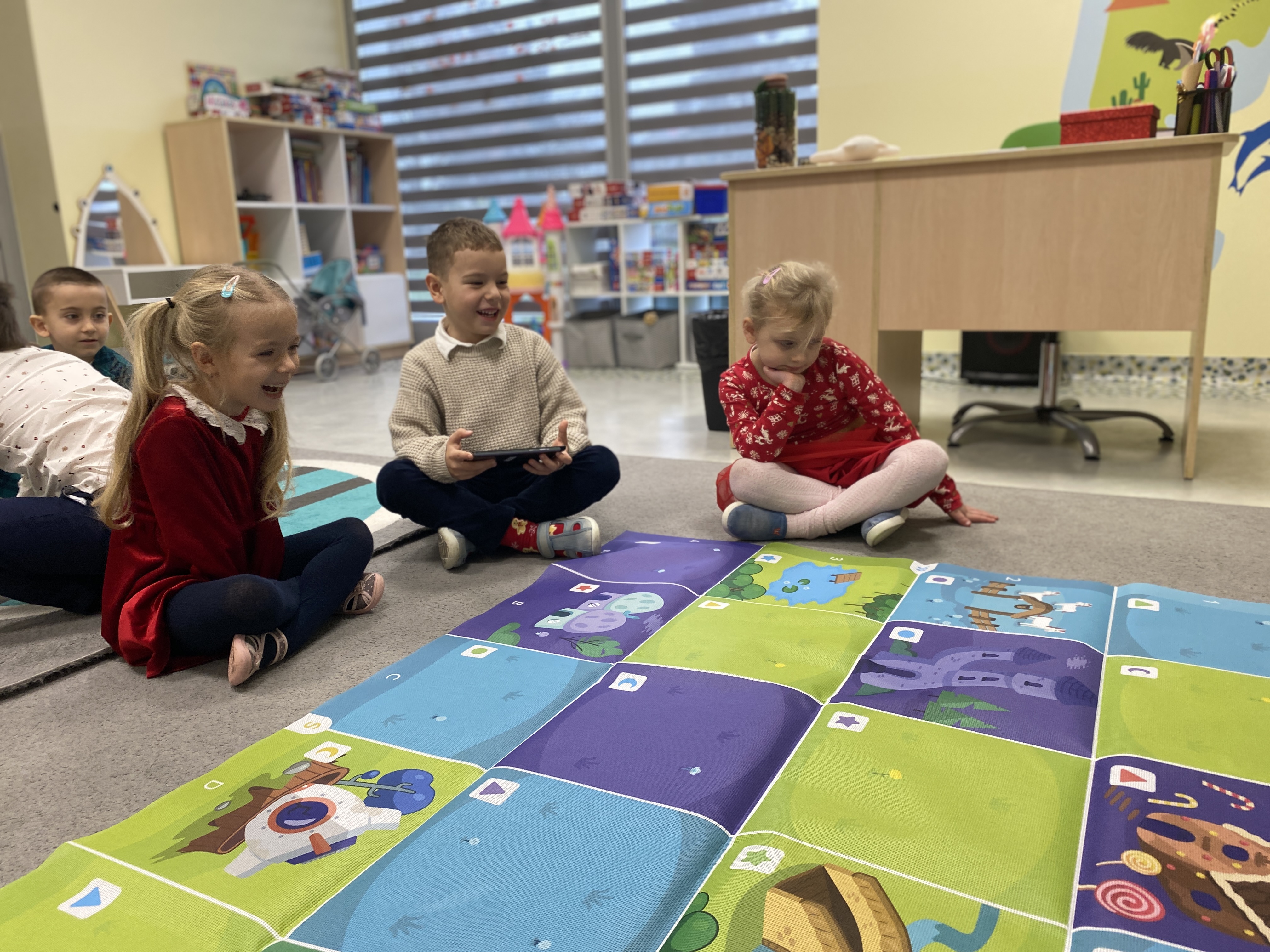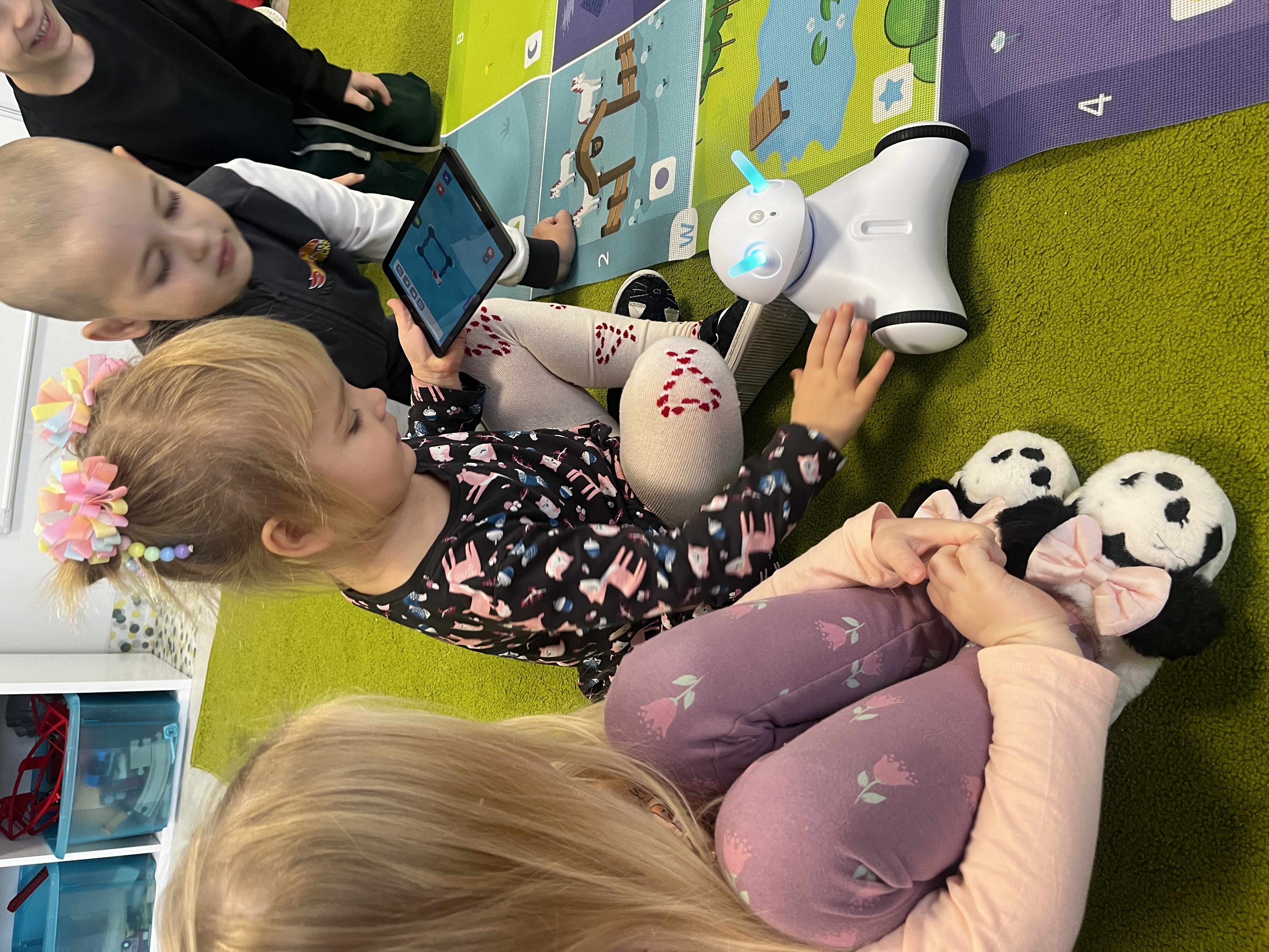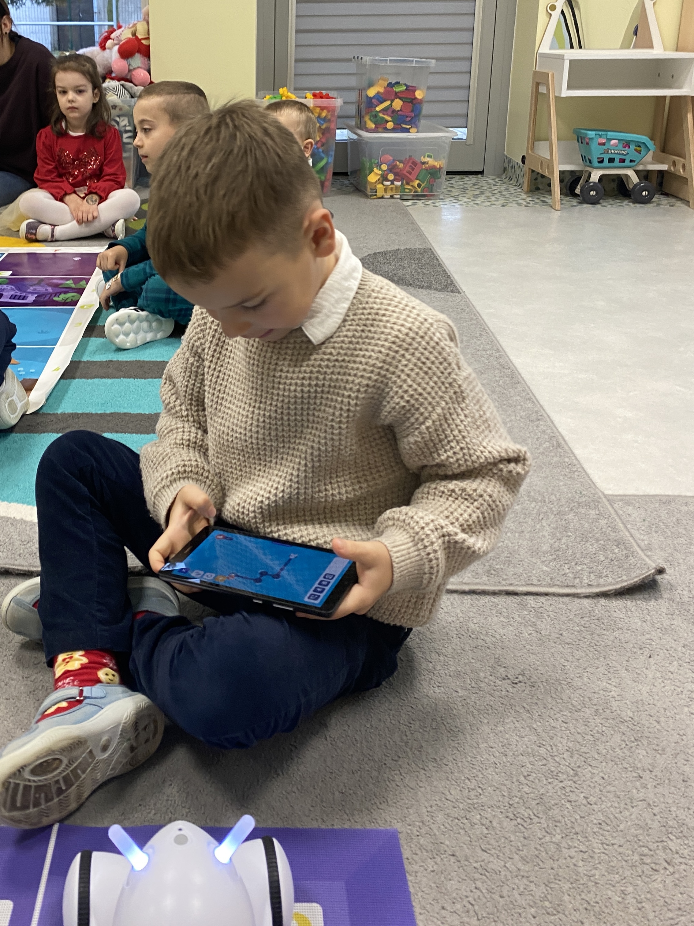 Podczas zajęć przedszkolaki pracowały na specjalnych matach edukacyjnych, gdzie przeliczały pola oraz wyznaczały trasy dla poznanych wcześniej robotów Photonów. Jednym z zadań było również zaplanowanie drogi prowadzącej do kolegów