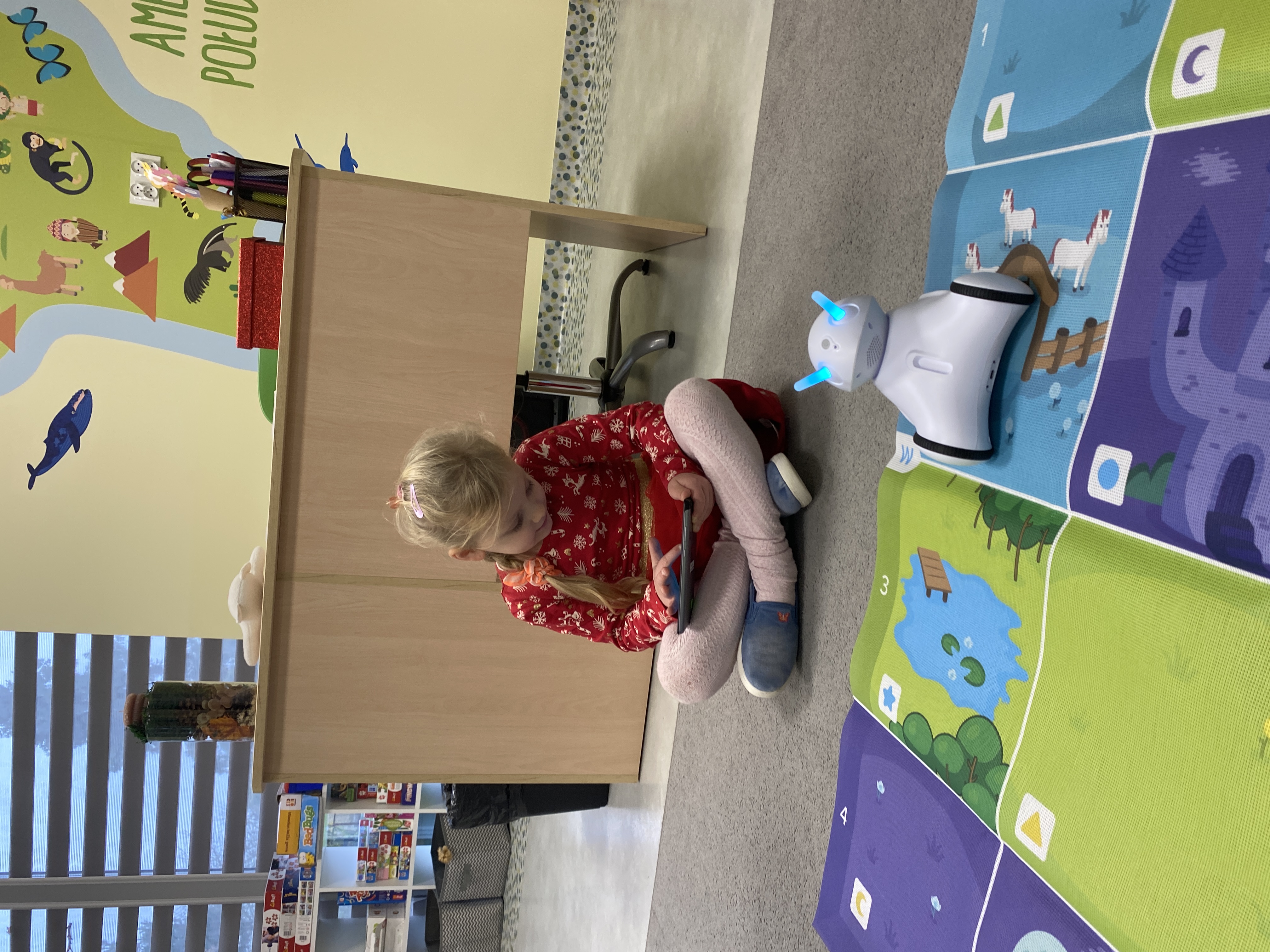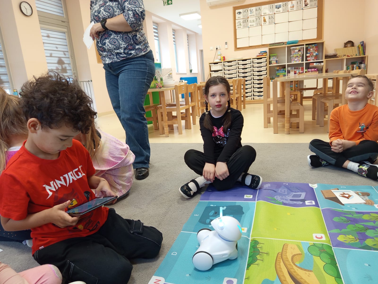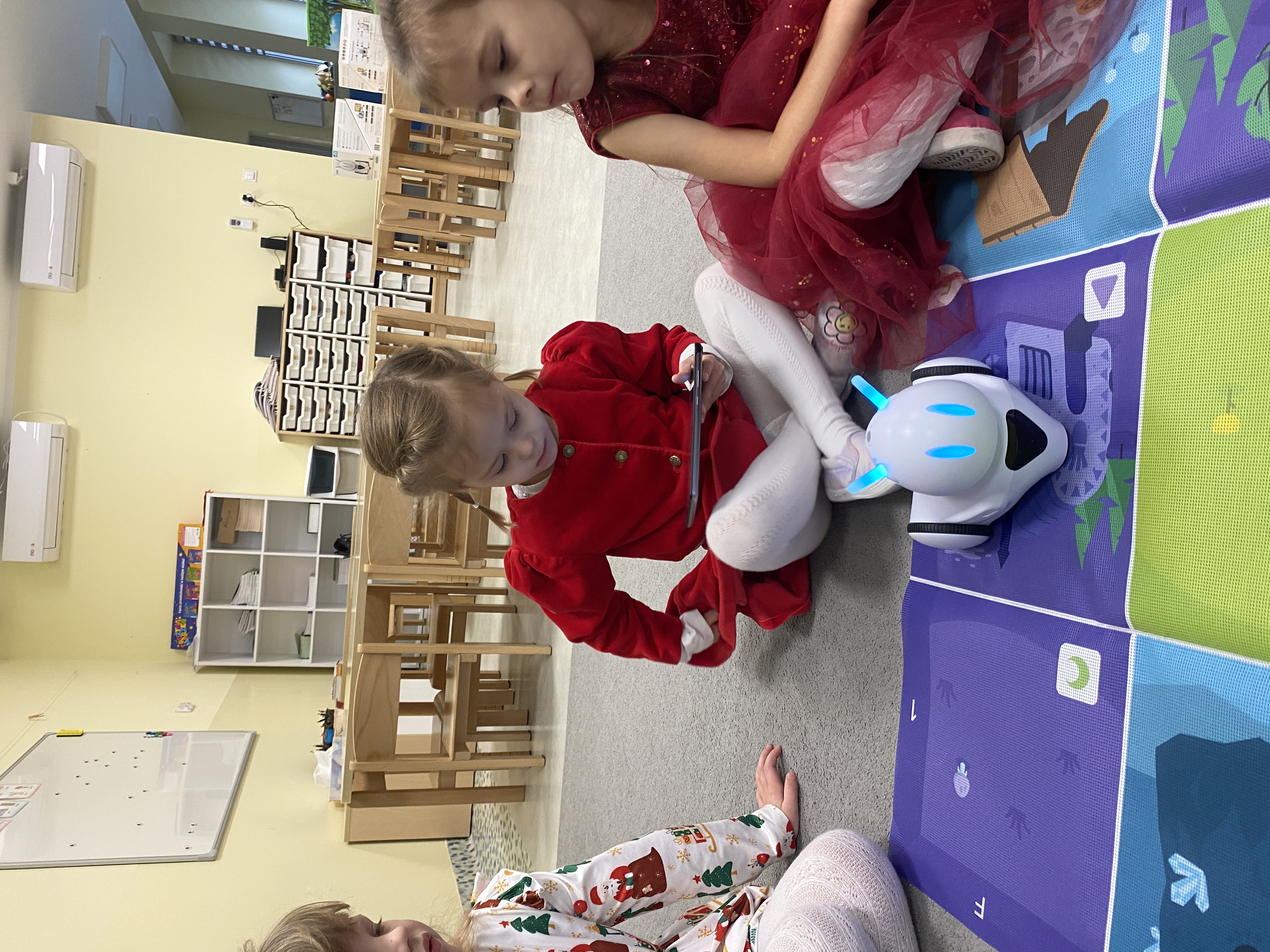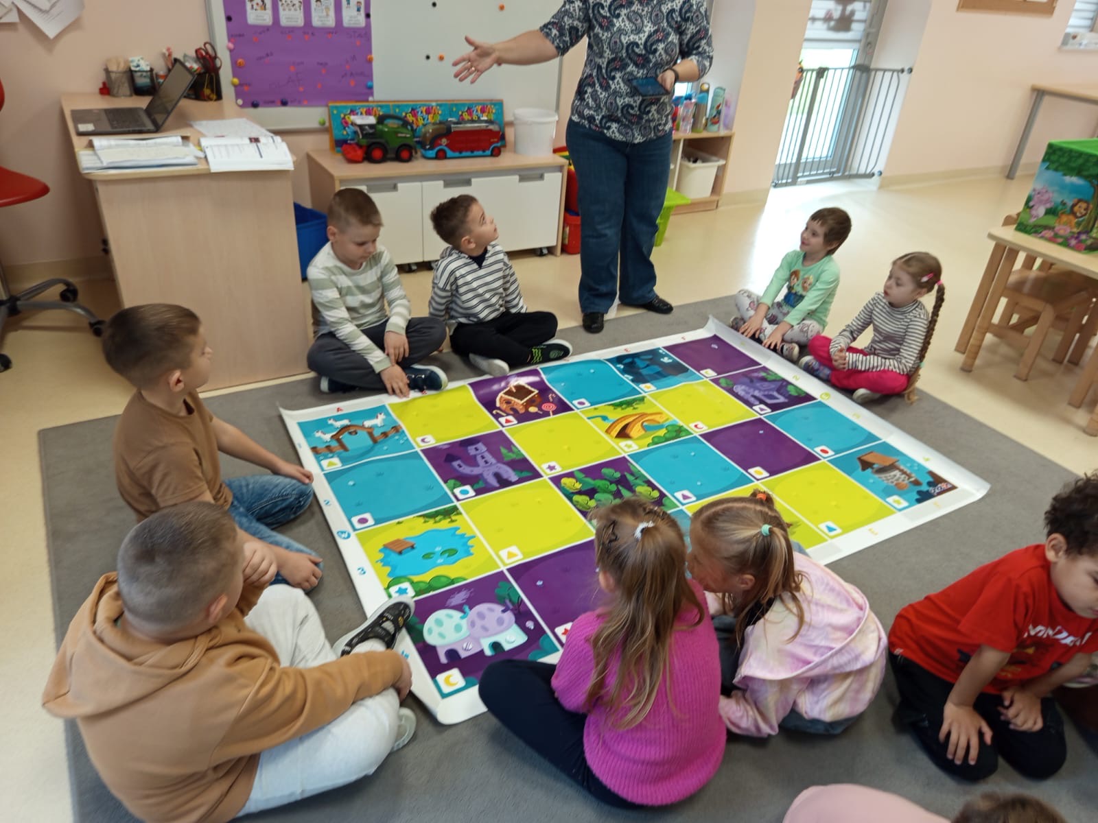 Podczas zajęć przedszkolaki pracowały na specjalnych matach edukacyjnych, gdzie przeliczały pola oraz wyznaczały trasy dla poznanych wcześniej robotów Photonów. Jednym z zadań było również zaplanowanie drogi prowadzącej do kolegów